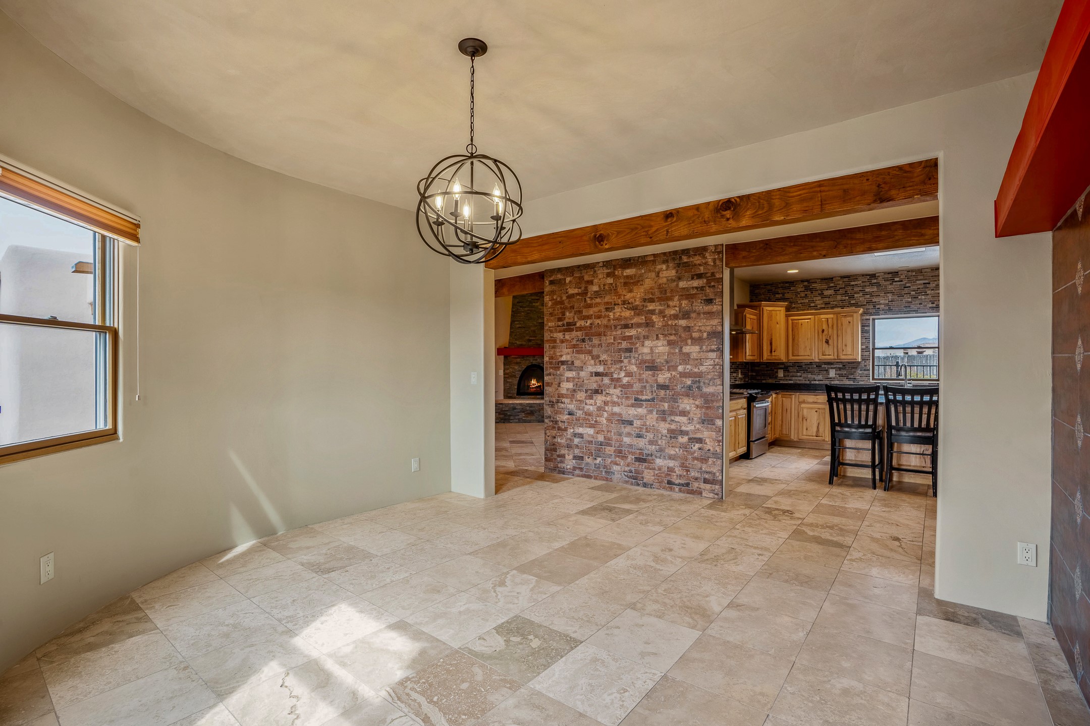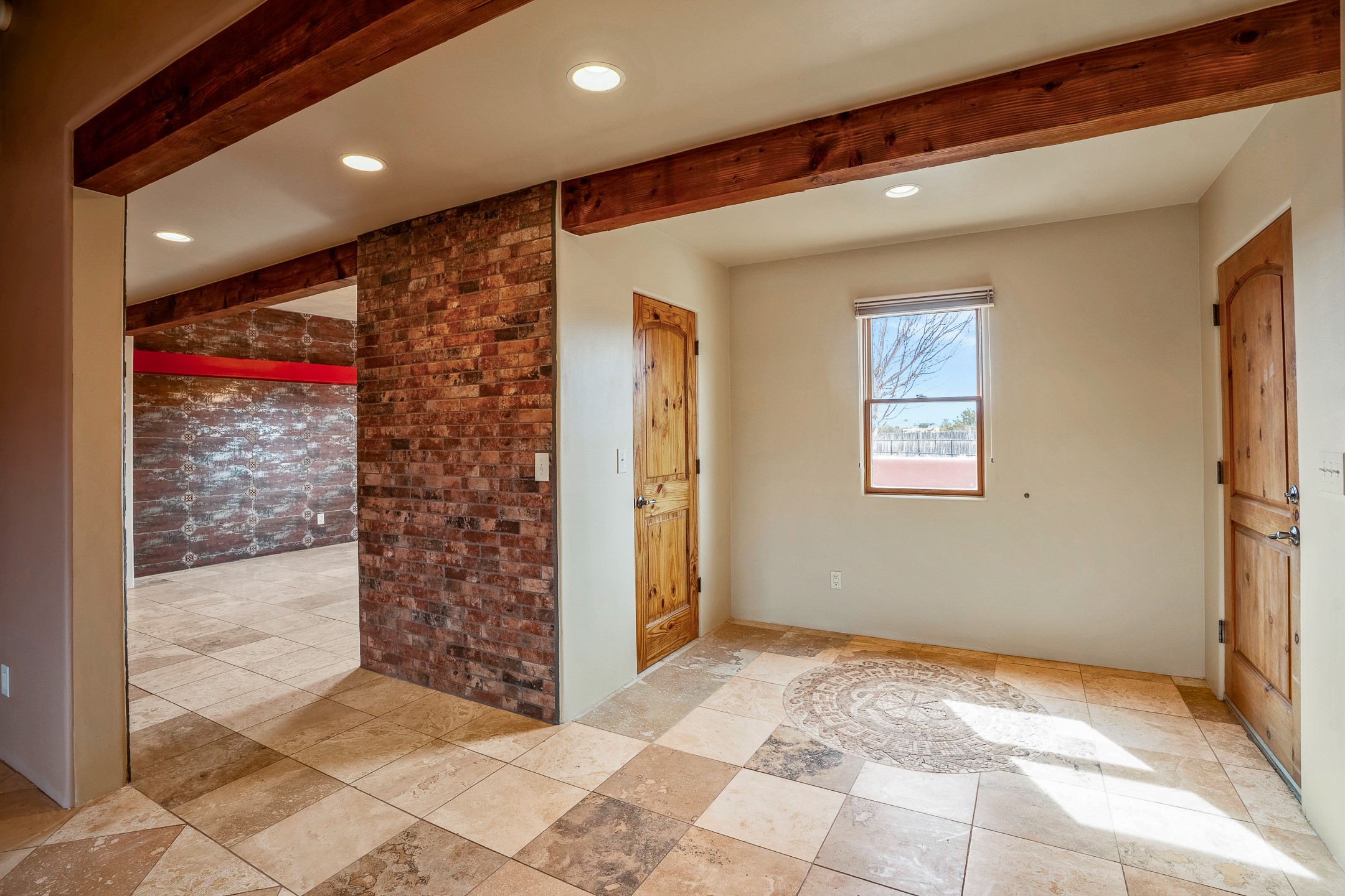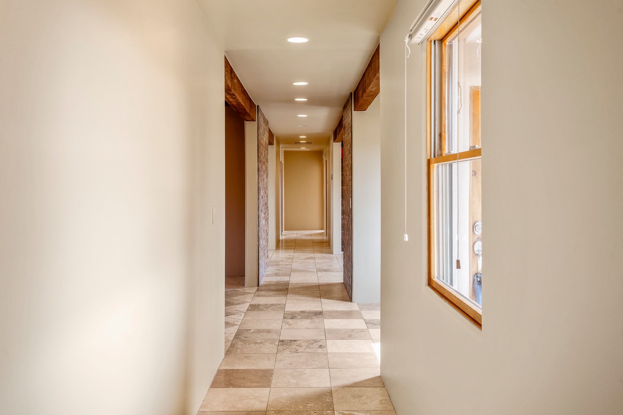 This beautiful single-level home boasts a spacious 2,727 +/- square foot split-bedroom floor plan with 4 bedrooms, a sunroom, 3 full baths, and a 3-car garage. 2025: home has been appx 80% re-stuccoed, & is situated on a fenced & gated 2.5-acre lot with breathtaking mountain views in all directions, offering a serene rural setting allowing horses, no HOA, just minutes from hospitals, restaurants, & grocery stores. The large kitchen is a chef's dream, featuring NEW MOSAIC TILE BACKSPLASH, abundant cabinetry & drawers for ample storage, granite countertops, an island/breakfast bar, pantry and stainless-steel appliances. Adjacent to the kitchen is the formal dining room with tiled accents and plaster finished wall/ceiling. The grand living room impresses with high ceilings, vigas, can lighting, and a REMODELED GAS FIREPLACE WITH MANTLE. From the living room, step into the NEW SUNROOM, which opens to a NEW COVERED PORCH perfect for relaxing & enjoying the views. The spacious owner's suite has NEW ENGINEERED WOOD FLOORING, walk-in closet with built-ins, vigas with tongue & groove ceiling and a ceiling fan. The ensuite bath has a NEW TUB, NEW LOVELY TILED SHOWER, AND NEW DOUBLE SINK VANITY. Additional bedrooms are thoughtfully designed with ample space & functionality. The hall bath has been updated with a NEW VANITY, while the laundry room, complete with plentiful cabinets and drawers, a skylight, and an NEWELY ADDED SINK, offers convenience and style. Many wonderful features and amenities include: Radiant heat-2 Evaporative cooling units-Tons of skylights-Wood doors-NEW PERGOLA-NEW 16X16 TUFF SHED (13K)-Plaster finish walls-Hunter Douglas blinds-Ceiling fans-NEW BRICK TILED ACCENT WALLS in hallway-Plenty of wall space for artwork-FRESHLY PAINTED INTERIOR (Almost every room)-Multiple covered enclosed patios, perfect for outdoor living, and entertaining. This property combines comfort and functionality with stunning views. Please read agent only remarks.