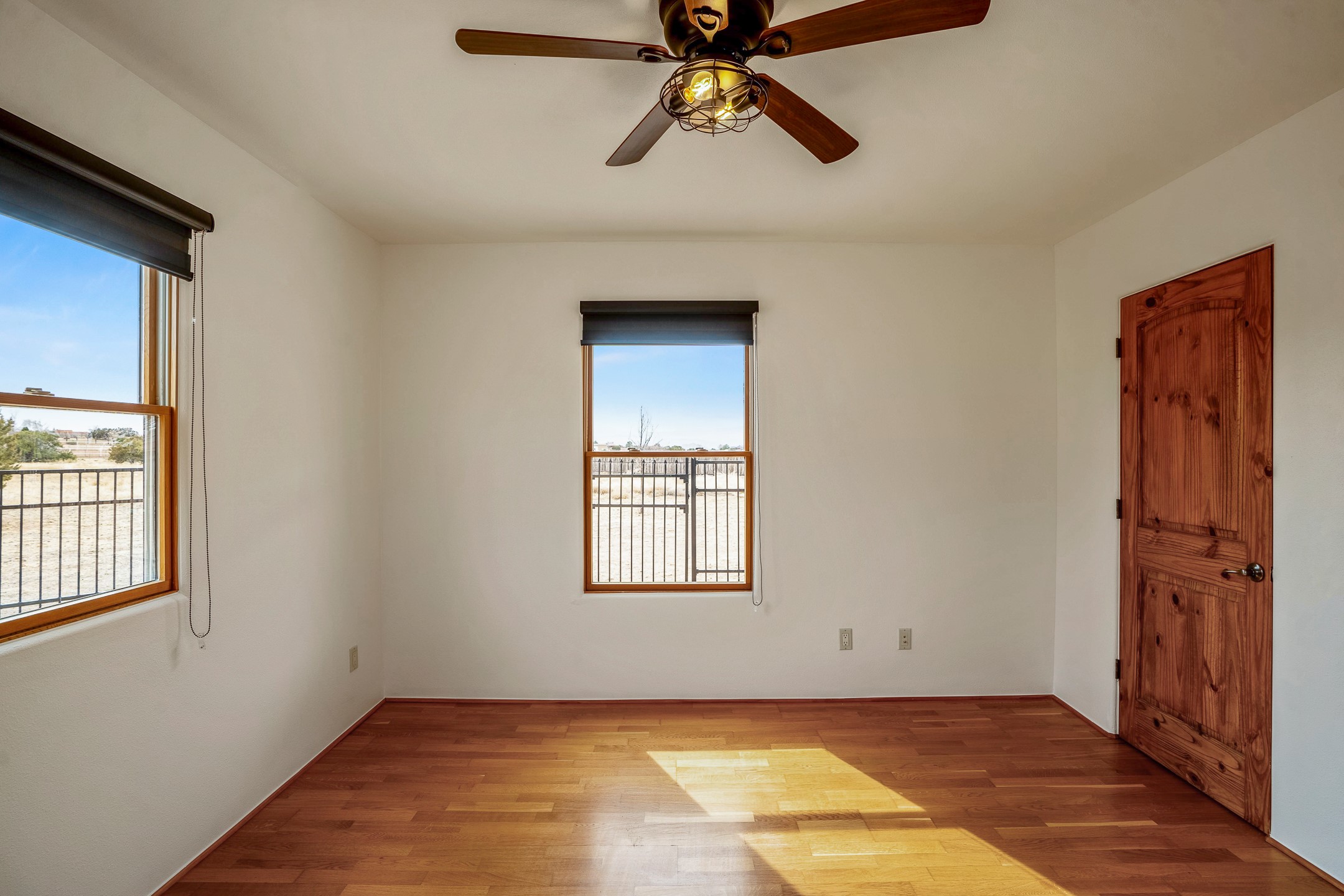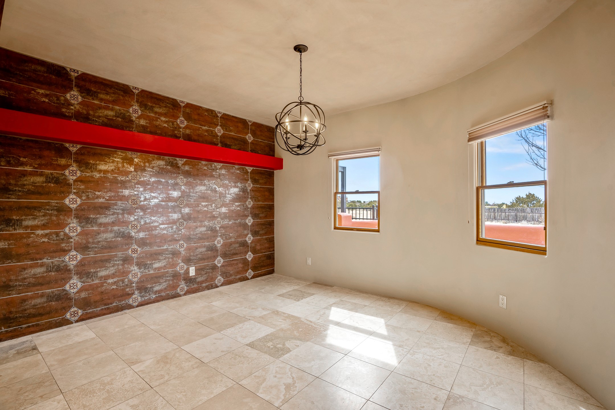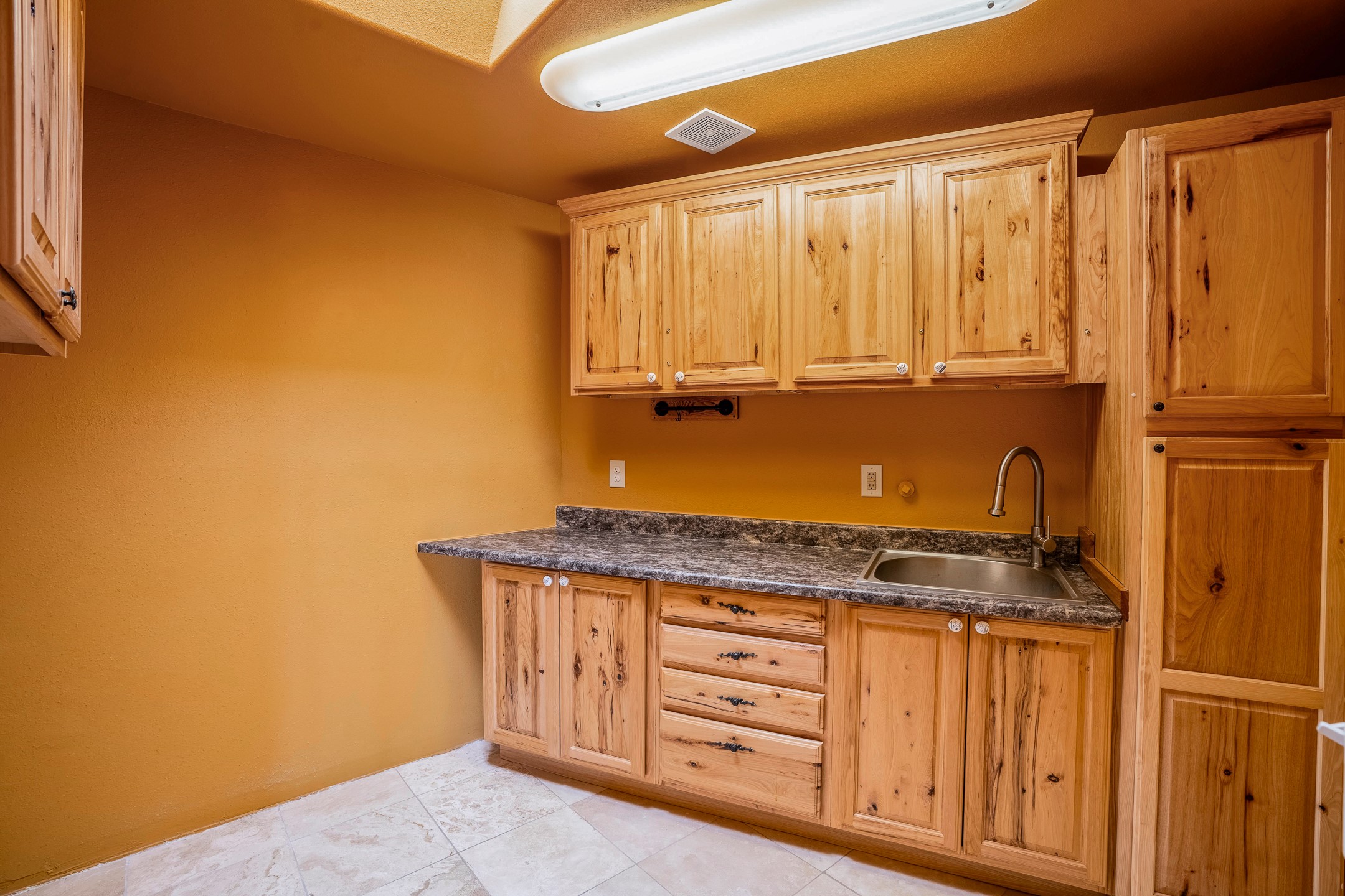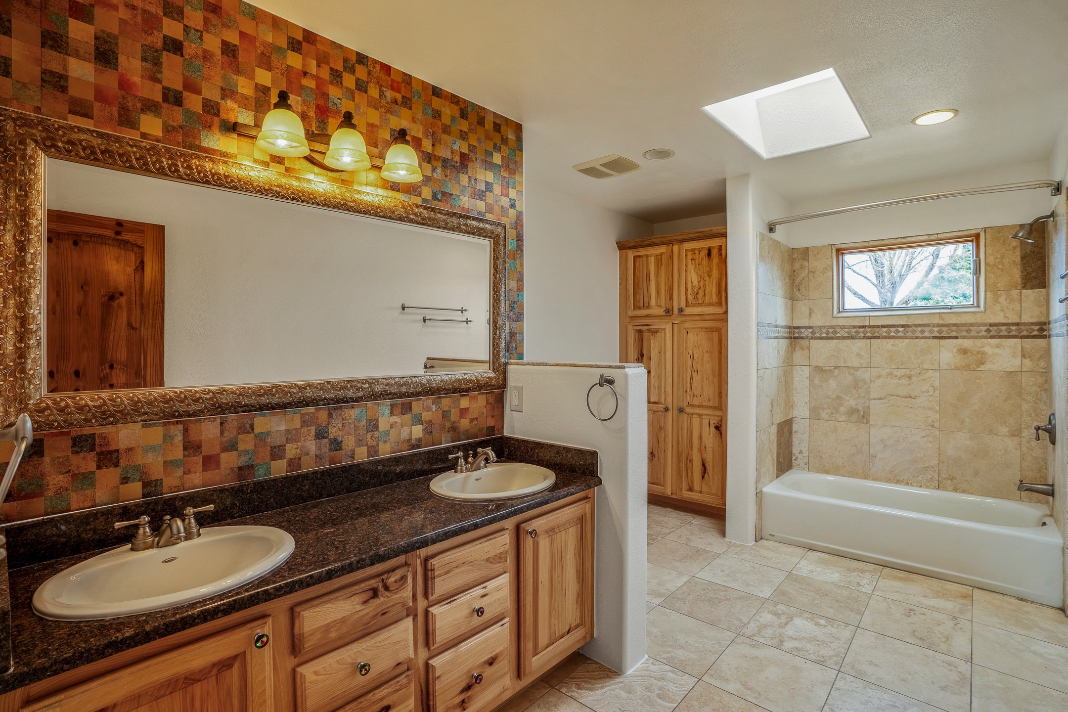 This beautiful single-level home boasts a spacious 2,727 +/- square foot split-bedroom floor plan with 4 bedrooms, a sunroom, 3 full baths, and a 3-car garage. 2025: home has been appx 80% re-stuccoed, & is situated on a fenced & gated 2.5-acre lot with breathtaking mountain views in all directions, offering a serene rural setting allowing horses, no HOA, just minutes from hospitals, restaurants, & grocery stores. The large kitchen is a chef's dream, featuring NEW MOSAIC TILE BACKSPLASH, abundant cabinetry & drawers for ample storage, granite countertops, an island/breakfast bar, pantry and stainless-steel appliances. Adjacent to the kitchen is the formal dining room with tiled accents and plaster finished wall/ceiling. The grand living room impresses with high ceilings, vigas, can lighting, and a REMODELED GAS FIREPLACE WITH MANTLE. From the living room, step into the NEW SUNROOM, which opens to a NEW COVERED PORCH perfect for relaxing & enjoying the views. The spacious owner's suite has NEW ENGINEERED WOOD FLOORING, walk-in closet with built-ins, vigas with tongue & groove ceiling and a ceiling fan. The ensuite bath has a NEW TUB, NEW LOVELY TILED SHOWER, AND NEW DOUBLE SINK VANITY. Additional bedrooms are thoughtfully designed with ample space & functionality. The hall bath has been updated with a NEW VANITY, while the laundry room, complete with plentiful cabinets and drawers, a skylight, and an NEWELY ADDED SINK, offers convenience and style. Many wonderful features and amenities include: Radiant heat-2 Evaporative cooling units-Tons of skylights-Wood doors-NEW PERGOLA-NEW 16X16 TUFF SHED (13K)-Plaster finish walls-Hunter Douglas blinds-Ceiling fans-NEW BRICK TILED ACCENT WALLS in hallway-Plenty of wall space for artwork-FRESHLY PAINTED INTERIOR (Almost every room)-Multiple covered enclosed patios, perfect for outdoor living, and entertaining. This property combines comfort and functionality with stunning views. Please read agent only remarks.