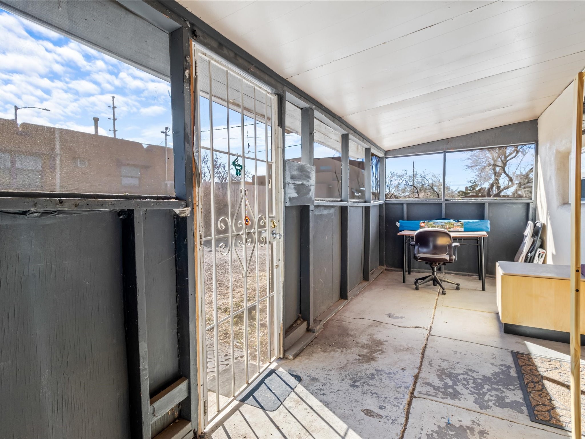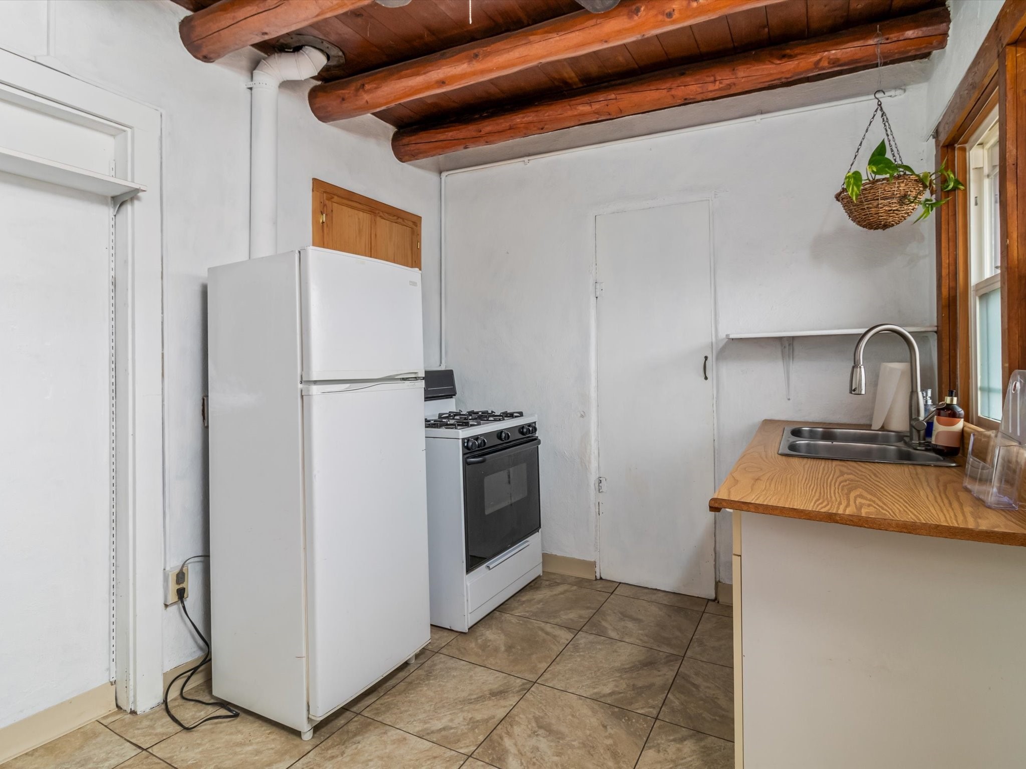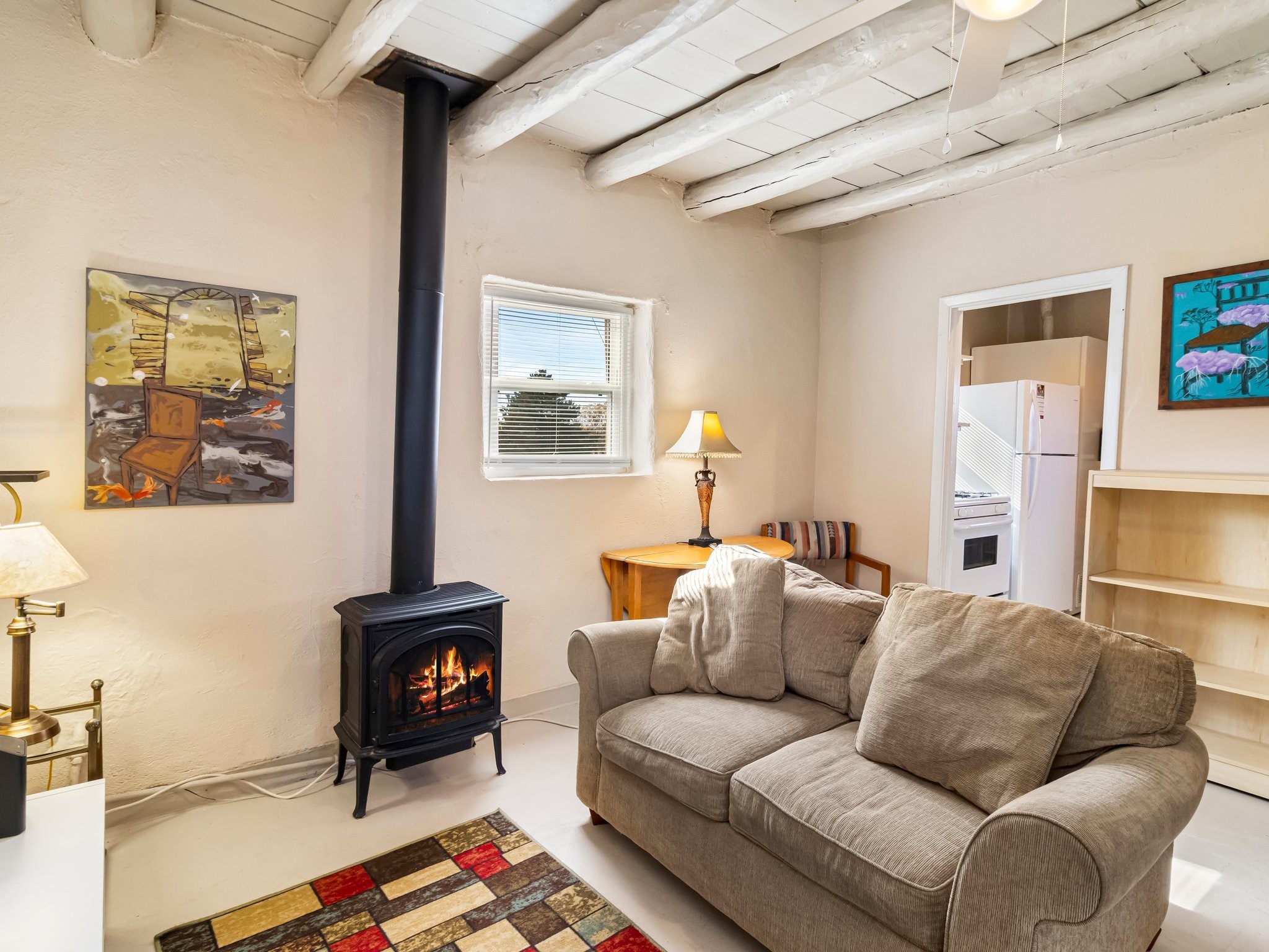 Welcome to 1217 Agua Fra Street, a versatile and charming adobe property that offers endless possibilities for families, multigenerational living, or investment opportunities. The main home features 2 bedrooms and 1 bath, complemented by a 1-bedroom, 1-bath attached unit. The main living area showcases Saltillo tile flooring, known for its durability AND scratch resistance making it a practical yet stylish choice. Lots of Santa fe Charm with wood ceilings and Vegas. In the back, you'll find a spacious 2-bedroom, 1-bath casita that exudes the same quintessential Santa Fe charm. Both homes highlight stunning adobe walls and authentic wood vigas, creating a warm and inviting atmosphere. Situated in the heart of Santa Fe, this property is perfectly positioned for easy access to local attractions, dining, and shopping. Ample parking and flexible zoning (C-1) add to its appeal, offering potential for additional development or creative uses. Don't miss the opportunity to own a piece of Santa Fe's rich heritage and vibrant culture. Contact us today to schedule your private tour!