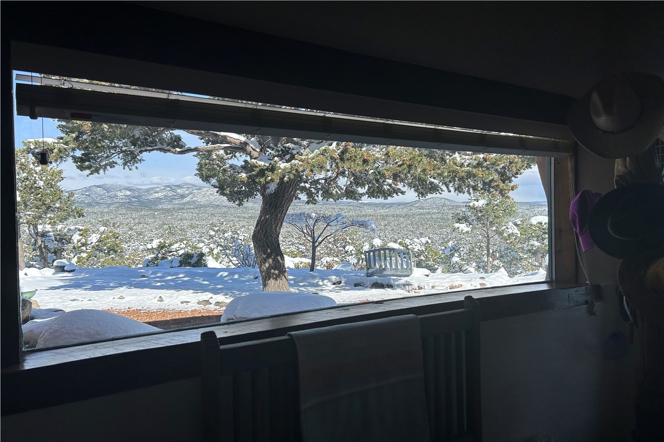 Discover a rare one-of-a-kind Hacienda w/ Studio on 6+ acres boasting dramatic rock outcroppings, sweeping views of Apache Ridge, Rowe Mesa and the Sangre de Cristos in a private pristine setting, just 20 minutes from the Santa Fe Plaza. Perched on a hillside to capture the breathtaking surroundings, this custom-built adobe Pueblo-style gem offers incredible craftsmanship, rounded architecture and unparalleled custom artisan touches. Soaring ceilings w/massive wood vigas throughout, exquisite Saltillo tile, cherry, hardwood and brick floors, rounded art walls curved arches, heavy antique carved doors, a walnut staircase, built-in bancos, recessed nichos, multiple portals and skylights abound. The current owners have thoughtfully renovated the house to add a sense of grand luxury. An added 2-car garage w/custom cabinetry includes an attached studio w/private entry. Follow the path to a small hobbit house-like hideaway to enjoy the exhilarating mountain air and views. Another path leads to a 2-3 stall barn/workshop.The floorplan moves effortlessly between indoor and outdoor living to showcase the arresting views and superb landscaping. The primary suite boasts a private deck, adjoiningsitting room w/curved window walls, custom closets, one cedar lined, a spa-like bath w/giant jetted soaking tub and private courtyard. The kitchen highlights rich cherryvcabinetry, wood-burning stove and opens to a spacious dining room w/patio. Rounded architecture flows seamlessly into the living room w/panoramic bays of passive-solar windows, bancos, a large Kiva wood-burning fireplace, and main portal access.Other spaces include an office, spacious media/family room, two additional bedrooms, one w/private entry and patio, a mudroom, plus a versatile flex room, ideal for an overflowbedroom. This home is truly an architectural wonder to experience. With its incredible craftsmanship, artisan details and never-ending vistas, 8 Hampton Road marries luxury w/privacy and historic charm.