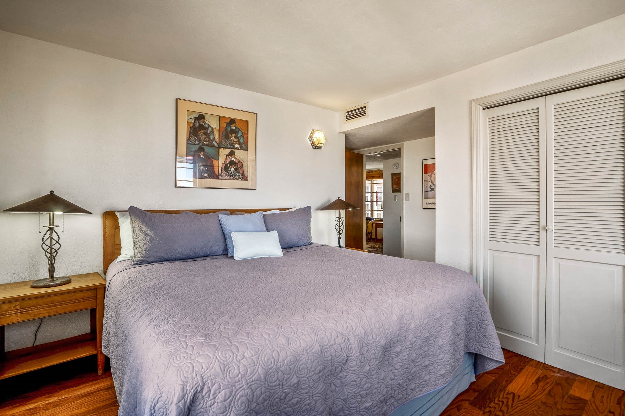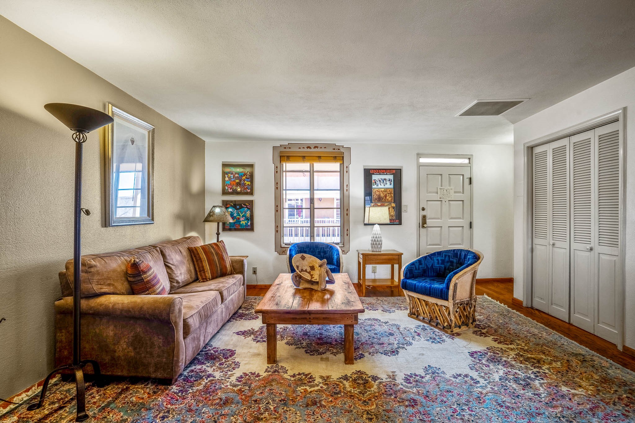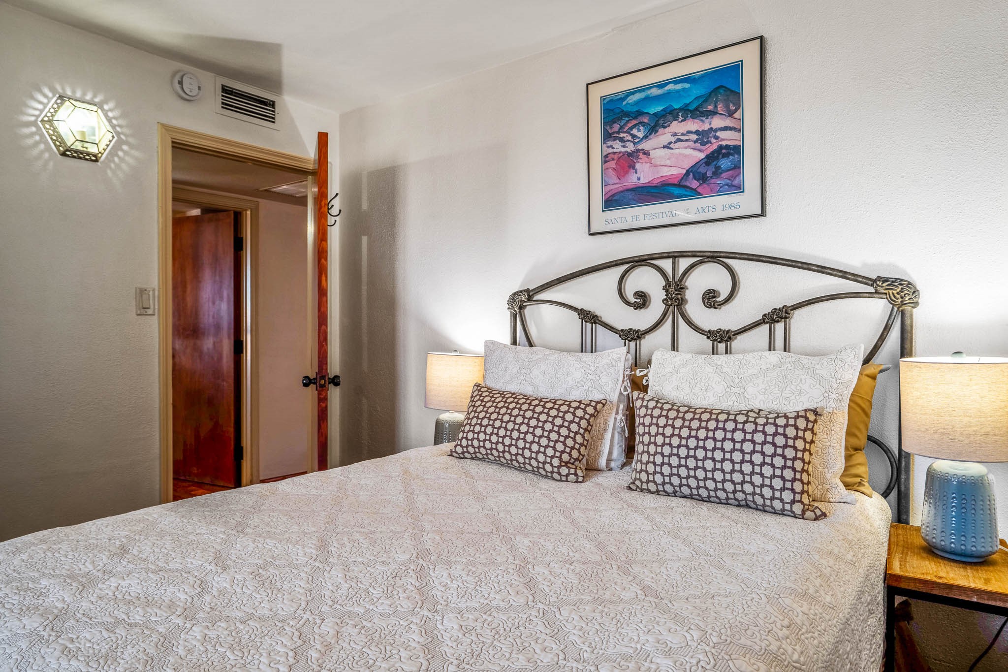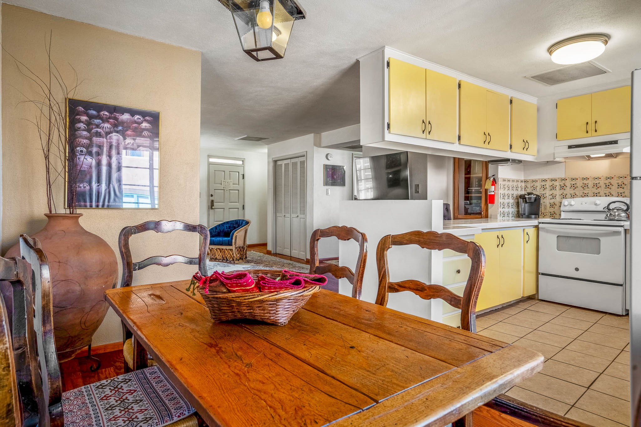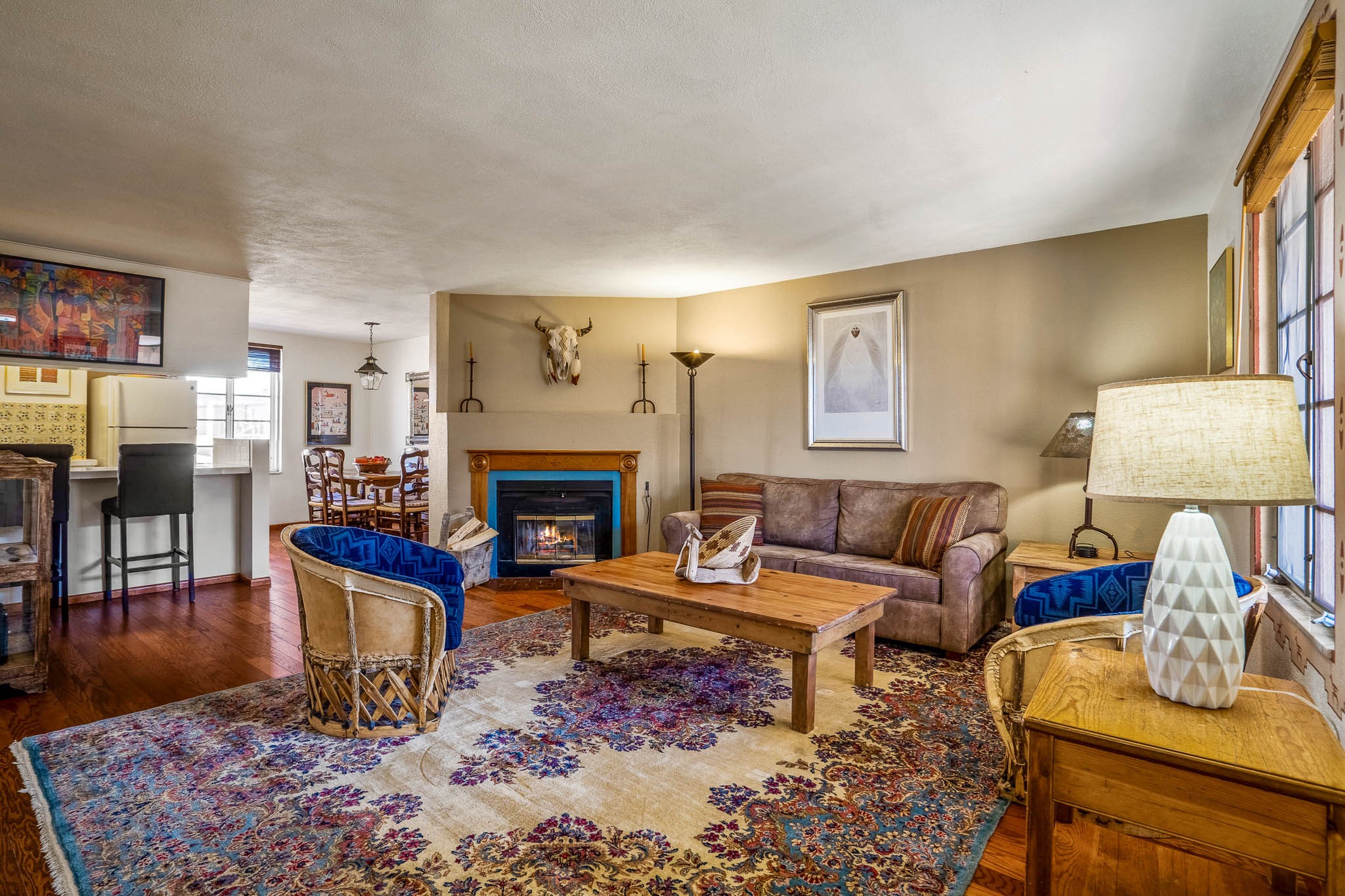Make your dream of spending Christmas and New Year's in Santa Fe a reality every year with this rare opportunity to own a fractional share in a Boutique Historic Timeshare Residence. Offering fixed weeks 51 and 52 annually, this property allows you to enjoy the magic of the season in one of the most sought-after locations in Santa Fe.Perfectly situated near the historic Santa Fe Plaza, this residence offers unparalleled convenience, with private parking and all the essential amenities. Step outside, and you'll find yourself just a short walk from the city's renowned galleries, exquisite restaurants, and high-end shopping.The complex is intimate and exclusive, consisting of just 18 units--10 one-bedroom and 8 two-bedroom residences--providing a serene and private retreat. This particular unit, Casa de Suenos, is the largest in the complex and features a spacious 920 sqft of living space. It includes two bedrooms, one full bath, a large living and dining area, and a fully equipped kitchen perfect for preparing meals with family and friends.Additional highlights of this unit include a cozy wood-burning fireplace, ideal for winter evenings, and a private second-floor deck with stunning views. The balcony offers an extra touch of outdoor space, making it the perfect spot to unwind after a day exploring Santa Fe.