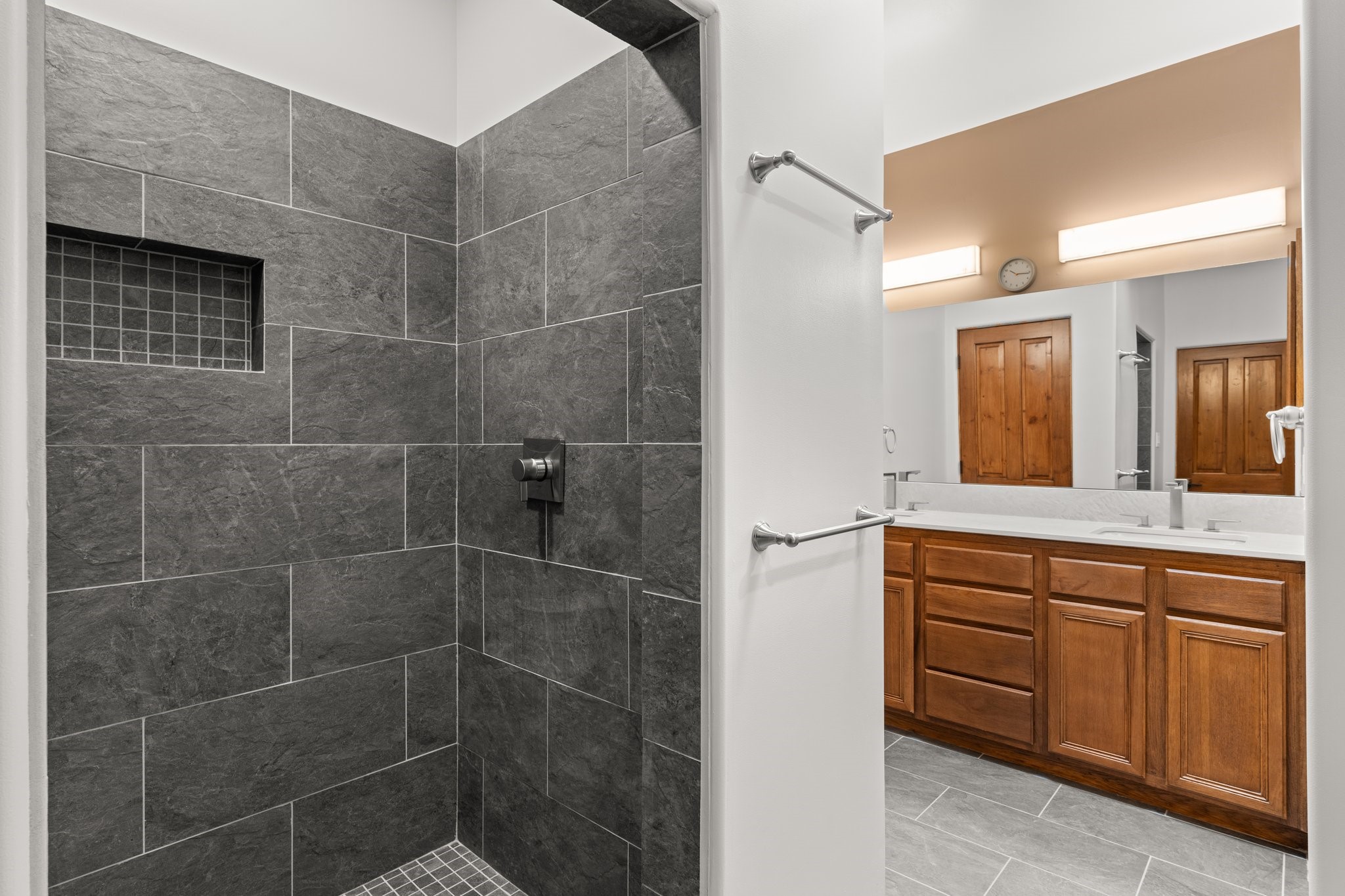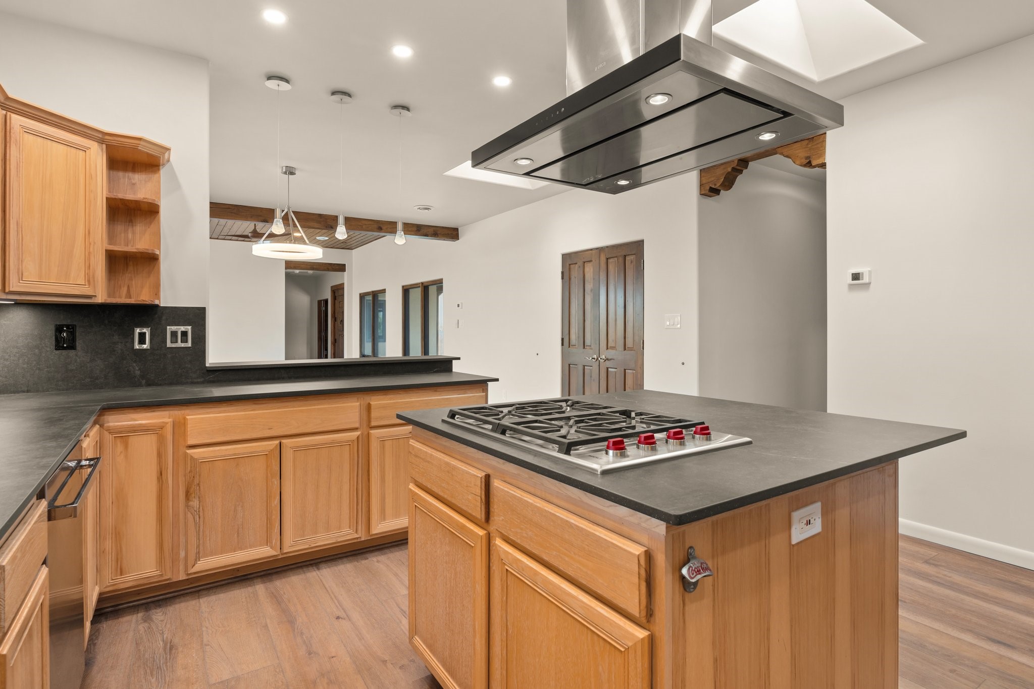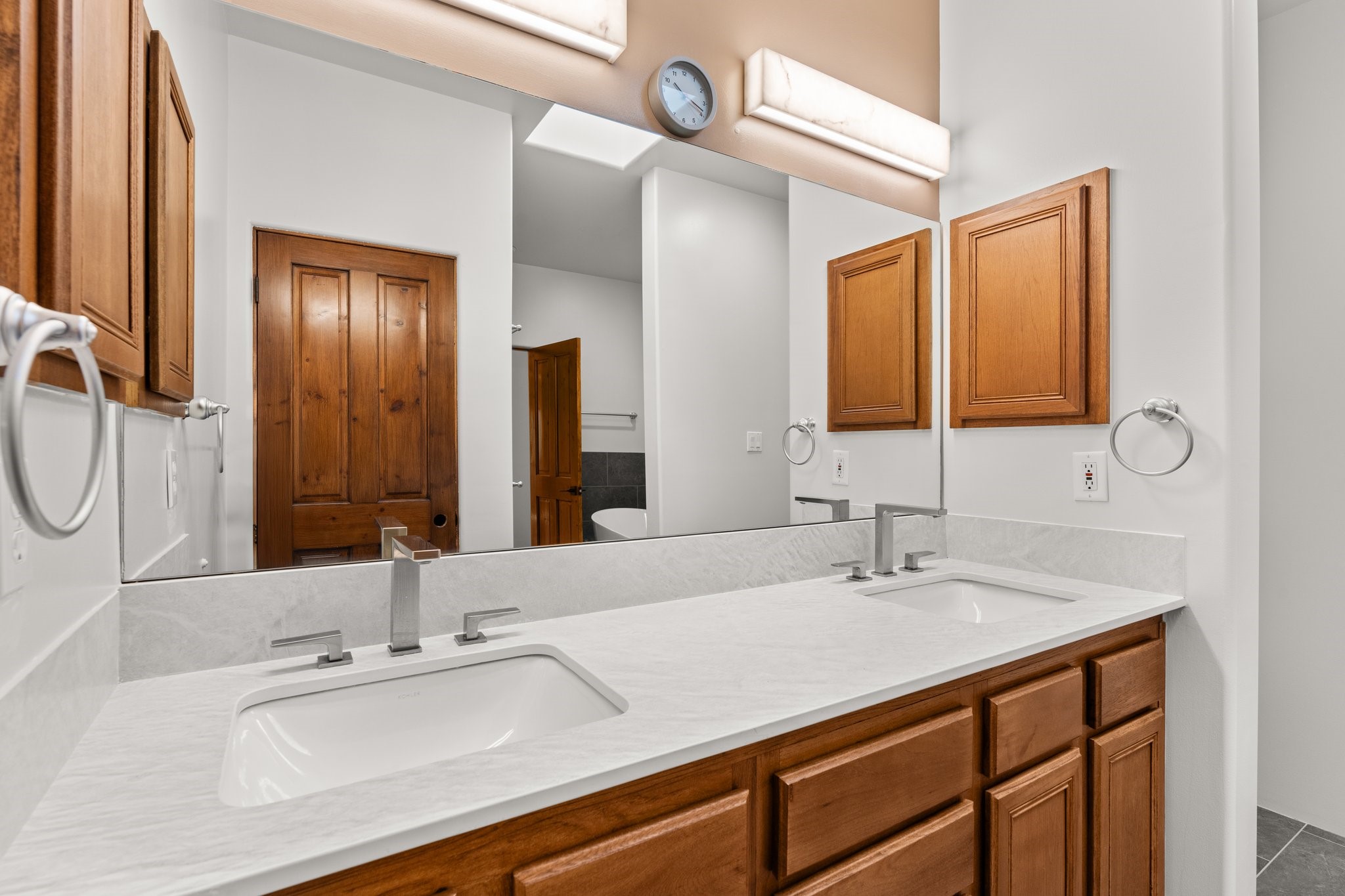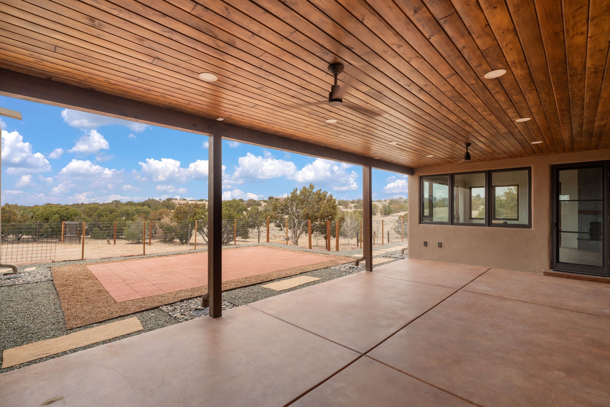 SPECTACULAR ELDORADO ESTATE! Spa living in this extraordinary property with end of the road privacy, mountain views sited on a greenbelt. An endless pool and hot tub have their own room with rain showerhead and room for exercise equipment. In-floor radiant heat with a new HVAC system for back up heating and air conditioning. Generous great room includes dining room and opens to kitchen with Dekton countertops, 2002 stainless appliances, large pantry and an island. Primary wing has library/office with viga ceilings and gas fireplace. Primary bedroom has a private portal and enormous walk-in closet. Primary bath has double sinks, soaking tub and separate shower. Separate guest wing has two bedrooms and a full bath. There is a den/media room off the spa area with a data room for the systems, CAT-6 wifi. Walled front courtyard with covered areas for seating. Fully fenced back yard with large covered portal. California closet systems throughout including kitchen pantry. Solar panels are owned and provide some back up power in the event of an outage.. Large 2.4 acre lot bordering open space with approved RV parking with two areas for hook ups. Proper laundry room with storage and new LG washer/dryer. Approximately 9,000 square feet of fencing. Two sheds, both with electricity. Whole house water filtration. New windows and doors throughout. Three-car finished garage. LIST OF UPGRAGES IN SUPPLEMENTS.