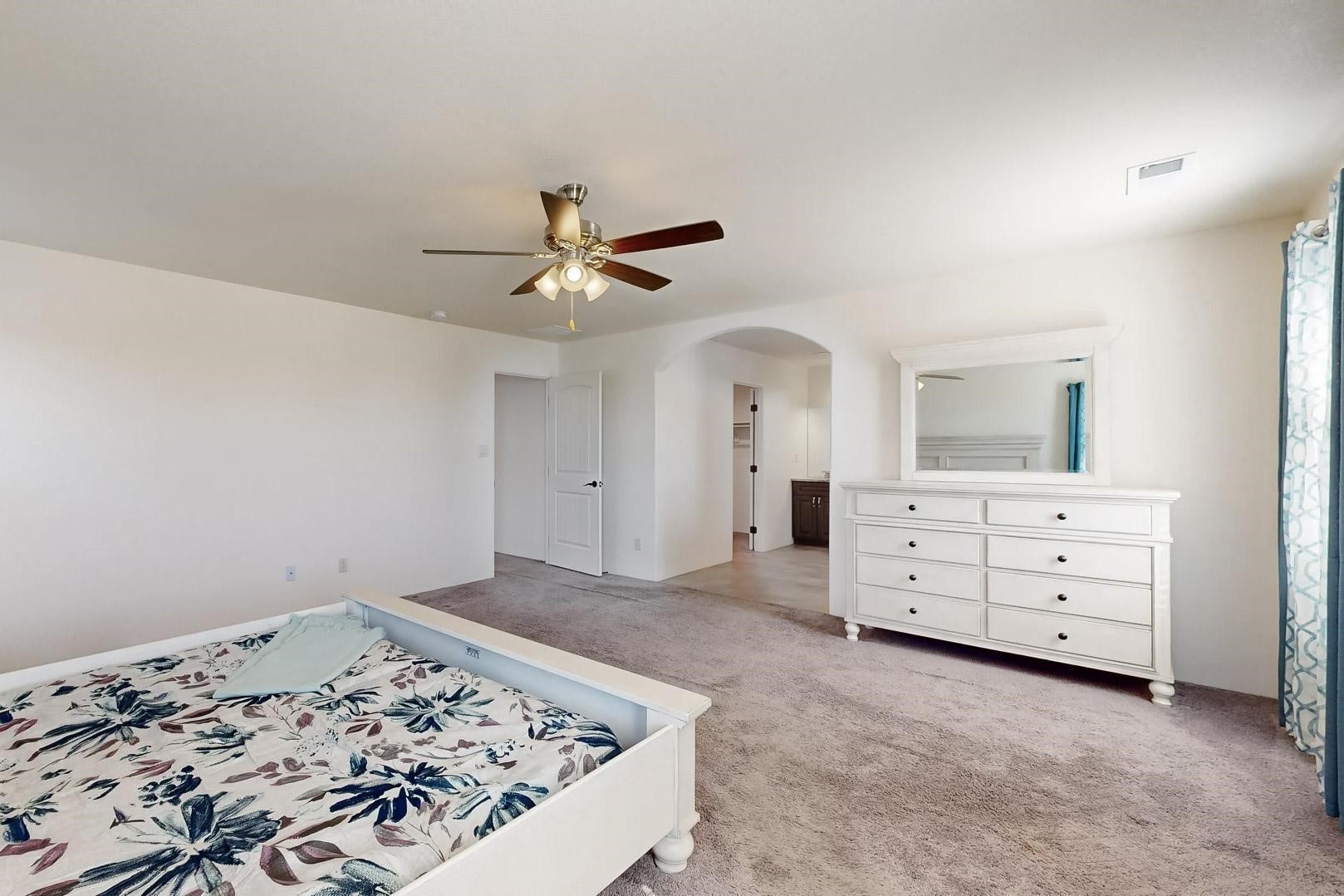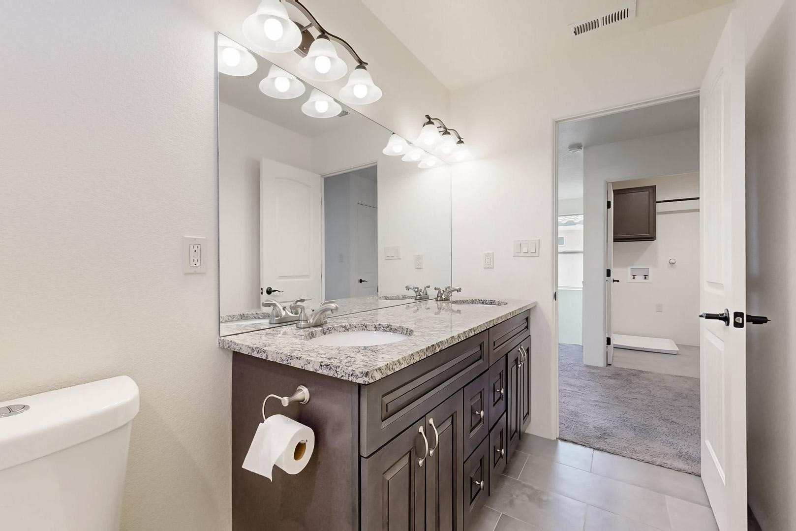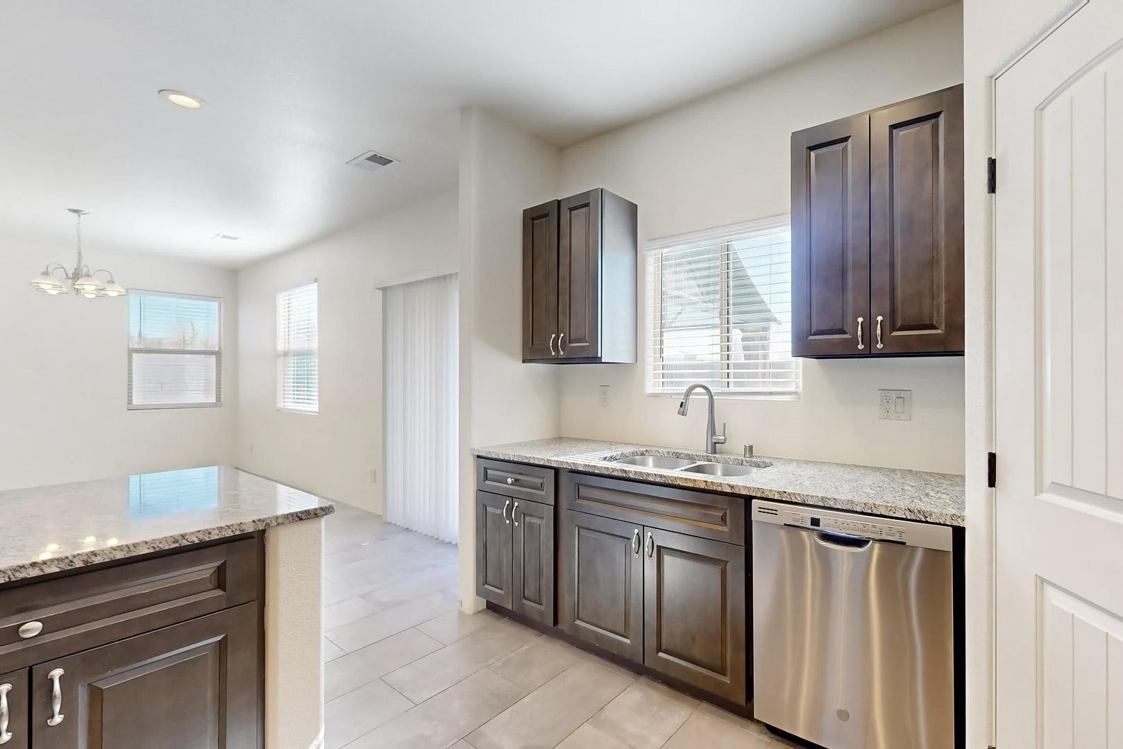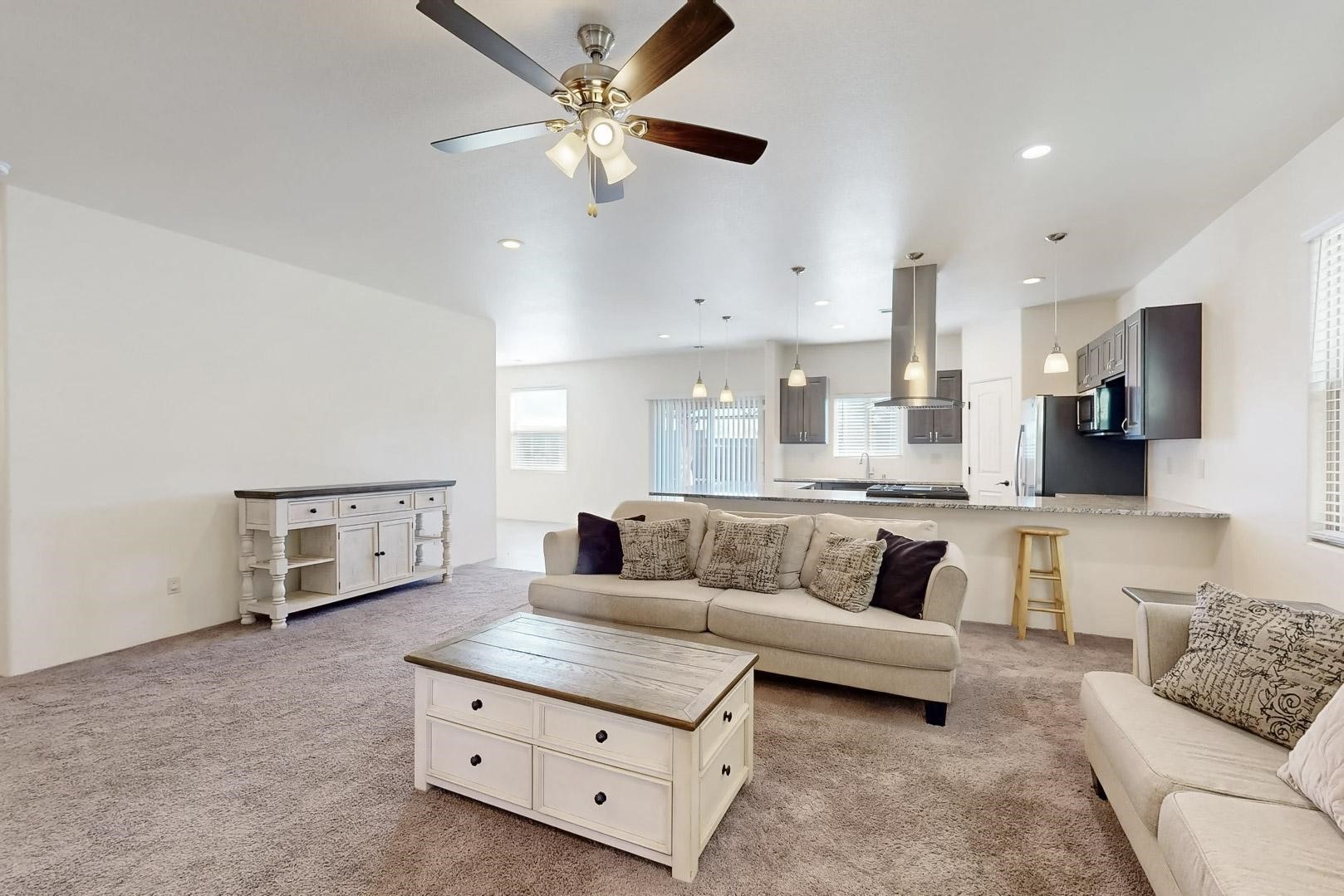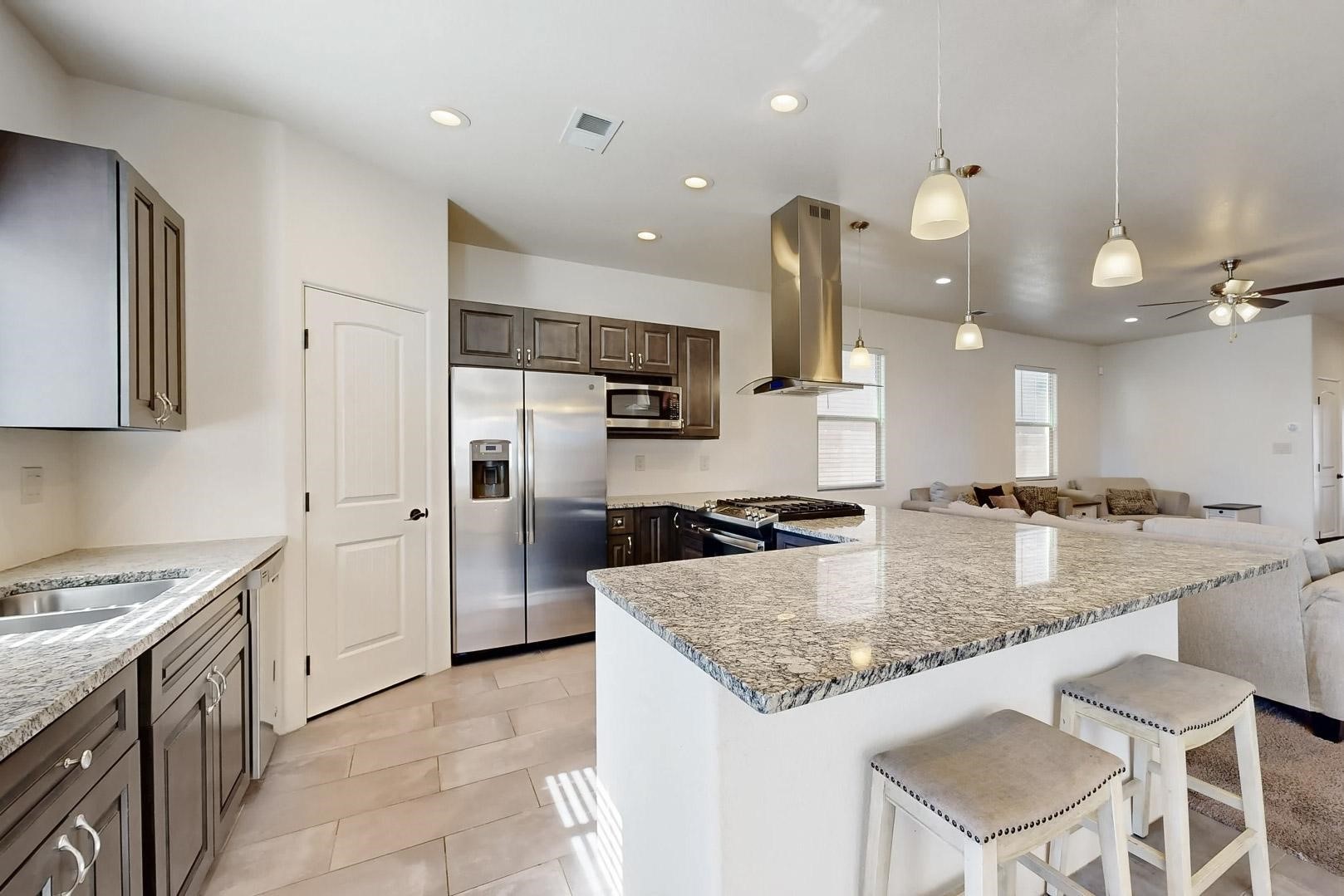 This spacious home has it all! Built at the end of 2019 in the Casas Bonitas subdivision, this home boasts 5 bedrooms, 3 bathrooms, and two living areas. On the main level you will find one bedroom, one bathroom, a chef's kitchen with granite countertops, stainless steel appliances, a pantry, and an abundance of tasteful cabinets. Off the kitchen, the dining room is ideal for family breakfasts or intimate dinners and the living room, although large, is cozy and homey. Upstairs you'll find the generously sized primary suite, complete with dual vanities, a soaking tub, a separate shower, and a walk-in closet, three additional bedrooms, a third bathroom, the laundry room and a large loft. Outside, enjoy fully landscaped front and back yards, complete with patios, a pergola, dog run, and a large space that can be used for RV parking, storage or additional vehicles. The backyard is walled and there are no adjoining neighbors behind the home. Additional highlights include granite countertops throughout the home, a finished two-car garage, solar, refrigerated air, tankless water heater, dual zone furnace, energy-efficient systems and green certification.