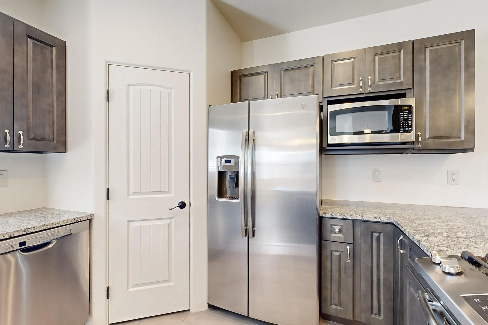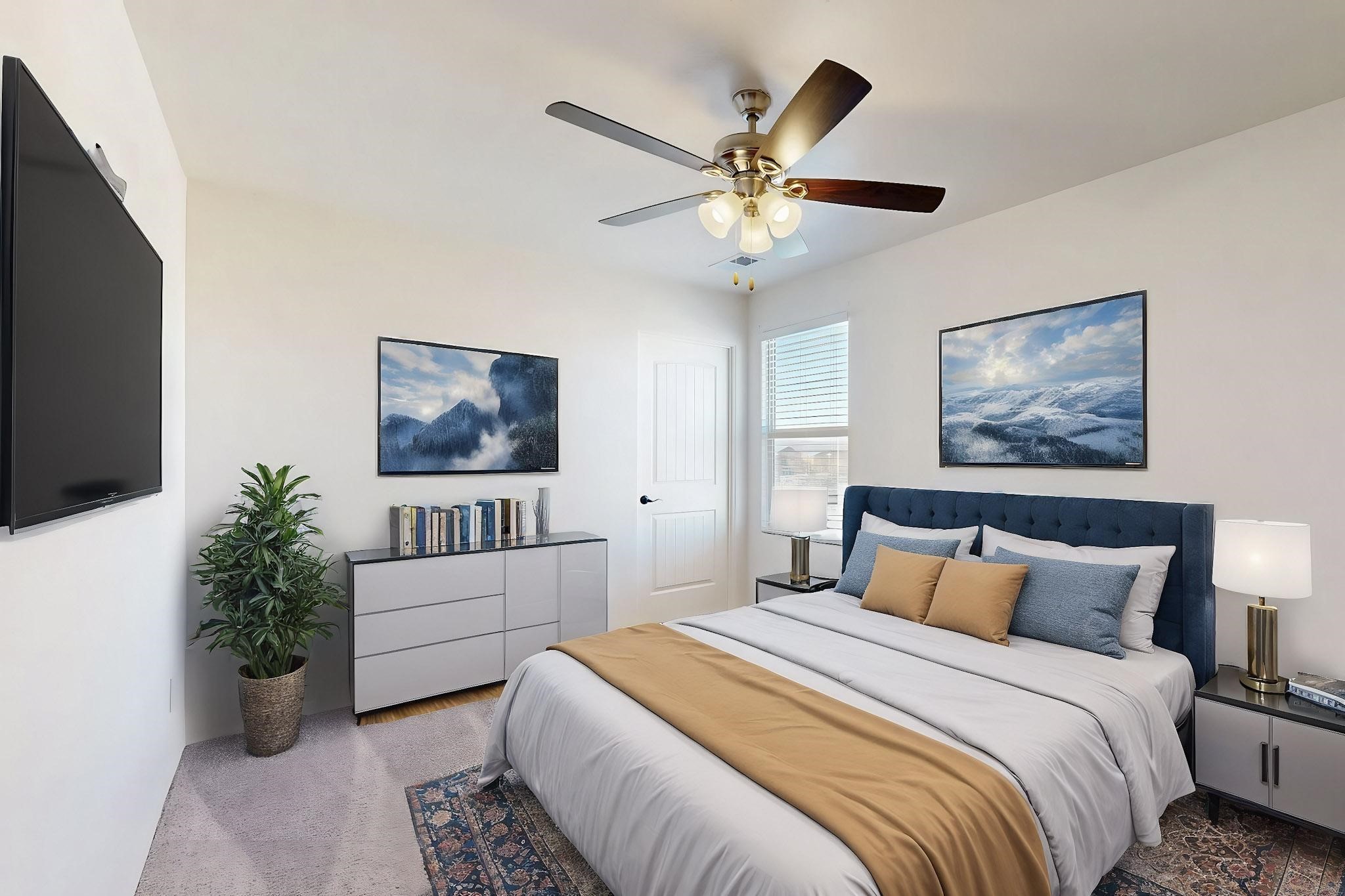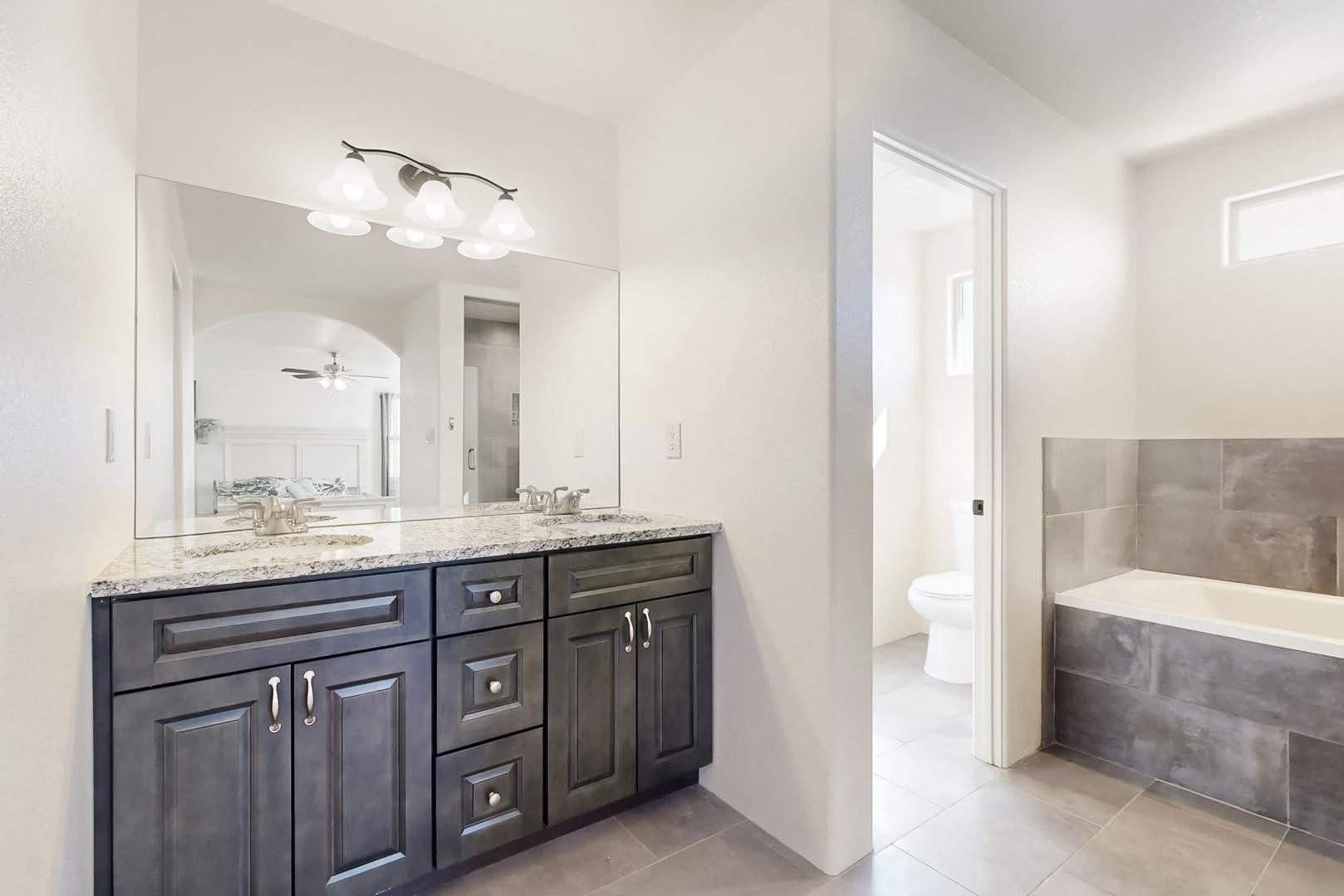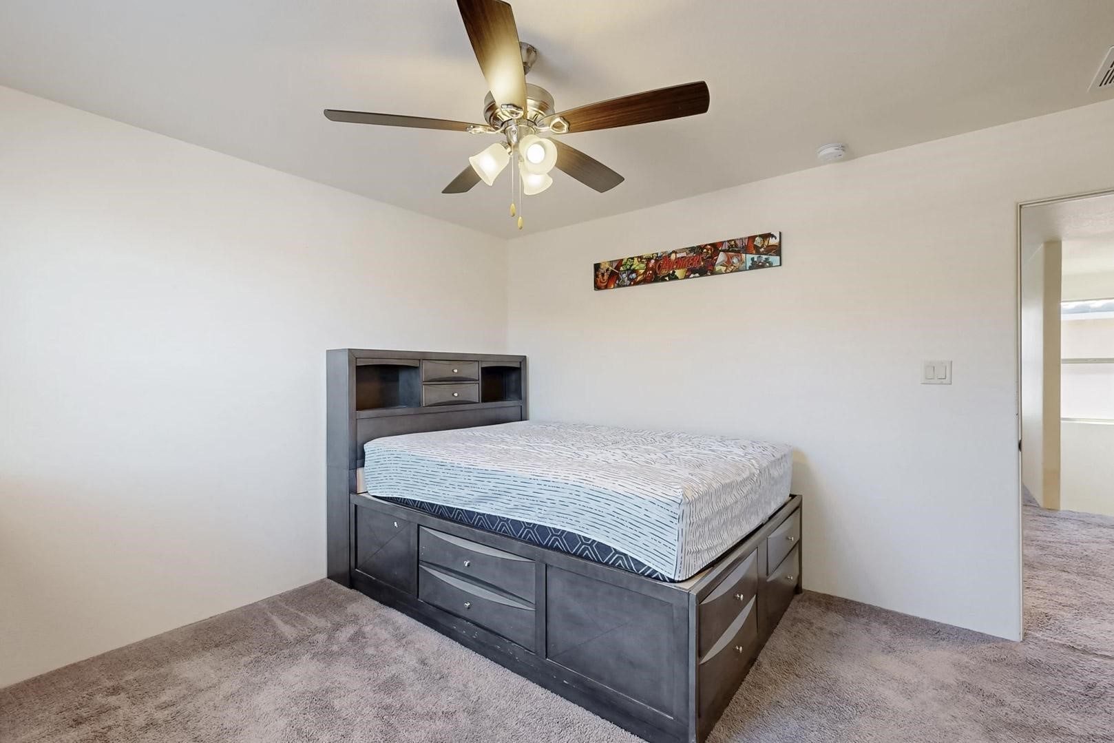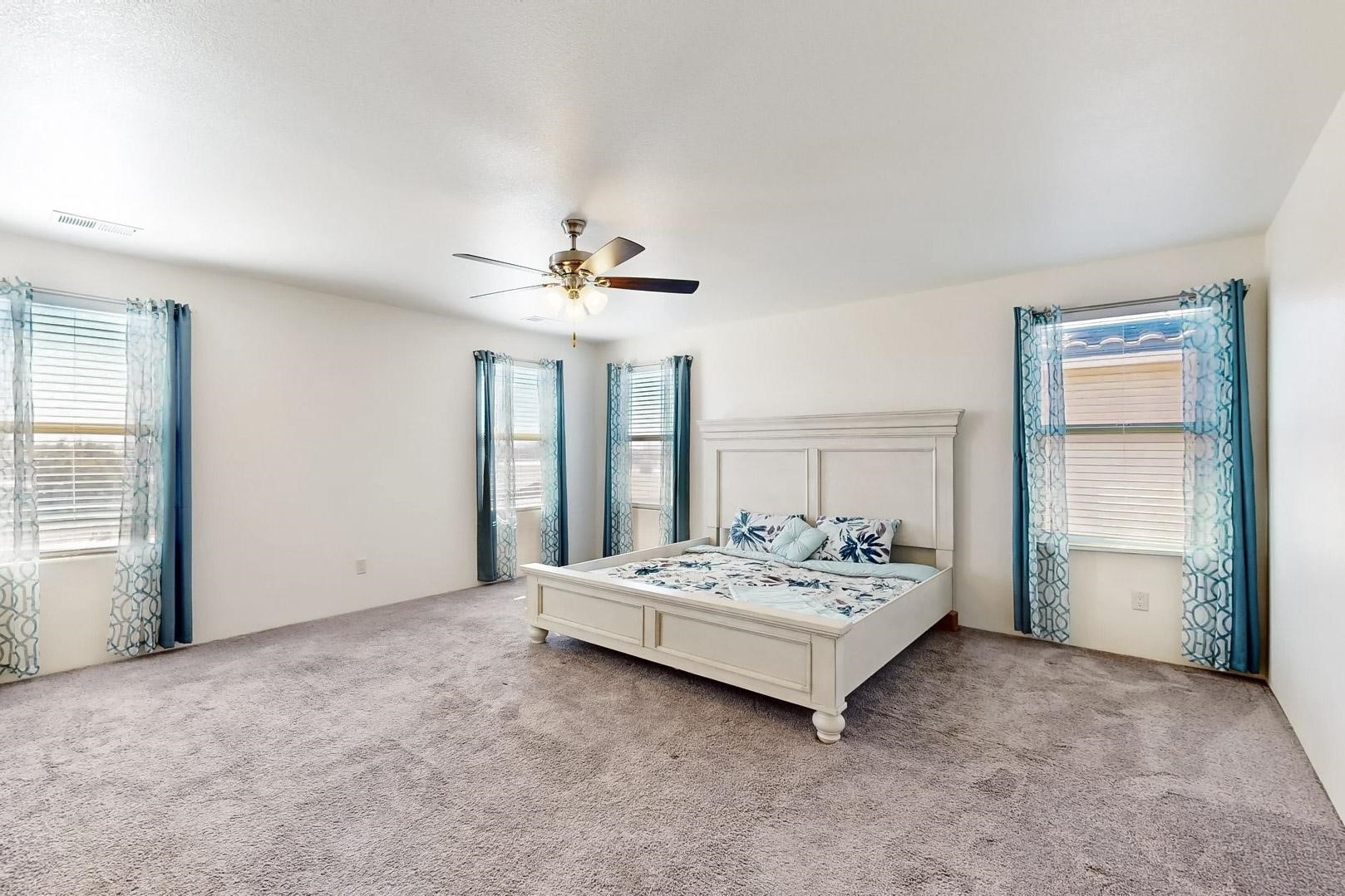 This spacious home has it all! Built at the end of 2019 in the Casas Bonitas subdivision, this home boasts 5 bedrooms, 3 bathrooms, and two living areas. On the main level you will find one bedroom, one bathroom, a chef's kitchen with granite countertops, stainless steel appliances, a pantry, and an abundance of tasteful cabinets. Off the kitchen, the dining room is ideal for family breakfasts or intimate dinners and the living room, although large, is cozy and homey. Upstairs you'll find the generously sized primary suite, complete with dual vanities, a soaking tub, a separate shower, and a walk-in closet, three additional bedrooms, a third bathroom, the laundry room and a large loft. Outside, enjoy fully landscaped front and back yards, complete with patios, a pergola, dog run, and a large space that can be used for RV parking, storage or additional vehicles. The backyard is walled and there are no adjoining neighbors behind the home. Additional highlights include granite countertops throughout the home, a finished two-car garage, solar, refrigerated air, tankless water heater, dual zone furnace, energy-efficient systems and green certification.