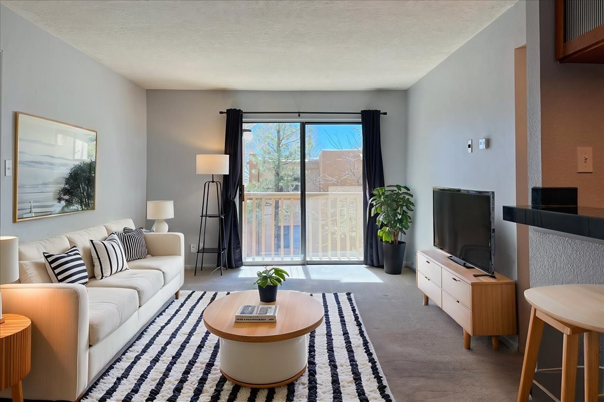 Bright & Stylish 1-BR Condo with Modern Updates!Welcome to The Reserve at Santa Fe--a secure, gated community just minutes from the historic Plaza! This prime 2nd-floor unit boasts stunning south-facing mountain views and no upstairs neighbors for added peace and quiet.Freshly updated, this condo features brand-new carpet, fresh paint throughout, and stylish new lighting and hardware. The kitchen shines with black marble countertops, rich cherry cabinetry, and brand-new stainless steel appliances, including a new dishwasher and refrigerator. The bathroom has been beautifully refreshed with a resurfaced tub/shower for a sleek, modern feel.Enjoy resort-style amenities, including a heated year-round pool, hot tub, fitness center, clubhouse, and private laundry room. Nestled in a lush 16-acre setting with walking trails and barbecue areas, this home offers both comfort and convenience.Located near the Plaza, Opera, Canyon Road, and De Vargas Center, with easy access to 285 & 599 for Los Alamos commuters--all without freeway noise!This move-in-ready, low-maintenance gem is perfect as a primary residence or investment property. Don't miss out--schedule a tour today!