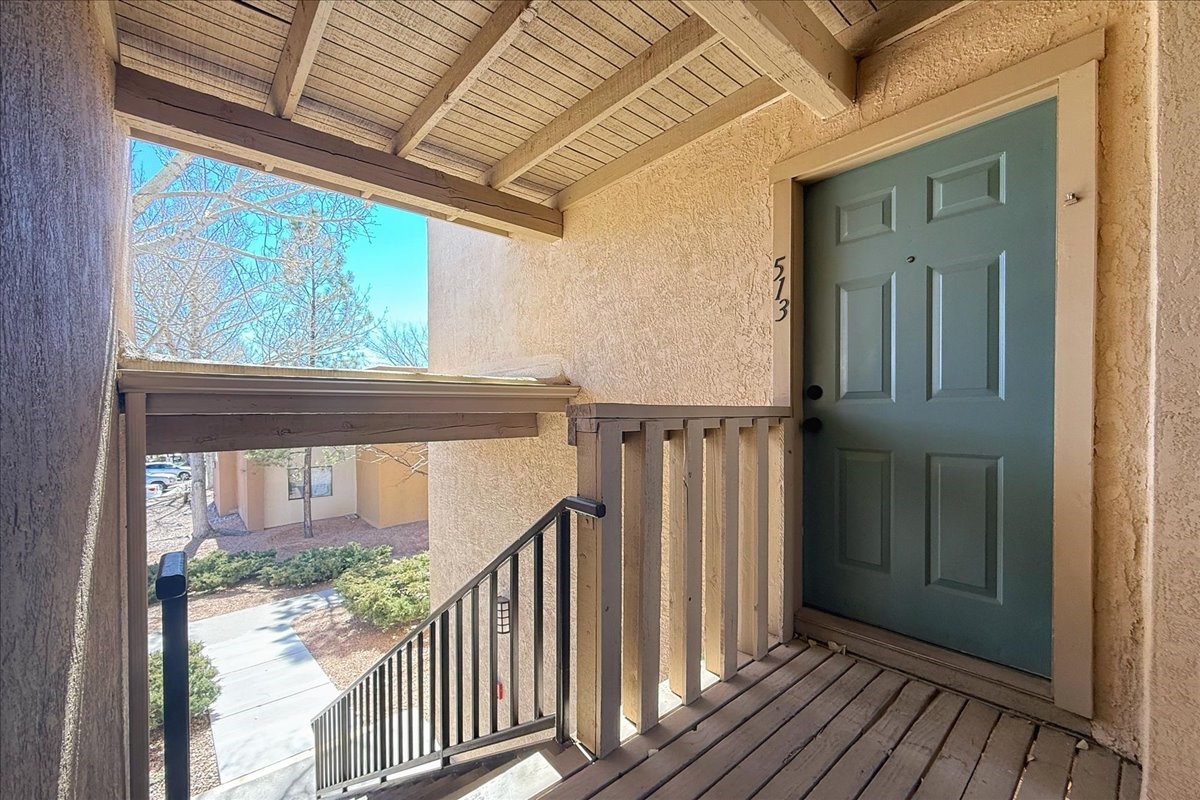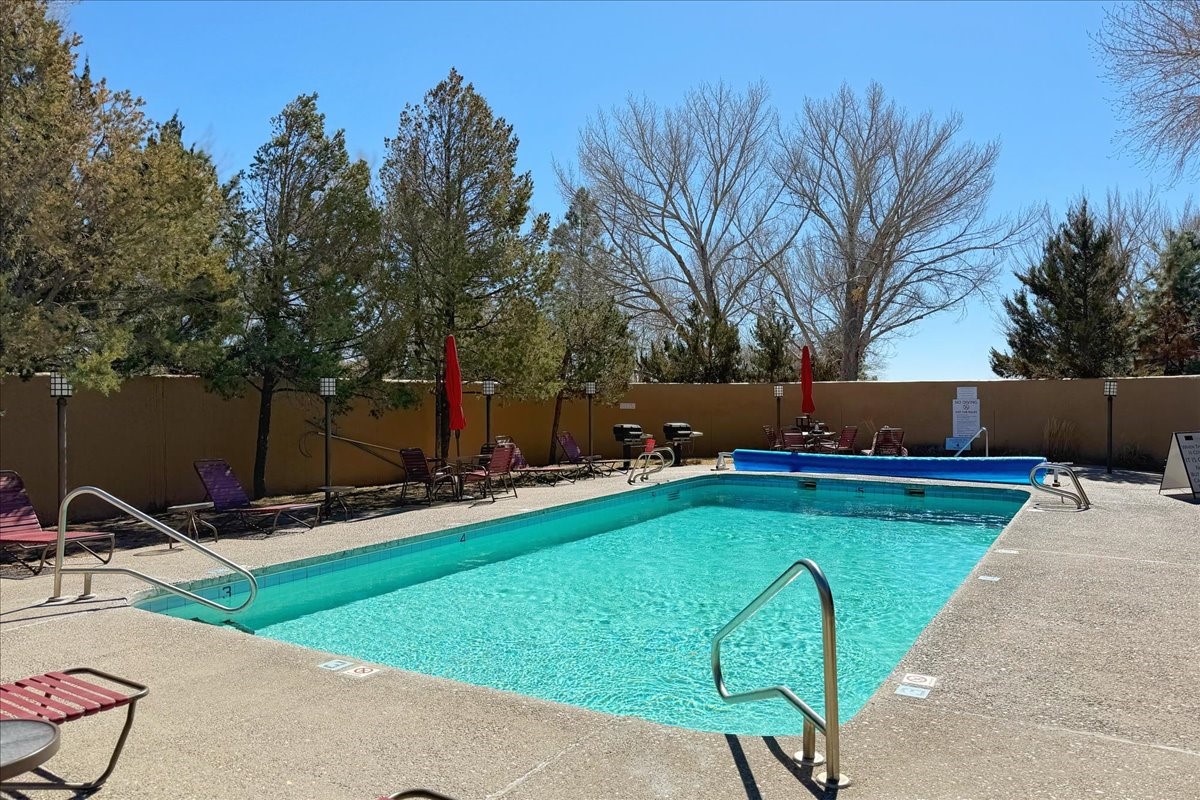 Bright & Stylish 1-BR Condo with Modern Updates!Welcome to The Reserve at Santa Fe--a secure, gated community just minutes from the historic Plaza! This prime 2nd-floor unit boasts stunning south-facing mountain views and no upstairs neighbors for added peace and quiet.Freshly updated, this condo features brand-new carpet, fresh paint throughout, and stylish new lighting and hardware. The kitchen shines with black marble countertops, rich cherry cabinetry, and brand-new stainless steel appliances, including a new dishwasher and refrigerator. The bathroom has been beautifully refreshed with a resurfaced tub/shower for a sleek, modern feel.Enjoy resort-style amenities, including a heated year-round pool, hot tub, fitness center, clubhouse, and private laundry room. Nestled in a lush 16-acre setting with walking trails and barbecue areas, this home offers both comfort and convenience.Located near the Plaza, Opera, Canyon Road, and De Vargas Center, with easy access to 285 & 599 for Los Alamos commuters--all without freeway noise!This move-in-ready, low-maintenance gem is perfect as a primary residence or investment property. Don't miss out--schedule a tour today!