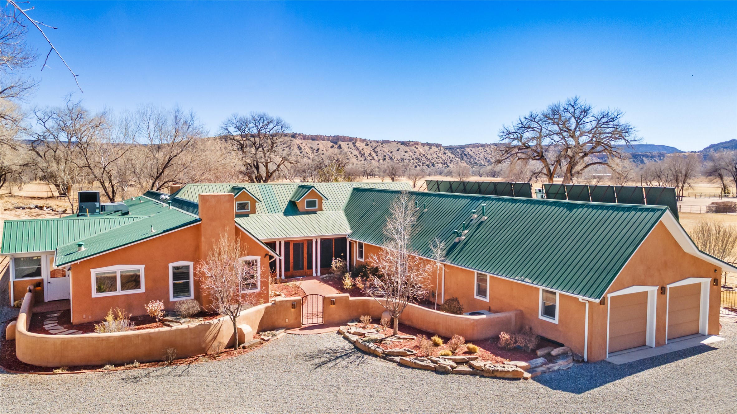 A Northern New Mexico RetreatNestled between Espaola and Abiqui, just 50 minutes from the Santa Fe Plaza and 10 miles from Abiqui, this extraordinary 55-acre estate along the Rio Chama offers a rare blend of privacy, natural beauty, and refined living. With valuable water and irrigation rights, lush pastures, and exclusive private fishing, this retreat is ideal for those seeking both tranquility and adventure.The 3,600 sq. ft. main residence is a sanctuary of comfort and sophistication, featuring two bedrooms, two full baths, and two half baths. Designed for elevated entertaining, the home boasts two full kitchens, a butler's kitchen, large pantry, and expansive living spaces that seamlessly connect to the breathtaking landscape. High ceilings, large windows, and an abundance of natural light enhance the home's airy elegance, while custom finishes reflect the charm of the Southwest. A separate 1,080 sq. ft. 1 bed, 1 bath caretaker's home provides private accommodations for staff or guests.Perfect for equestrian and ranching pursuits, the estate includes a large barn, 8 horse stall barn with a foaling stall, a horse track, and extensive storage buildings. Scenic trails wind through the property, leading to the serene Rio Chama, where you can enjoy exclusive private fishing along your own stretch of riverfront. A tranquil pond, native cottonwoods, and panoramic views create an atmosphere of pure serenity.Beyond its natural beauty, this estate offers limitless potential--whether as a working ranch, equestrian haven, artist's retreat, or luxurious private getaway. Gated for security and privacy, it provides a peaceful yet accessible escape within reach of Northern New Mexico's cultural and outdoor offerings.Experience the perfect balance of luxury, nature, and adventure--where the Rio Chama's gentle waters call you home. For Drone Video go to https://youtu.be/KvkiFsoOq5w