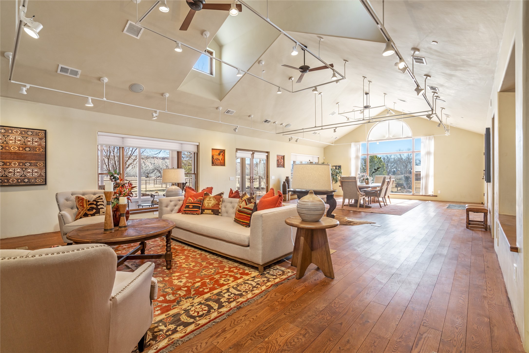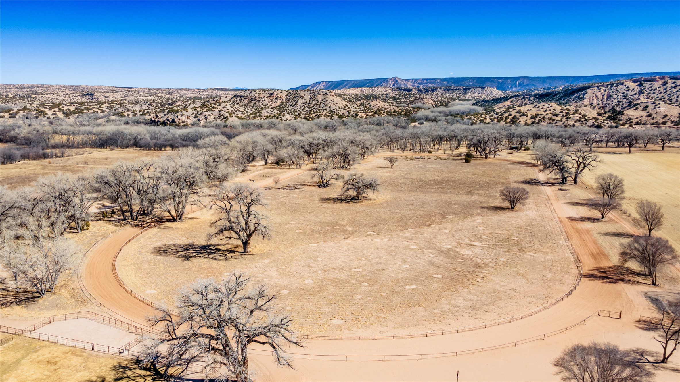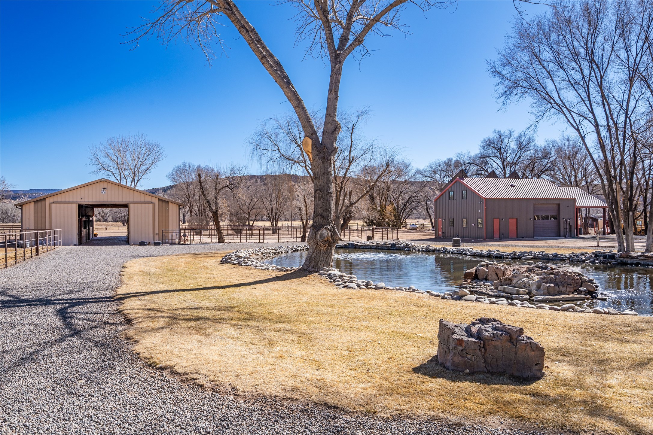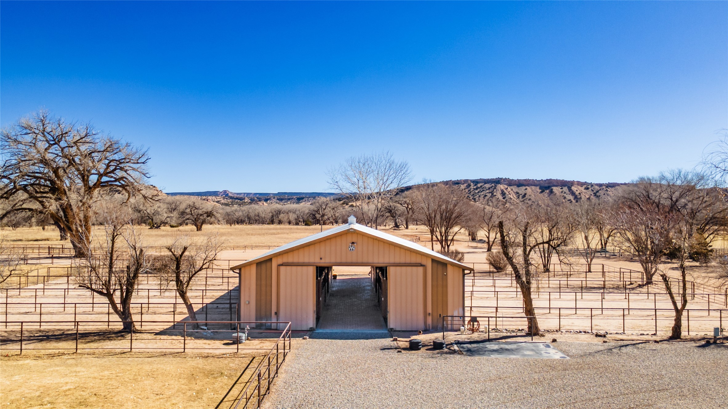 A Northern New Mexico RetreatNestled between Espaola and Abiqui, just 50 minutes from the Santa Fe Plaza and 10 miles from Abiqui, this extraordinary 55-acre estate along the Rio Chama offers a rare blend of privacy, natural beauty, and refined living. With valuable water and irrigation rights, lush pastures, and exclusive private fishing, this retreat is ideal for those seeking both tranquility and adventure.The 3,600 sq. ft. main residence is a sanctuary of comfort and sophistication, featuring two bedrooms, two full baths, and two half baths. Designed for elevated entertaining, the home boasts two full kitchens, a butler's kitchen, large pantry, and expansive living spaces that seamlessly connect to the breathtaking landscape. High ceilings, large windows, and an abundance of natural light enhance the home's airy elegance, while custom finishes reflect the charm of the Southwest. A separate 1,080 sq. ft. 1 bed, 1 bath caretaker's home provides private accommodations for staff or guests.Perfect for equestrian and ranching pursuits, the estate includes a large barn, 8 horse stall barn with a foaling stall, a horse track, and extensive storage buildings. Scenic trails wind through the property, leading to the serene Rio Chama, where you can enjoy exclusive private fishing along your own stretch of riverfront. A tranquil pond, native cottonwoods, and panoramic views create an atmosphere of pure serenity.Beyond its natural beauty, this estate offers limitless potential--whether as a working ranch, equestrian haven, artist's retreat, or luxurious private getaway. Gated for security and privacy, it provides a peaceful yet accessible escape within reach of Northern New Mexico's cultural and outdoor offerings.Experience the perfect balance of luxury, nature, and adventure--where the Rio Chama's gentle waters call you home. For Drone Video go to https://youtu.be/KvkiFsoOq5w