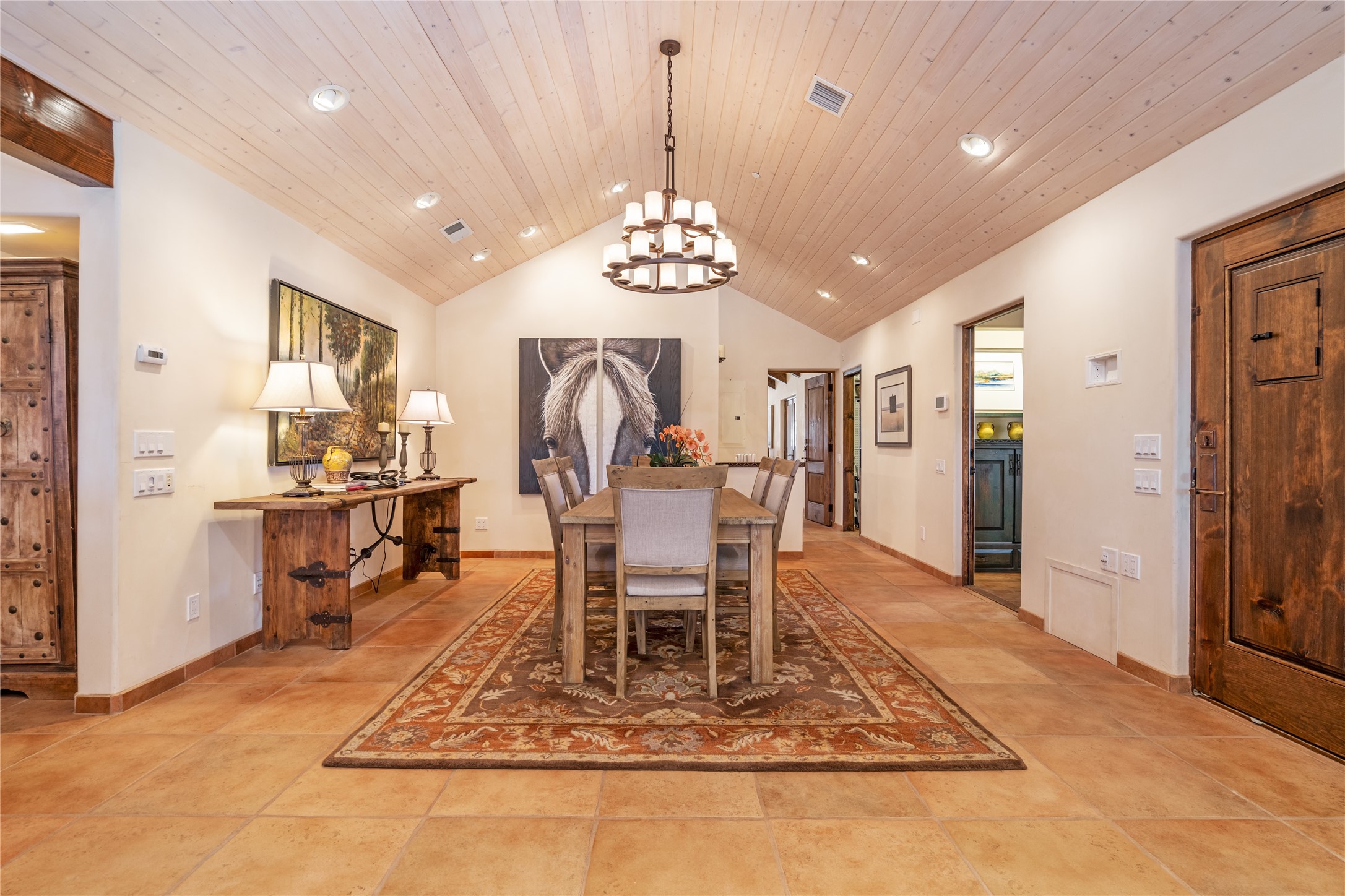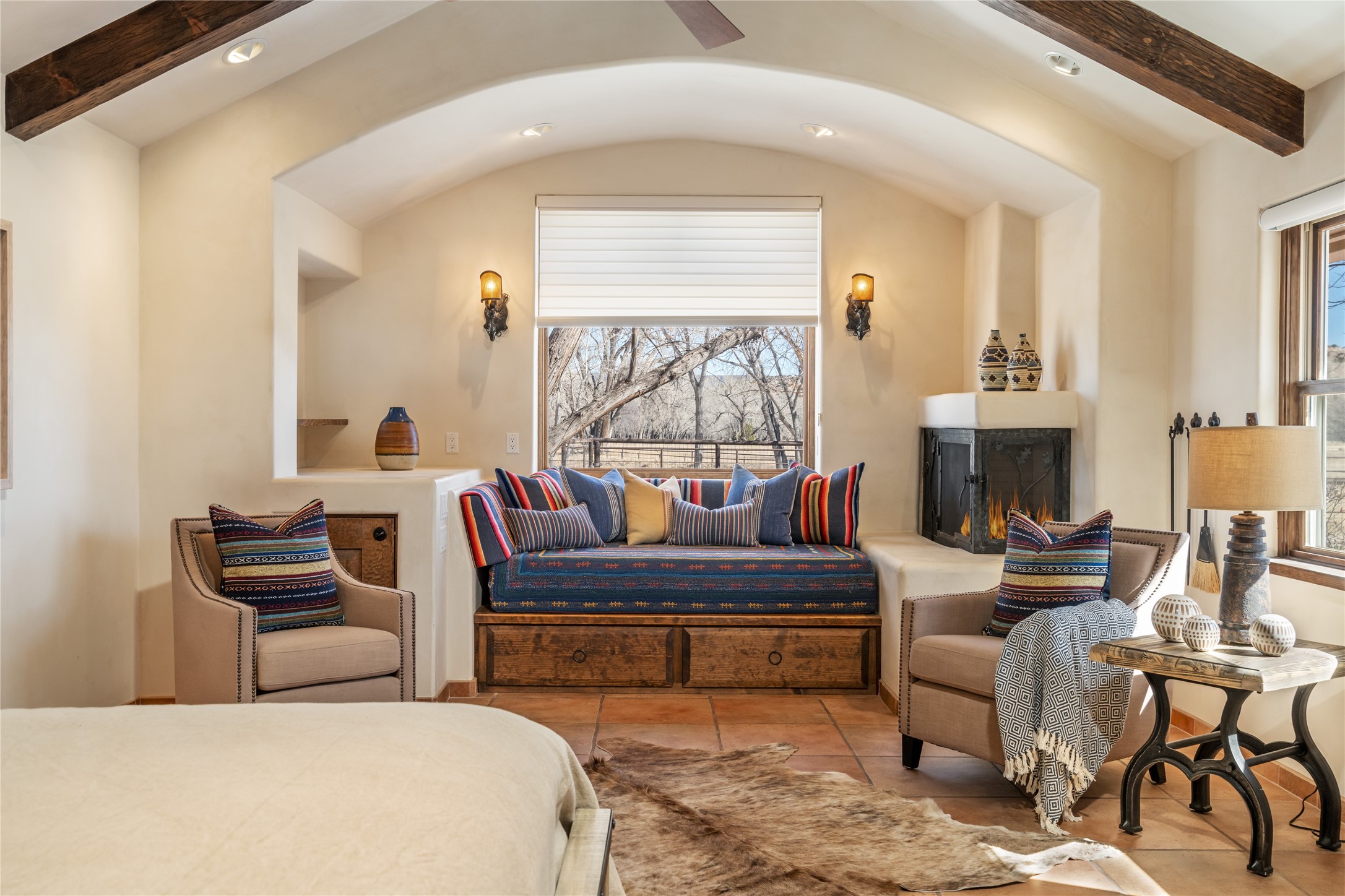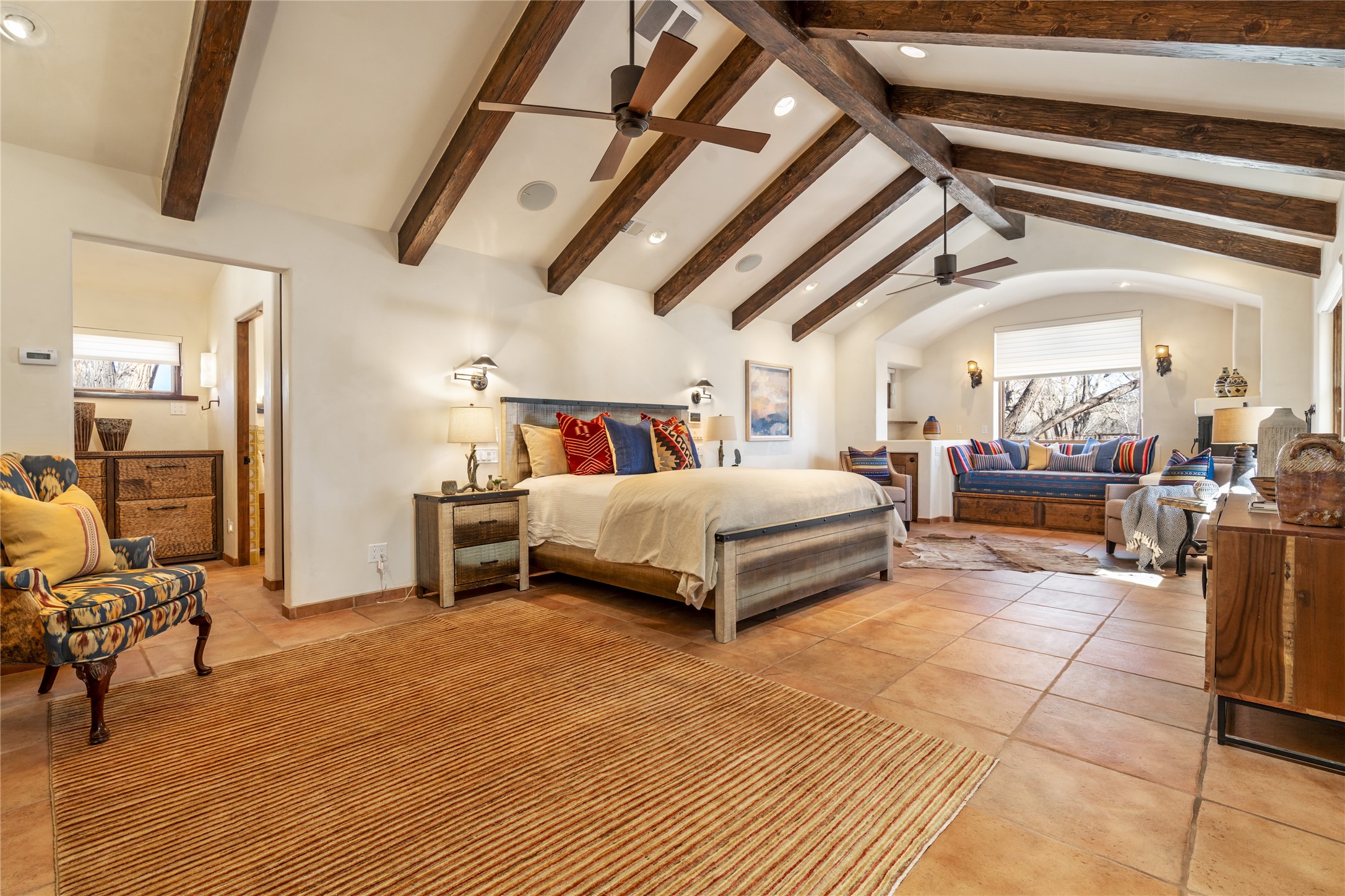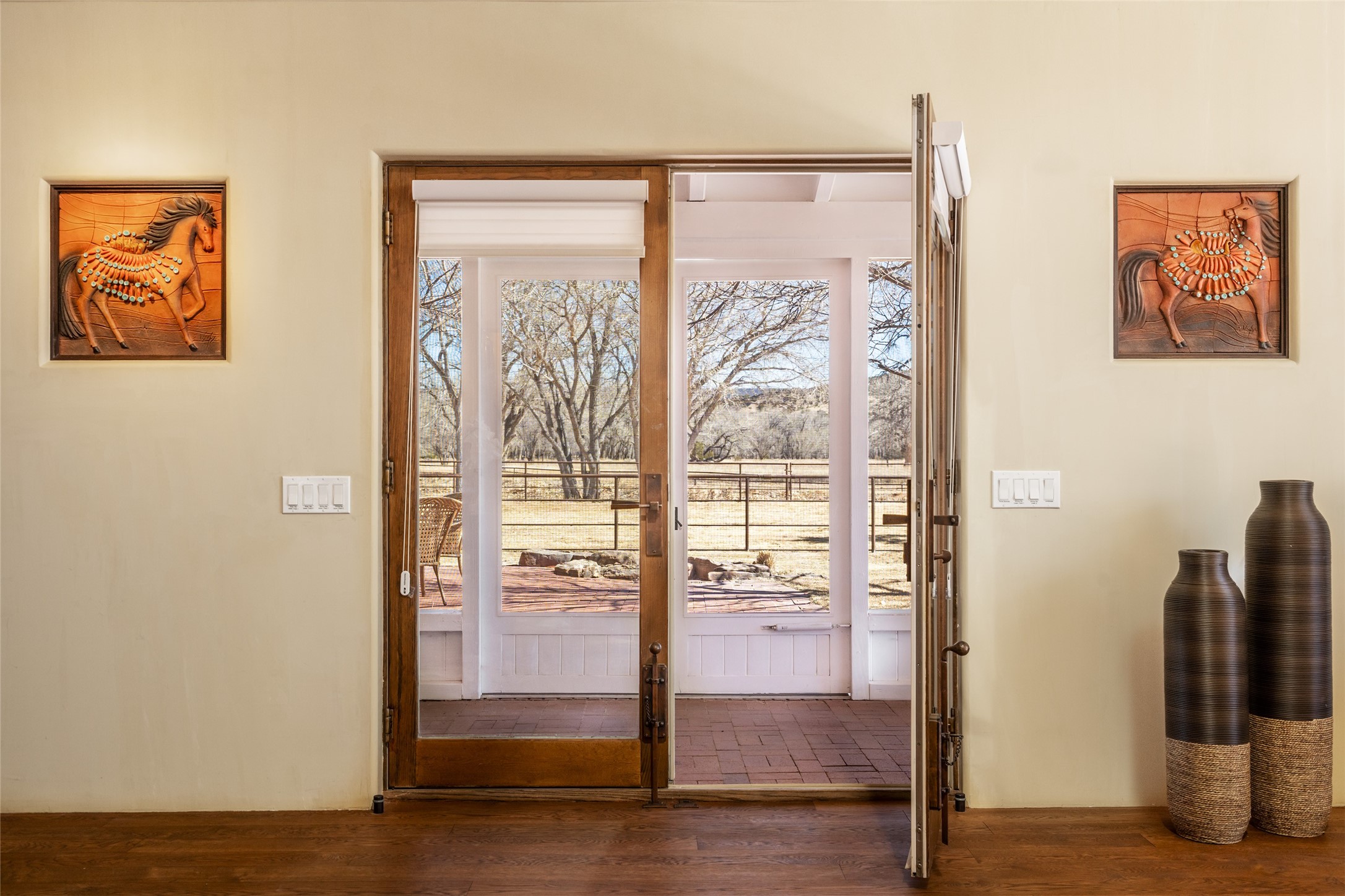 A Northern New Mexico RetreatNestled between Espaola and Abiqui, just 50 minutes from the Santa Fe Plaza and 10 miles from Abiqui, this extraordinary 55-acre estate along the Rio Chama offers a rare blend of privacy, natural beauty, and refined living. With valuable water and irrigation rights, lush pastures, and exclusive private fishing, this retreat is ideal for those seeking both tranquility and adventure.The 3,600 sq. ft. main residence is a sanctuary of comfort and sophistication, featuring two bedrooms, two full baths, and two half baths. Designed for elevated entertaining, the home boasts two full kitchens, a butler's kitchen, large pantry, and expansive living spaces that seamlessly connect to the breathtaking landscape. High ceilings, large windows, and an abundance of natural light enhance the home's airy elegance, while custom finishes reflect the charm of the Southwest. A separate 1,080 sq. ft. 1 bed, 1 bath caretaker's home provides private accommodations for staff or guests.Perfect for equestrian and ranching pursuits, the estate includes a large barn, 8 horse stall barn with a foaling stall, a horse track, and extensive storage buildings. Scenic trails wind through the property, leading to the serene Rio Chama, where you can enjoy exclusive private fishing along your own stretch of riverfront. A tranquil pond, native cottonwoods, and panoramic views create an atmosphere of pure serenity.Beyond its natural beauty, this estate offers limitless potential--whether as a working ranch, equestrian haven, artist's retreat, or luxurious private getaway. Gated for security and privacy, it provides a peaceful yet accessible escape within reach of Northern New Mexico's cultural and outdoor offerings.Experience the perfect balance of luxury, nature, and adventure--where the Rio Chama's gentle waters call you home. For Drone Video go to https://youtu.be/KvkiFsoOq5w