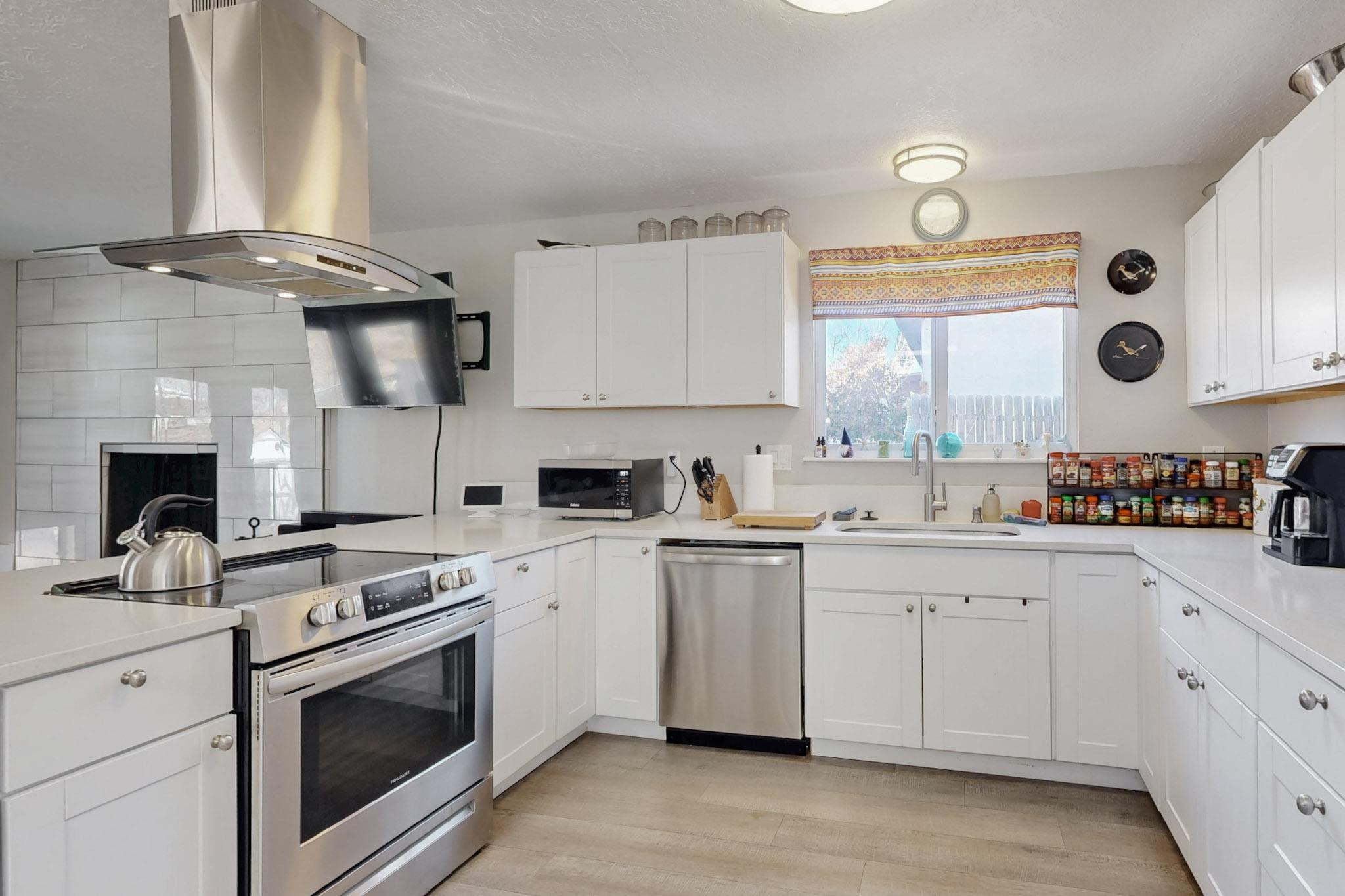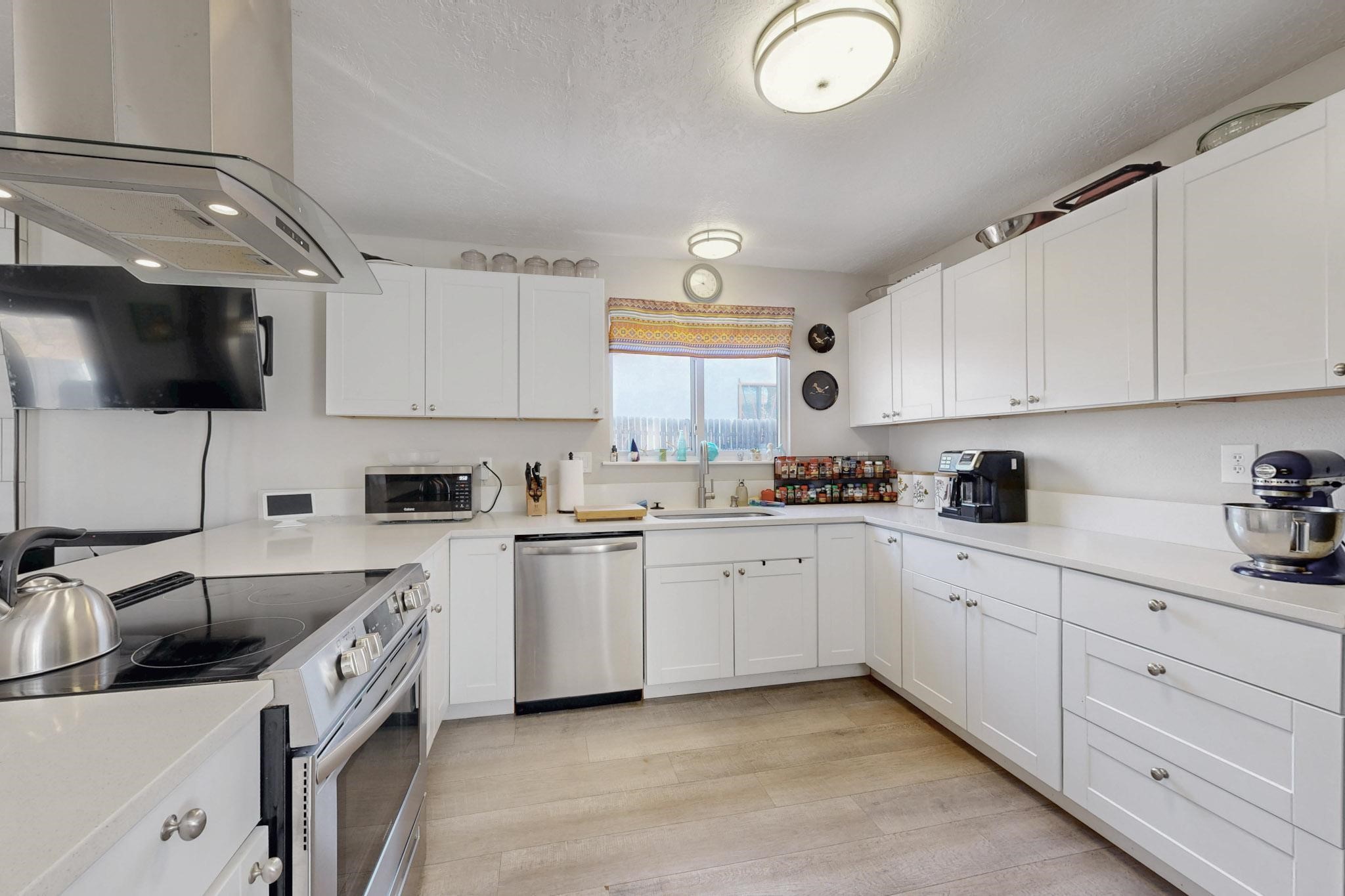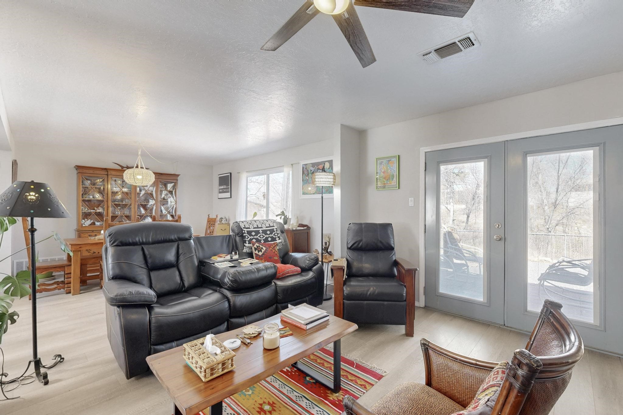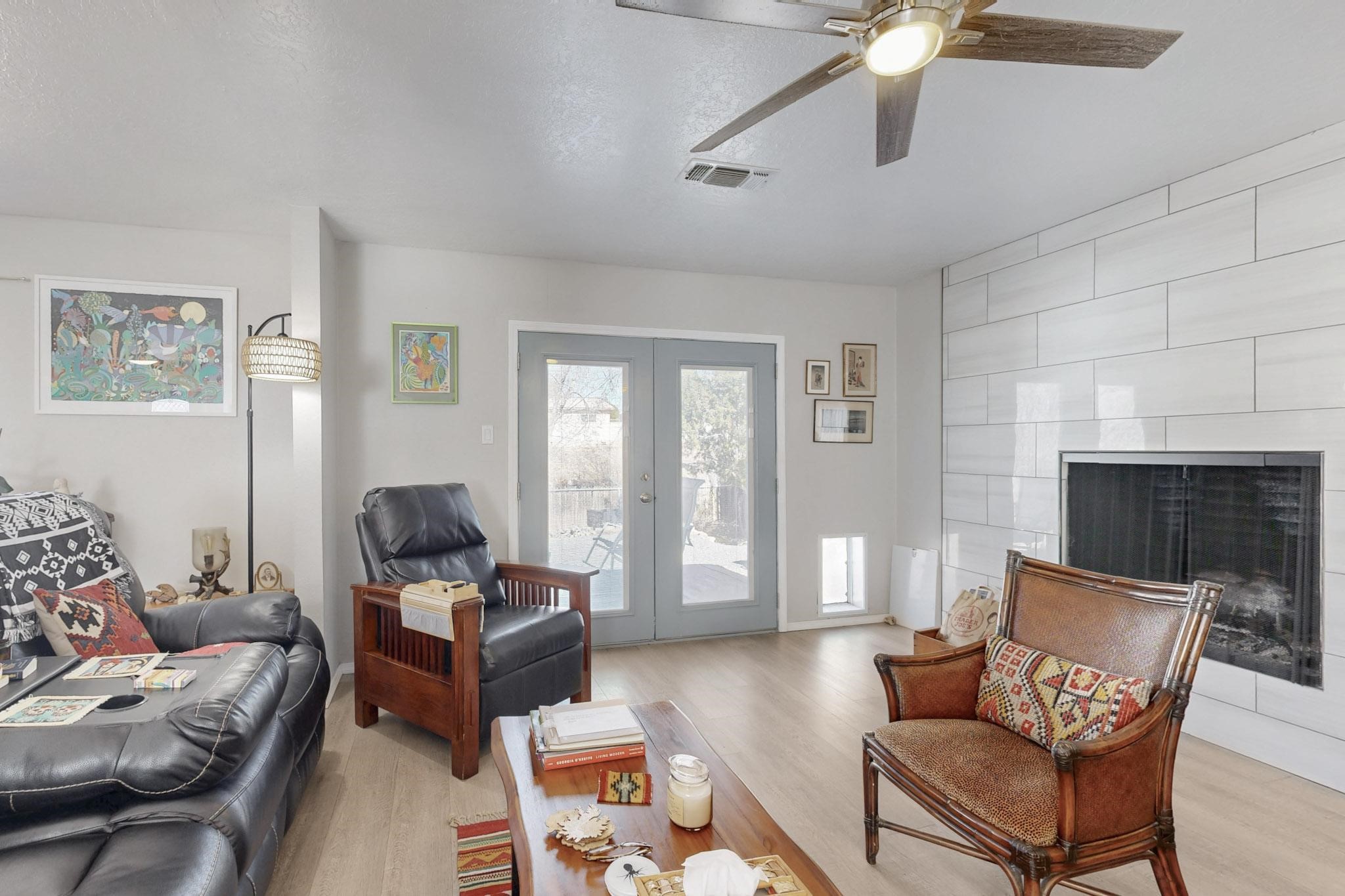 Down a quiet street in the Vista del Sol neighborhood and situated on a large lot, this charming 4 bedroom renovated home offers modern updates while providing a cozy and inviting atmosphere.The kitchen has been thoughtfully updated with sleek quartz countertops, contemporary cabinetry, and efficient stainless steel appliances. The living area offers a modern tiled, wood burning fireplace and leads outside to a brick patio and backyard filled with mature fruit trees. There are no adjoining neighbors in the backyard which allows for privacy. The primary bedroom was converted from an apartment and offers ample space, an ensuite bathroom, walk-in closet and its own entrance. The remaining three bedrooms are filled with natural light and are comfortable living spaces. No HOA and conveniently located near schools, parks, and local amenities.