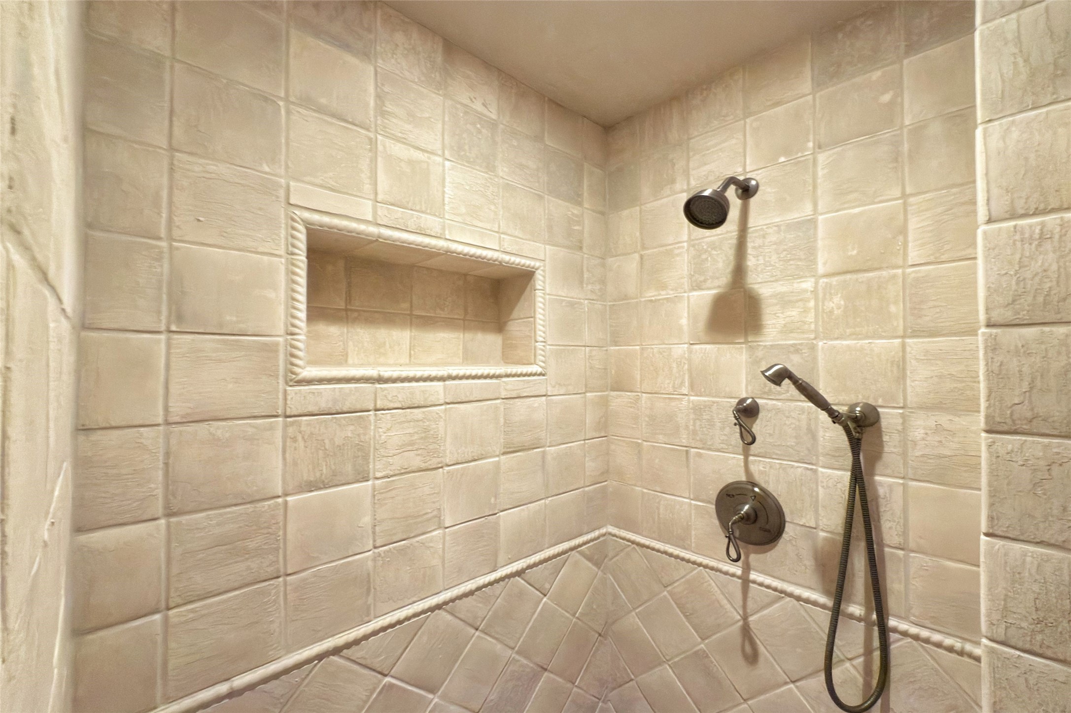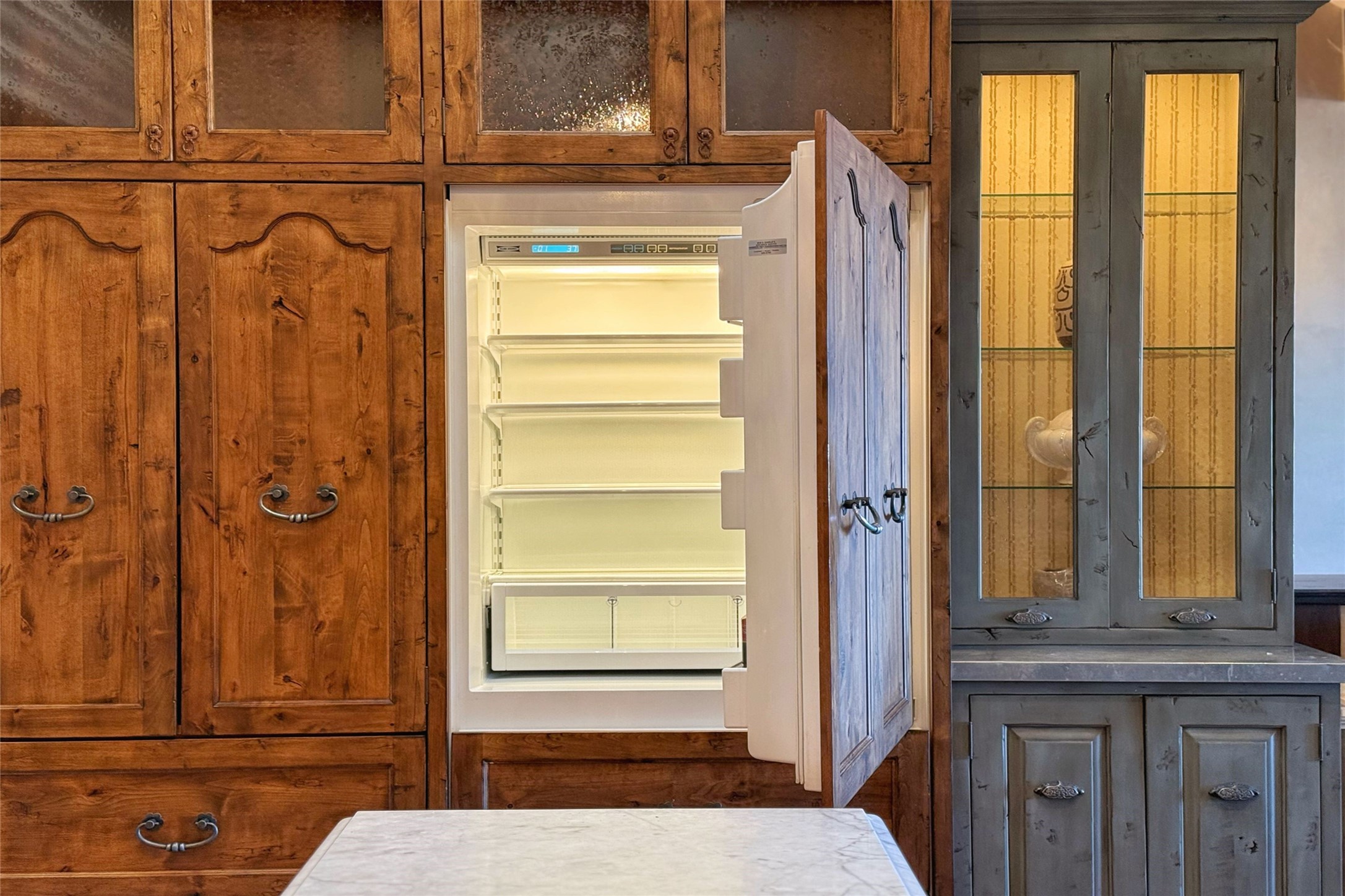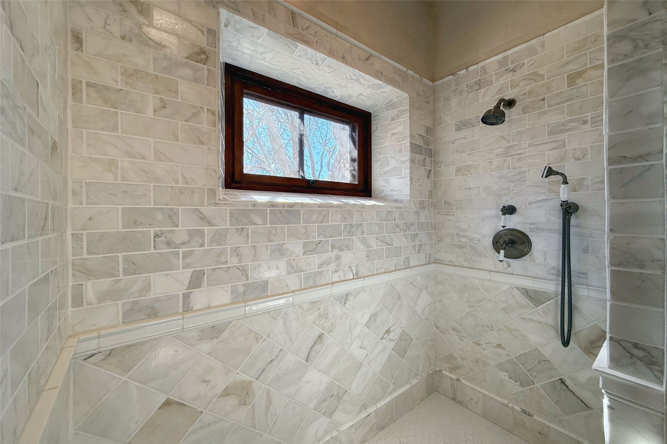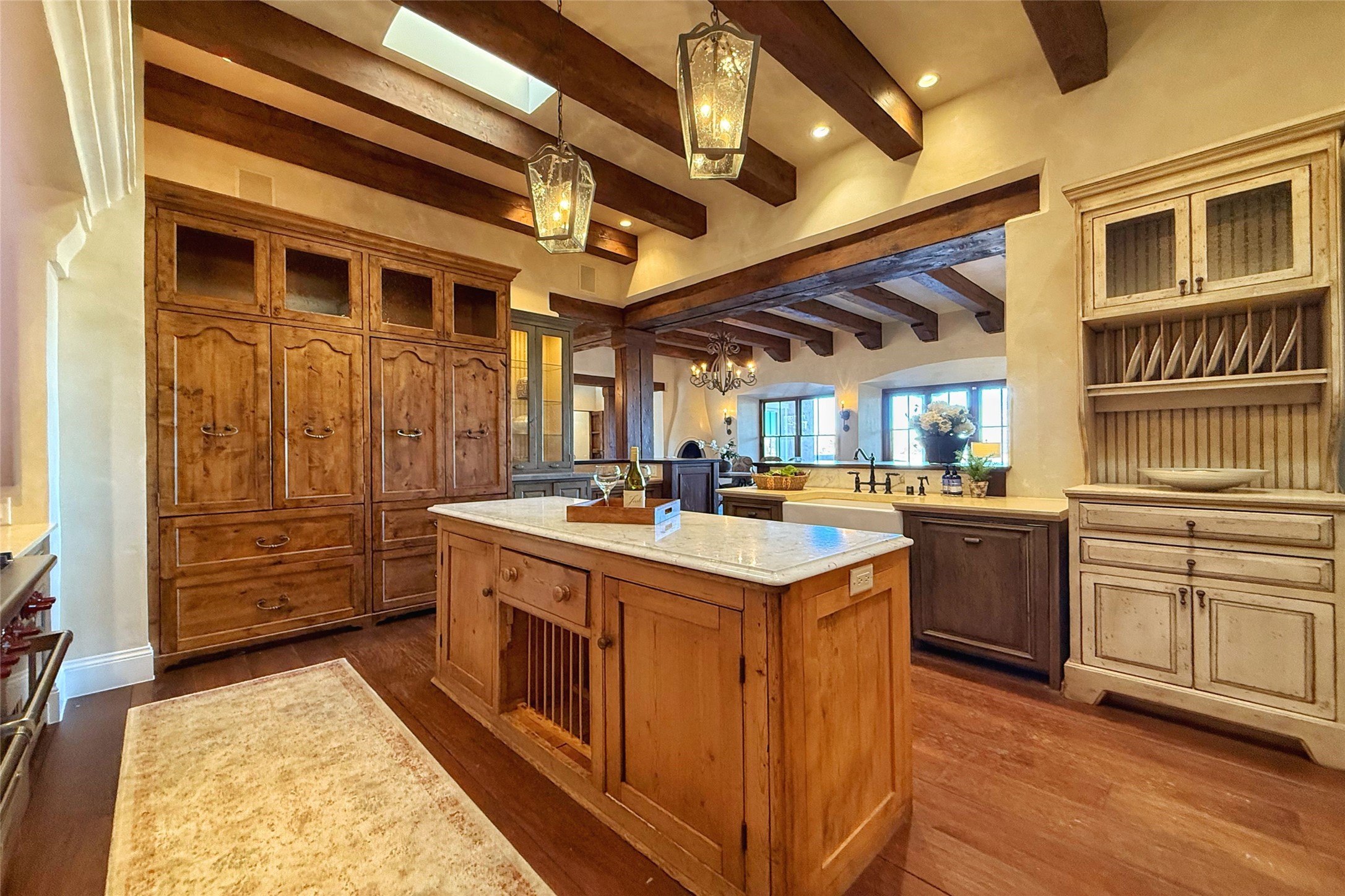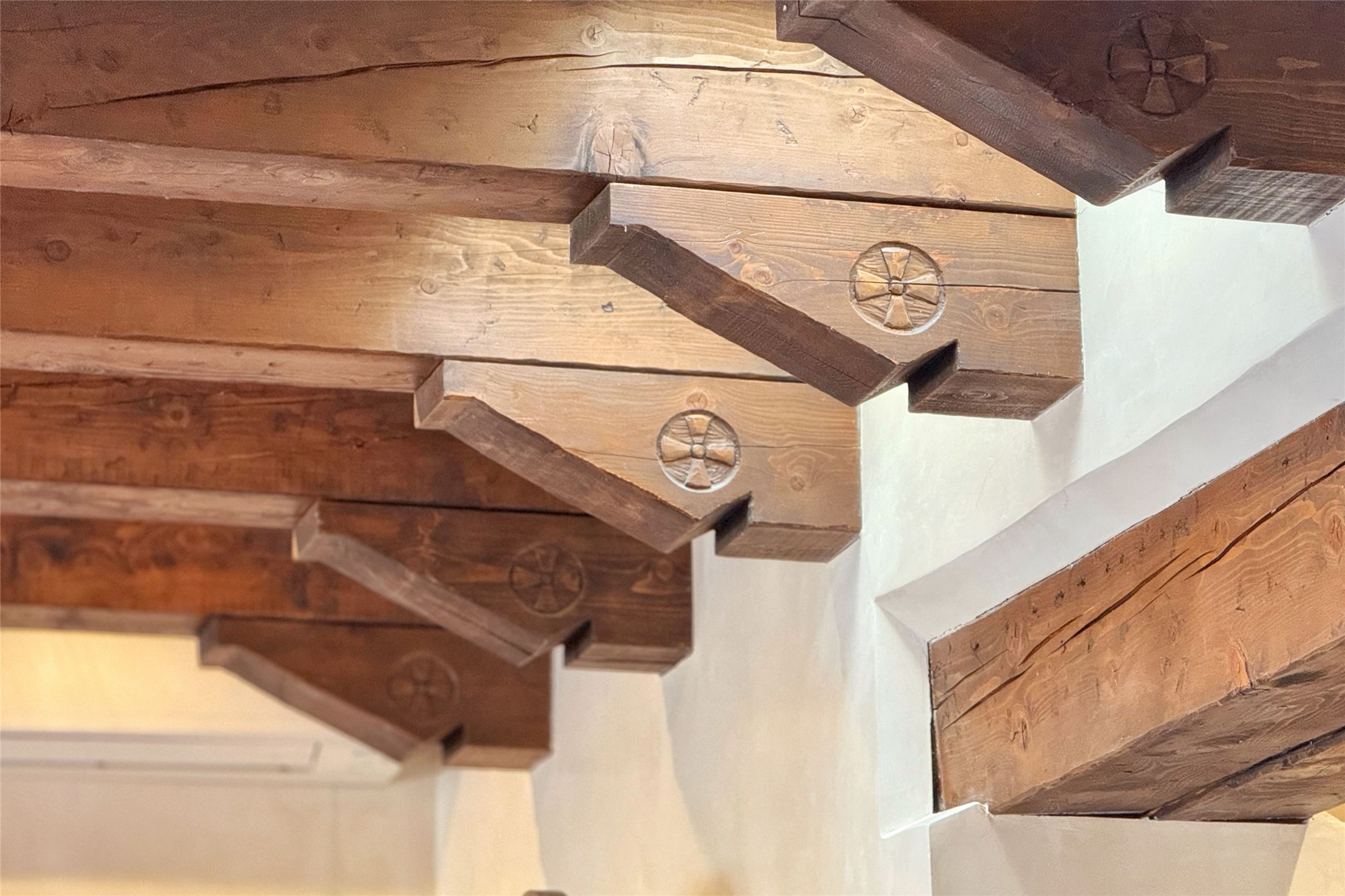 This is a rare opportunity to own a custom-built home in the heart of Santa Fe's cherished Historic Eastside. This elegant territorial-style residence offers sweeping views of the Jemez Mountains' breathtaking sunsets and is perfectly positioned just a short stroll from the famed Canyon Road. Built in 2008, this home features high-insulation pumice-crete construction that beautifully replicates the look and feel of traditional stacked adobe. Every element of the home reflects an unwavering commitment to quality and meticulous attention to detail. The home's three bedrooms, each with its own ensuite bath, provide a harmonious balance of privacy and comfort. In addition, there is an office with a private entrance. The main living areas are conveniently located on one floor, while the lower level is dedicated to guest quarters and a media room. Distressed floors offer a rich, inviting foundation, while handcrafted reclaimed wood doors and intricately carved posts, beams, and corbels evoke the timeless beauty of the territorial style. At the heart of the home lies a gourmet kitchen outfitted with Wolf and Sub-Zero appliances, a butler's pantry, and a wet bar. A private courtyard provides a serene entry, while the expansive wrap-around rear portal framed by a wall of windows, offers an unparalleled vantage point for taking in the majestic mountain vistas with a landscaped garden and fire pit with seating.
