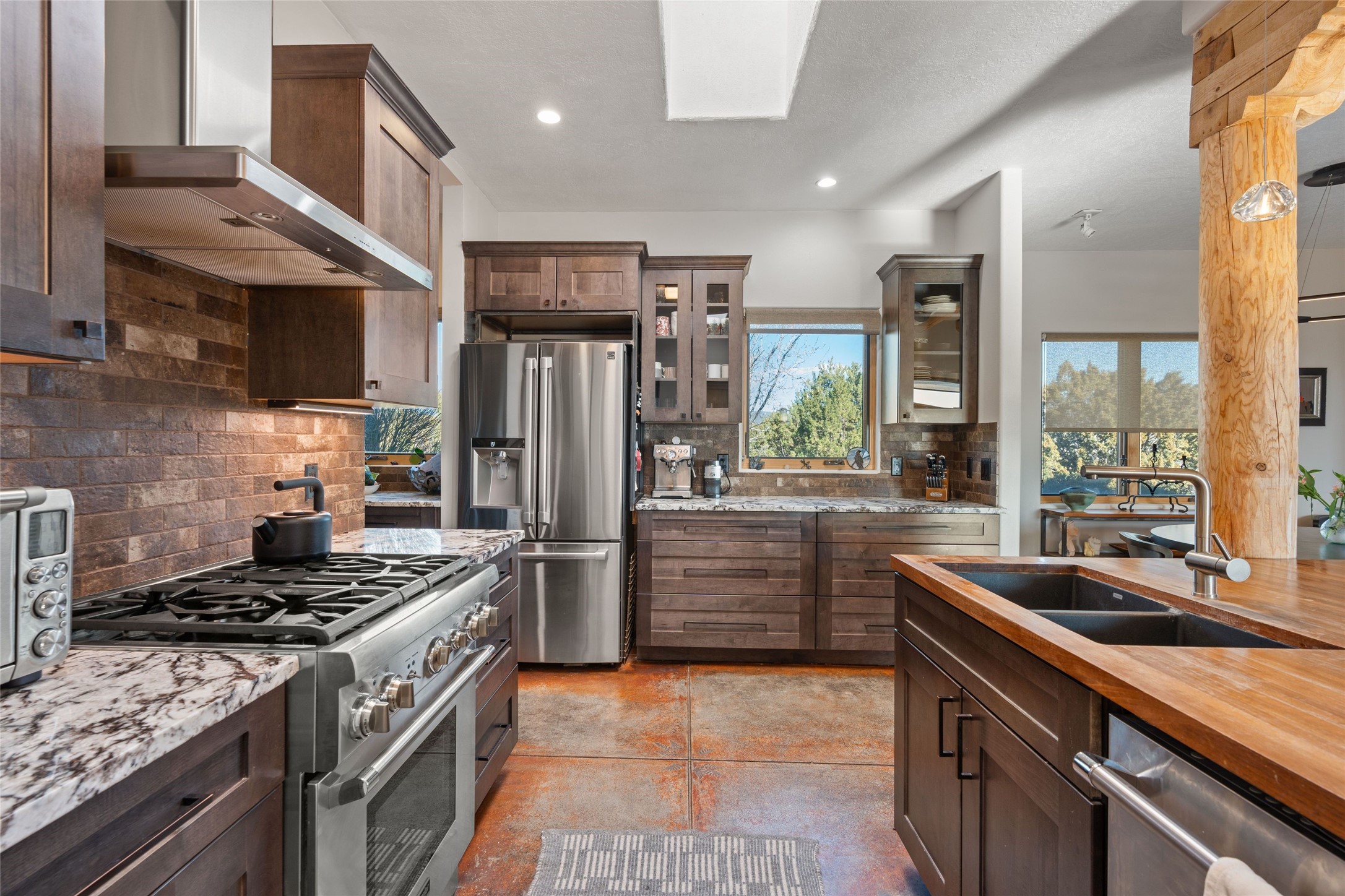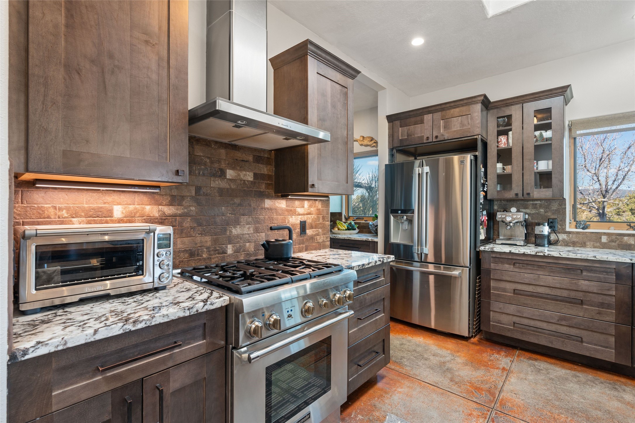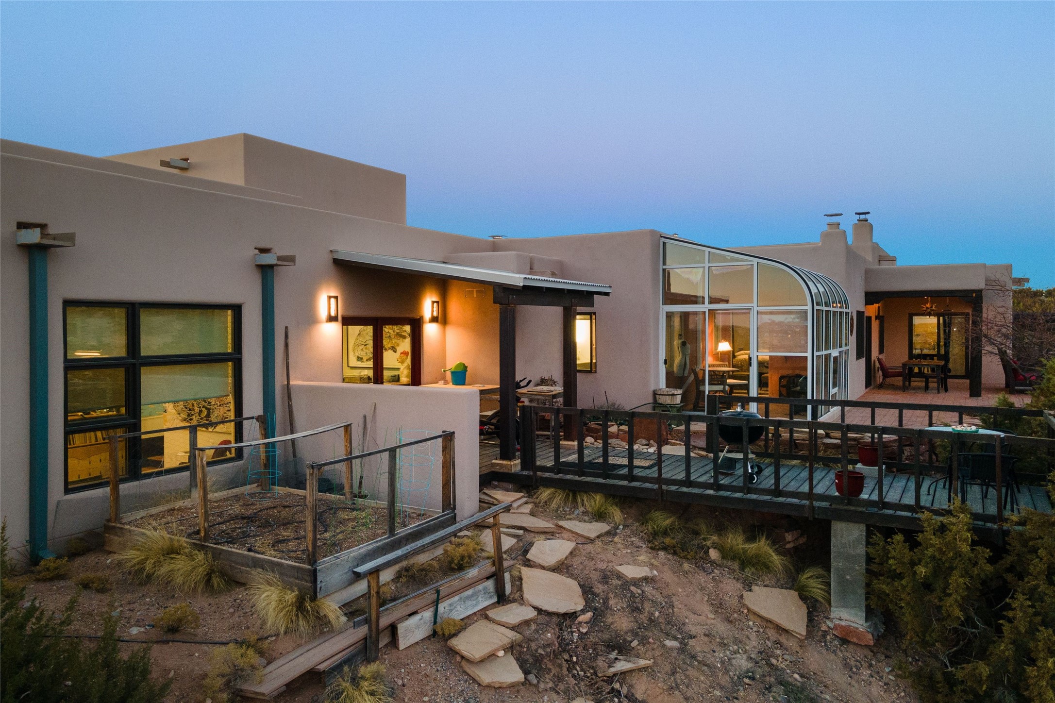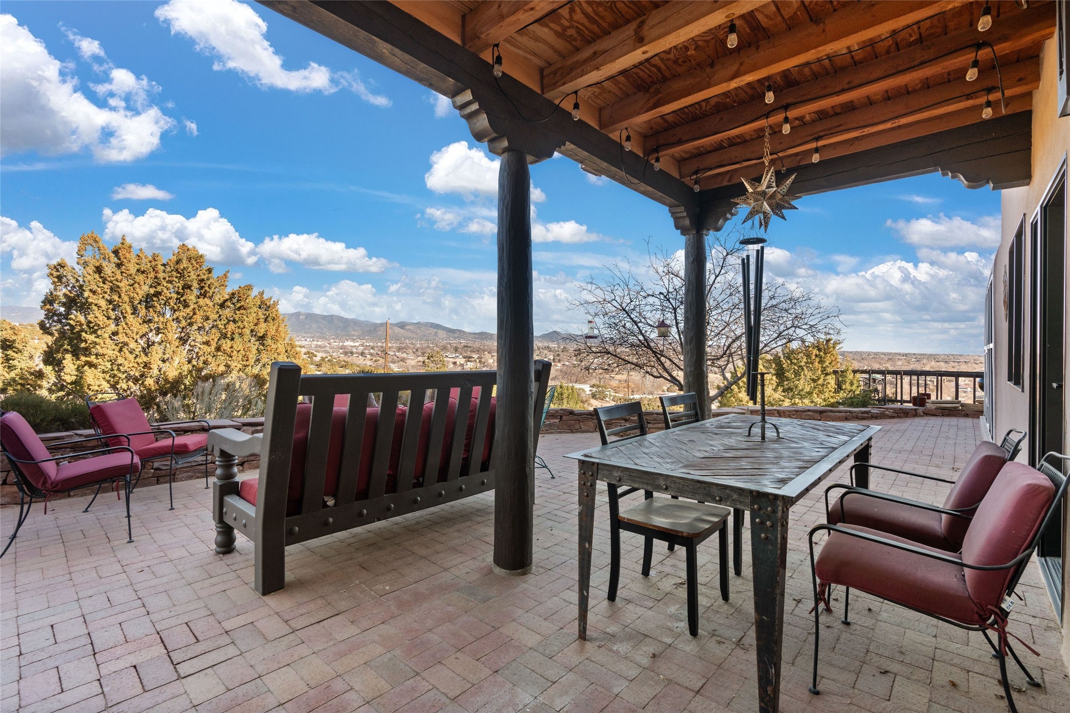 An Artist's Dream Oasis awaits the new owners of this fabulous property! You will have stunning sunrises and sunsets from this well located home on the west ridge overlooking Santa Fe. Just 3.5 miles from the Plaza, the 360 views will enthrall everyone. The 3 bedroom 3 bath main home has two suites, one of which has been successfully used as a vacation rental...it can be a mother-in law suite as well with it's own entrance and outdoor sitting area. The house has had most every detail updated with high end finishes. New windows and doors, new mini-split, new lighting. The kitchen and primary bathroom were remodeled in 2019 with upscale cabinets, appliances and countertops. The 2009 sq. ft. studio/guest house is a professional artist's dream, completed in 2019 with soaring ceilings, fabulous work spaces and an art storage loft. The possibilities are endless as there is kitchen area and 3/4 bath, with rooms that could be bedrooms or living space. It's a must see - must buy home for your Santa Fe life style! See attached documents for a list of upgrades and amenities.