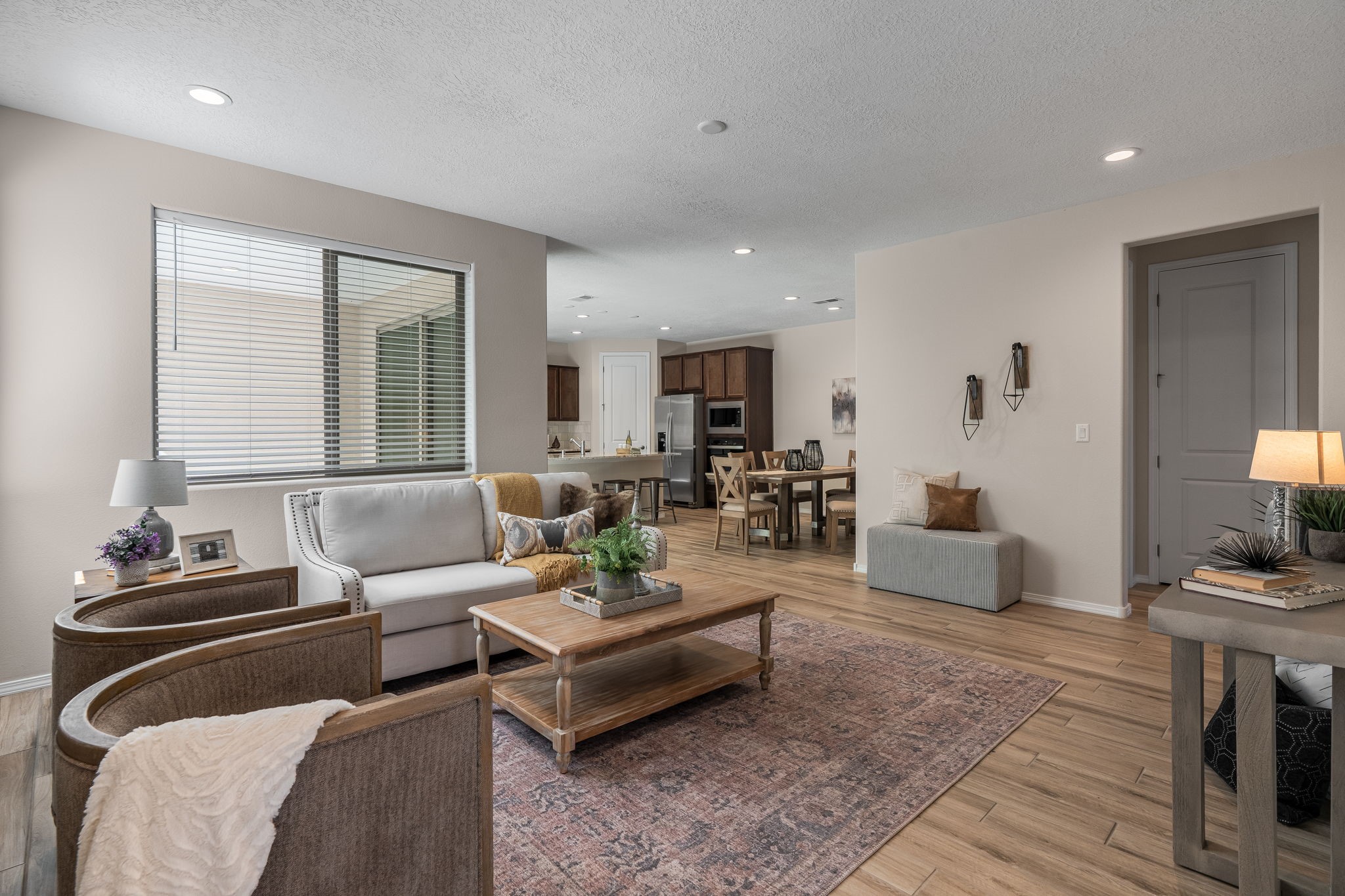 Ready July 2025! Step into this beautiful single-story home featuring a modern open-concept layout perfect for today's lifestyle. The heart of the home is an expansive kitchen with a huge island, ideal for cooking, entertaining, and gathering. The luxury owner's bath offers a spa-like retreat, complete with premium finishes. With 2 spacious bedrooms and a versatile open space, this home provides ample room for both relaxation and productivity. Enjoy seamless indoor/outdoor living on the large patio, perfect for entertaining or unwinding. The full 2-car garage offers plenty of space for vehicles and storage. This home is a true gem, and you won't want to miss it!