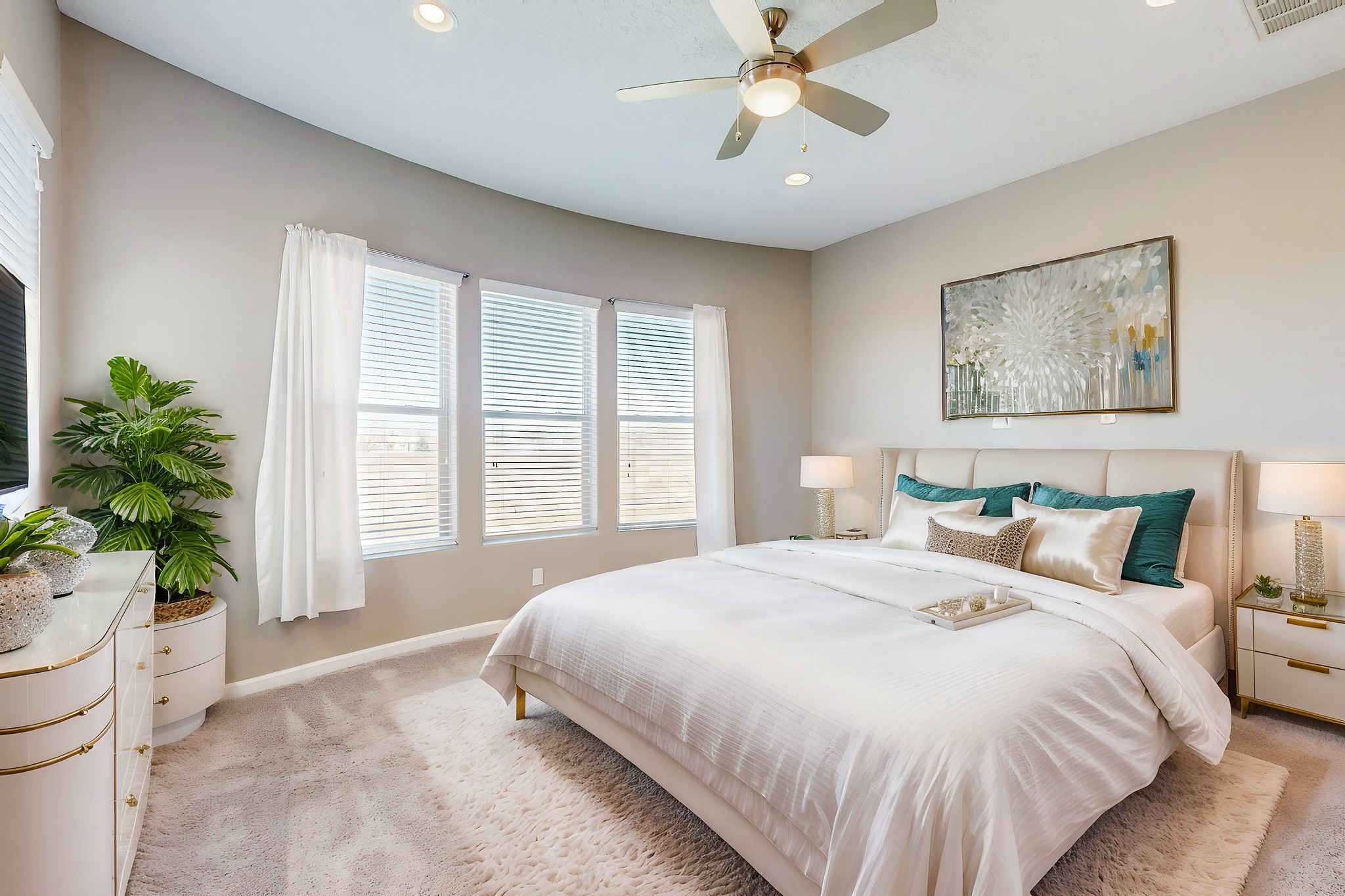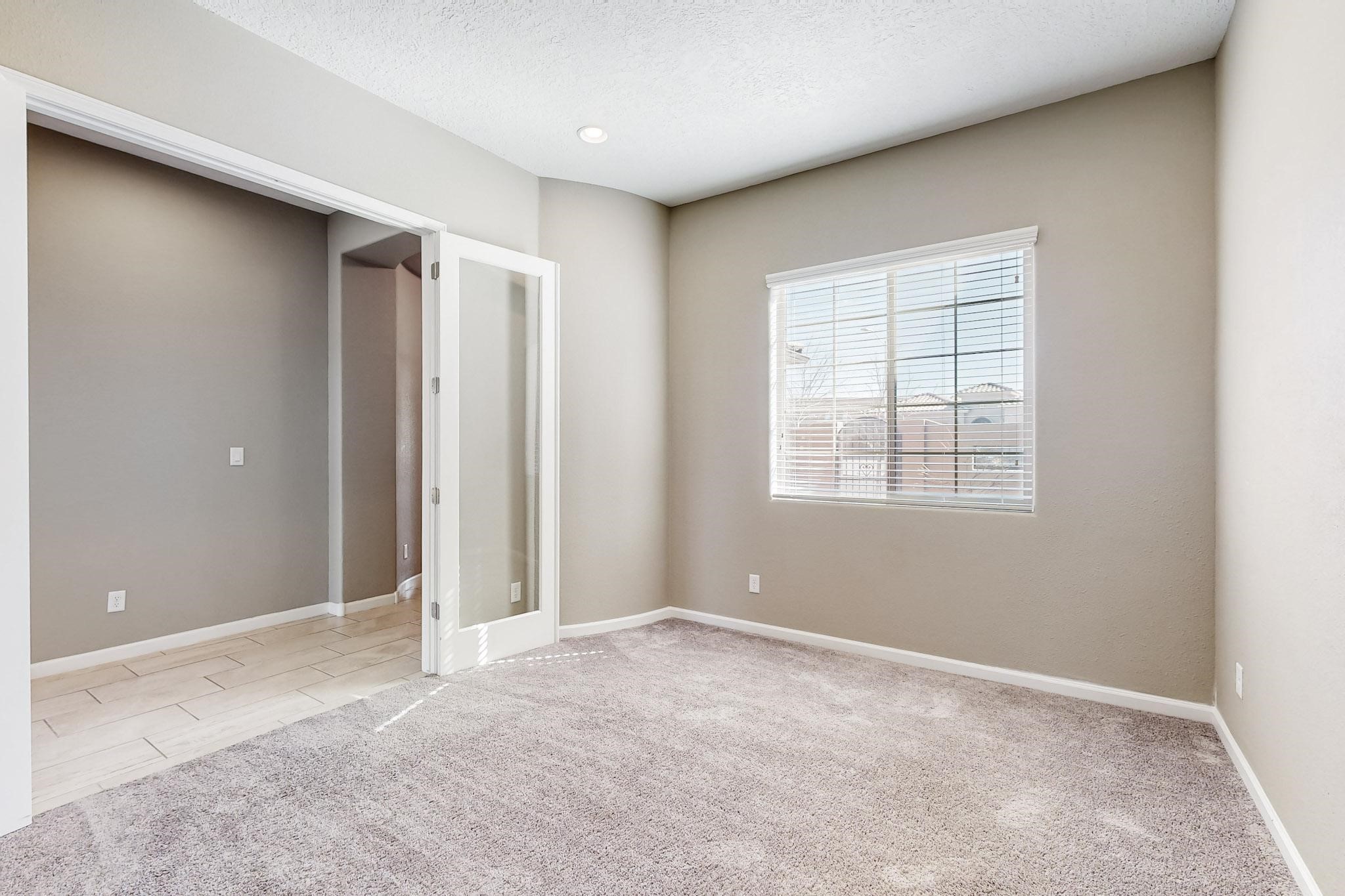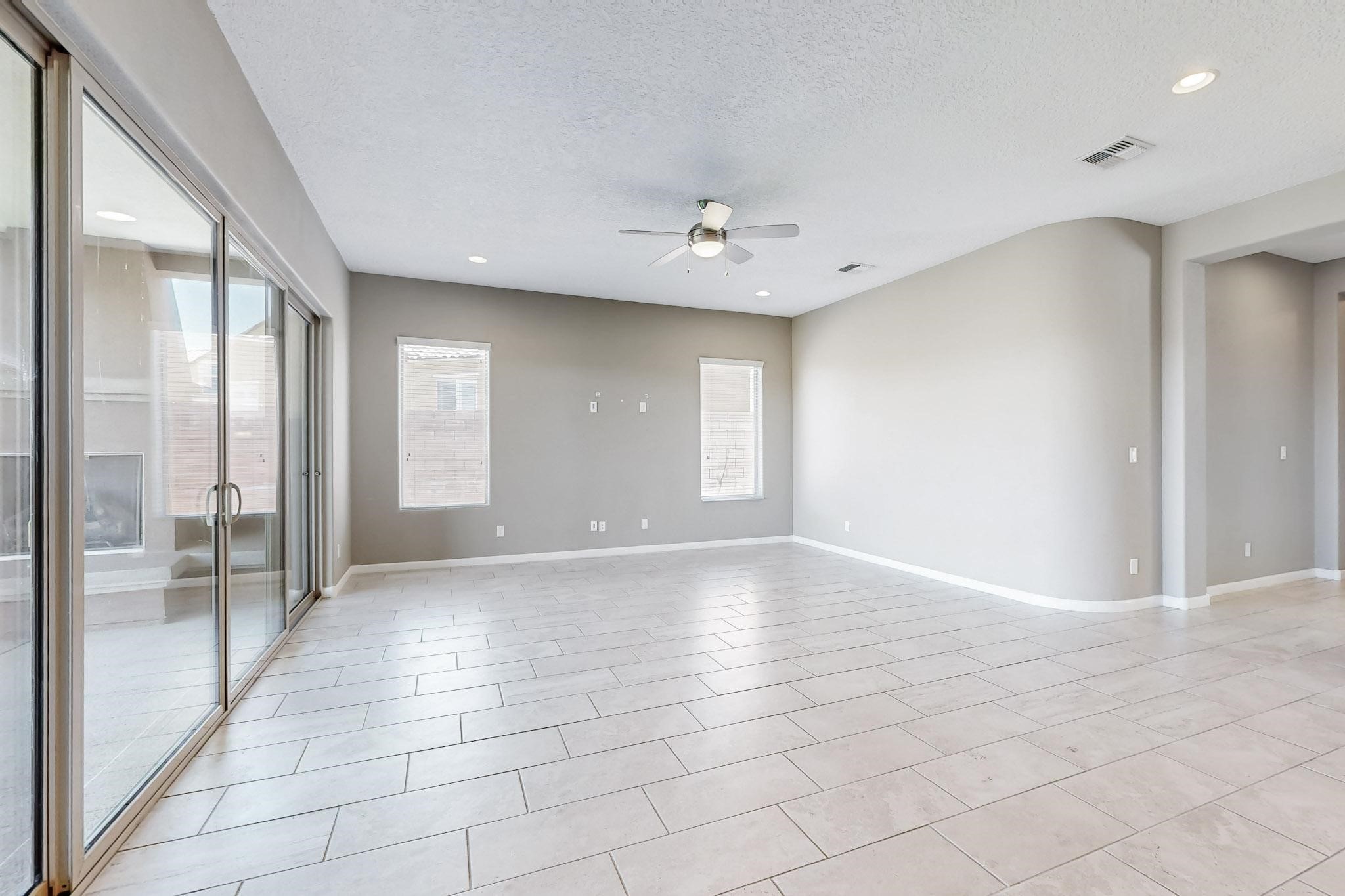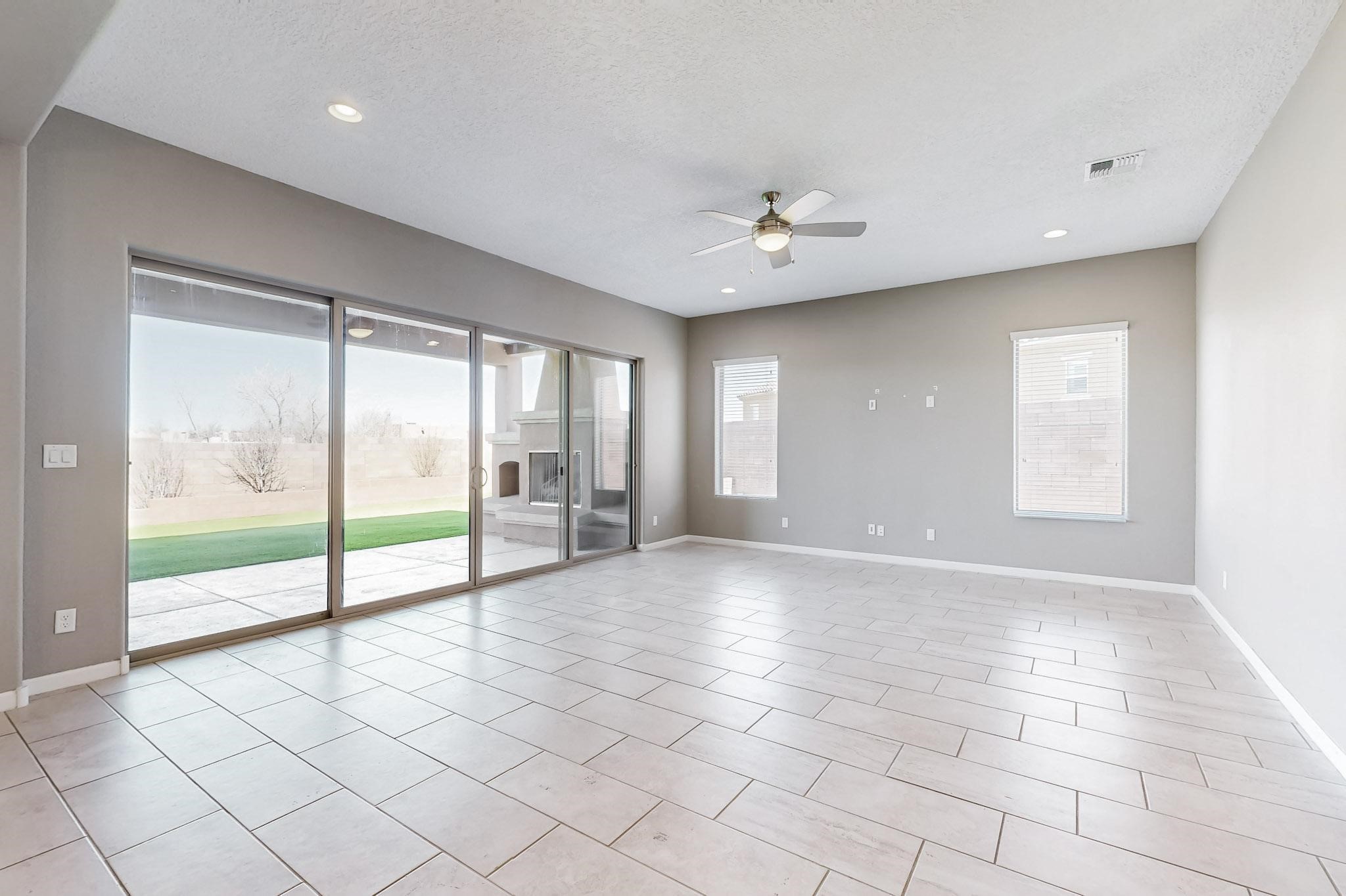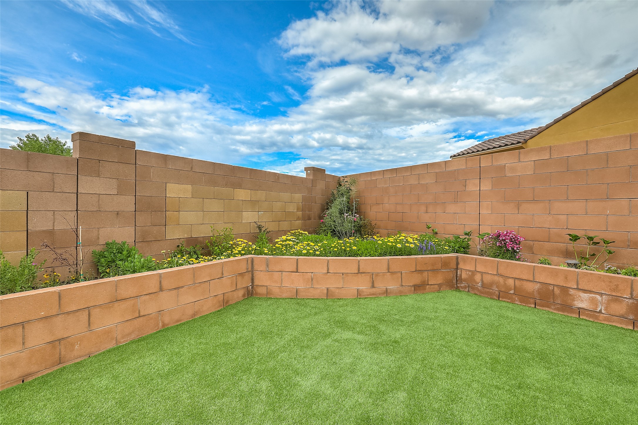 Welcome to your dream home in the highly sought-after Estancias de Las Soleras subdivision of Santa Fe. This immaculate, move-in-ready Pulte-built home is designed with Pulte's popular Serenity Floor Plan and sits on a premium lot with breathtaking mountain views. Every detail has been thoughtfully upgraded to offer the perfect blend of comfort and luxury. Conveniently situated near shopping centers, schools, dining options, and medical facilities, with quick access to the freeway, this home offers both convenience and tranquility. Enjoy the convenience of having a wide array of amenities just moments away. The chef-inspired kitchen is equipped with high-end KitchenAid appliances, stunning granite countertops, a beautiful backsplash, and a large island that invites creativity for culinary enthusiasts. The primary bedroom features bow windows that let in abundant natural light, offering panoramic views that make the space even more luxurious. The home also includes a versatile den with elegant French doors that could easily be transformed into a fourth bedroom, game room, art studio, or additional living space--endless possibilities. Throughout the home, you'll find upgraded cabinets, flooring, and a custom entry door with Nest locks, all contributing to a modern, sophisticated aesthetic. Outside, the beautifully landscaped front and back yards are highlighted by over 500 bulbs, perennial plants, trees, and shrubs. A wrap-around concrete walkway leads to a private courtyard with 6-foot walls, perfect for relaxation or entertaining guests. The home's exterior features a gas fireplace, a gas stub for BBQs, and an artificial turf entryway with a hydrangea tree. Additional features include comfort-height toilets, upgraded carpet and tile flooring, 2" faux wood blinds, and an epoxy-coated garage with a 4-foot extension, utility sink, and premium flooring. The Rinnai tankless water heater with a programmable timer ensures energy efficiency, while the home's thoughtful design and attention to detail provide comfort and style throughout. The backyard backs onto a vast open space, offering privacy and uninterrupted views--ideal for walks and enjoying Santa Fe's natural beauty. This stunning property offers the ideal blend of elegance, convenience, and luxury. Don't miss your chance to own this rare gem--schedule a private showing today and make 2025 the year you begin your next chapter in the home of your dreams. Some photos are virtually staged, while others were taken at different times to showcase the plants in bloom.