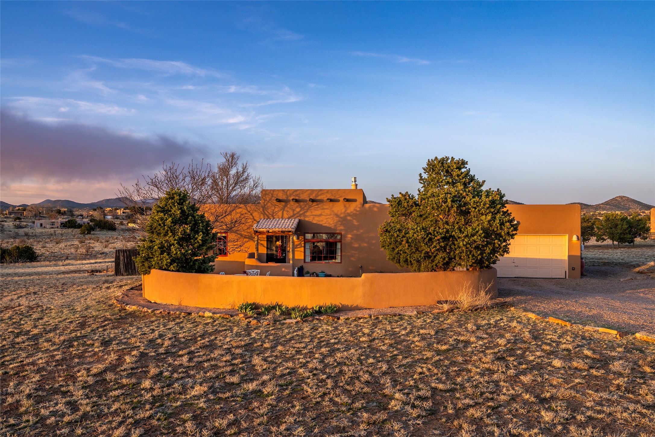 This unique jewel box home at 11 Bosque Loop offers serenity, natural beauty, abundant wildlife, and convenience in one of Santa Fe's most desirable locations. Sited on 1.24 acres on an arroyo green space, the house has been lovingly renovated with design, character, and quality in mind: natural materials and finishes, and hand-crafted traditional features such as high ceiling vigas, door and window lintels, rough sawn beams, corbels, Spanish tile, and diamond plaster walls that reflect abundant sunlight.The split floor plan offers an open living and dining area with views of the Sangre de Christo mountains. The primary suite is separated from the two guest bedrooms. Enjoy year-round comfort from the passive solar siting with forced air heating and air conditioning.The airy kitchen and both full bathrooms have been fully renovated with new Spanish tile, fixtures, and appliances.Step outside and savor the big skies, abundant birdsong, and vibrant landscape. A walled courtyard contains raised garden beds, trees, and plenty of room for your flowering pots. Coyote fencing offers privacy in the backyard.Eldorado community has many amenities. Extensive hike/bike trails, access to the Santa Fe Rail Trail, nearby shopping and service complexes, a gym and day care center, hardware store, cafes and restaurants, and a county library are all within a 5-minute drive.With its gorgeous setting and thoughtful renovation, this turn-key home invites you to experience the best of Santa Fe's relaxing lifestyle, full of beauty and tranquility. Schedule a showing today!