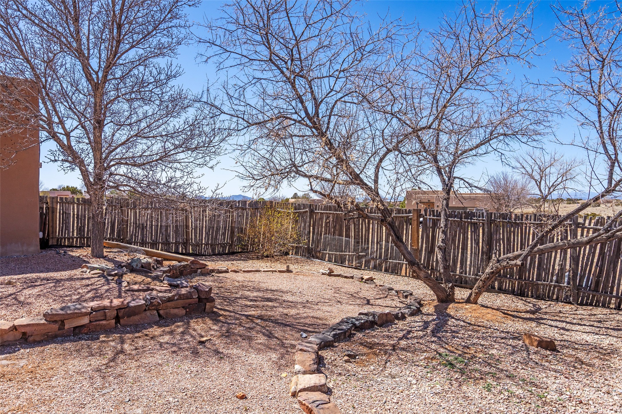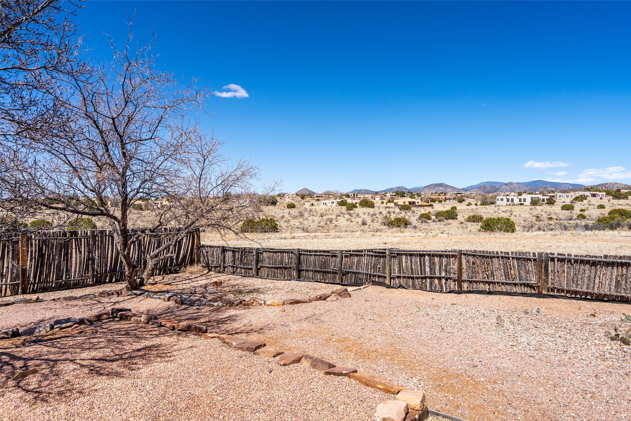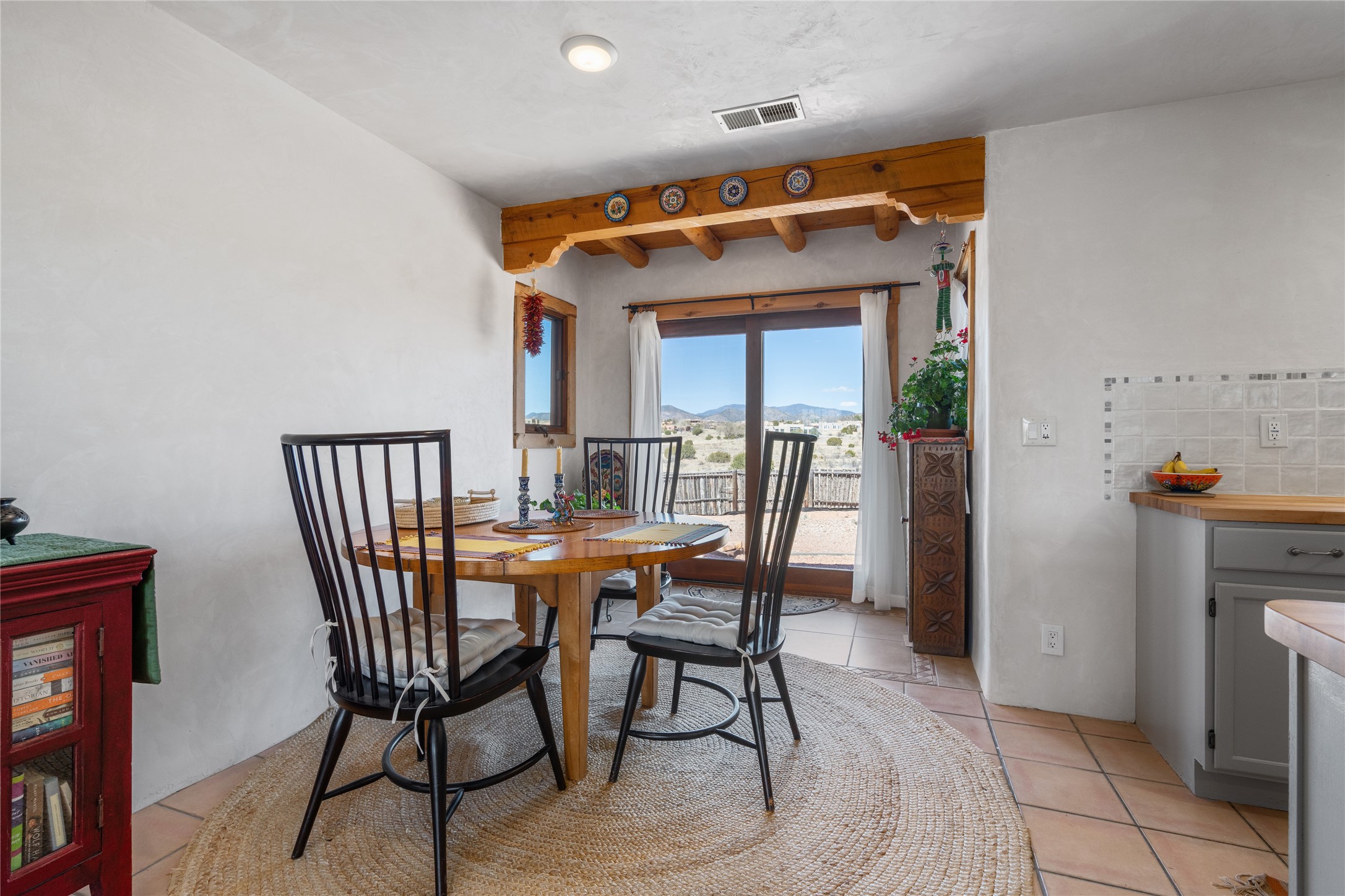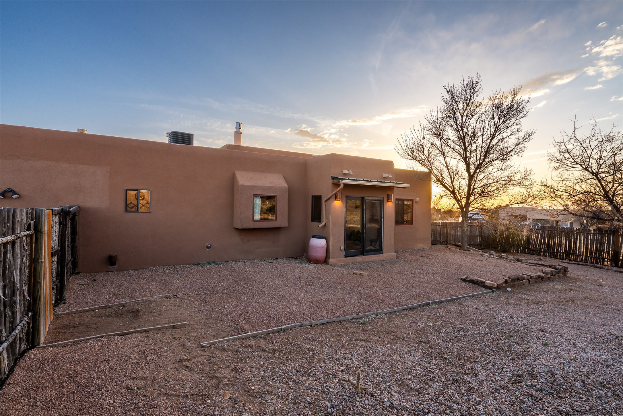 This unique jewel box home at 11 Bosque Loop offers serenity, natural beauty, abundant wildlife, and convenience in one of Santa Fe's most desirable locations. Sited on 1.24 acres on an arroyo green space, the house has been lovingly renovated with design, character, and quality in mind: natural materials and finishes, and hand-crafted traditional features such as high ceiling vigas, door and window lintels, rough sawn beams, corbels, Spanish tile, and diamond plaster walls that reflect abundant sunlight.The split floor plan offers an open living and dining area with views of the Sangre de Christo mountains. The primary suite is separated from the two guest bedrooms. Enjoy year-round comfort from the passive solar siting with forced air heating and air conditioning.The airy kitchen and both full bathrooms have been fully renovated with new Spanish tile, fixtures, and appliances.Step outside and savor the big skies, abundant birdsong, and vibrant landscape. A walled courtyard contains raised garden beds, trees, and plenty of room for your flowering pots. Coyote fencing offers privacy in the backyard.Eldorado community has many amenities. Extensive hike/bike trails, access to the Santa Fe Rail Trail, nearby shopping and service complexes, a gym and day care center, hardware store, cafes and restaurants, and a county library are all within a 5-minute drive.With its gorgeous setting and thoughtful renovation, this turn-key home invites you to experience the best of Santa Fe's relaxing lifestyle, full of beauty and tranquility. Schedule a showing today!