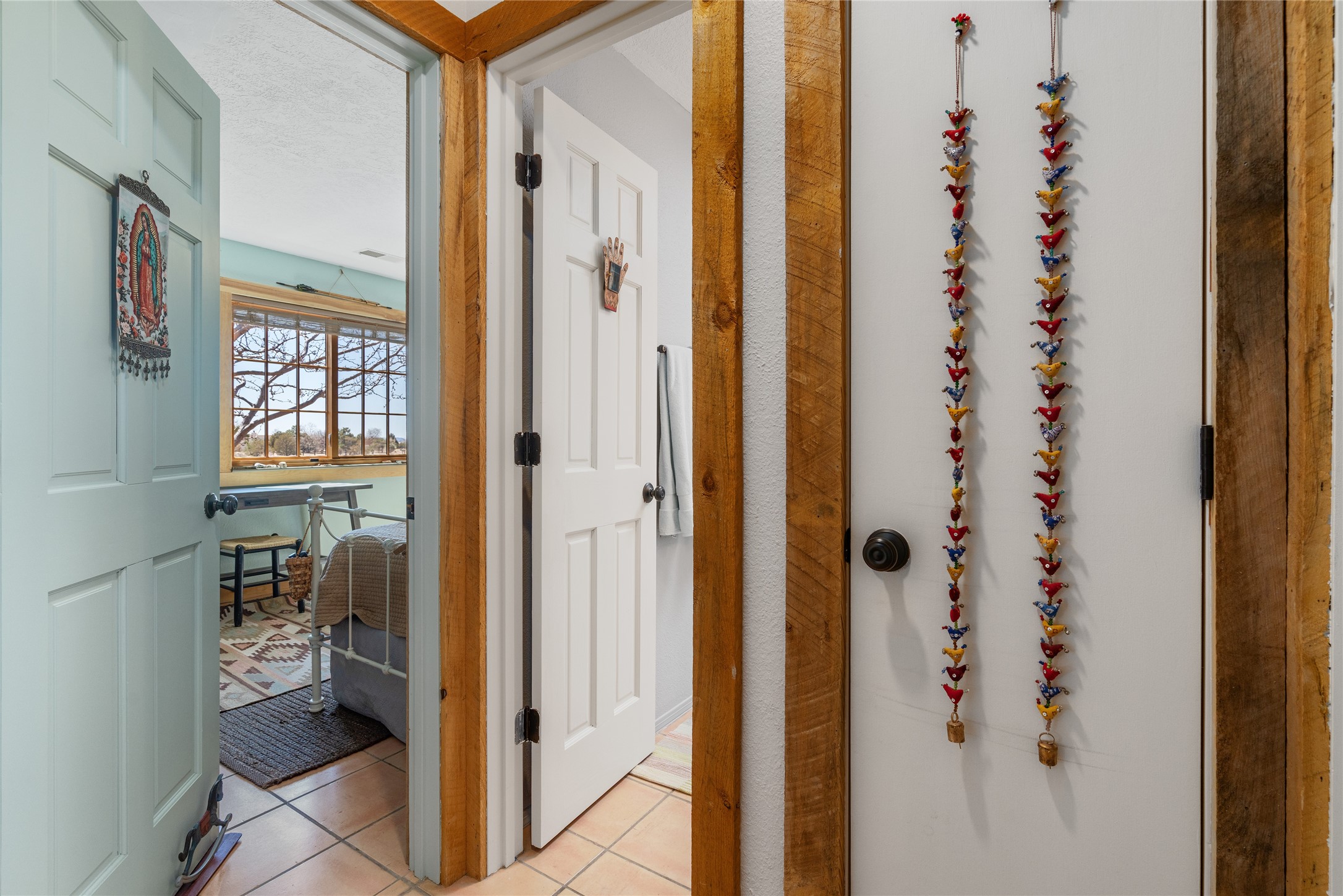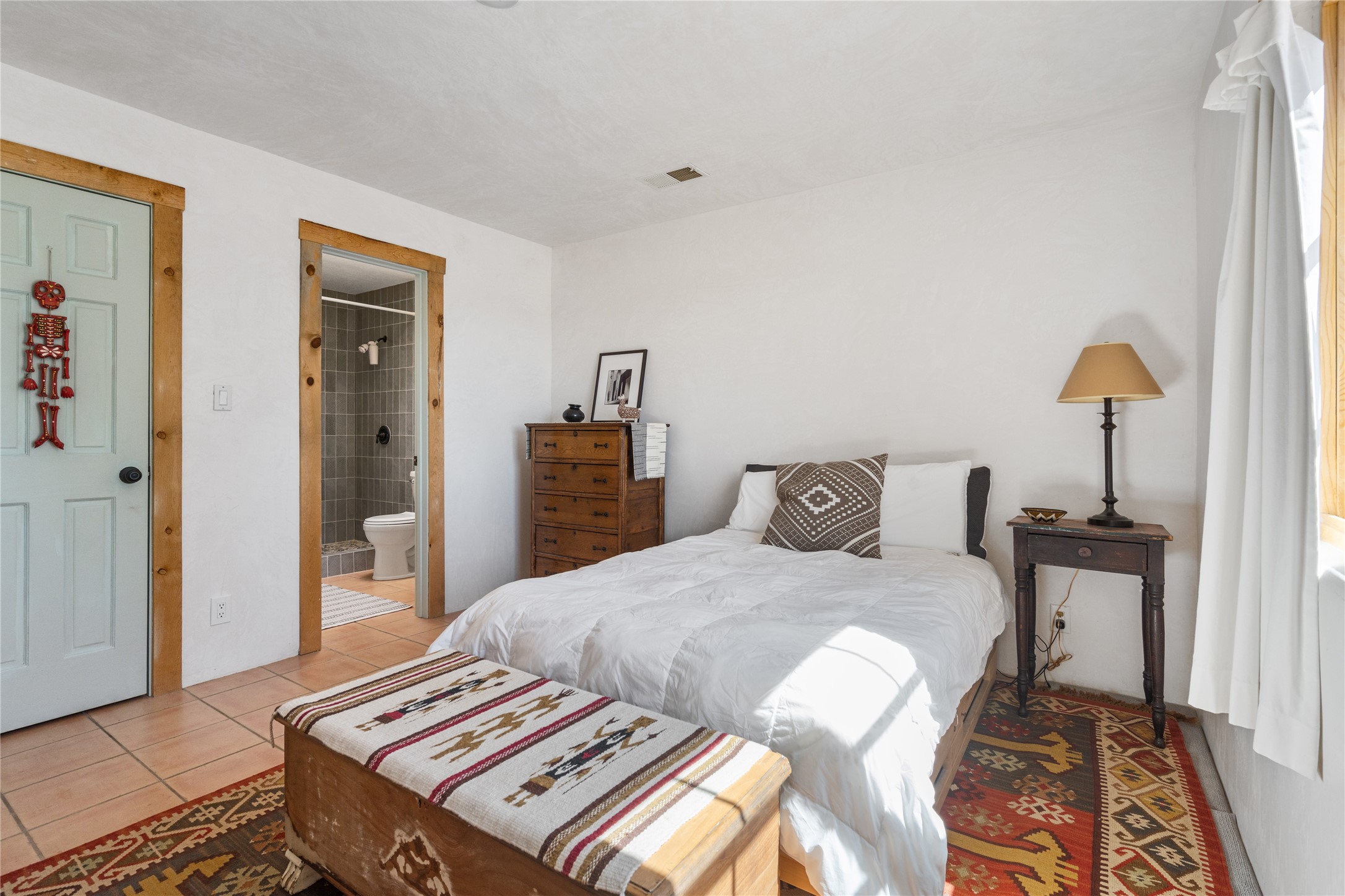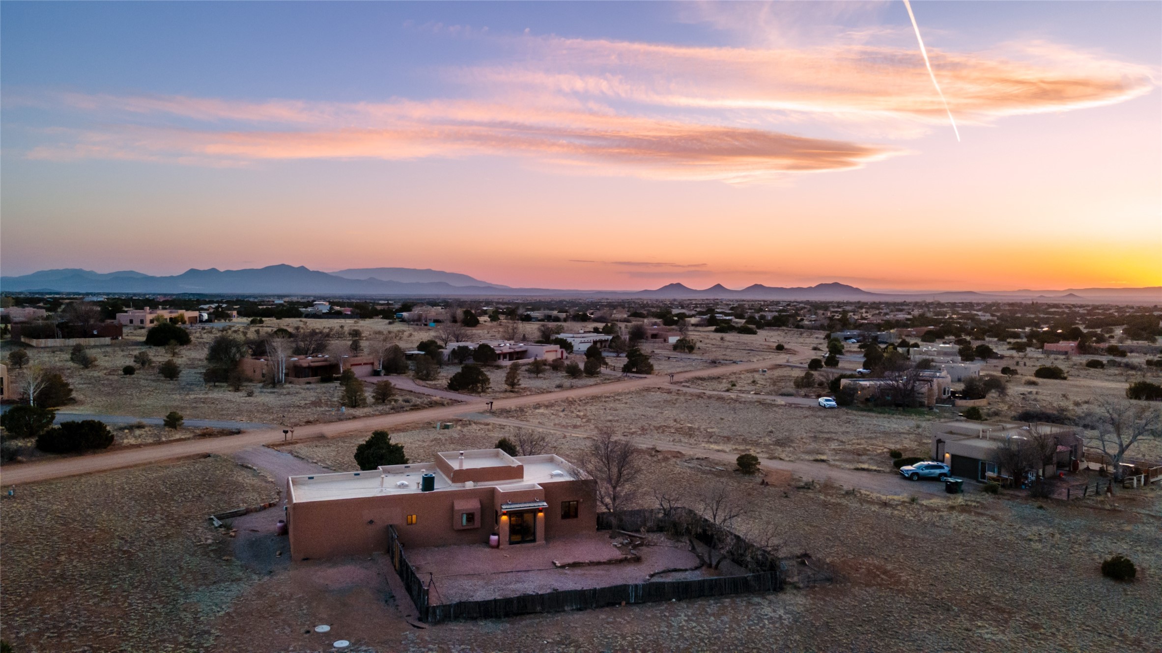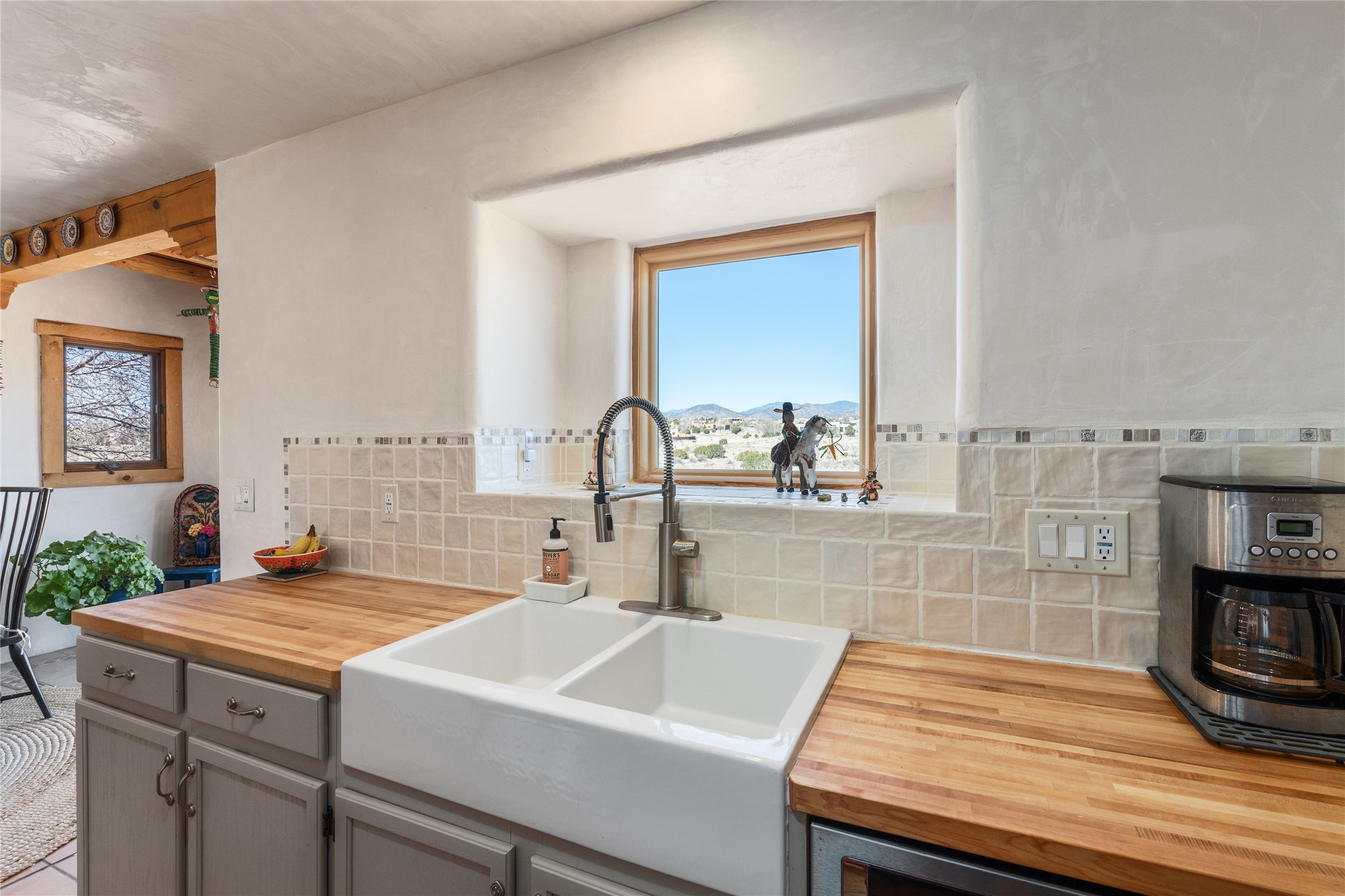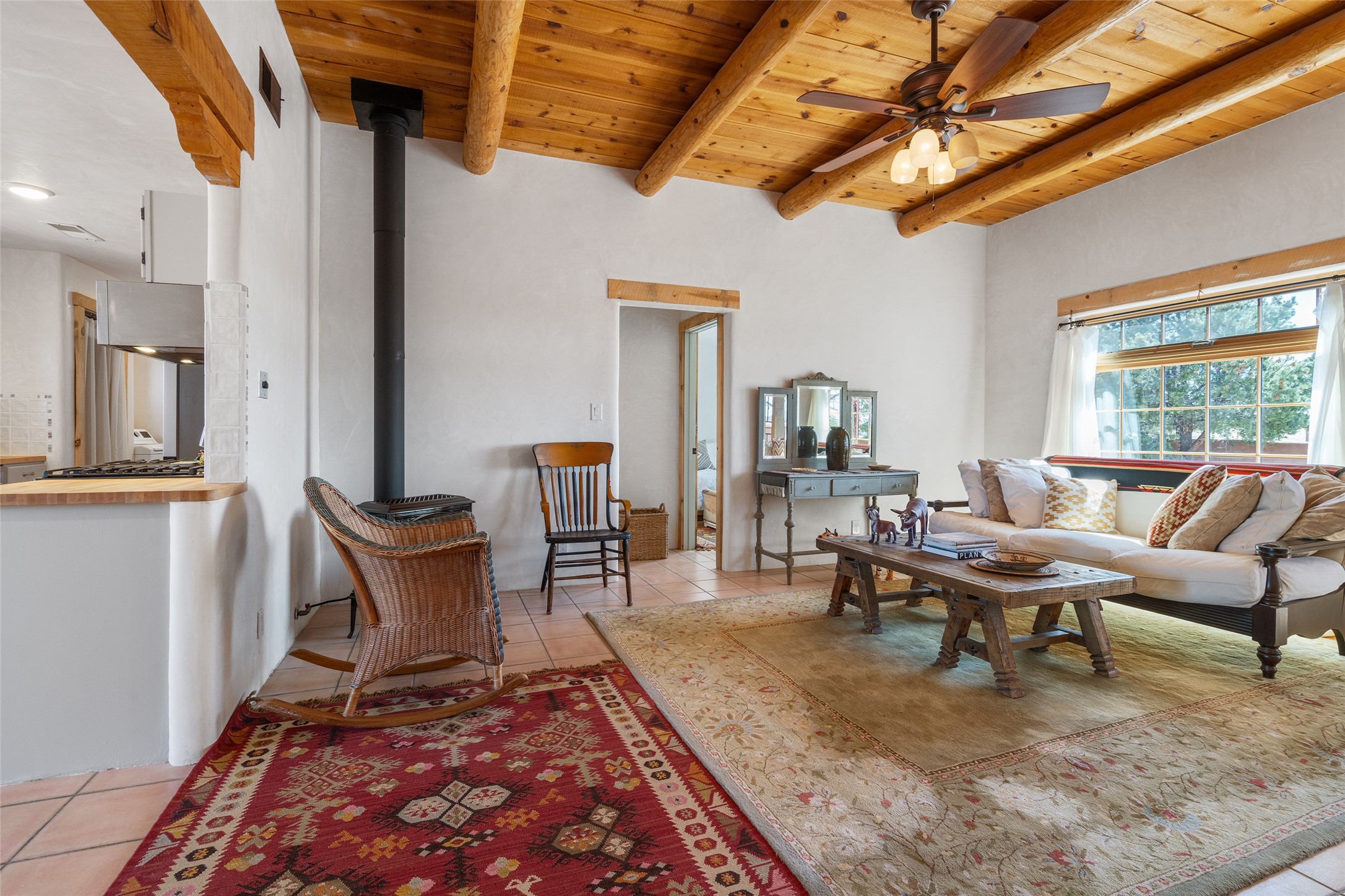 This unique jewel box home at 11 Bosque Loop offers serenity, natural beauty, abundant wildlife, and convenience in one of Santa Fe's most desirable locations. Sited on 1.24 acres on an arroyo green space, the house has been lovingly renovated with design, character, and quality in mind: natural materials and finishes, and hand-crafted traditional features such as high ceiling vigas, door and window lintels, rough sawn beams, corbels, Spanish tile, and diamond plaster walls that reflect abundant sunlight.The split floor plan offers an open living and dining area with views of the Sangre de Christo mountains. The primary suite is separated from the two guest bedrooms. Enjoy year-round comfort from the passive solar siting with forced air heating and air conditioning.The airy kitchen and both full bathrooms have been fully renovated with new Spanish tile, fixtures, and appliances.Step outside and savor the big skies, abundant birdsong, and vibrant landscape. A walled courtyard contains raised garden beds, trees, and plenty of room for your flowering pots. Coyote fencing offers privacy in the backyard.Eldorado community has many amenities. Extensive hike/bike trails, access to the Santa Fe Rail Trail, nearby shopping and service complexes, a gym and day care center, hardware store, cafes and restaurants, and a county library are all within a 5-minute drive.With its gorgeous setting and thoughtful renovation, this turn-key home invites you to experience the best of Santa Fe's relaxing lifestyle, full of beauty and tranquility. Schedule a showing today!