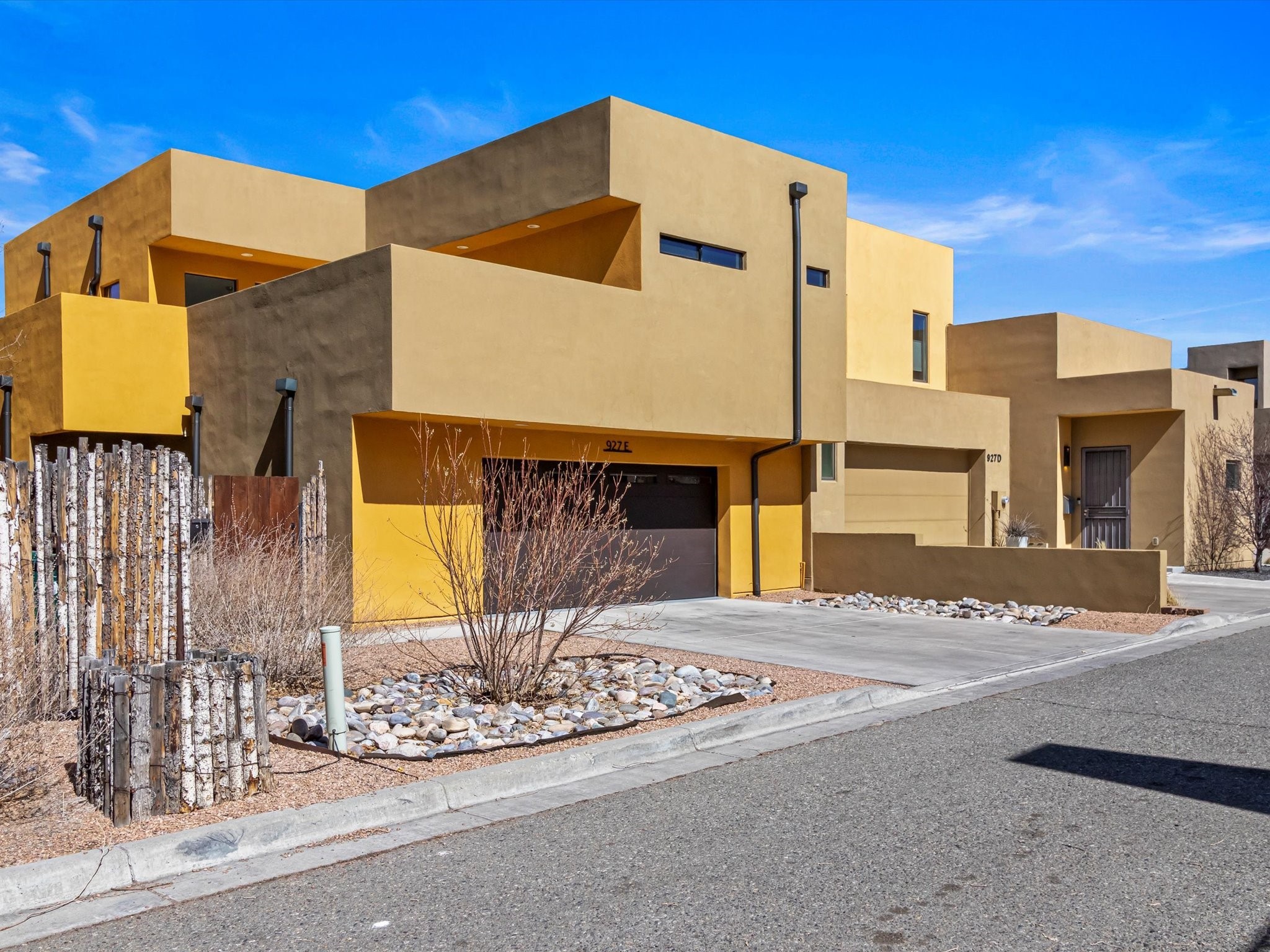 Experience exceptional Santa Fe living in this beautiful, Active Solar, contemporary condominium designed by the current owner. This all Electric, Energy Positive home boasts an Emerald Green NM Certification, Reverse Osmosis water system, new 50 AMP Electric car charger, Radiant Floor Heat (including the garage), Mitsubishi Mini splits and EnergyStar Bosch Kitchen appliances. Top of the line TPO roof with a traction layer covers the wrap-around outdoor deck where you can relax and enjoy views of the Sangre de Cristo mountains. Located in the no-outlet, highly desirable Rio Sendero Complex and nestled up against the Santa Fe River Walk Trail. The River Walk Trail accesses Downtown (1.2 miles); closely connected to two of Santa Fe's most valued areas: The Santa Fe Railyard Area with its restaurants and galleries, and the vibrant, ever-popular Santa Fe Farmers Market (1.1 miles) or go west to enjoy miles of open connected trails. For daily needs, across the street, are restaurants, groceries and a new gastro-pub. At home, the open-plan kitchen and living areas have beautiful soaring ceilings and access to a lovely ground floor rear patio. A downstairs bedroom could double as an office and the primary upstairs bedroom feels separate and cozy with its en suite bath. Low water landscape on drip irrigation. Less than five years old, this home is truly one of a kind and will garner much interest. Must see!The County Assessor shows Square footage at 1231 which differs from the builder's plans. Neither Listing Broker or Seller warrant the square footage of the lot or building. If the size of the home or lot is of material consideration to the Buyer, then the Buyer should have them measured.