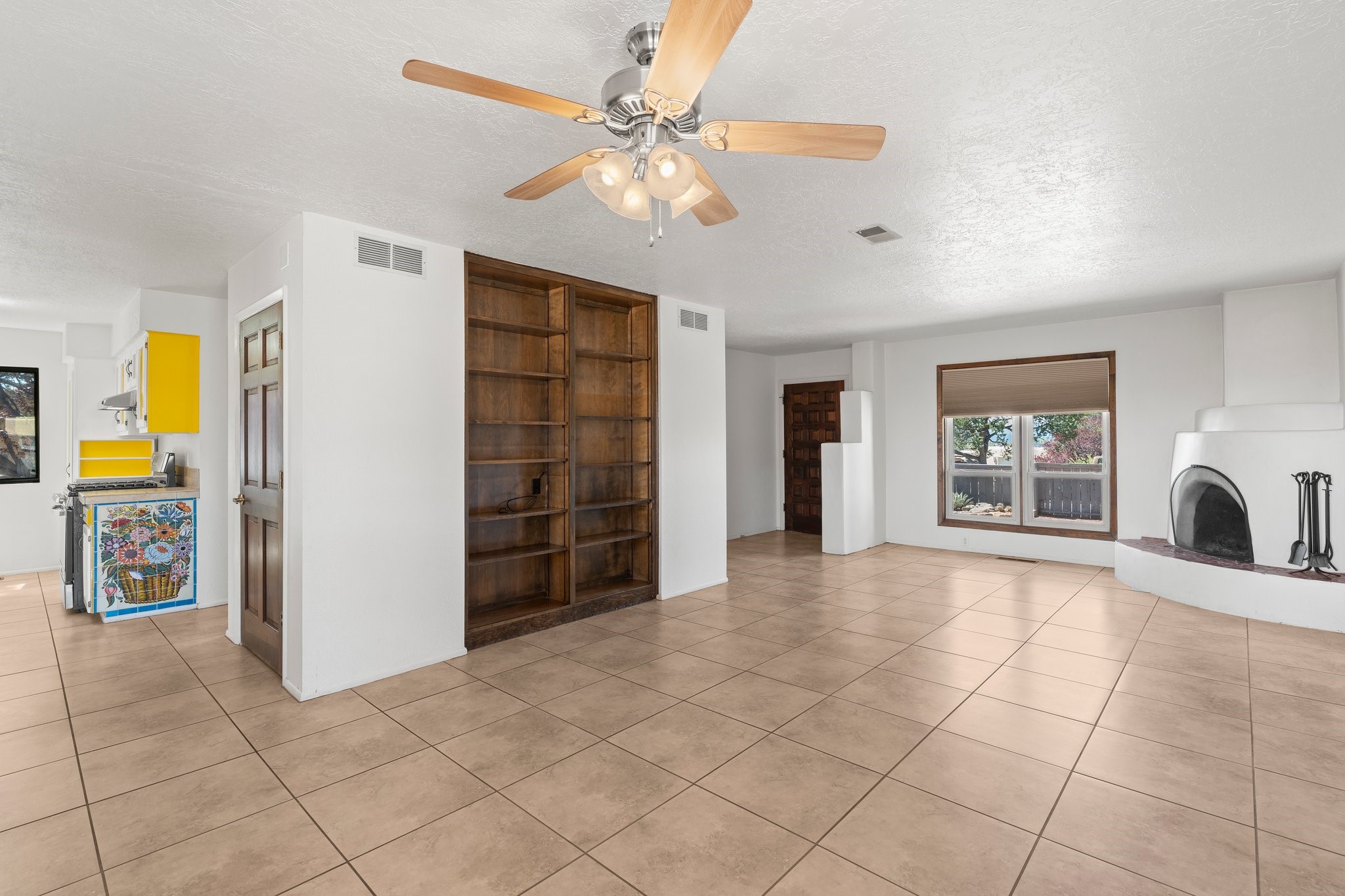 Tucked away in a peaceful interior setting within the community, this charming single-story home offers serene living with no steps and a thoughtful layout. Step through the tranquil entry courtyard and into a beautiful residence where tile floors flow throughout, blending comfort with easy care.The heart of the home is the welcoming living room, where a cozy corner Kiva fireplace and built-in bookshelves create the perfect space to unwind or entertain. The adjacent kitchen shines with newer stainless steel appliances and opens to a bright morning room -- ideal for sipping coffee, working from home, or enjoying sun-filled breakfasts.With two well-sized bedrooms and two full bathrooms, there's plenty of space for both rest and relaxation. Step outside to your own private oasis: a covered portal and tiled patio offer year-round enjoyment, while the fenced yard provides privacy and space for gardening, pets, or quiet reflection.Additional features include an oversized one-car garage and coveted views of the Jemez Mountains that add a touch of magic to everyday living. Quiet, comfortable, and full of Southwestern charm -- this is a home you'll love coming back to.Park Plazas offers miles of walking trails, a community garden, tennis courts, an off-leash dog park and many other amenities. The neighborhood is centrally located very close to shopping, restaurants and all things Santa Fe.