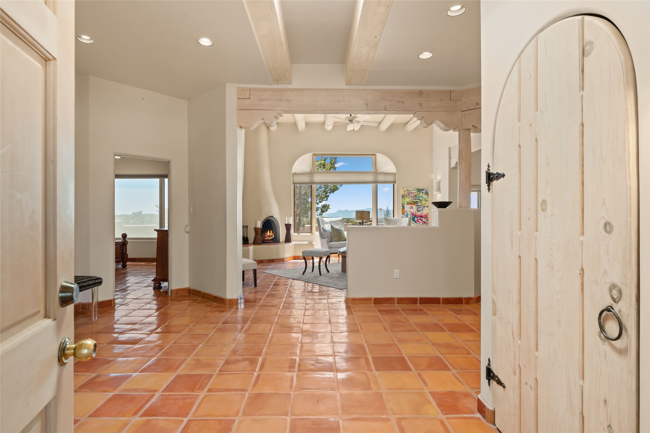 Come enjoy peace and solitude with the VIEWS, VIEWS, and more VIEWS of the Ortiz & Sandia Mountains. A single level home and separate studio on five acres, 3 bedroom, 3 bath, with custom whitewashed wood doors, Saltillo tile radiant heated floors, and an island in the kitchen is MOVE-IN ready. The additional studio (artist/musician or you choose!) also with Saltillo tile floors has its own half bath and heated garage/workshop. High ceilings, and open concept with wonderful light to enjoy, two car garage on the main house, one car garage or workshop off the studio and 2300 +/- square foot in total. Six minutes to the La Tienda for easy grocery shopping, coffee with a friend, Santa Fe Brewing, or mailing off your packages. Downtown Santa Fe is about 15 +/- minutes for your in-town socializing. Septic, HOA and Title are completed - Easy to view.Septic, HOA and Title are completed - Easy to view.