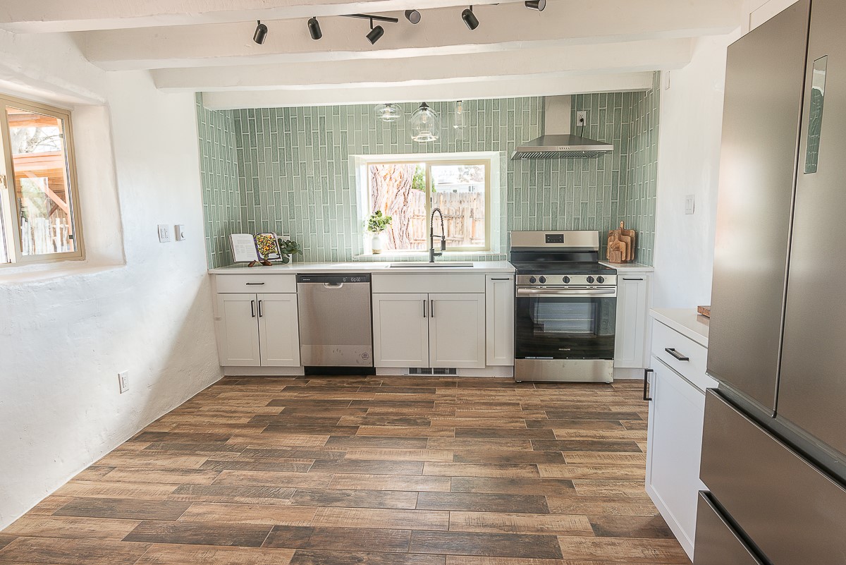 Nestled in the heart of Pojoaque Valley, this charming classic adobe home blends timeless character with modern upgrades.Step inside to find brand-new Florida tile porcelain flooring throughout, fresh paint, and new light fixtures that brighten every space. The kitchen shines with new quartz countertops and all-new appliances, including a refrigerator, dishwasher, stove, washing machine, and dryer. Stay comfortable year-round with a new mini-split system, updated electric, and a brand-new advanced treatment unit septic system.The spacious bedrooms boast large closets, with a walk-in closet in the primary suite. A custom built-in bookshelf adds character and function to the secondary, which could be used as a bedroom or dedicated office.Outside, a fenced-in yard provides privacy and space to enjoy the serene surroundings. The property includes a shared well in the backyard (serving two neighboring homes) and a covered carport for convenience.Located just 20 minutes from Los Alamos, Santa Fe, and Espaola, this home offers the perfect balance of peaceful living with easy access to work, dining, and entertainment. Don't miss this rare opportunity to own a beautifully updated adobe home in an unbeatable location!This is an owner/broker property.