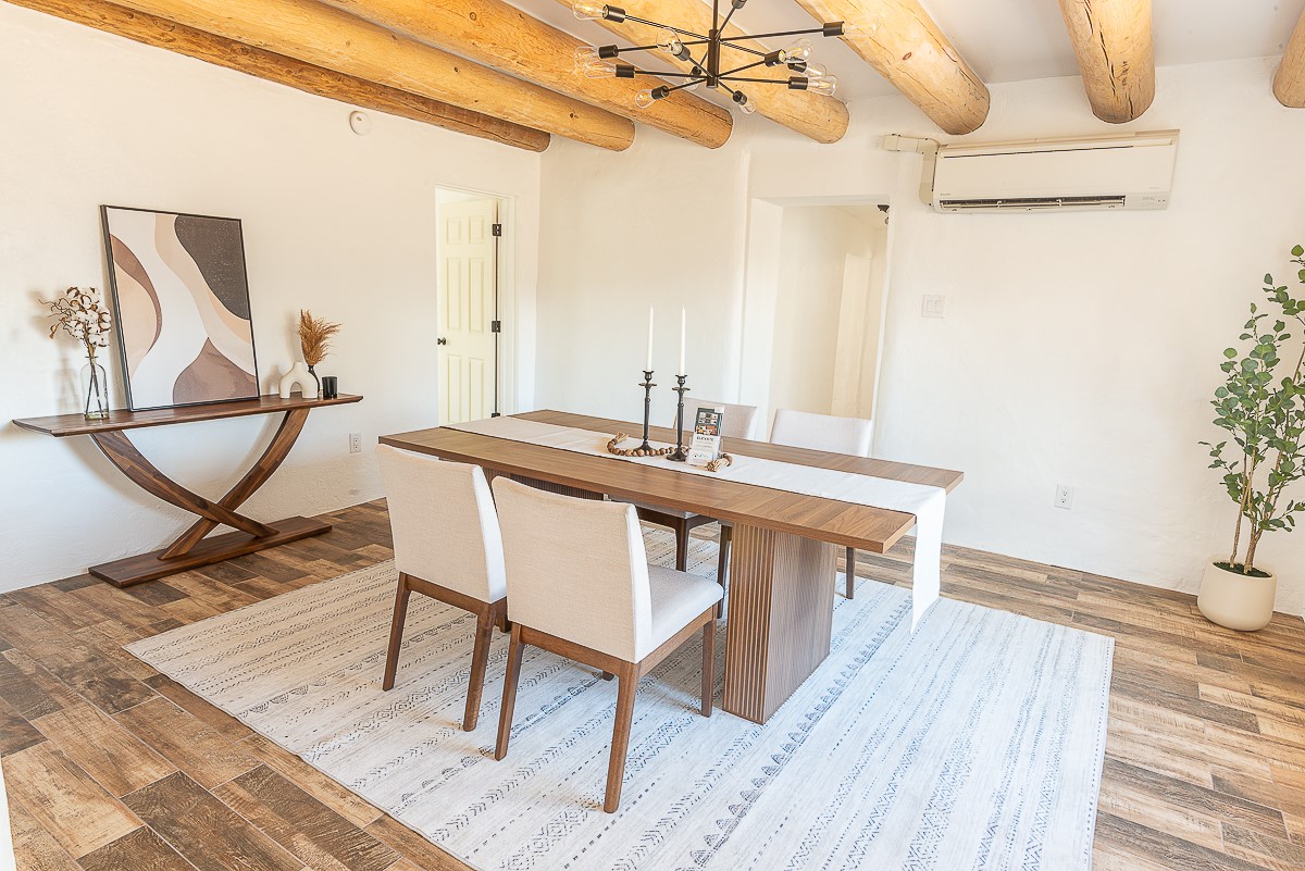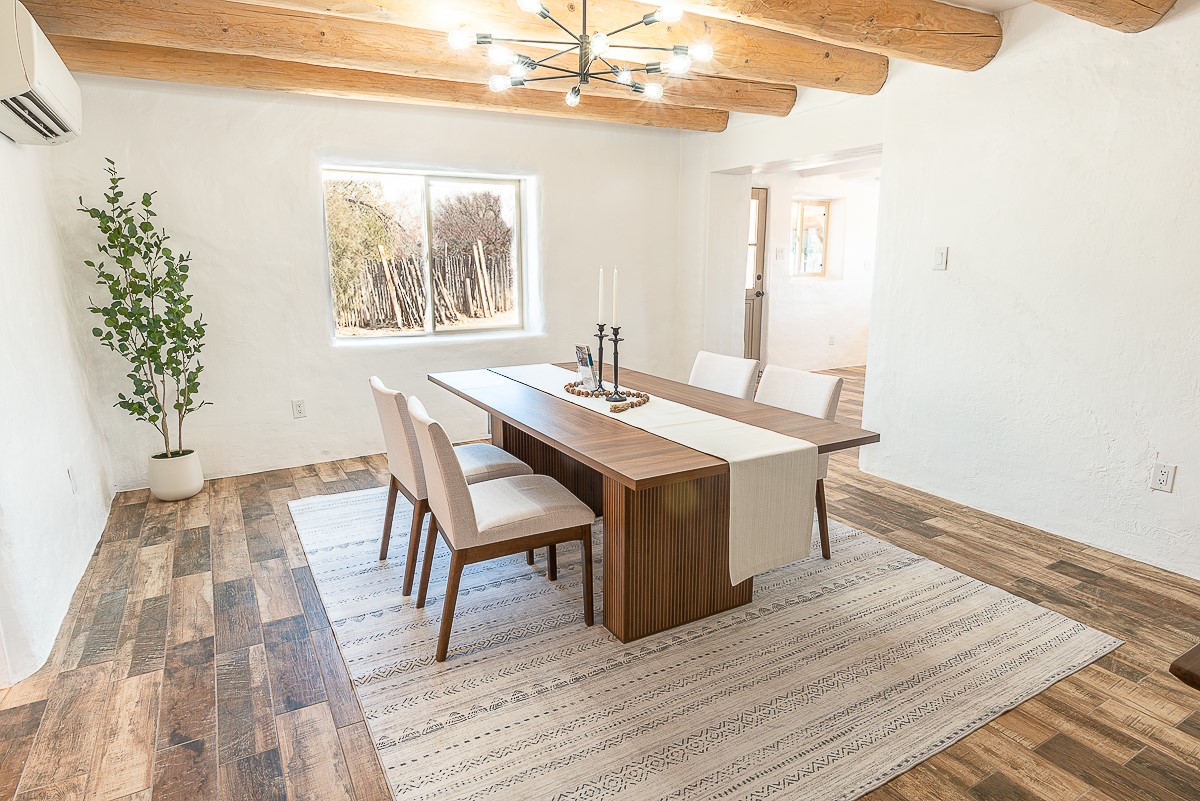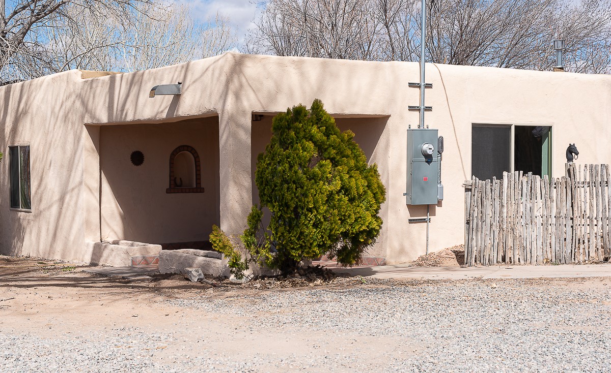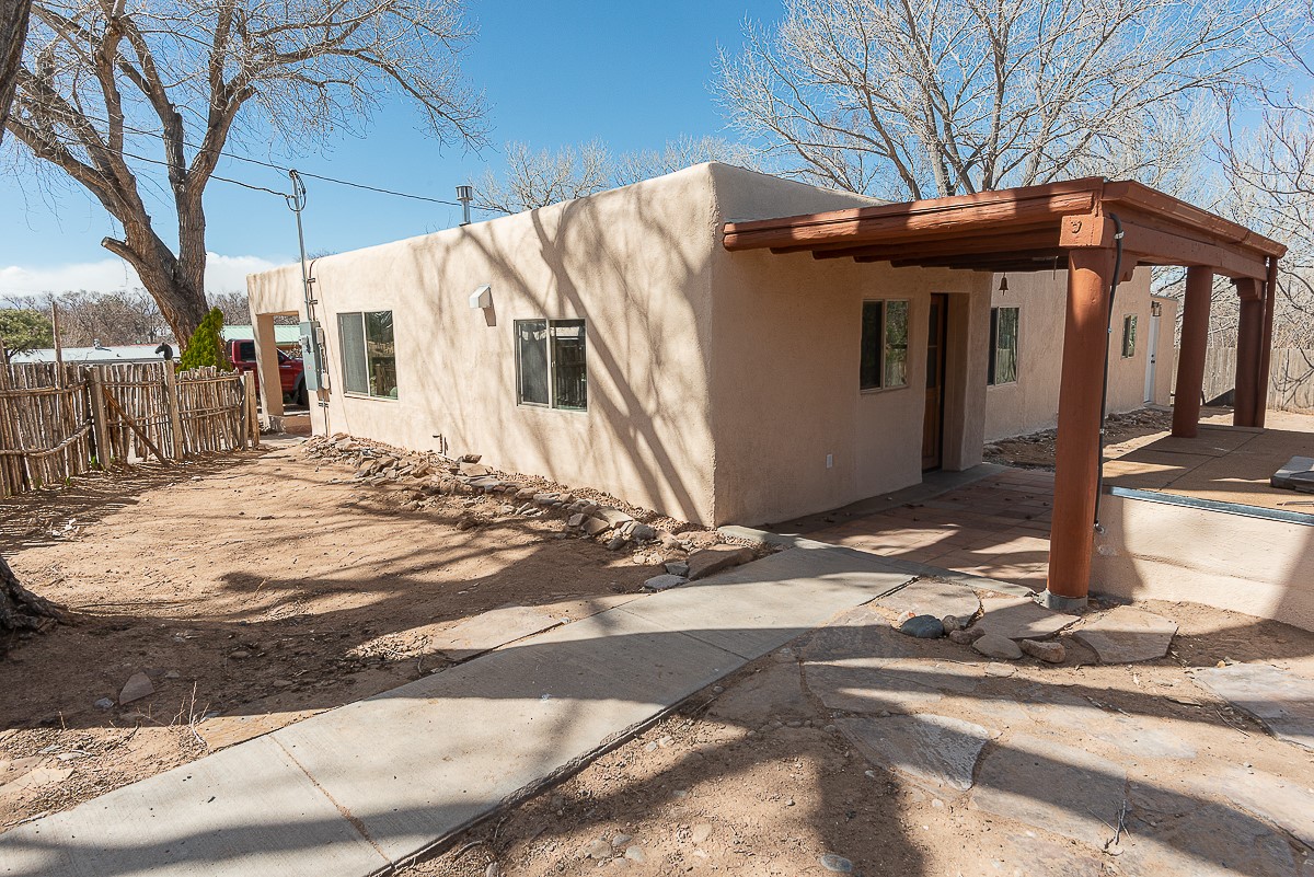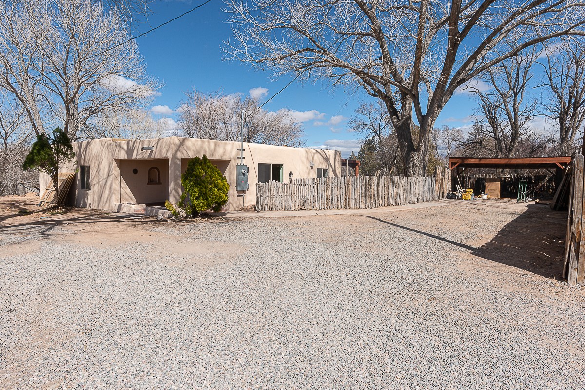 Nestled in the heart of Pojoaque Valley, this charming classic adobe home blends timeless character with modern upgrades.Step inside to find brand-new Florida tile porcelain flooring throughout, fresh paint, and new light fixtures that brighten every space. The kitchen shines with new quartz countertops and all-new appliances, including a refrigerator, dishwasher, stove, washing machine, and dryer. Stay comfortable year-round with a new mini-split system, updated electric, and a brand-new advanced treatment unit septic system.The spacious bedrooms boast large closets, with a walk-in closet in the primary suite. A custom built-in bookshelf adds character and function to the secondary, which could be used as a bedroom or dedicated office.Outside, a fenced-in yard provides privacy and space to enjoy the serene surroundings. The property includes a shared well in the backyard (serving two neighboring homes) and a covered carport for convenience.Located just 20 minutes from Los Alamos, Santa Fe, and Espaola, this home offers the perfect balance of peaceful living with easy access to work, dining, and entertainment. Don't miss this rare opportunity to own a beautifully updated adobe home in an unbeatable location!This is an owner/broker property.