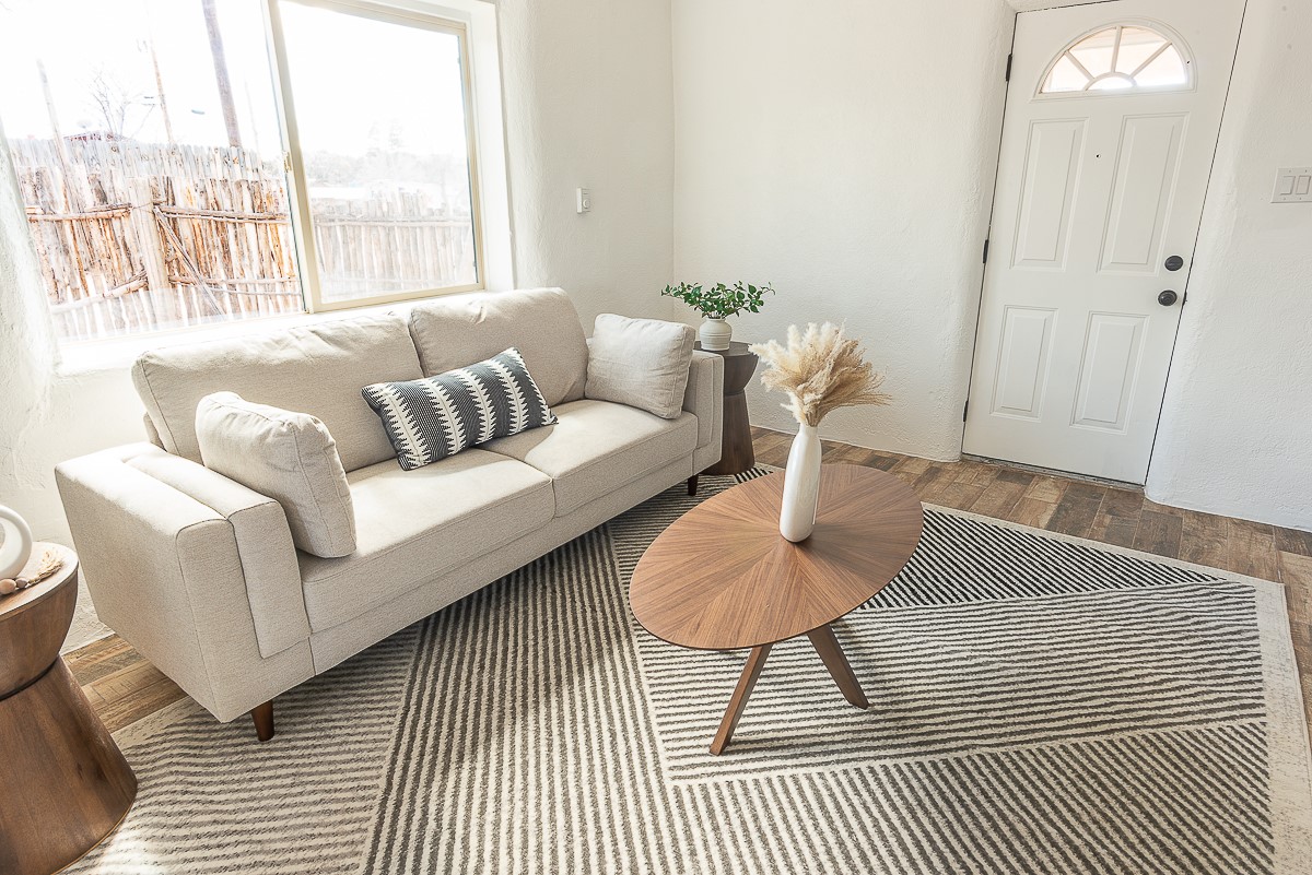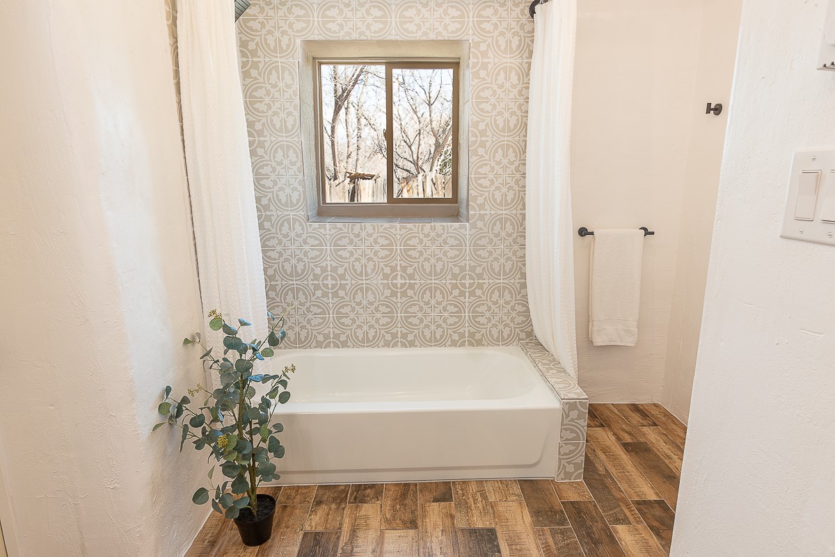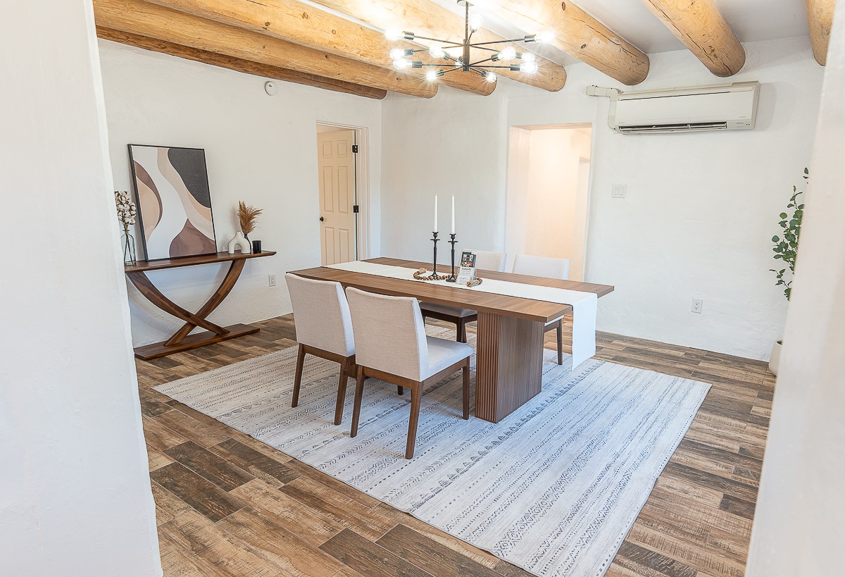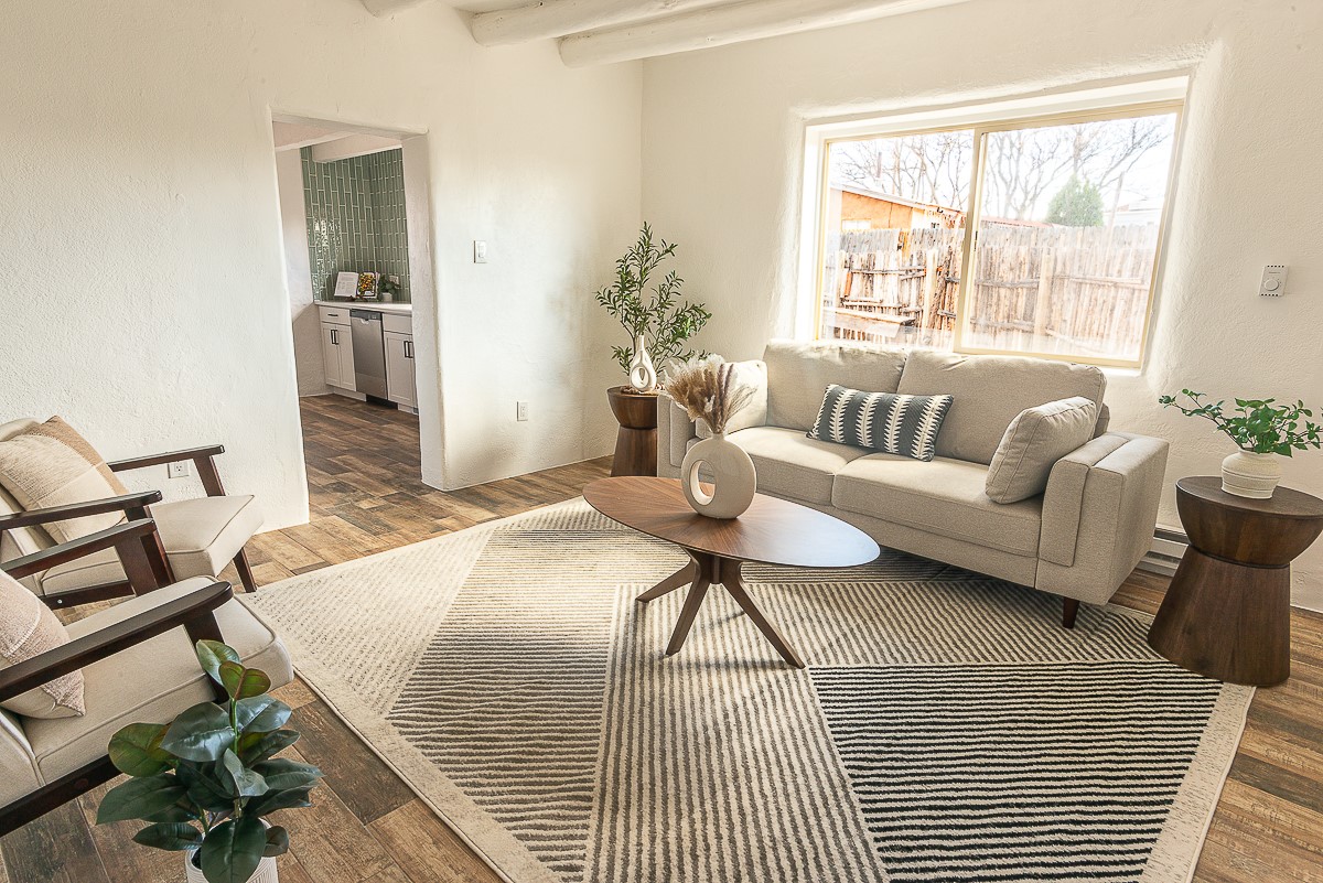 Nestled in the heart of Pojoaque Valley, this charming classic adobe home blends timeless character with modern upgrades.Step inside to find brand-new Florida tile porcelain flooring throughout, fresh paint, and new light fixtures that brighten every space. The kitchen shines with new quartz countertops and all-new appliances, including a refrigerator, dishwasher, stove, washing machine, and dryer. Stay comfortable year-round with a new mini-split system, updated electric, and a brand-new advanced treatment unit septic system.The spacious bedrooms boast large closets, with a walk-in closet in the primary suite. A custom built-in bookshelf adds character and function to the secondary, which could be used as a bedroom or dedicated office.Outside, a fenced-in yard provides privacy and space to enjoy the serene surroundings. The property includes a shared well in the backyard (serving two neighboring homes) and a covered carport for convenience.Located just 20 minutes from Los Alamos, Santa Fe, and Espaola, this home offers the perfect balance of peaceful living with easy access to work, dining, and entertainment. Don't miss this rare opportunity to own a beautifully updated adobe home in an unbeatable location!This is an owner/broker property.