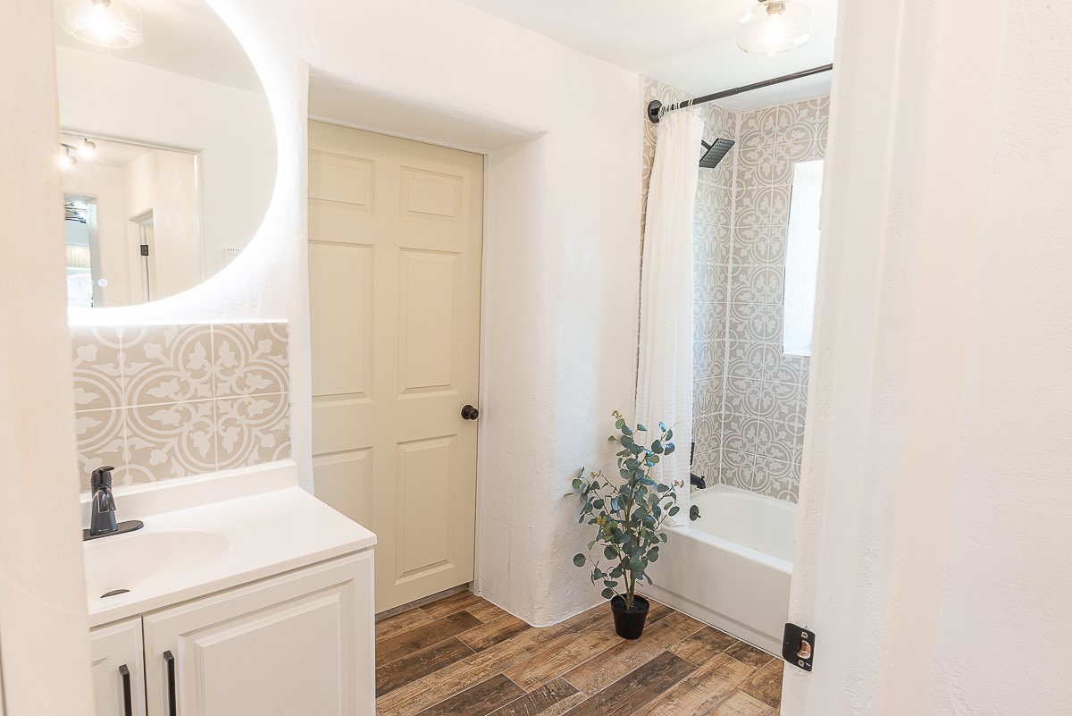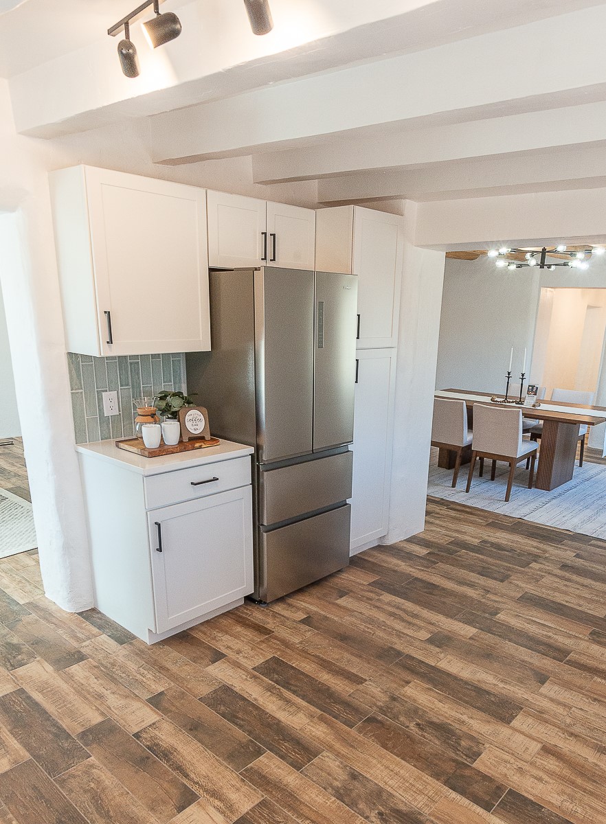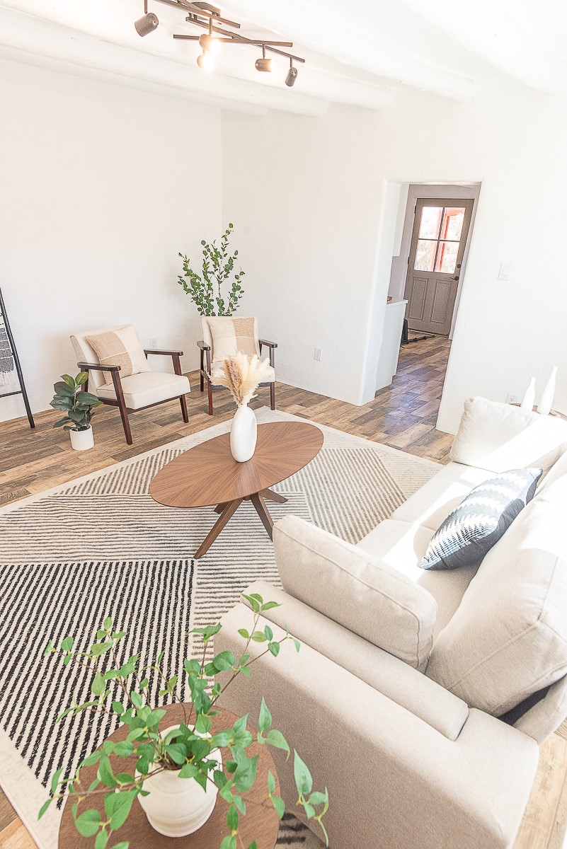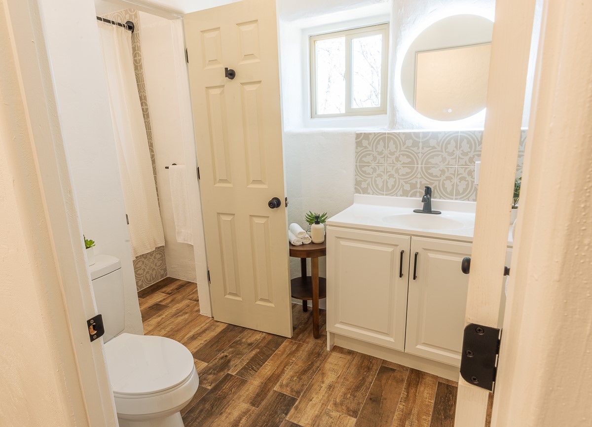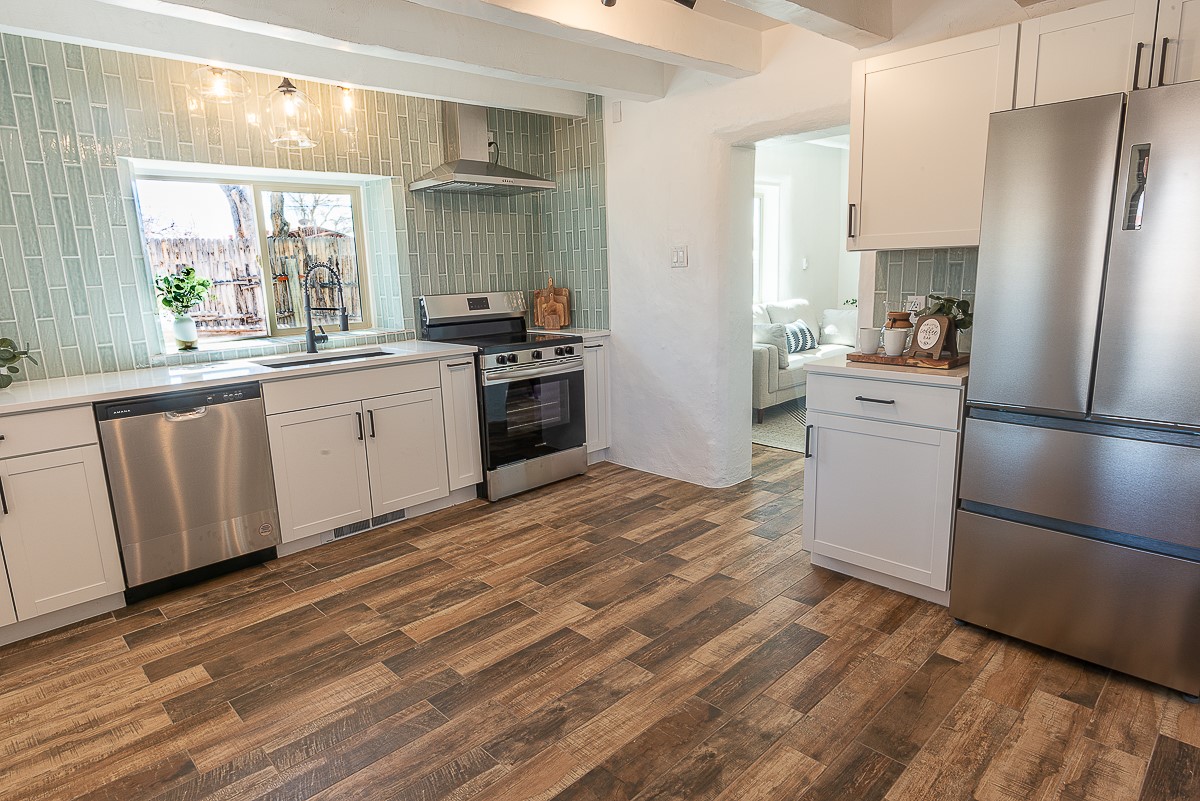 Nestled in the heart of Pojoaque Valley, this charming classic adobe home blends timeless character with modern upgrades.Step inside to find brand-new Florida tile porcelain flooring throughout, fresh paint, and new light fixtures that brighten every space. The kitchen shines with new quartz countertops and all-new appliances, including a refrigerator, dishwasher, stove, washing machine, and dryer. Stay comfortable year-round with a new mini-split system, updated electric, and a brand-new advanced treatment unit septic system.The spacious bedrooms boast large closets, with a walk-in closet in the primary suite. A custom built-in bookshelf adds character and function to the secondary, which could be used as a bedroom or dedicated office.Outside, a fenced-in yard provides privacy and space to enjoy the serene surroundings. The property includes a shared well in the backyard (serving two neighboring homes) and a covered carport for convenience.Located just 20 minutes from Los Alamos, Santa Fe, and Espaola, this home offers the perfect balance of peaceful living with easy access to work, dining, and entertainment. Don't miss this rare opportunity to own a beautifully updated adobe home in an unbeatable location!This is an owner/broker property.