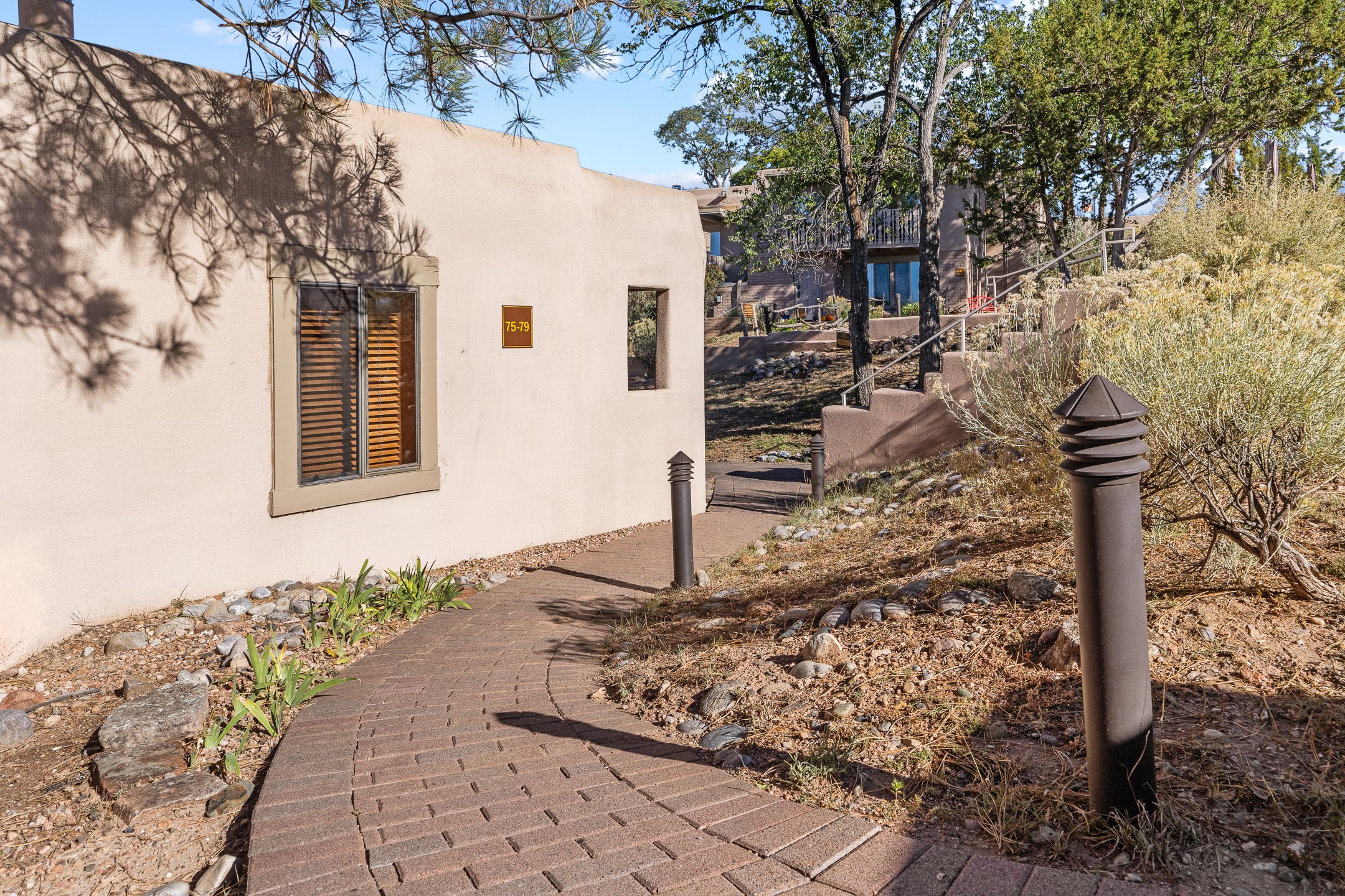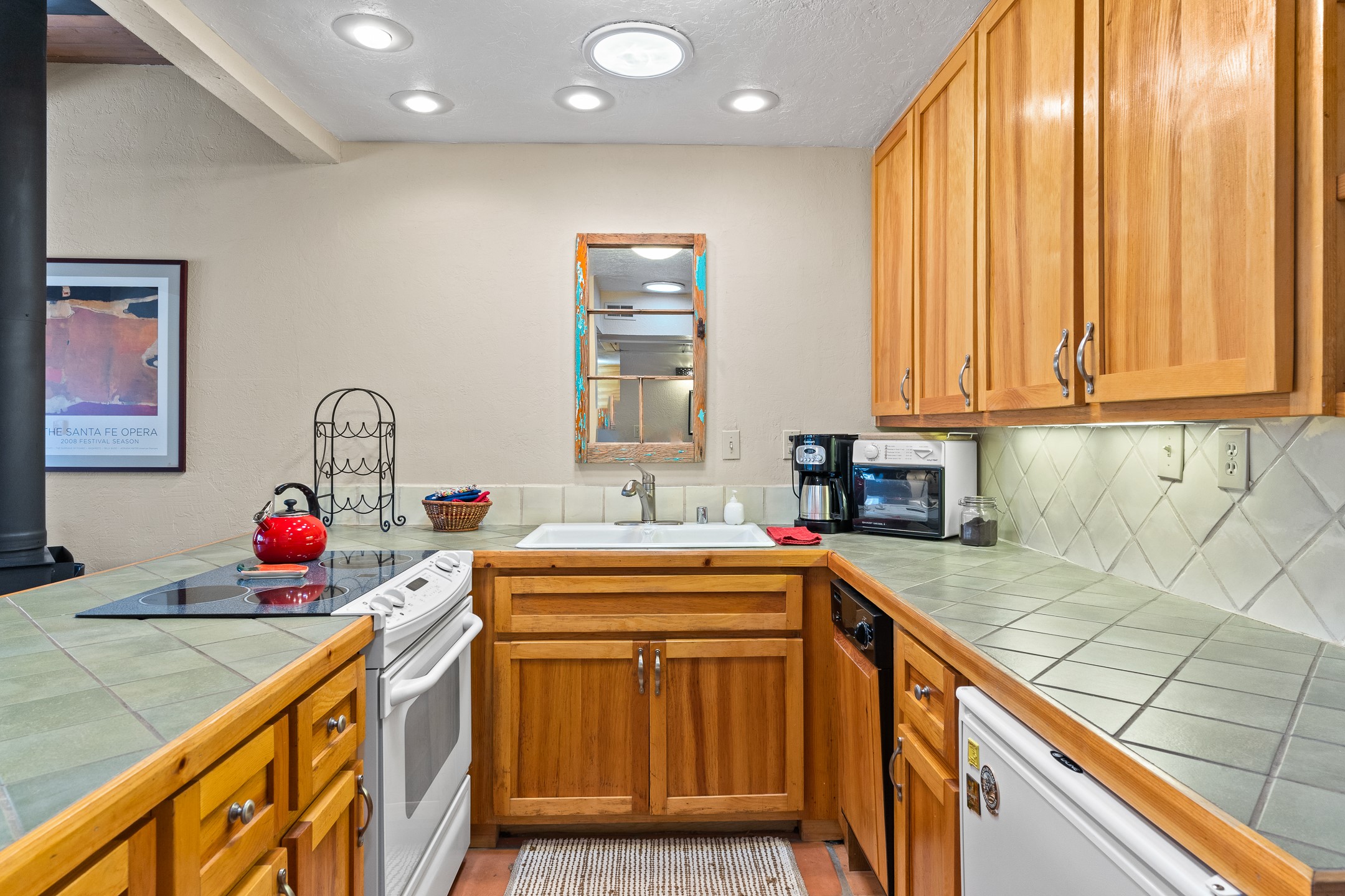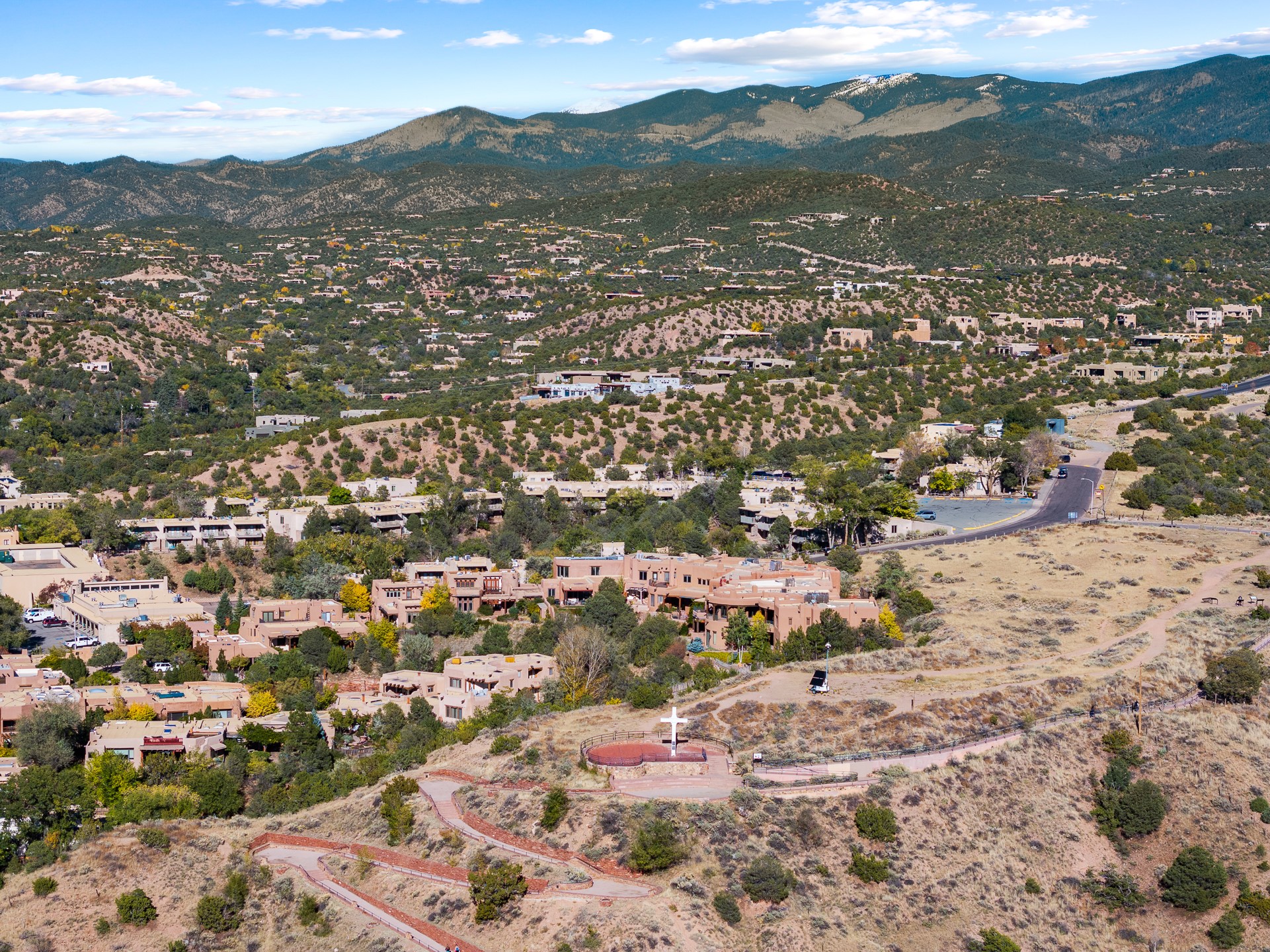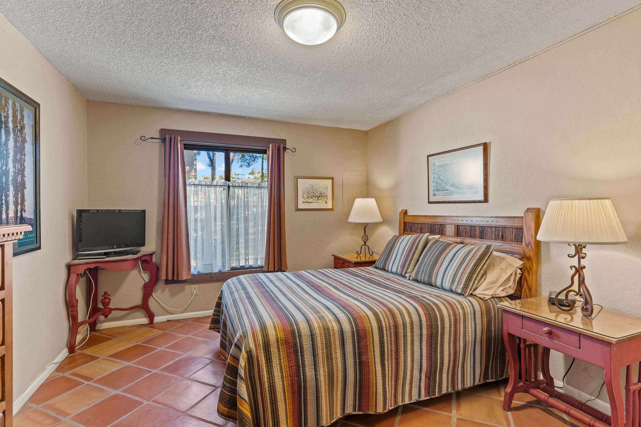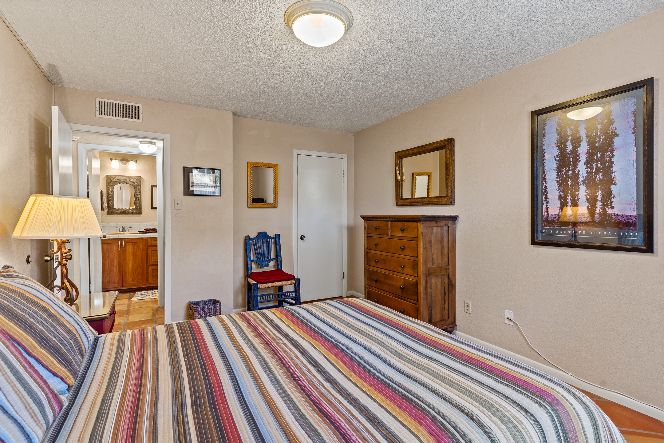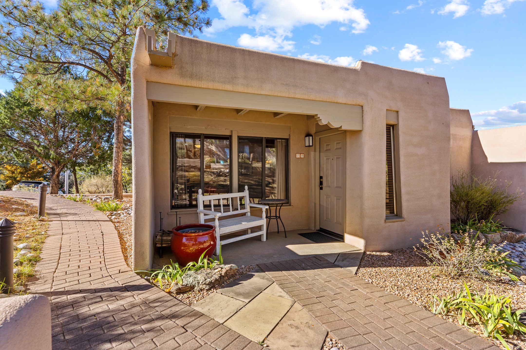 This welcoming one bedroom, one bathroom condo at the Fort Marcy Compound is just 6 blocks from the downtown plaza, and 1 block off Artist/Hyde Park road to 10,000 Waves, hiking & biking trails, and Ski Santa Fe. The pleasant interior is nicely updated, to include a washer/dryer, double sink vanity, and walk-in shower. The kitchen is open and roomy, and the wood-burning stove in the living room will keep you and your guests toasty all winter long! This end unit has no steps to access from parking, and features more windows than others, giving the interior a nice, cheery feel. New roof and HVAC system in 2024. This condo has been enjoyed by the same owner for 22 years over every season, with the east-facing porch cool for summer evenings, and walking a short distance up the hill to catch the sunset and expansive views. Although within walking distance to the downtown area, this condo provides a cozy, quiet retreat. Fort Marcy is a unique property with condos sited over 10 acres, and much of the site left in a natural state, some areas much like a small forest, right in town! This is truly a lock and leave, or can be used for short-term rentals. Full furniture [package conveys with sale at zero dollars. All contents included. Professional management company on-site offers a rental program, and manages the physical plant. Google All Seasons Resort Lodging for more information.