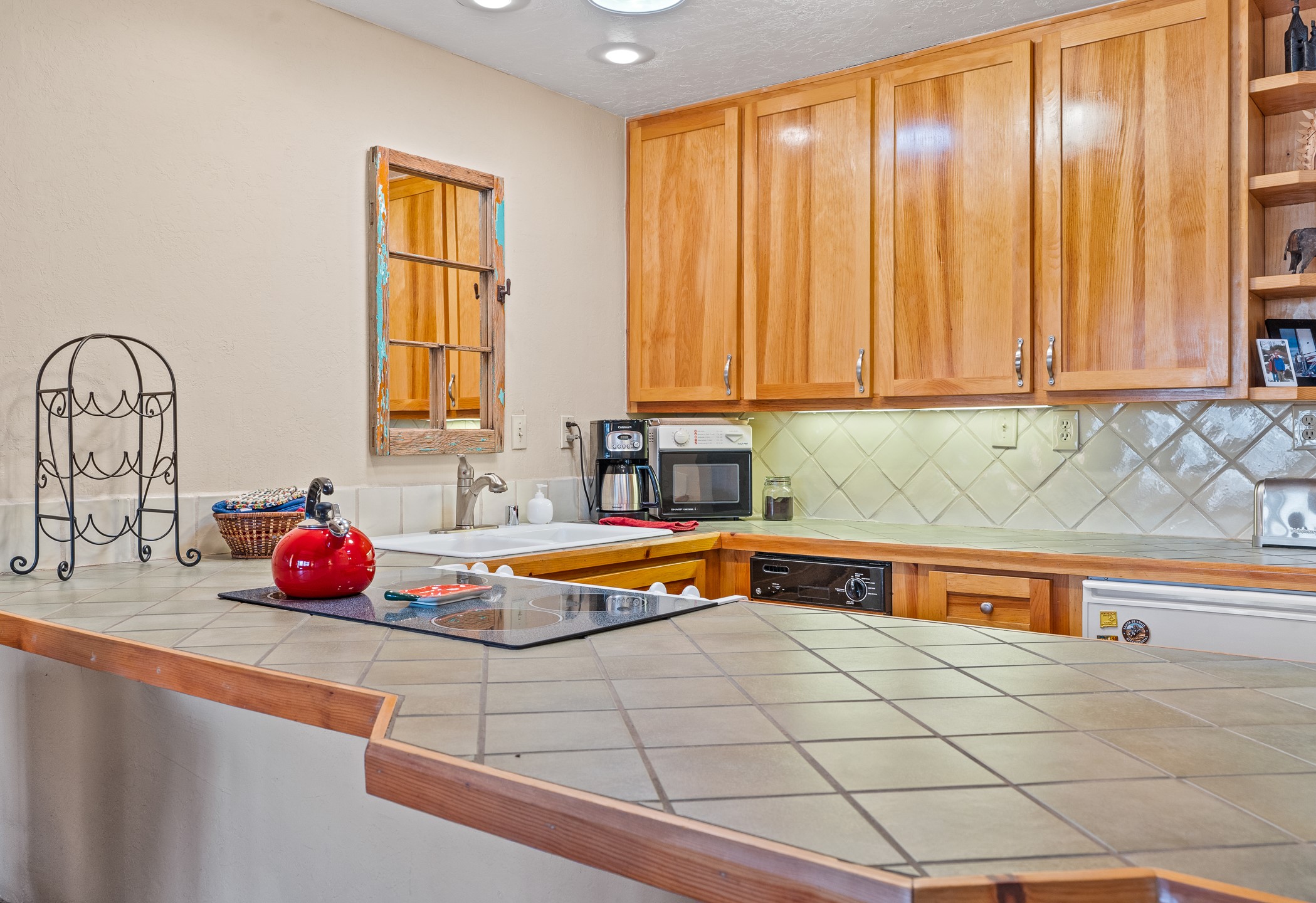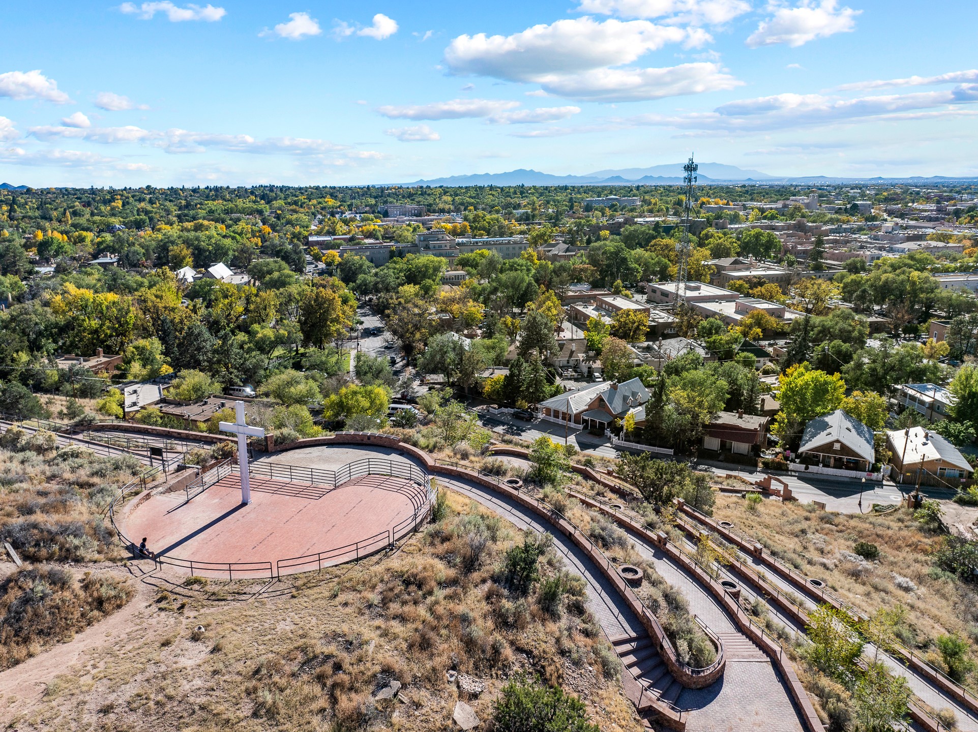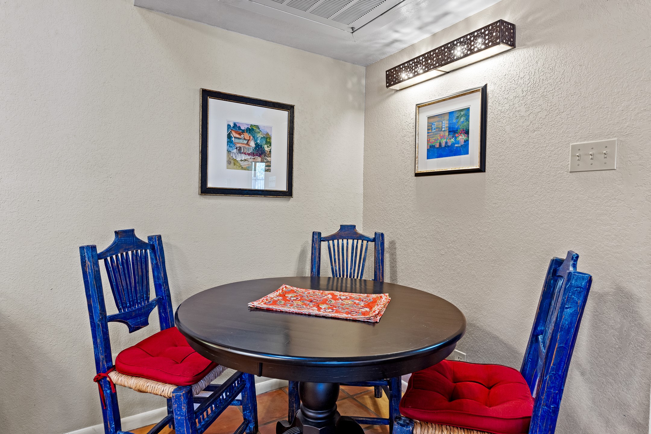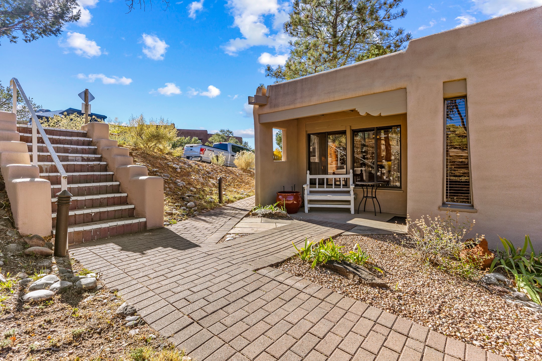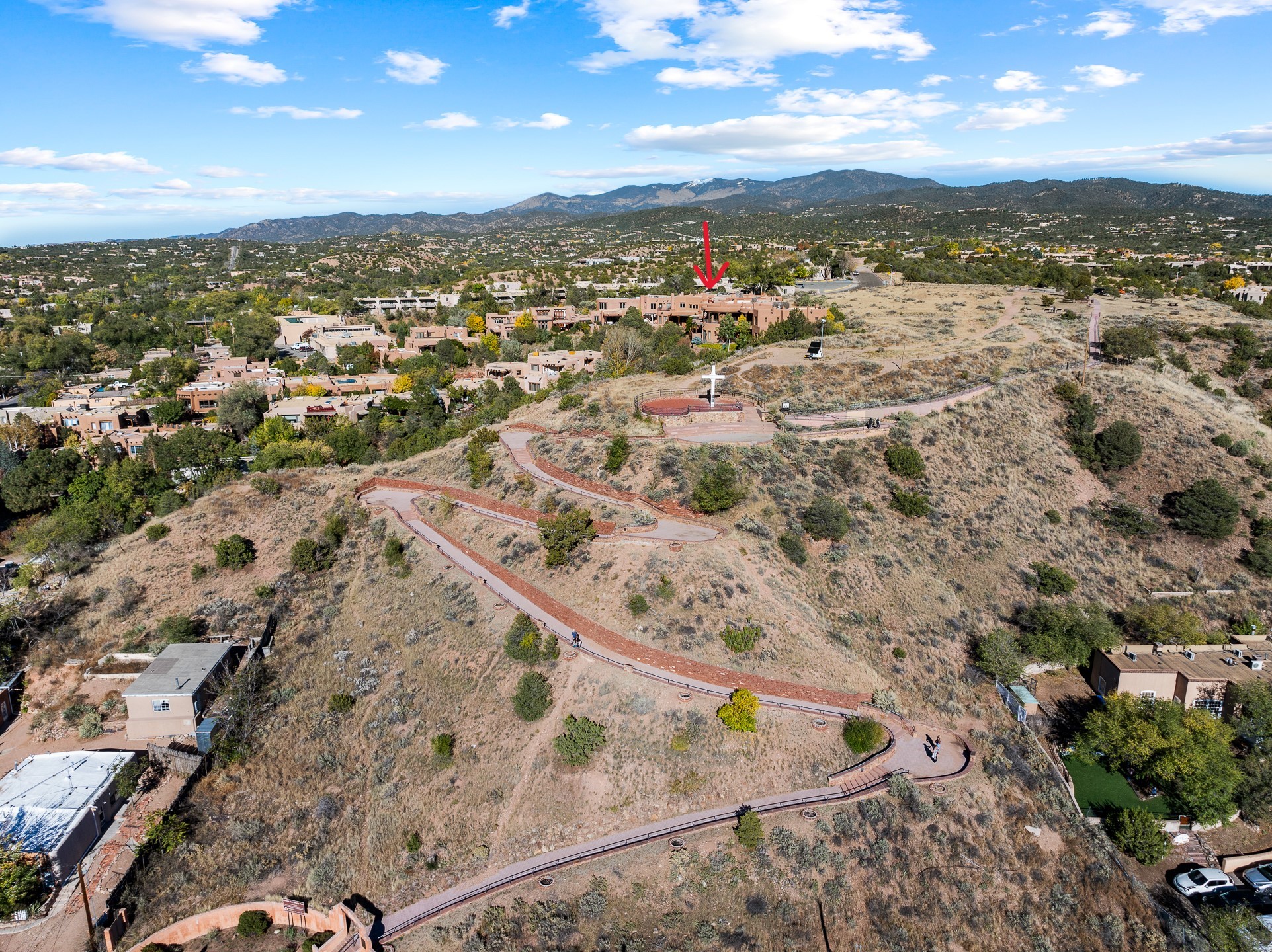 This welcoming one bedroom, one bathroom condo at the Fort Marcy Compound is just 6 blocks from the downtown plaza, and 1 block off Artist/Hyde Park road to 10,000 Waves, hiking & biking trails, and Ski Santa Fe. The pleasant interior is nicely updated, to include a washer/dryer, double sink vanity, and walk-in shower. The kitchen is open and roomy, and the wood-burning stove in the living room will keep you and your guests toasty all winter long! This end unit has no steps to access from parking, and features more windows than others, giving the interior a nice, cheery feel. New roof and HVAC system in 2024. This condo has been enjoyed by the same owner for 22 years over every season, with the east-facing porch cool for summer evenings, and walking a short distance up the hill to catch the sunset and expansive views. Although within walking distance to the downtown area, this condo provides a cozy, quiet retreat. Fort Marcy is a unique property with condos sited over 10 acres, and much of the site left in a natural state, some areas much like a small forest, right in town! This is truly a lock and leave, or can be used for short-term rentals. Full furniture [package conveys with sale at zero dollars. All contents included. Professional management company on-site offers a rental program, and manages the physical plant. Google All Seasons Resort Lodging for more information.