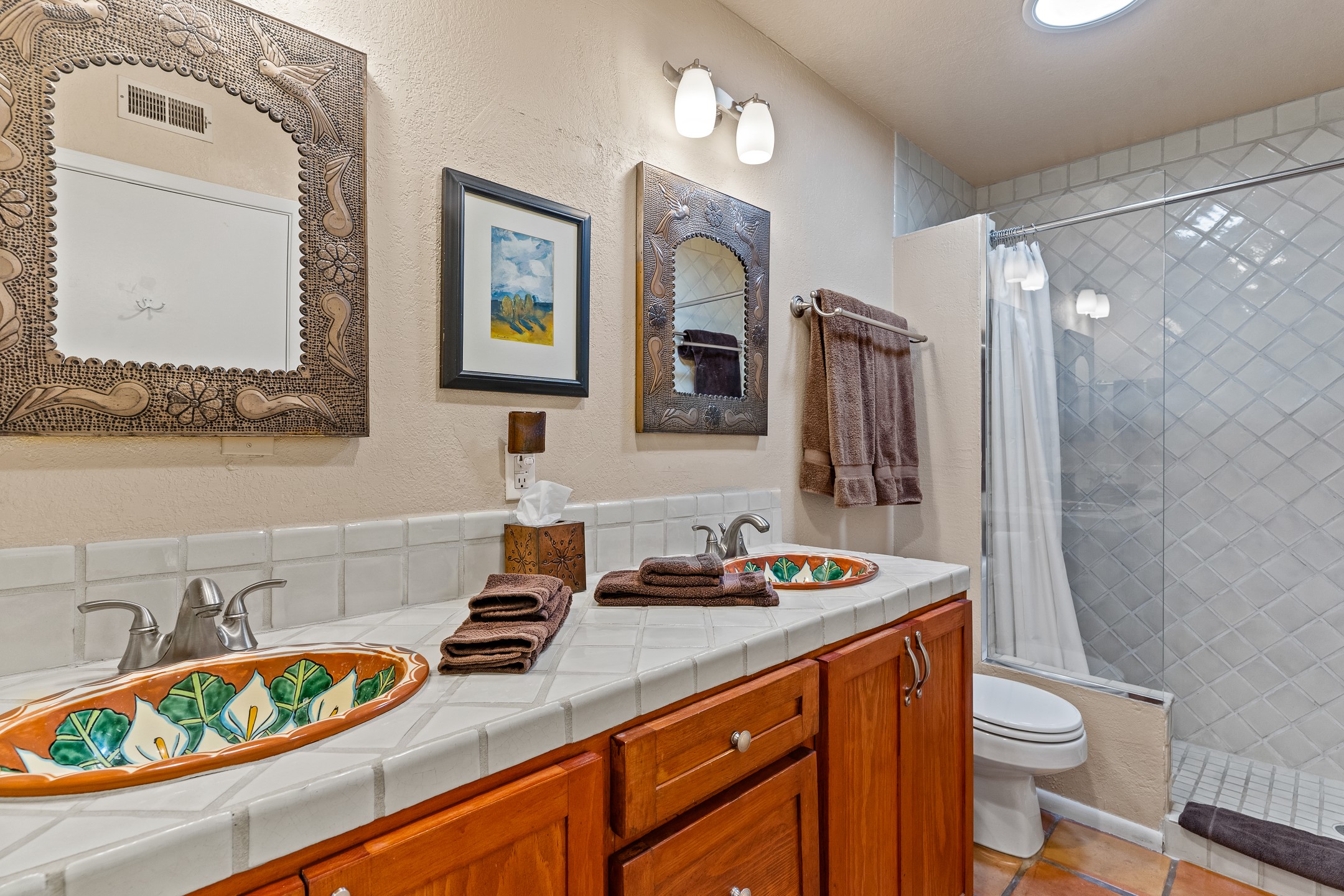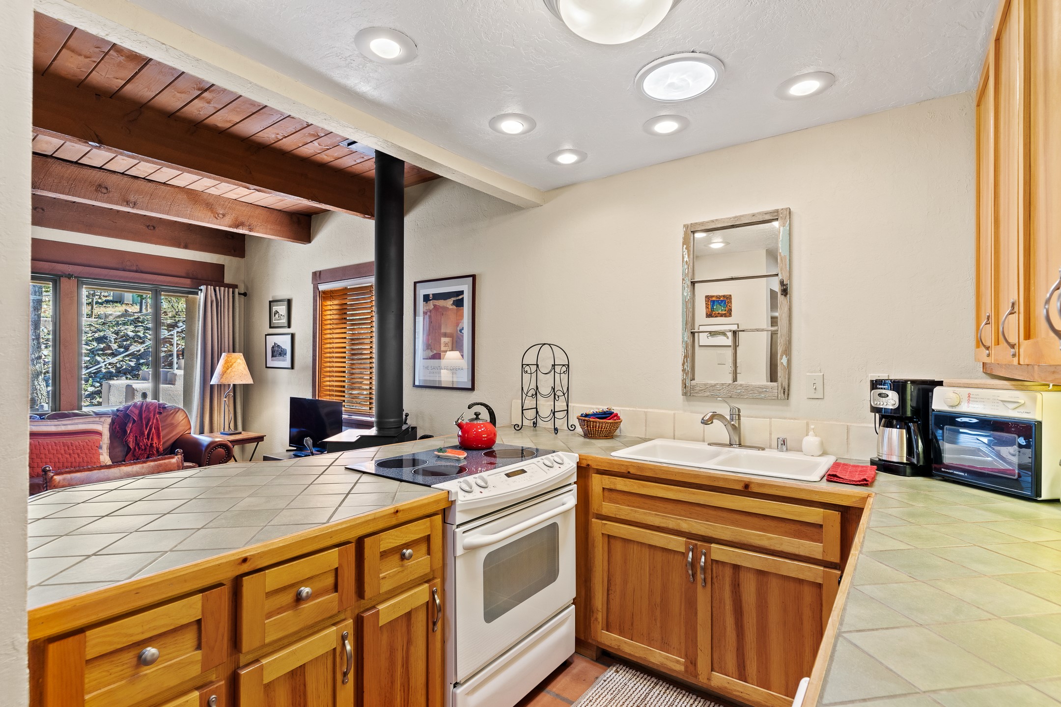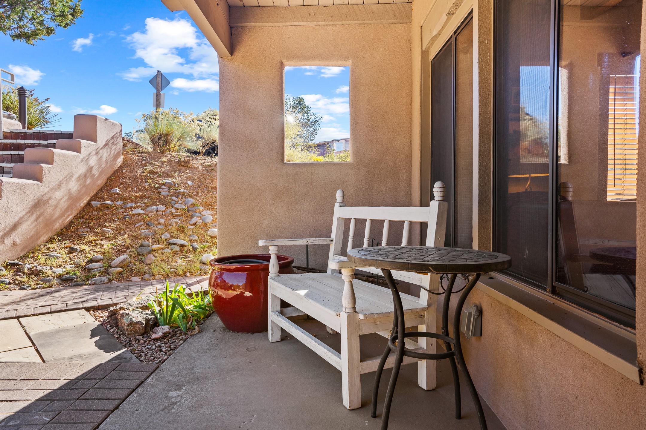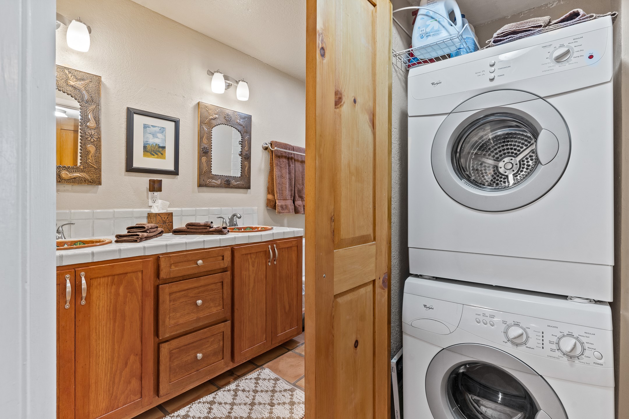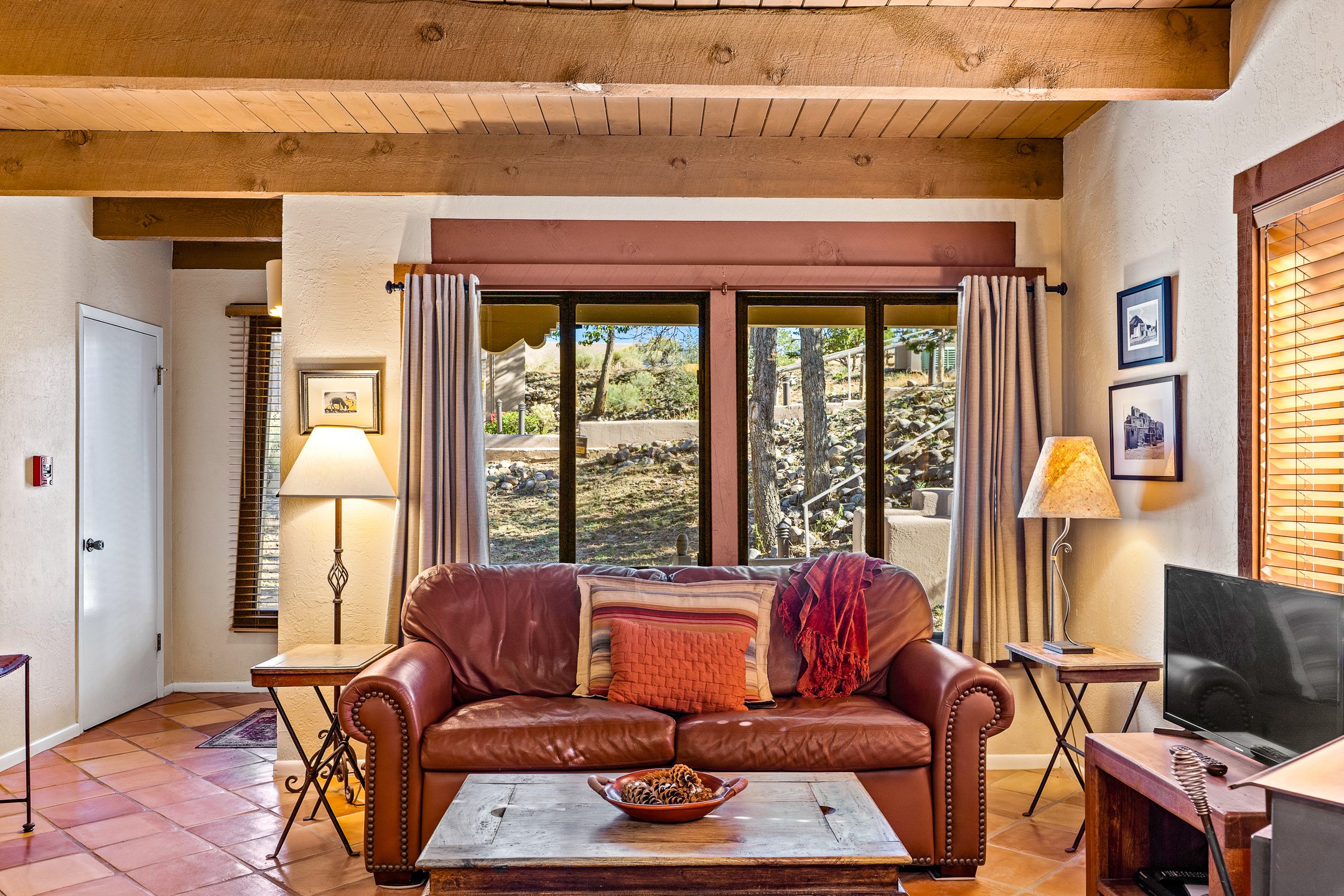 This welcoming one bedroom, one bathroom condo at the Fort Marcy Compound is just 6 blocks from the downtown plaza, and 1 block off Artist/Hyde Park road to 10,000 Waves, hiking & biking trails, and Ski Santa Fe. The pleasant interior is nicely updated, to include a washer/dryer, double sink vanity, and walk-in shower. The kitchen is open and roomy, and the wood-burning stove in the living room will keep you and your guests toasty all winter long! This end unit has no steps to access from parking, and features more windows than others, giving the interior a nice, cheery feel. New roof and HVAC system in 2024. This condo has been enjoyed by the same owner for 22 years over every season, with the east-facing porch cool for summer evenings, and walking a short distance up the hill to catch the sunset and expansive views. Although within walking distance to the downtown area, this condo provides a cozy, quiet retreat. Fort Marcy is a unique property with condos sited over 10 acres, and much of the site left in a natural state, some areas much like a small forest, right in town! This is truly a lock and leave, or can be used for short-term rentals. Full furniture [package conveys with sale at zero dollars. All contents included. Professional management company on-site offers a rental program, and manages the physical plant. Google All Seasons Resort Lodging for more information.