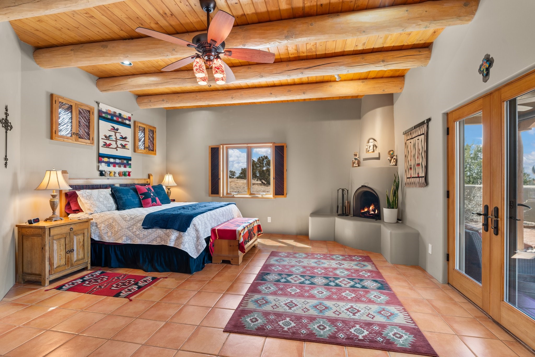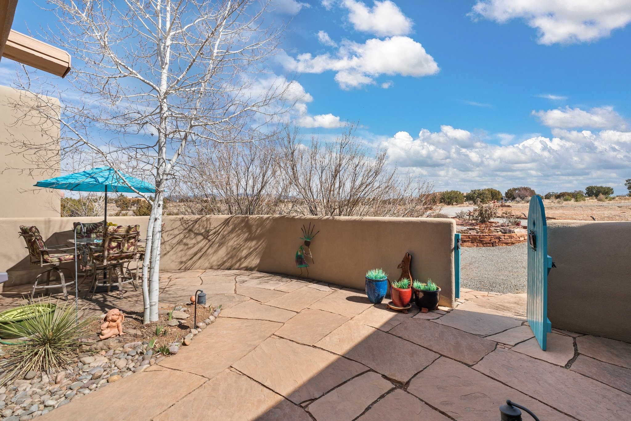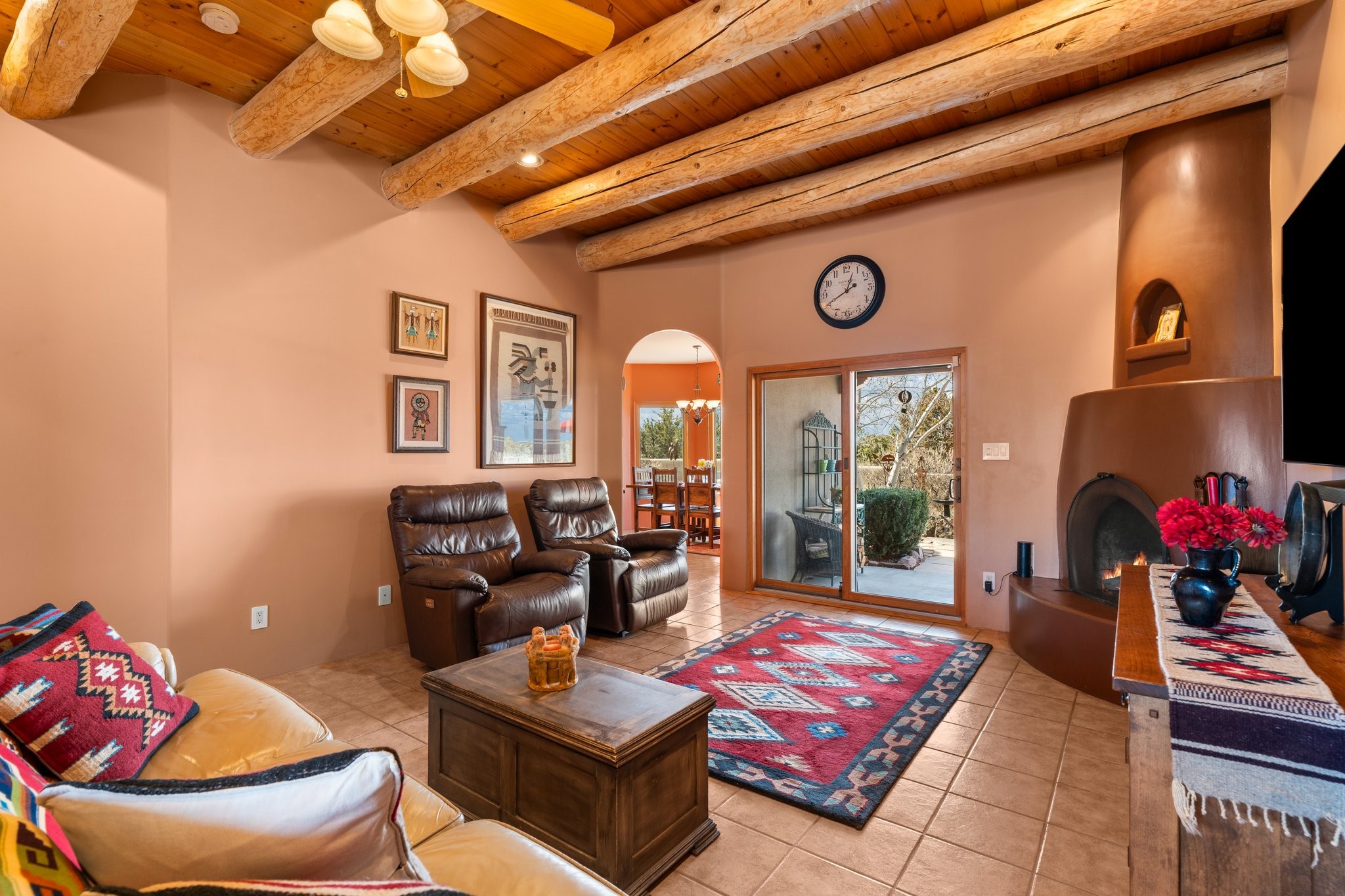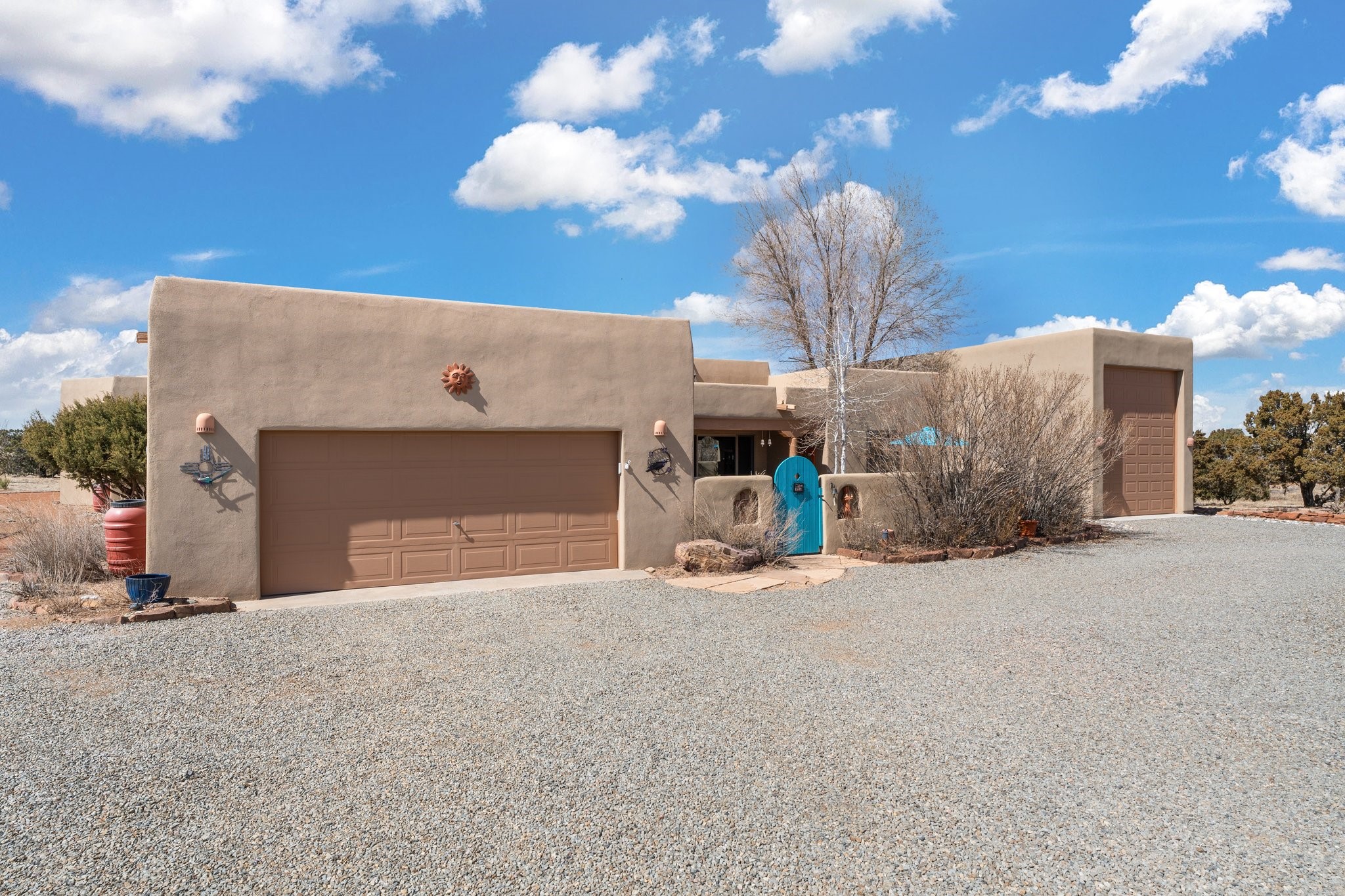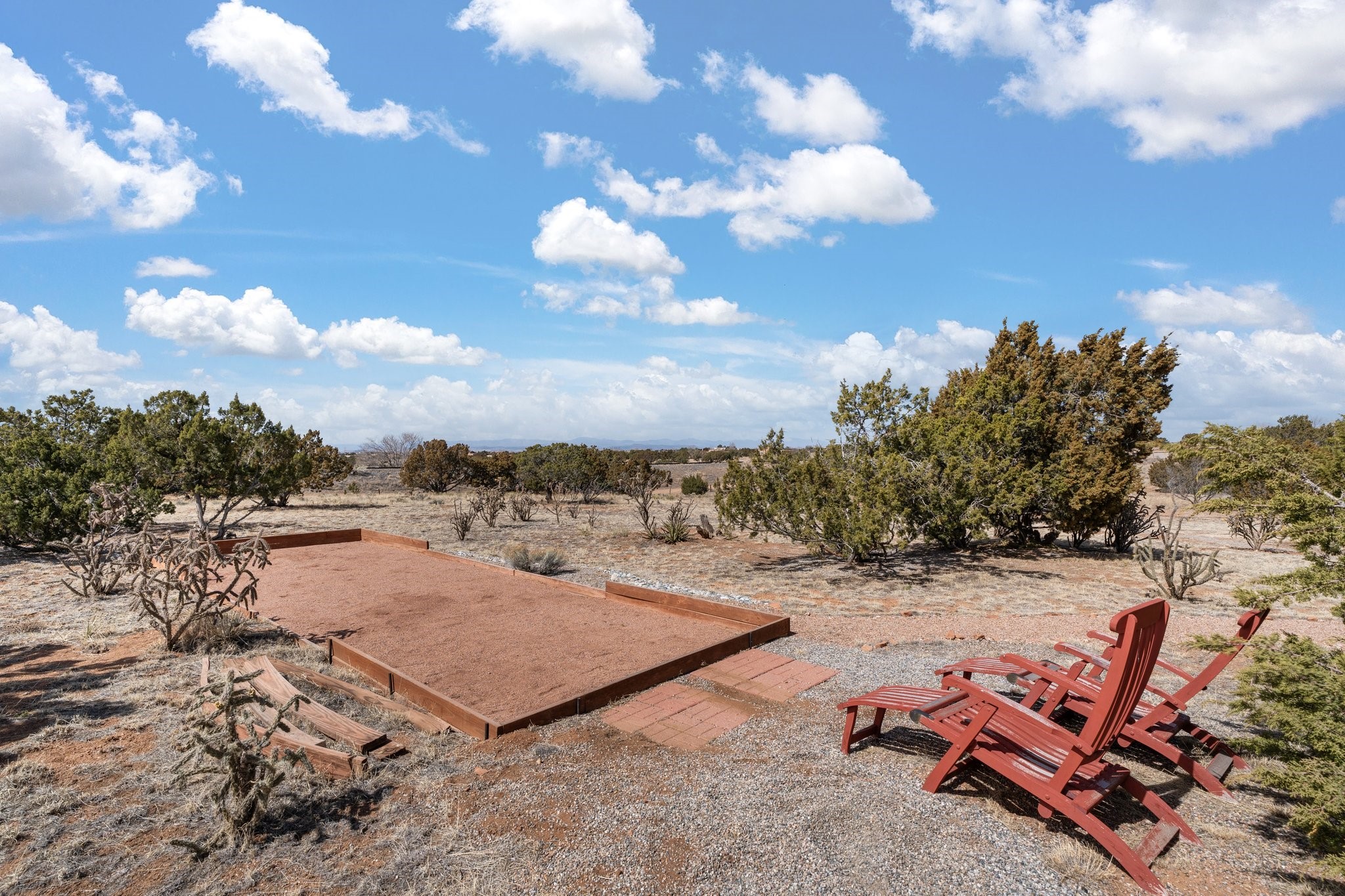 TALK ABOUT HAVING IT ALL!! This Eldorado beauty has wonderful mountain views and extraordinary outdoor spaces with hot tub, roof-top deck, built-in bar and BBQ, kiva fireplace, sun shades and a number of entertaining and seating options and a Bocce Ball court!. Kitchen features under cabinet lighting, hickory cabinetry, great storage, stainless appliances (range has never been used) and built-in desk area. Walk-in pantry has exceptional shelving and room for small appliances. Primary bedroom has viga ceilings, kiva fireplace and doors to rear portal and a library/media room/office is attached. A cedar closet and generous walk-in closet with drawers and shelves. Primary bath has double sinks, large jetted tub and separate shower. Silicone coating on roof in 2021 - six years left on the transferrable warranty. Single-level, no interior steps, in-floor natural gas radiant heat and two evaporative coolers. Sellers use Xfinity for internet. Eye On Water leak detection system through the Eldorado Water Dept. Whole house water filtration. Oversized, finished 2-car garage with overhead storage and lots of cabinets. Heated RV garage is 15 x 40 with 16' ceiling. Three kiva fireplaces. Proper laundry room with abundant storage. ADT alarm system is transferrable. Some outdoor furnishings are conveying with the property. LIST OF IMPROVEMENTS IN SUPPLEMENTS.