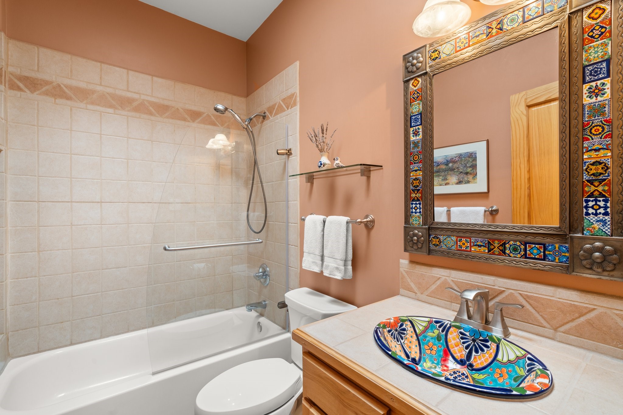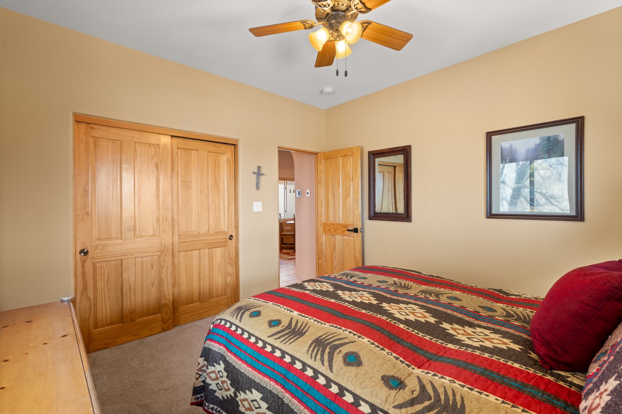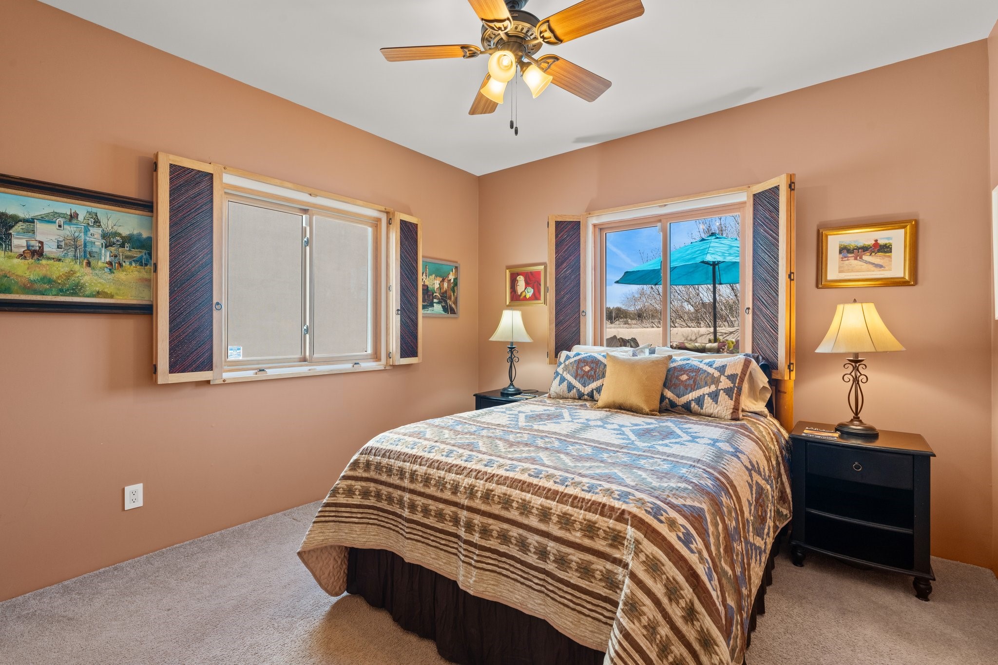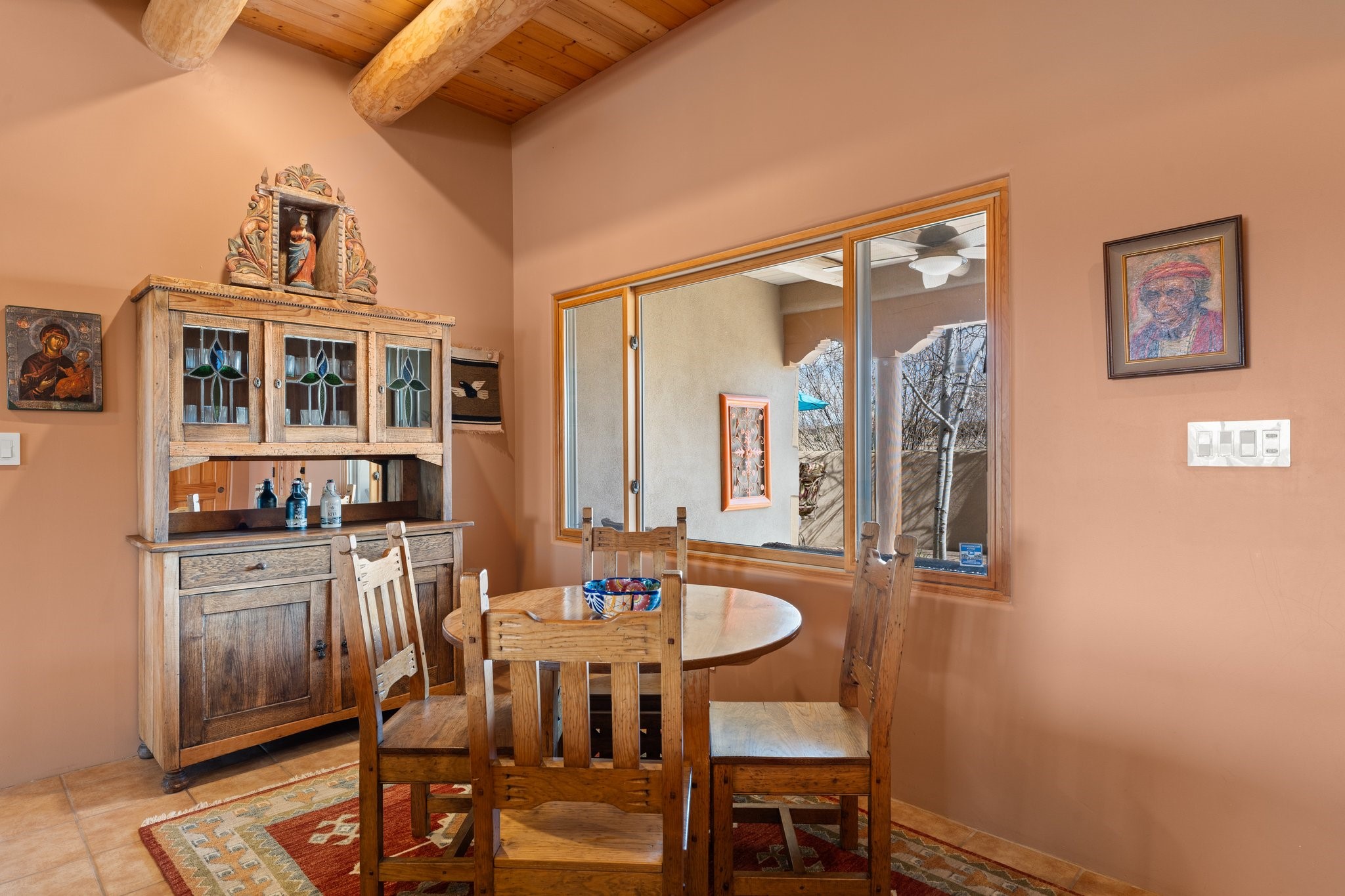 TALK ABOUT HAVING IT ALL!! This Eldorado beauty has wonderful mountain views and extraordinary outdoor spaces with hot tub, roof-top deck, built-in bar and BBQ, kiva fireplace, sun shades and a number of entertaining and seating options and a Bocce Ball court!. Kitchen features under cabinet lighting, hickory cabinetry, great storage, stainless appliances (range has never been used) and built-in desk area. Walk-in pantry has exceptional shelving and room for small appliances. Primary bedroom has viga ceilings, kiva fireplace and doors to rear portal and a library/media room/office is attached. A cedar closet and generous walk-in closet with drawers and shelves. Primary bath has double sinks, large jetted tub and separate shower. Silicone coating on roof in 2021 - six years left on the transferrable warranty. Single-level, no interior steps, in-floor natural gas radiant heat and two evaporative coolers. Sellers use Xfinity for internet. Eye On Water leak detection system through the Eldorado Water Dept. Whole house water filtration. Oversized, finished 2-car garage with overhead storage and lots of cabinets. Heated RV garage is 15 x 40 with 16' ceiling. Three kiva fireplaces. Proper laundry room with abundant storage. ADT alarm system is transferrable. Some outdoor furnishings are conveying with the property. LIST OF IMPROVEMENTS IN SUPPLEMENTS.