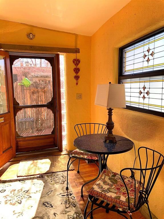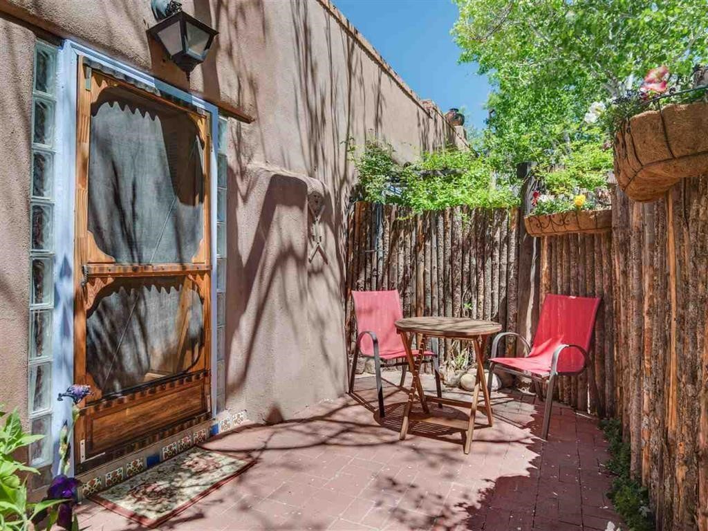 Hidden in plain sight is this incredibly rare find, units B & T both fully furnished located in the Laribbas Compound which features ten distinctive condo units in total. It's all about location in Santa Fe and Laribbas Compound is in the heart of the Guadalupe District, a quarter mile from the vibrant Railyard District and a short walk (less than a mile) to the historic Santa Fe Plaza. Unit B is the largest of the condos in the compound offering one bedroom with a private bath, a large living space perfect for hosting, a powder room, two private courtyards, and a separate storage area. Other features include a large fireplace in the living area, decorative fireplace in the bedroom, latillas and wood beamed ceilings, a large custom Dutch door, stained concrete floors perfect for the radiant heat and newer appliances including dishwasher, refrigerator, oven, and stacked washer/dryer. Unit T is perfect for your many visitors, or as a long-term rental as its currently being used (lease ends in August), this unit is fully furnished. She packs a punch at just 352 square feet but with a large basement that can be fashioned to your immediate needs. Other features of T include a private patio, hardwood floors, vibrant southwest colored walls and updated bath. Enjoy the lovely community features of Larribas Compound including the community garden, fountain, picnic area and dedicated parking space for each unit. A private pedestrian gate can be found on Irvine and the gated parking entry is located on Ambrosio. The HOA covers community landscaping and roof maintenance. No short-term rentals allowed. Larribas Compound lies safely tucked away behind a pedestrian gate on Irvine and a private car entry on Ambrosio. Please Note - No short term rentals and dogs not permitted, cats are okay.