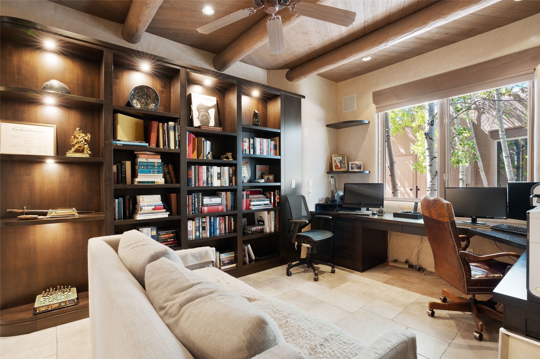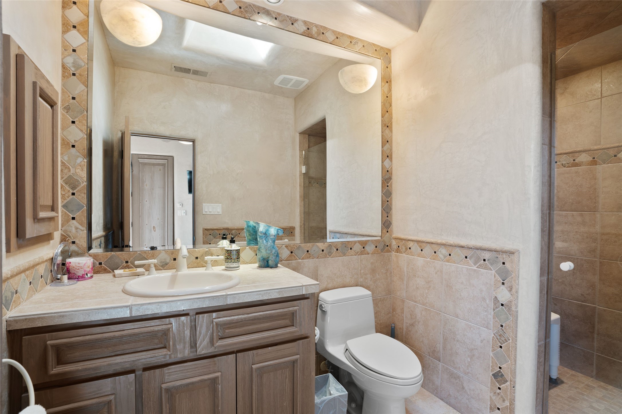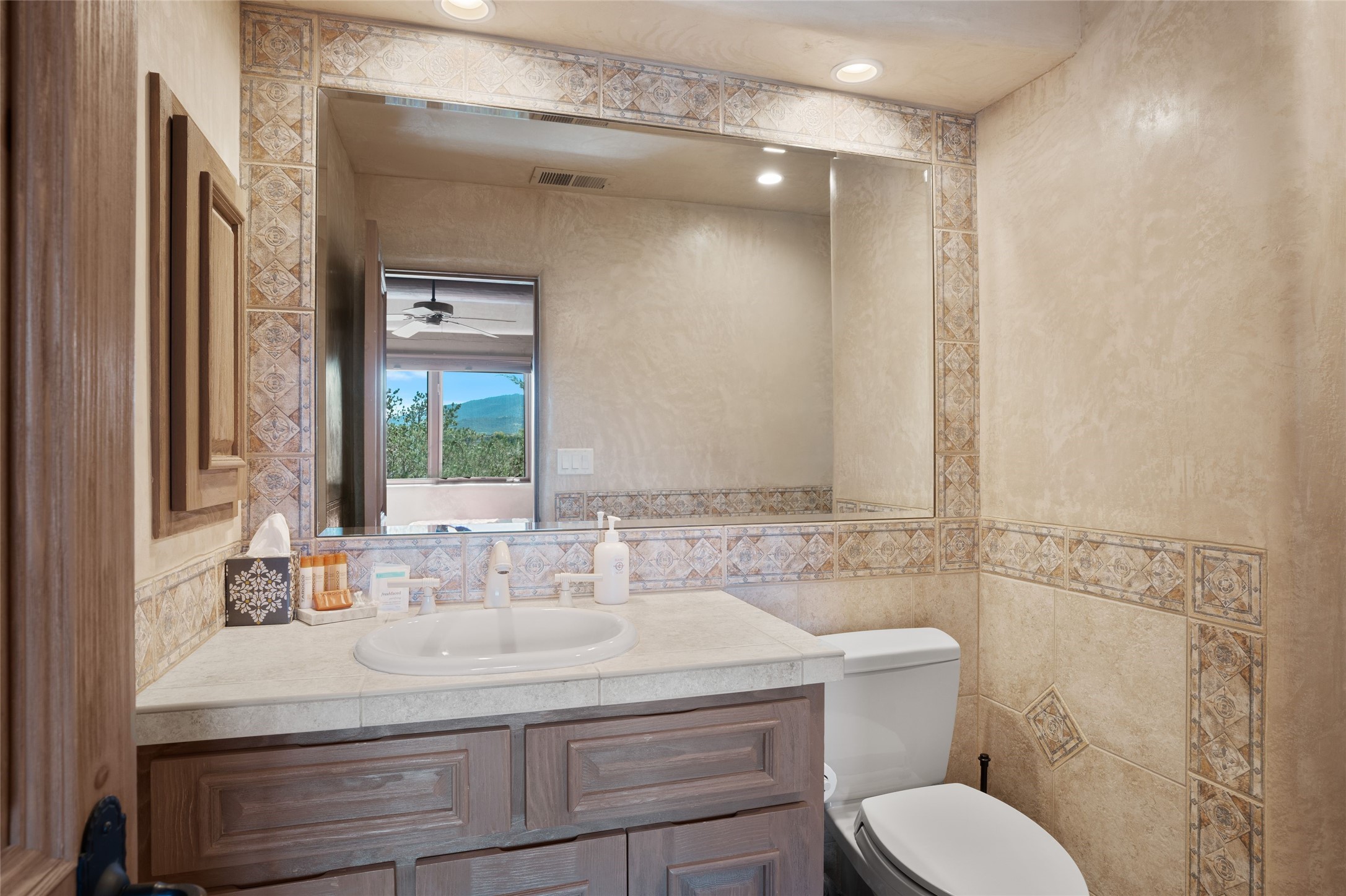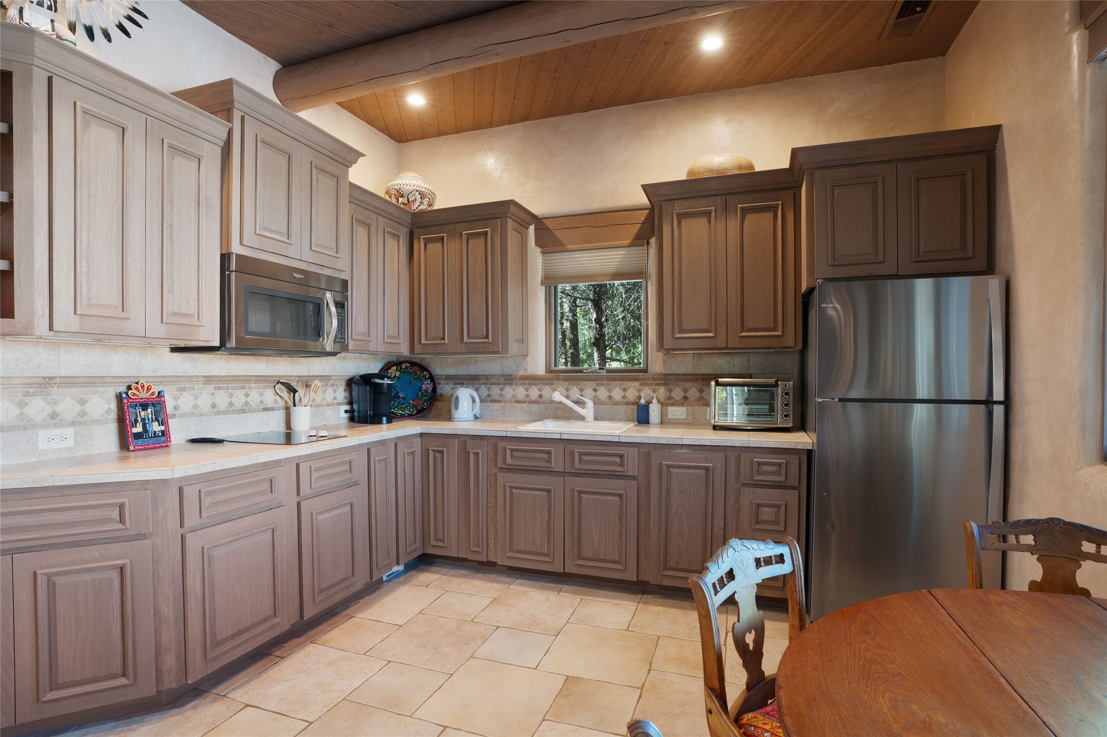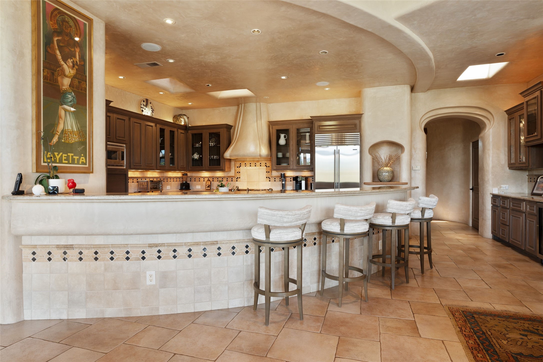 Los Altos/ Estancia Primera 3 bedroom 2.5 bath elegant home and sizable guest house with spectacular Sangre de Cristo mountain views. Strategically sited and custom designed by architect developer John Le Master. Single level; no interior steps. A striking entryway opens into the spacious living area with soaring ceilings, tile floors and soft, sculptural details in lustrous plaster walls as a curved wall of floor-to-ceiling windows brings the breathtaking view into the room. The wrap-around portal extends the living/dining space, perfect for enjoying the sun or al fresco entertaining in warm weather months. Open and artfully designed, the gourmet kitchen is appointed with center island, rounded bar, abundant storage, built-in sidebar, and superior-quality appliances. Split bedroom plan for privacy. Primary wing with bedroom with kiva fireplace and access to outside portal, a spa-like bathroom, a generous walk-in closet, study and hot tub on a separate private deck. Just off the kitchen are two additional en suite bedrooms, a laundry room, and access to the over-sized 2-car garage with a rooftop deck overlooking the downtown Plaza and city lights. The guesthouse includes a great room, full kitchen, 2 bedrooms and 2 baths. Mature landscaping, built in fountains. The community of Estancia Primera offers a clubhouse, pool and tennis court. Conveniently located close to the Historic Plaza, Canyon Road, Museum Hill, hiking trails, and with easy access to the Santa Fe Ski Basin.