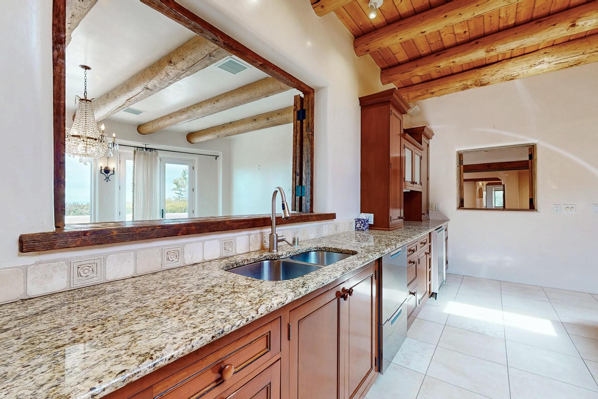 Approximately 5801 square foot main residence with an attached 1068 square foot guest house and 594 square foot studio, located on one of the best view sites on prestigious Circle Drive. Long considered to be one of the best areas in Santa Fe because of its marvelous views to the city, northern badlands, western Jemez Mountain range and the Sangre de Cristos, as well as its proximity to The Plaza and The Santa Fe Opera. Resting on 1.93 acres with a private security gate, this traditional Pueblo masterpiece is partial adobe, beautiful latillas, extensive portals, 9 fireplaces, 5 bedrooms, 5 1/2 baths and a very large formal dining room with beautiful light and views. It also features 4 garages, cherry wood cabinets in the kitchen & stainless steel appliances. This home was recently appraised for over $3.2 million. The home will require some work to bring it up to its former glory. It is being offered in its current condition at a price of $2.7M. Photos are virtually staged.