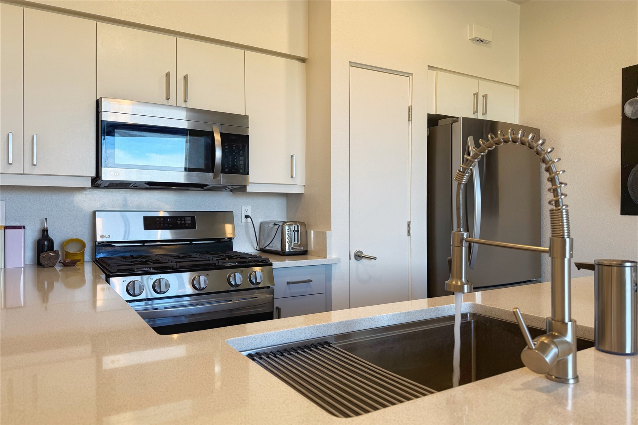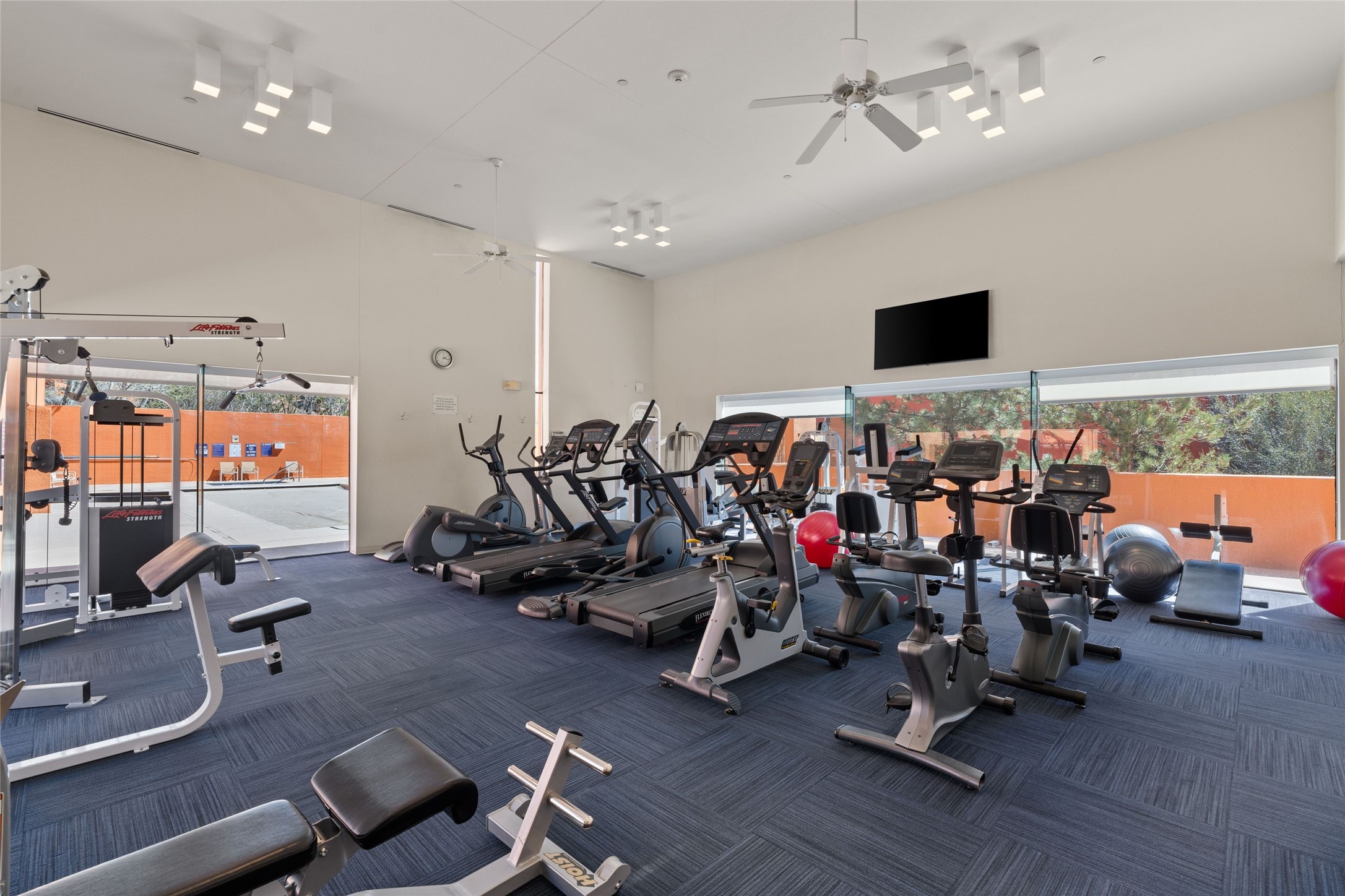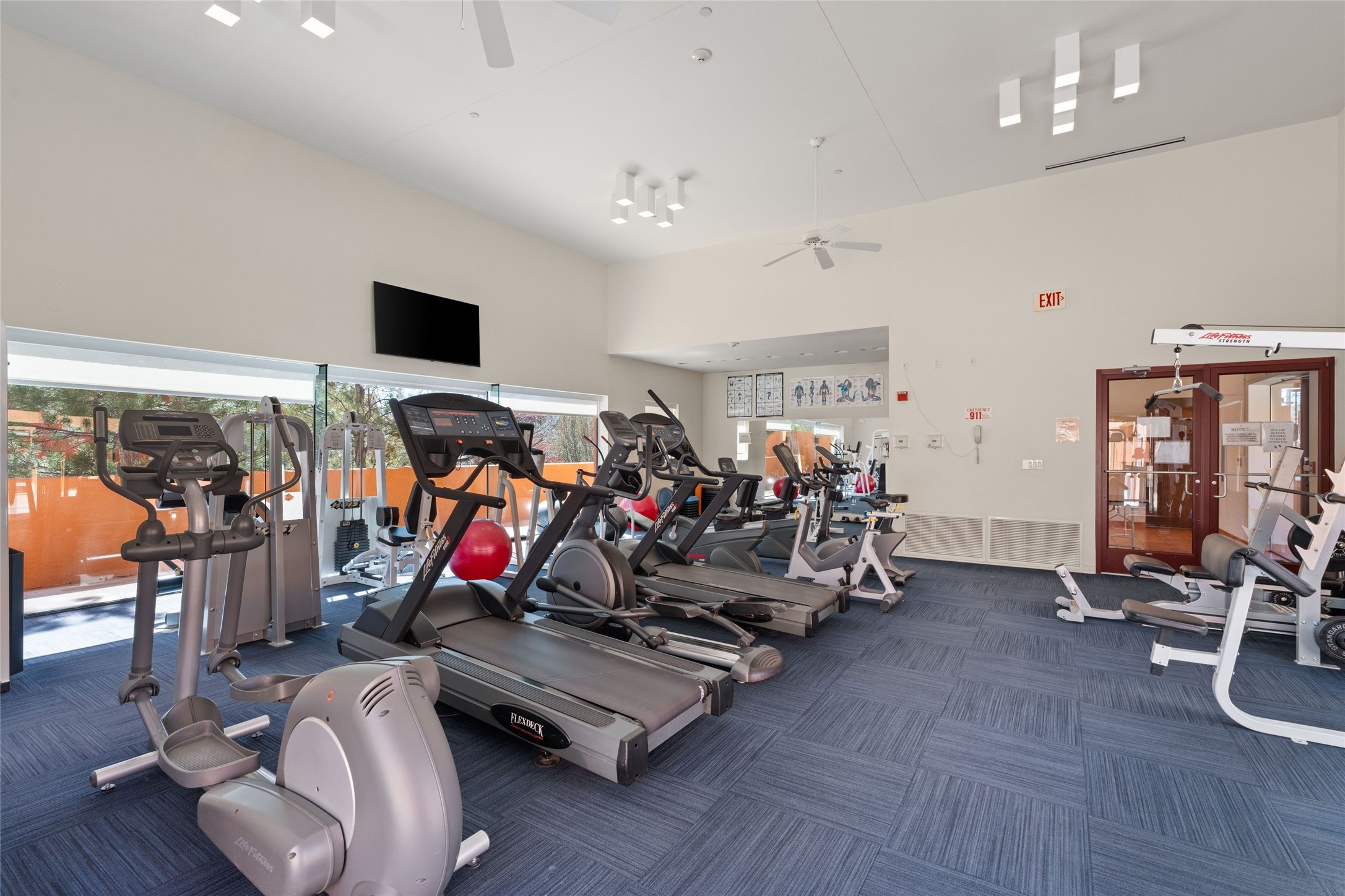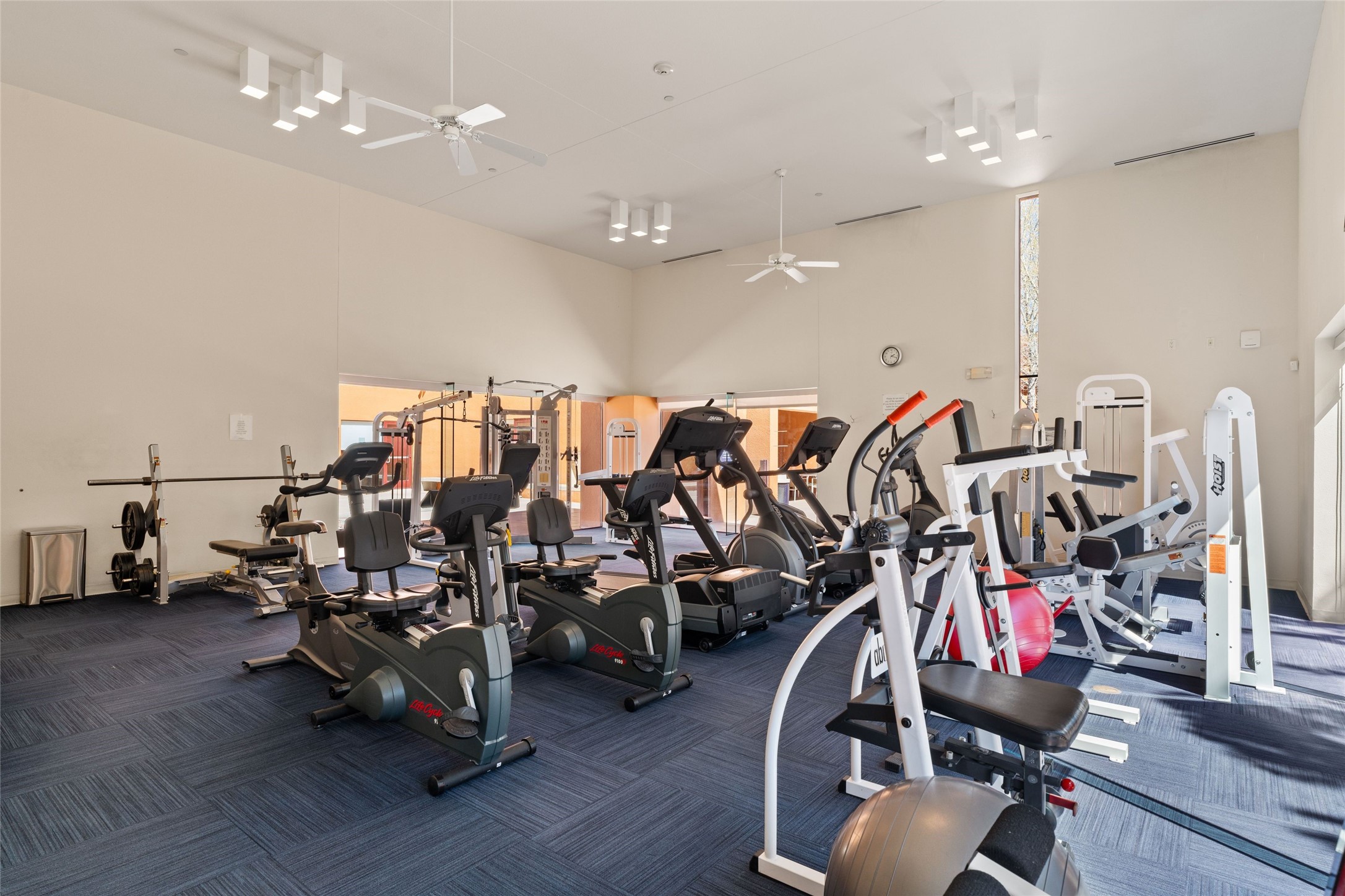The nicest unit in Zocalo, spectacular views, superior patios, tastefully updated contemporary three bedroom, two bath condominium in Zocalo designed by award-winning architect Ricardo Legorreta. Light-filled, second-level home offers massive western views overlooking the natural arroyo and hillsides and eastern views that include Atalaya peak in the distance. New, giant picture windows do indeed make pictures of the surrounding classic Santa Fe colored landscape and skies so close you can almost touch! Updates include new insulated windows, remote controlled shades, new flooring and paint throughout, new stainless steel appliances and washer and dryer, updated kitchen with chef's appliances and bathrooms with solid surface counters, programmable lighting, Legrand switch and outlet covers, on-demand tankless hot water heater, new deck and refinished balcony. Community amenities include two fitness facilities, pool, hot tub, and clubhouse. Newly completed trail for walking and biking connects to the city trail system. Large garage with EV charger. Close to town yet far from the hustle and bustle, quiet and serene yet vibrant and alive! Check out the video and take the virtual tour!