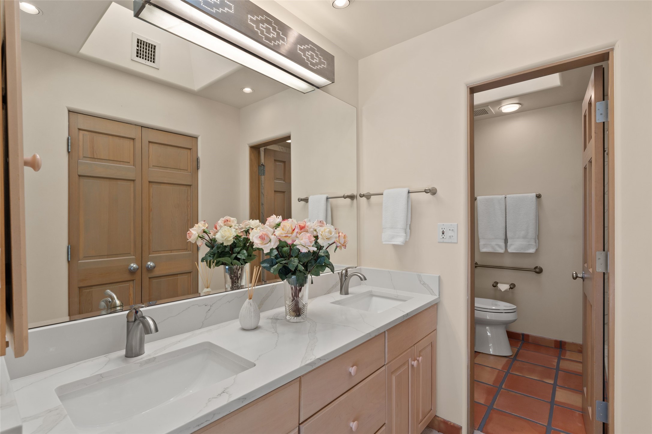 Lovely end unit with mountain views and tasteful updates. Enjoy plenty of light in this bright and open floorplan and experience peaceful surroundings in a desirable location. Large living area with expertly updated kitchen and primary bathroom along with a tranquil outdoor sitting area. If you've been looking for that special condo, this is it! Quail Run has a fabulous short term rental policy and on site property management making this a wonderful investment opportunity. Home ownership includes all of Quail Run's state of the art amenities; 24 hour hosted security, a variety of engaging fitness classes, beautiful swimming pool and workout areas, pickleball and tennis, golf course, on site personal trainers, tennis pro and golf pro as well as a 1 3/4 jogging path. Experience Quail Run; a fully gated community with multiple activities, serenity and charm.