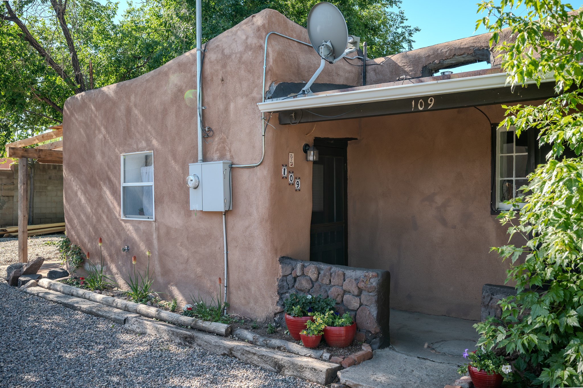 Home/business to live/work on this BCDWES (mixed use commercial) zoned property. There's a potential for an additional 1700 ground floor addition and possibly a second story. Parking is the primary limitation depending on the use (zoned mixed use). Charming, convenient, and a great investment with multiple possibilities in a traditional neighborhood. This historic adobe home is move-in ready, and the remains of a separate building in the back is a place holder for new construction or additions with setbacks grandfathered in. Just steps from the Rail Yard farmers' market, restaurants, movie theater and the Ark Book Store this is a most desirable downtown Santa Fe location. Call today to see this once in 3 generations opportunity.