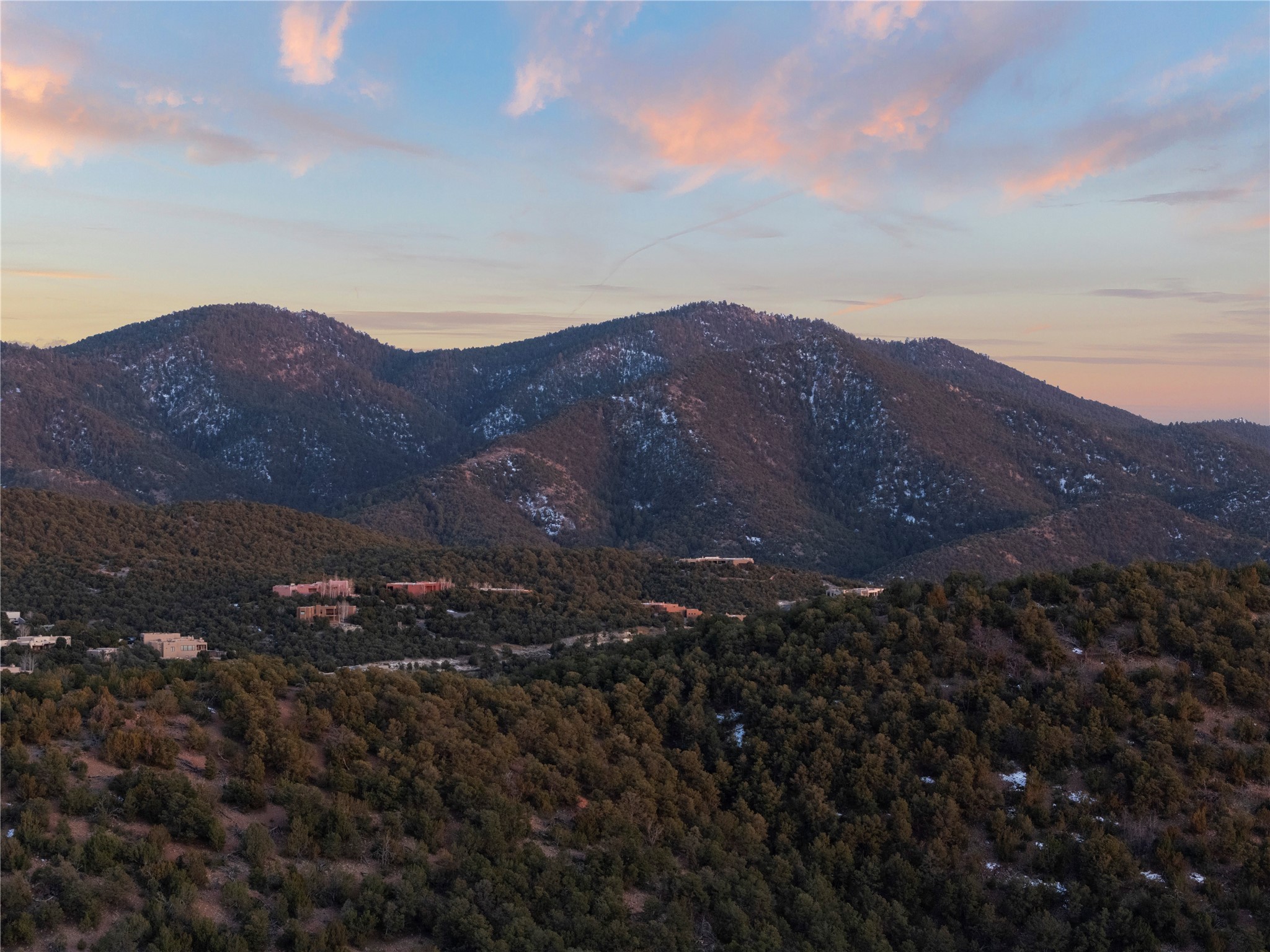 Sited high in the Sangre De Cristo foothills yet only a paved 8-minute drive to the Santa Fe Plaza this spectacular view homesite offers dramatic 360-degree views, including sunsets across the entire Jemez range, distant San Antonio Mountain, northeastern views of the Santa Fe Ski basin, eastern views of the "Snow Hearts" below Thompson Peak and on a clear day north to Colorado! In the evenings, enjoy hours of twinkling Santa Fe & Los Alamos City lights, an ocean of stars & astounding eastern moonrises! This quiet, private, corner homesite is one of the last remaining, easily buildable large acreage lots in the coveted Sierra Del Norte Subdivision (2.026 acres per a 5/18/2023 survey). Due to the lot configuration, there is a preferred building site located on a relatively level "saddle" which provides an elevated viewto the West/Northwest & East/Southeast. This ideal location provides a generous, easily developable building envelope with portions in both the "Foothills" & "Ridgeline" classifications. Per pre-design consultations with the City of Santa Fe, the building envelope holds "Grandfather" status due to the 1990 platting date, prior to the adoption of the 1992 ordinances governing construction in the "Escarpment, Ridgeline & Foothills" classifications, provided the design accommodates building height & additional escarpment requirements. There is Underground Electric, City Water & Sewer, Cable, High-Speed Internet & Natural Gas. The purchase of this amazing homesite includes a 5/18/2023 survey, a 9/5/2023 Tree & Topographic survey plus partially developed plans for a 3,860-Foot Custom Home, 600-foot Detached Guest House and an oversized 3 rd bay Workshop/RV Garage created by the award-winning Hoopes Architects of Santa Fe. Pick up where the seller left off to create your dream home in this highly coveted, close-in neighborhood surrounded by premium custom homes with sensible restrictive covenants.