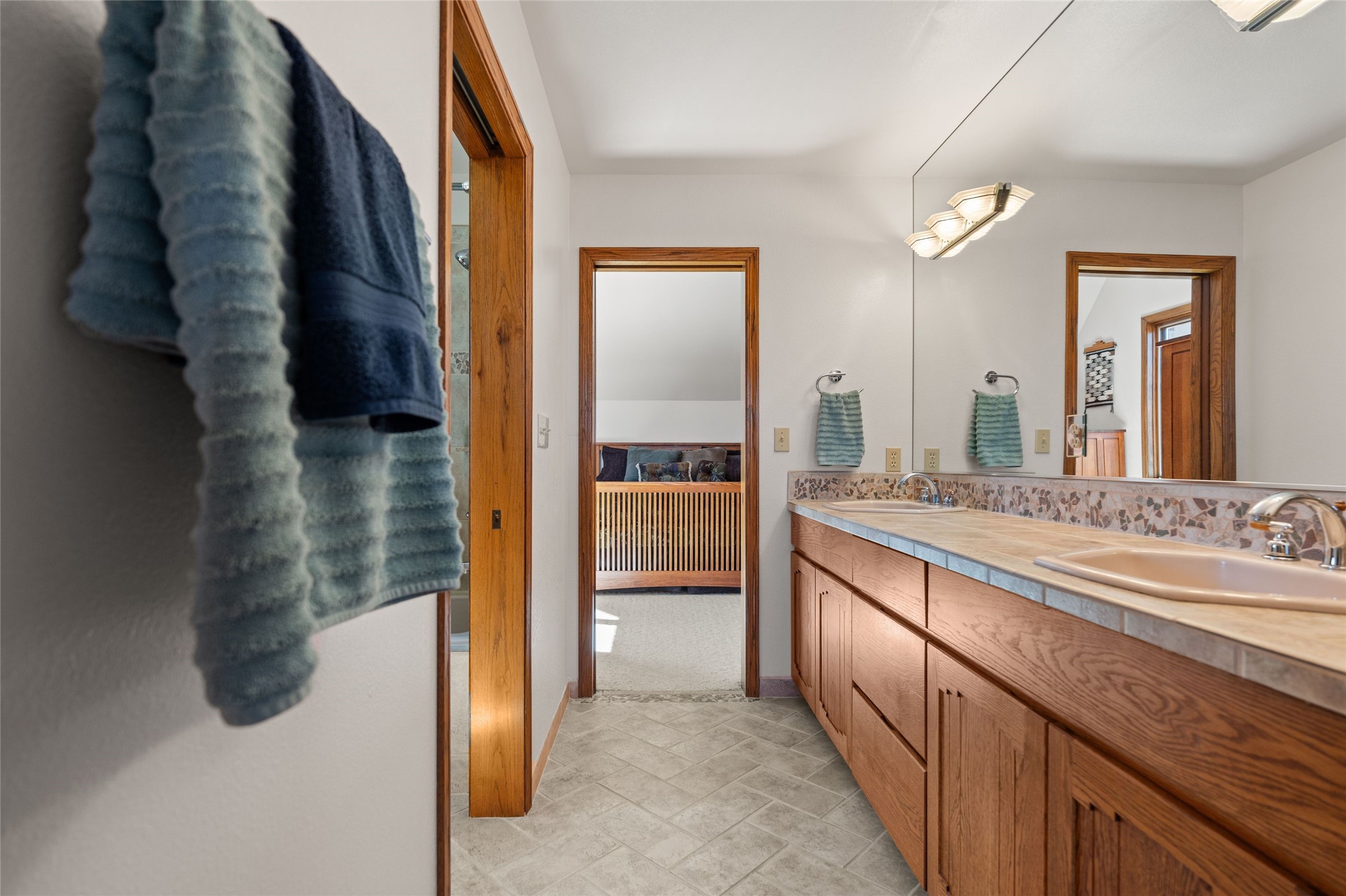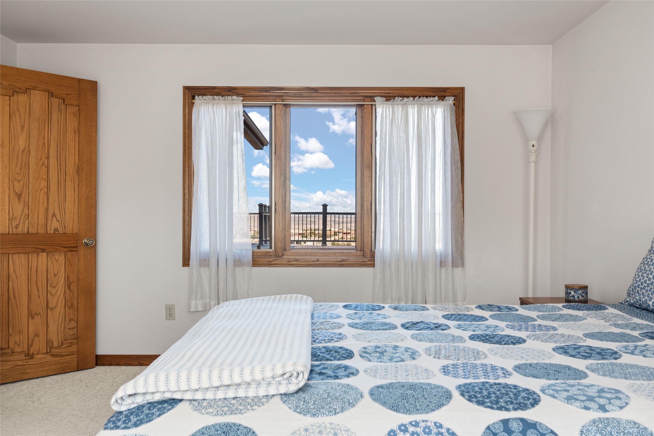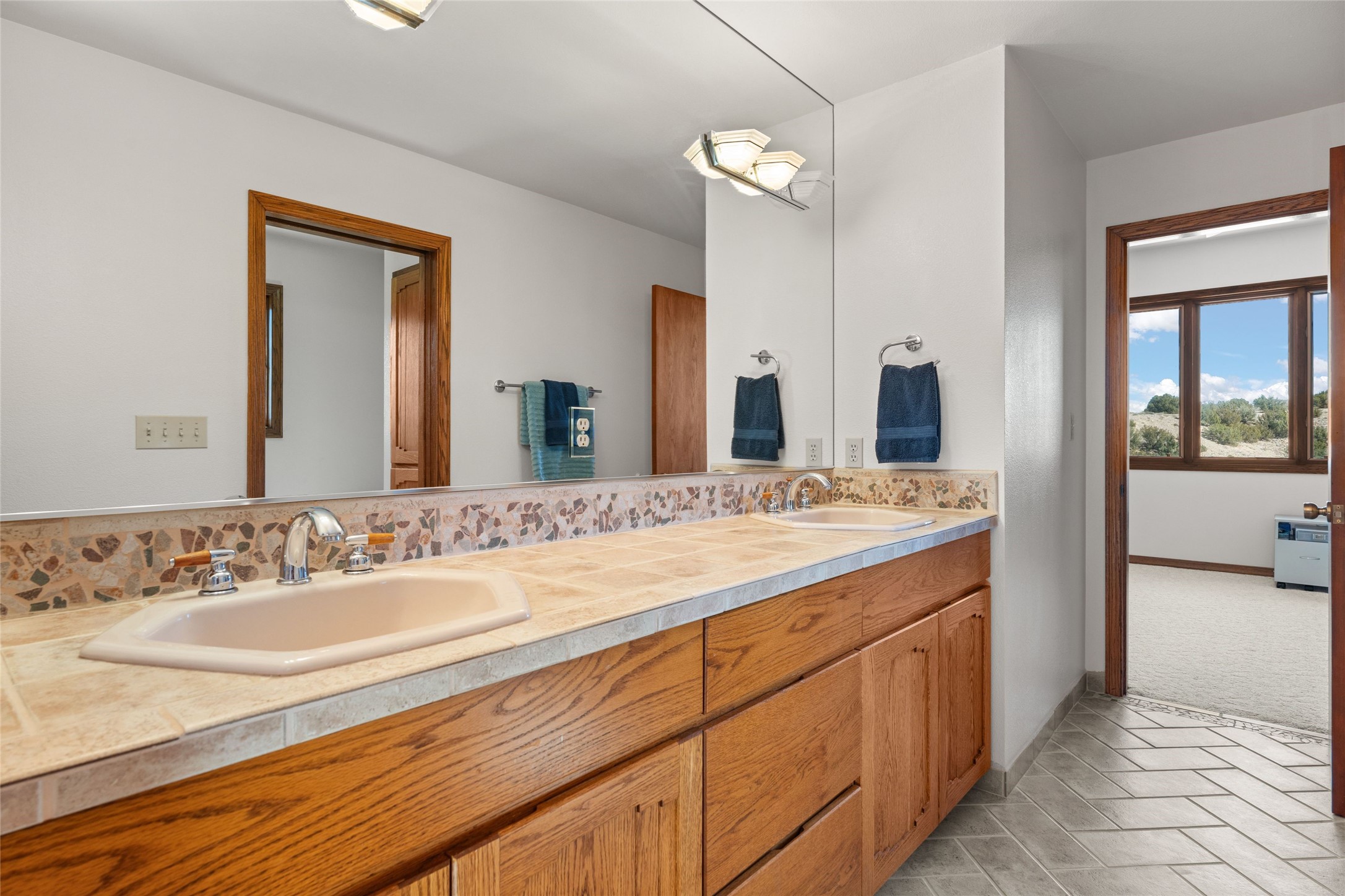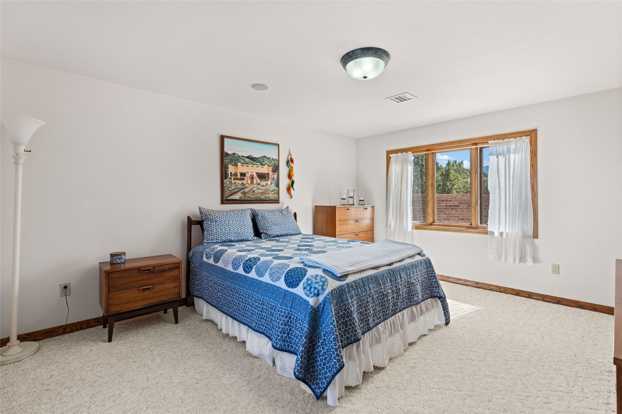 Fabulous family compound and horse property! 4.98 acres of space, views, and a lifestyle that invites multi family living, excellent horse facilities, two separate garages, one with heat/cool, room for lift, other with heat/cool plus bathroom. Must see this well maintained Northern NM brick beauty. Main house 3952 sf plus the 1 BR connected guest house is 1304 sf., total heated is 5256 sf. Main level of home features a living room, formal dining, on suite BR, spacious kitchen, nook for informal dining, half bath, and over 1300sf of open trex deck! Upstairs features primary suite, 3rd BR, loft which is open to main level. Lower level offers family room, 4th BR or office, bath, laundry and a 1304 sf attached 1 BR guest house included in the 5256 sf w/full kitchen, living, plus a 18 X 22 BR w/washer dryer hook ups, and separate entry also. Refrigerated Air, CFA, HWB, mini splits. Well designed barn 4 stall barn, center isle, hay storage, tack, steel lined, runs off 3 stalls, opens to an arena w/shelter. Easy access to National Forest trails.