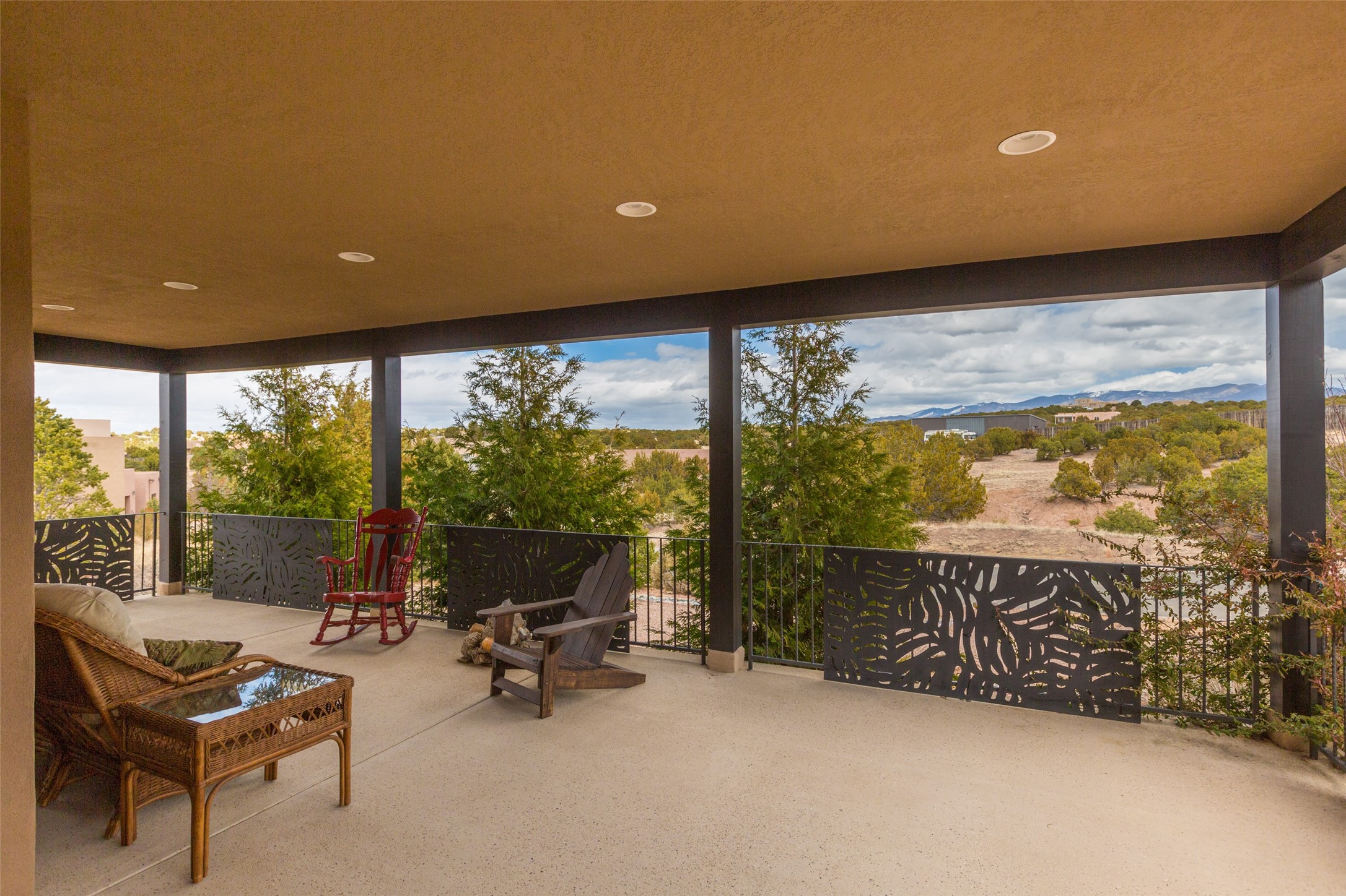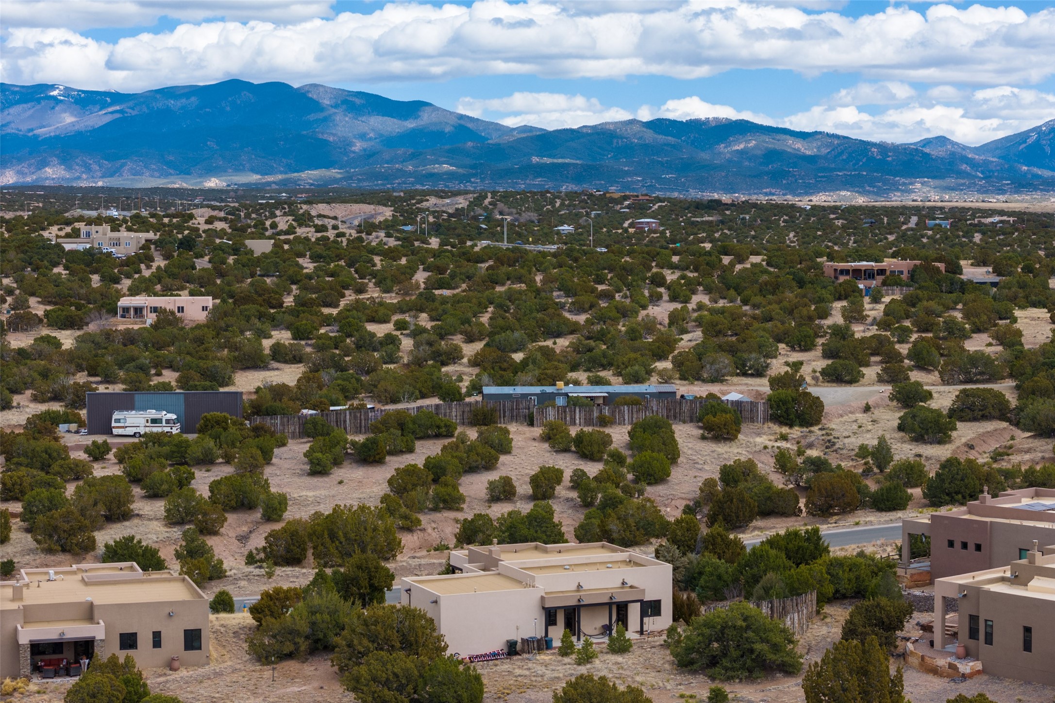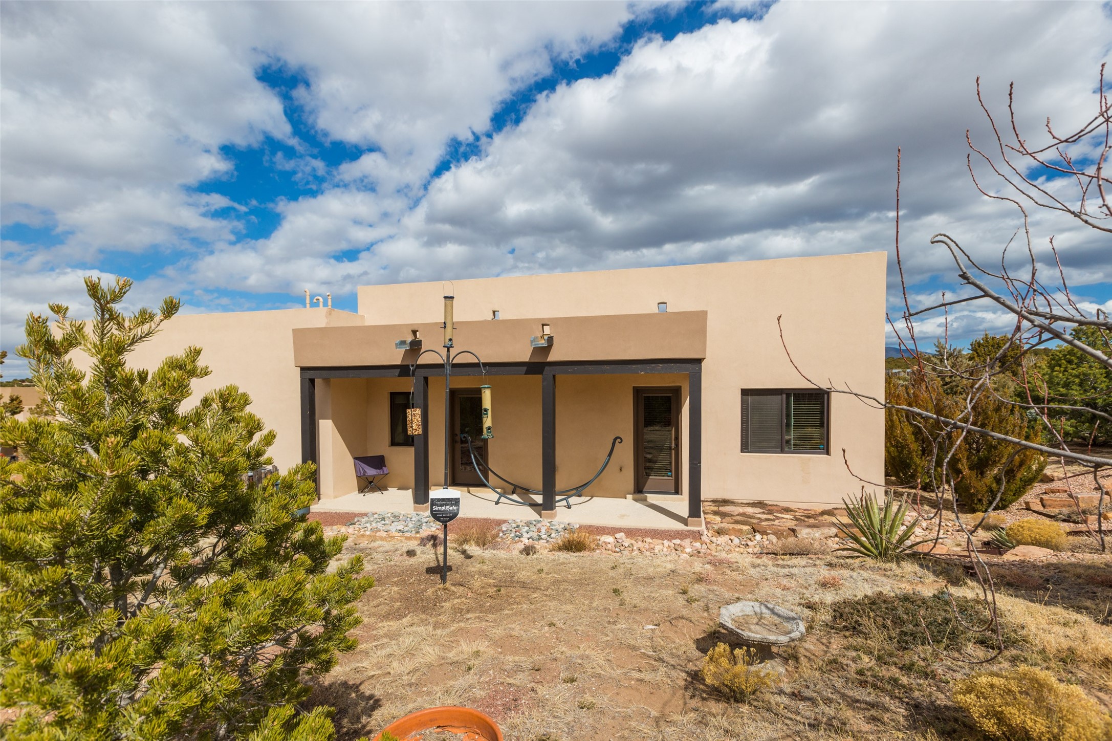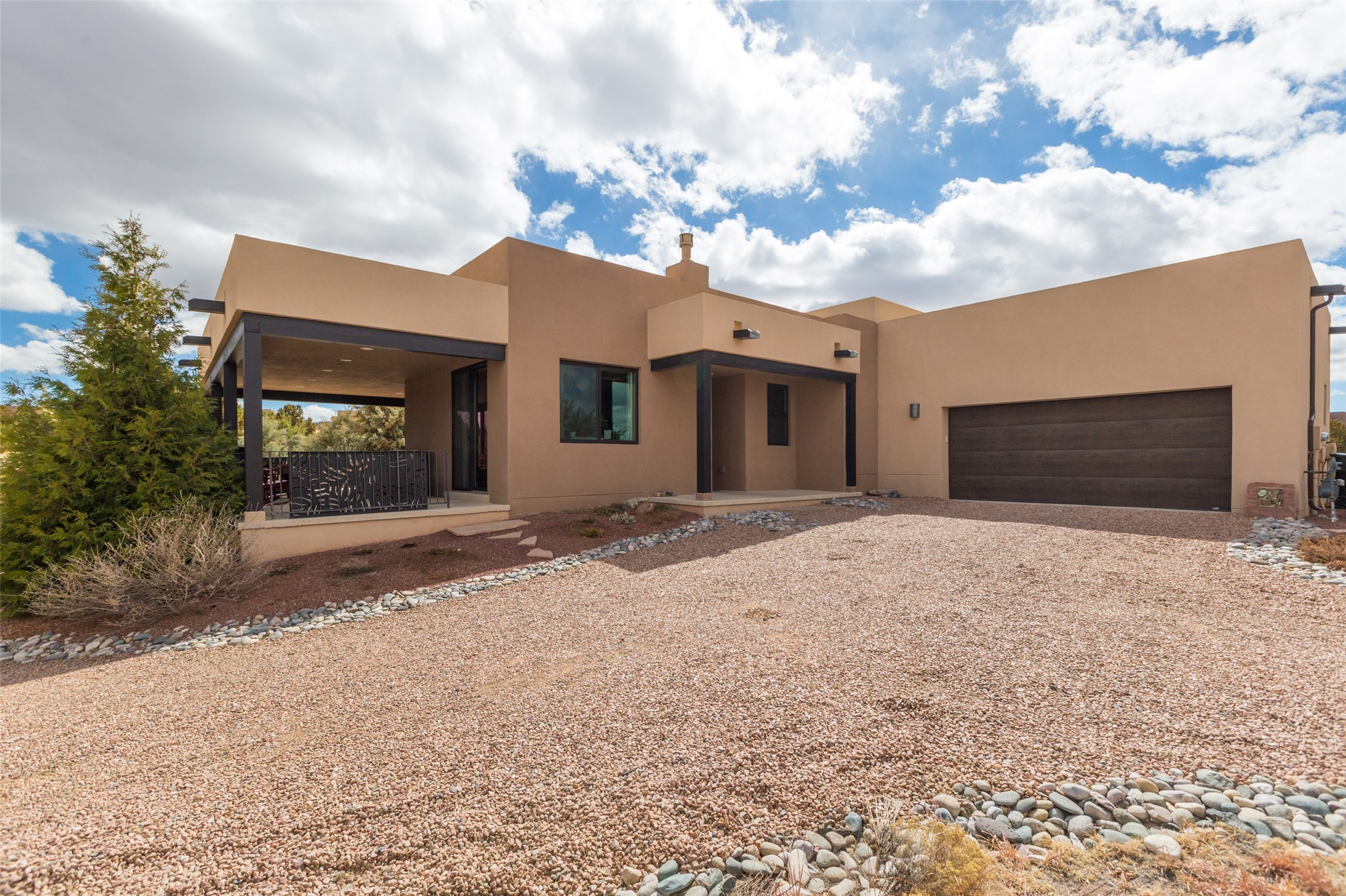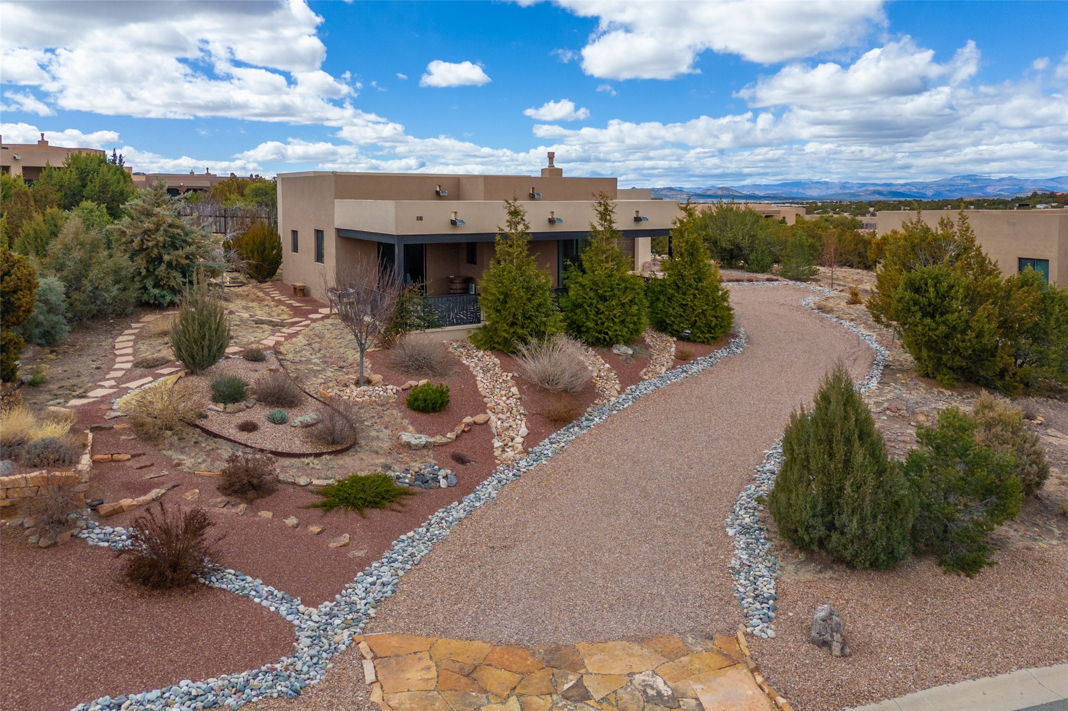 This immaculately maintained home, built in 2019, offers beautiful finishes and meticulous native landscaping. The home boasts an open floorplan with light comfortable living spaces, perfect for entertaining. Granite countertops, beautiful baths, and all tile floors ensure an harmonious environment. A large and lovely portal offers stunning panoramic views of the Sangre de Cristo and a generous outdoor living space. The location is semi-rural and yet convenient to town. The neighborhood incudes common areas and many trails to explore just beyond your front door. Enjoy gracious living, privacy, quiet, and dark night skies in your new home.