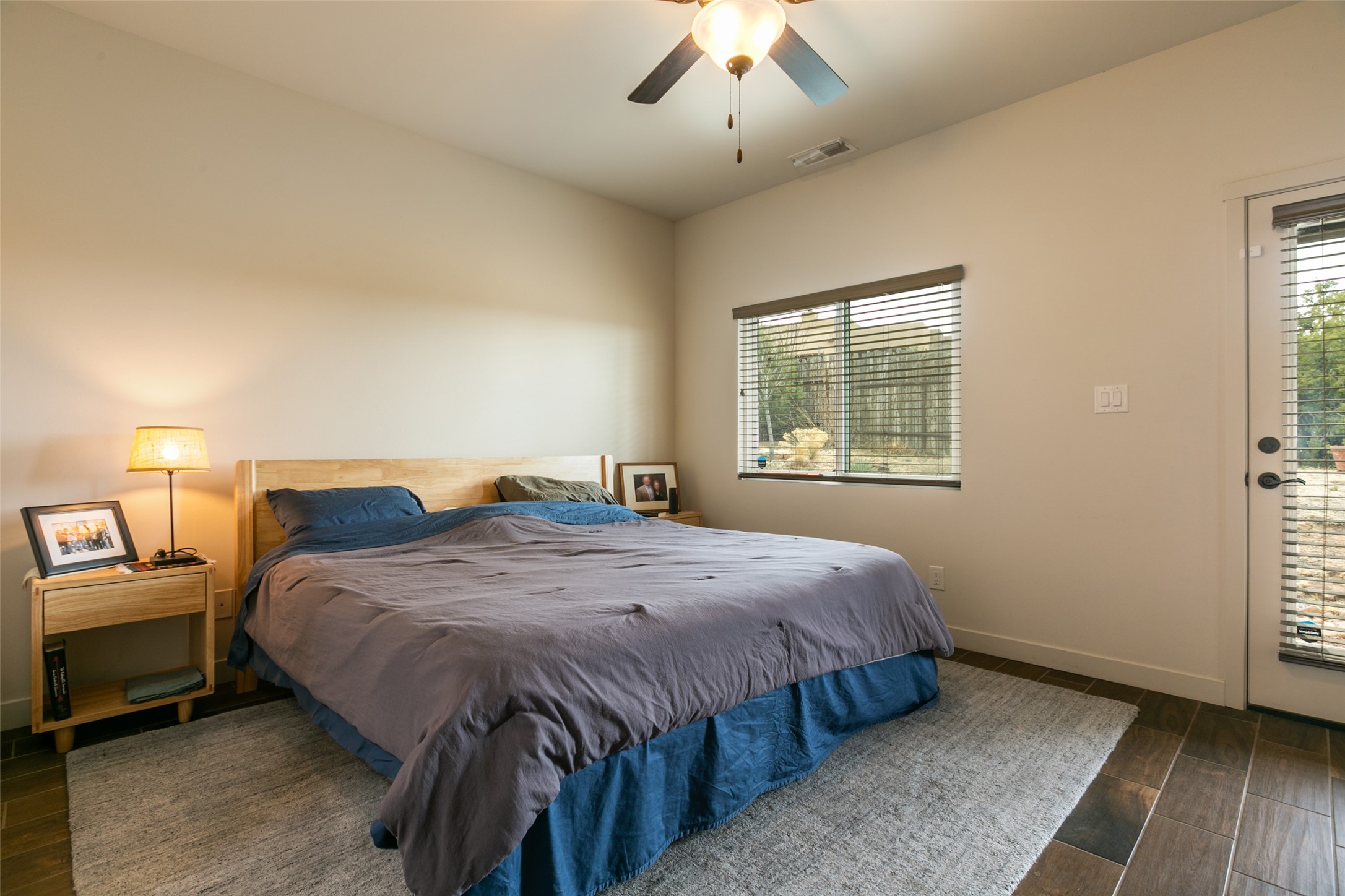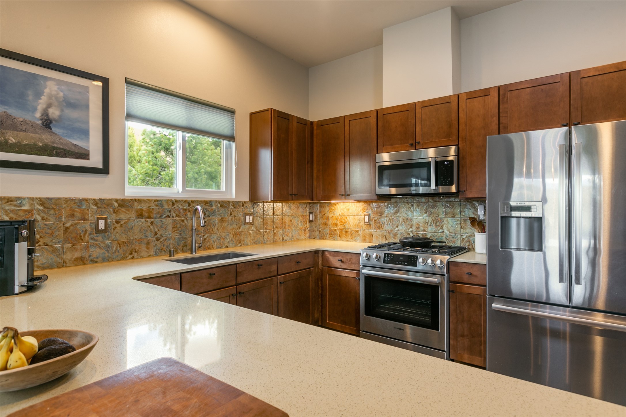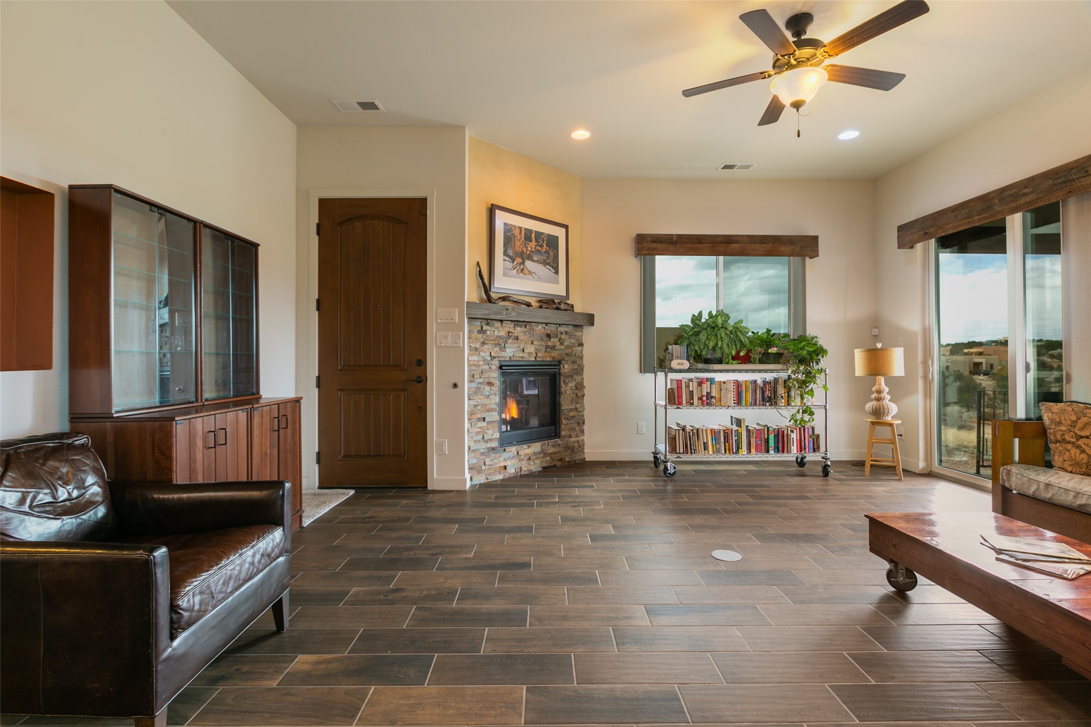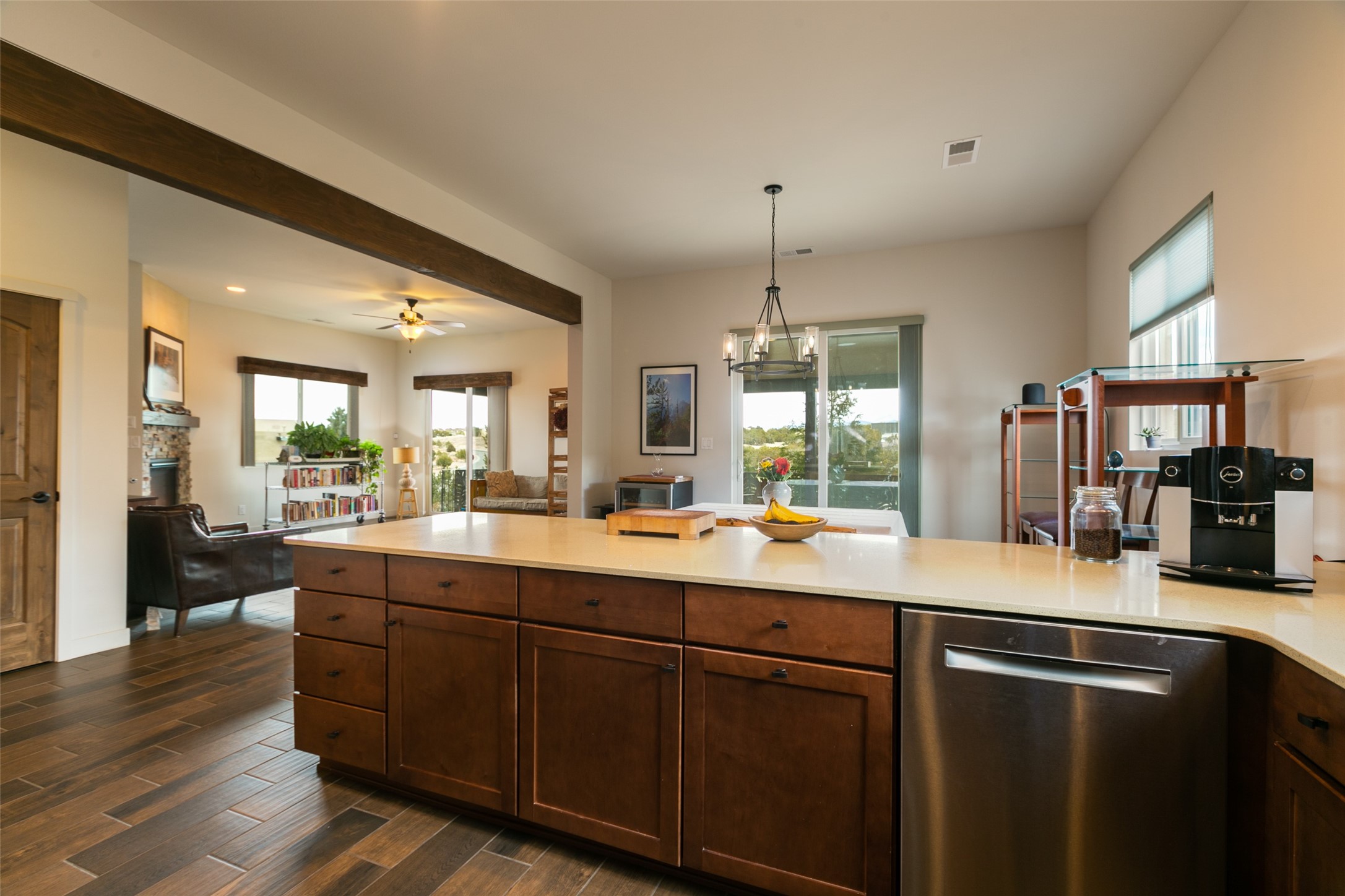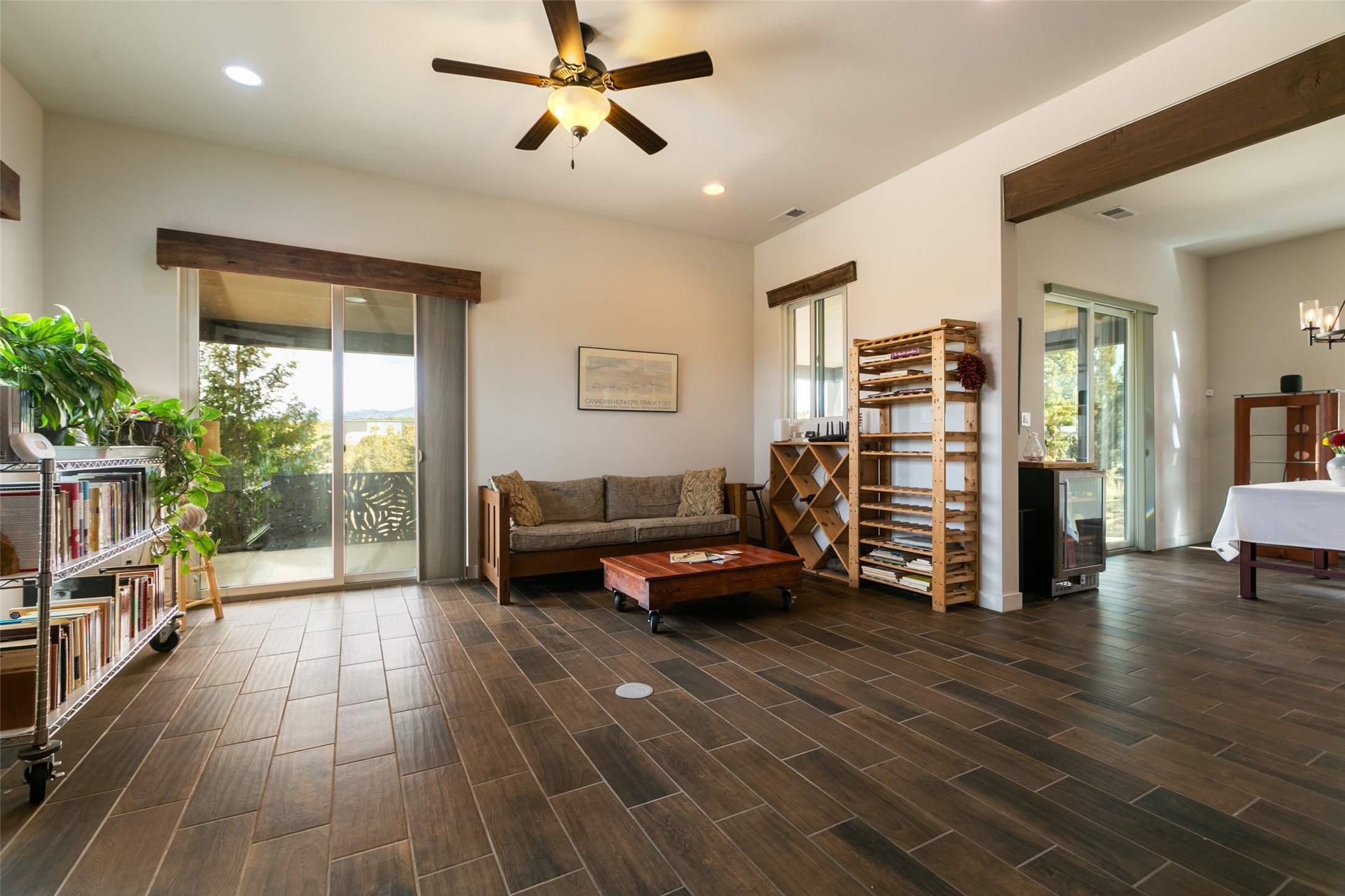 This immaculately maintained home, built in 2019, offers beautiful finishes and meticulous native landscaping. The home boasts an open floorplan with light comfortable living spaces, perfect for entertaining. Granite countertops, beautiful baths, and all tile floors ensure an harmonious environment. A large and lovely portal offers stunning panoramic views of the Sangre de Cristo and a generous outdoor living space. The location is semi-rural and yet convenient to town. The neighborhood incudes common areas and many trails to explore just beyond your front door. Enjoy gracious living, privacy, quiet, and dark night skies in your new home.