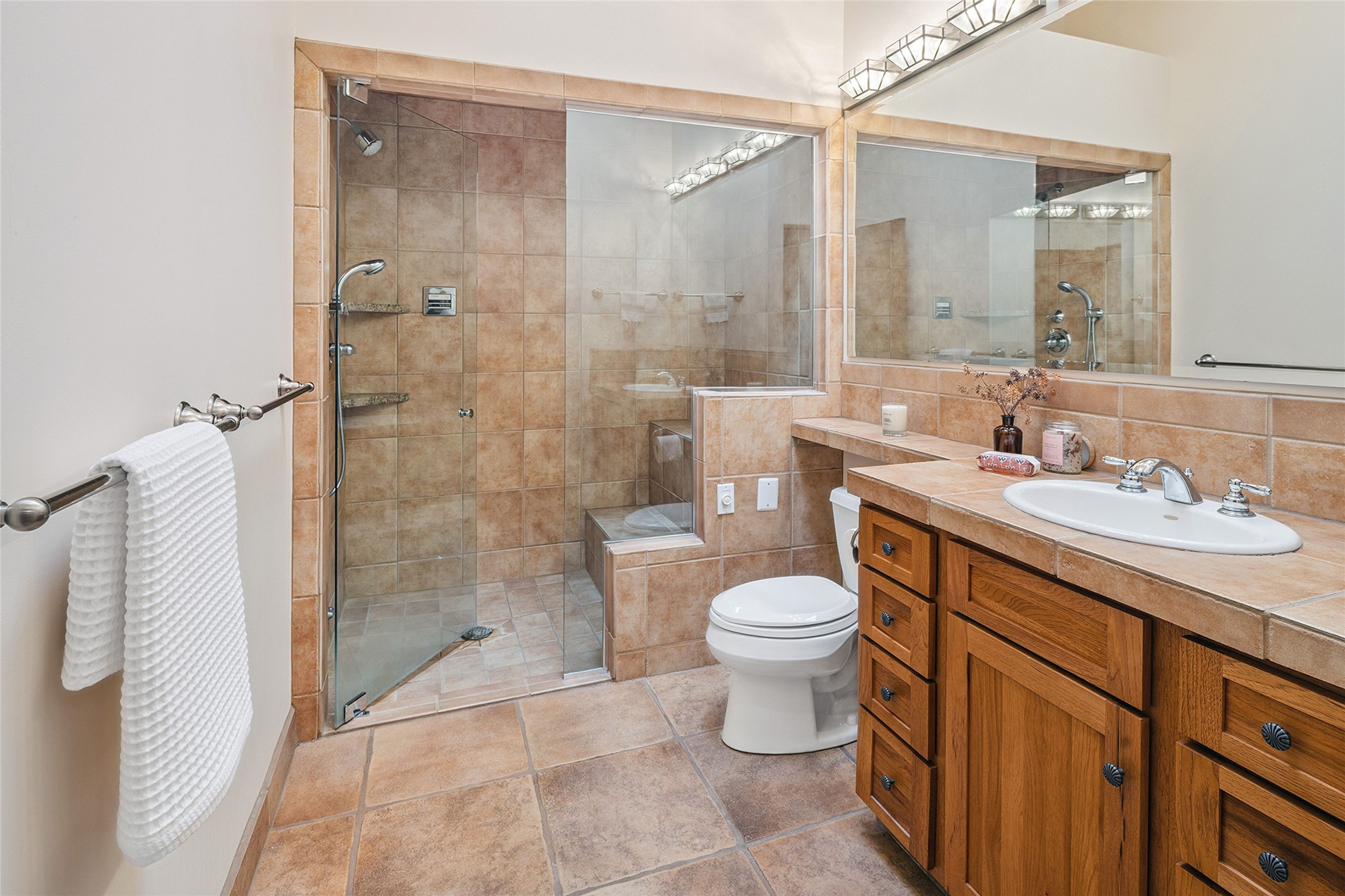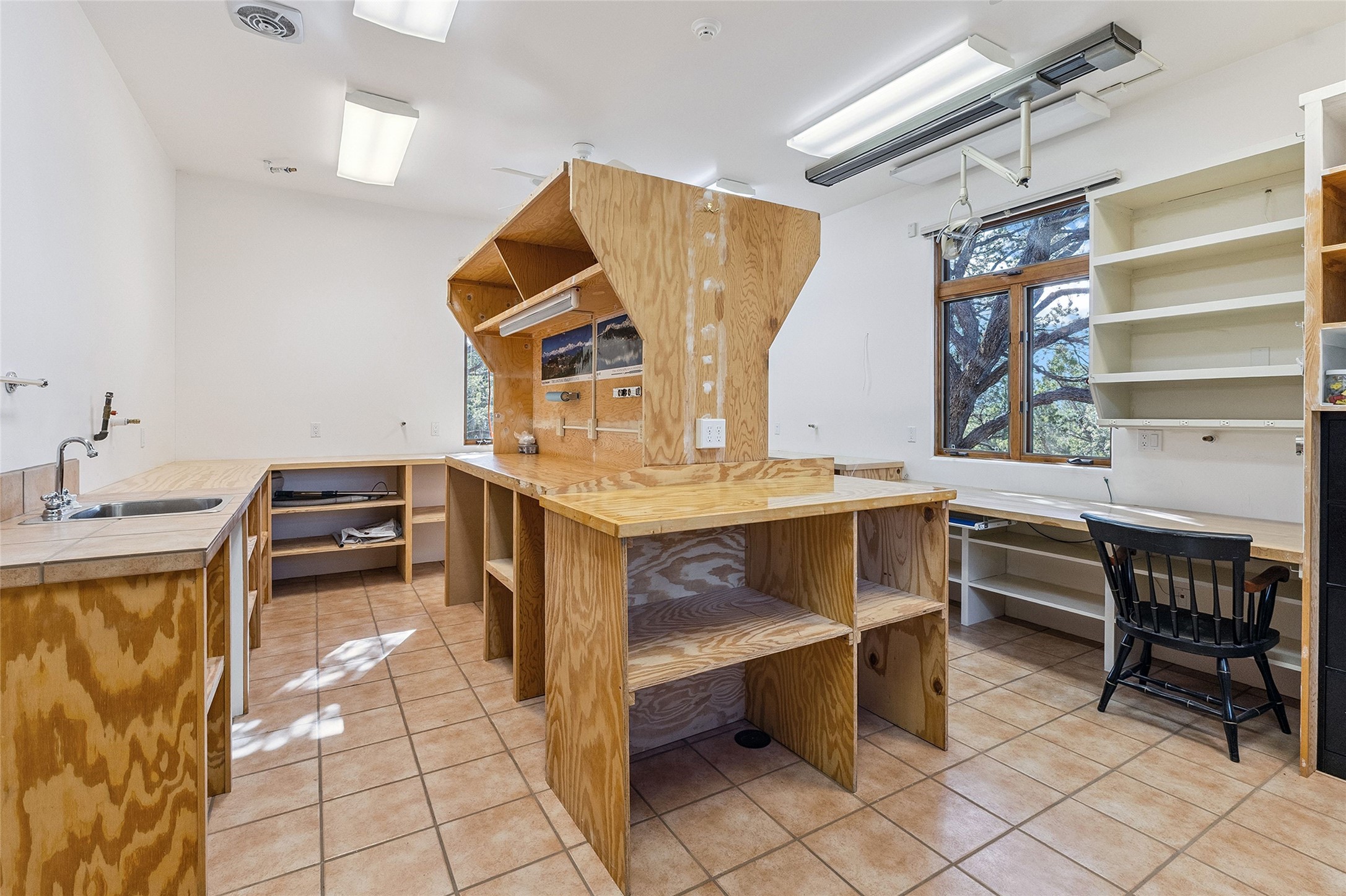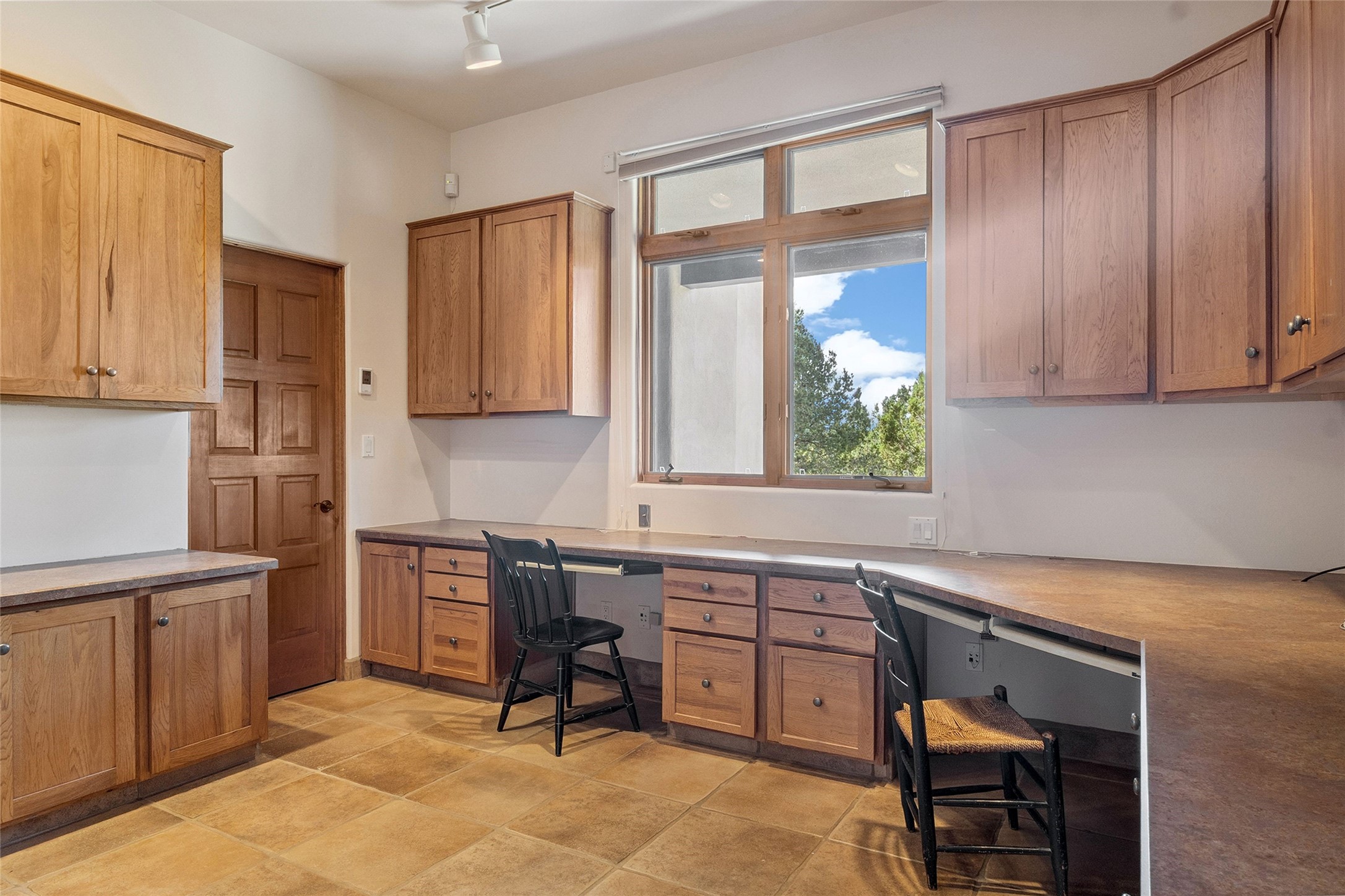 Welcome to 5 Estates Drive, an exciting home with stunning Sangre De Cristo Mountain views and a rare, flexible floor plan, featuring 4 bedrooms plus an attached studio and a heated 3-car garage. Located within the famed community of Las Campanas and sited for maximum privacy and serenity, on a 2-acre view lot, this exceptional single level home impresses with captivating design features and quality craftsmanship. Located within close proximity to the iconic Santa Fe Plaza and The Club at Las Campanas, this extraordinary home offers the ultimate blend of modern design, with the inherent warmth of an iconic Santa Fe home. Design highlights include a welcoming formal living room directly off the front entrance, with framed mountain views and an expansive casual living room with soaring ceilings, rich beams, view windows, a grand fireplace and custom built-in shelving. Ideal for entertaining, the beautifully appointed chef's kitchen with a wraparound breakfast bar, opens to the casual living room and breakfast dining area, with direct access to the outdoor dining area, built-in Viking BBQ and vast outdoor entertainment areas and gardens. The owner's suite delights with views, fireplace, backyard access and a spacious bath with a soaking tub, walk-in shower and a large walk-in closet. Adjacent to the owner's suite is an ideal office or guest bedroom, with an adjacent bath complete with a steam shower. Separate from the main living areas are 2 additional, guest bedrooms which share bath. The attached heated studio is accessed through the garage, complete with a utility sink and built-in shelving. The outdoor living experience is one of the finest, ideal for large gatherings, gardening or simply to just enjoy the vibrant gardens, fountains, surround aspens and pure tranquility. The owner's Equity Social Membership to The Club at Las Campanas is available for purchase on a separate bill of sale. This one is not to be missed and is move-in ready, just in time for summer!