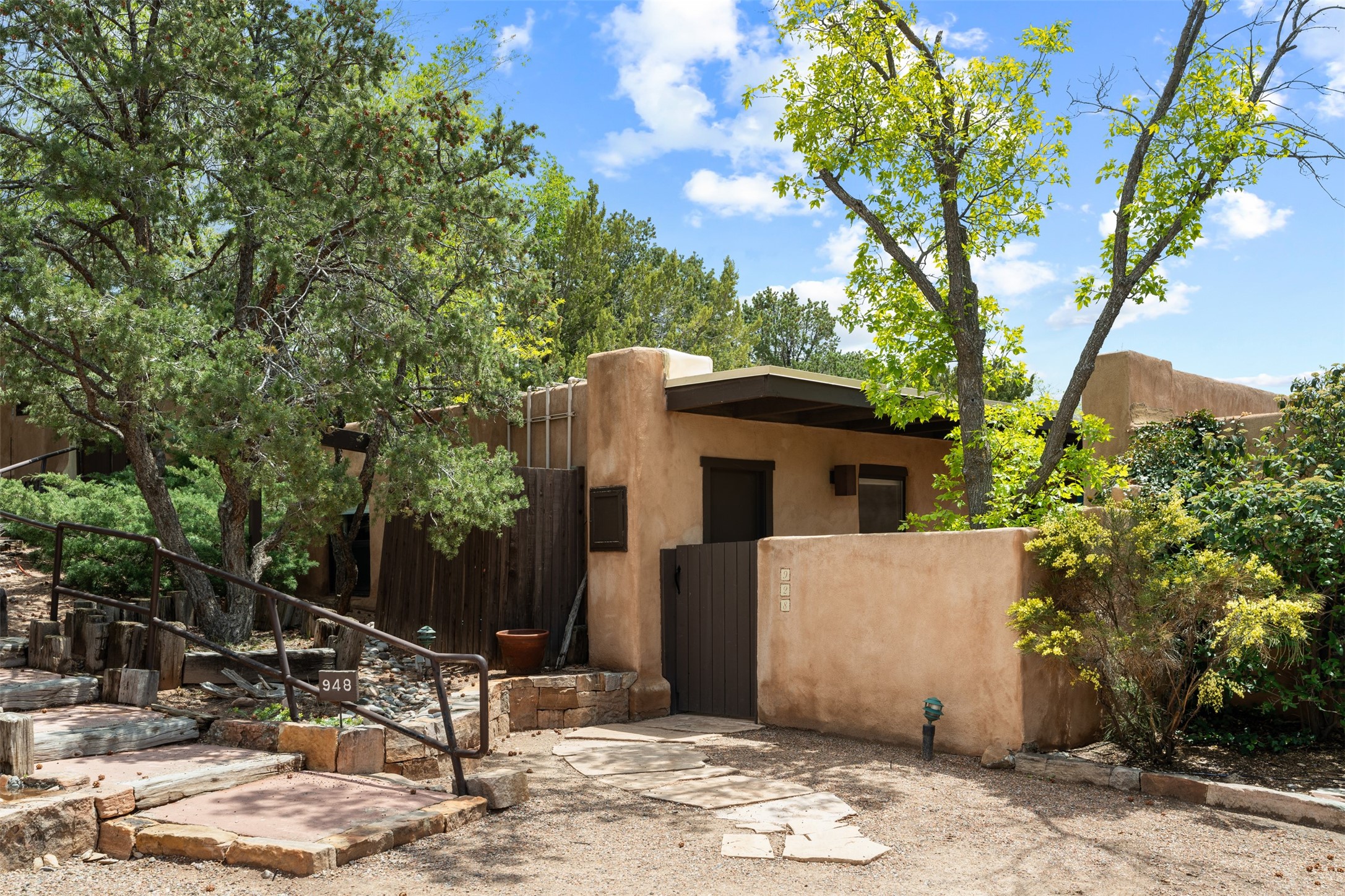 Tucked away at the top of the historic Old Taos Highway, this charming 2-bedroom, 1-bath condo offers quintessential Santa Fe living in a serene, wooded setting. With a peaceful patio nestled among the pines, this home blends natural tranquility with authentic Southwestern style.Inside, you'll find an inviting open-concept layout with a cozy kiva fireplace as the focal point. Brick and wood floors add warmth and character throughout, while radiant baseboard heating ensures year-round comfort. The kitchen and living areas flow seamlessly, ideal for both relaxed living and entertaining.A recently installed TPO roof (just 5 years old) adds peace of mind, and the location offers quick access to both downtown Santa Fe and the Sangre de Cristo foothills. Whether you're looking for a full-time residence, a weekend retreat, or a rental investment, this hidden gem is a must-see.