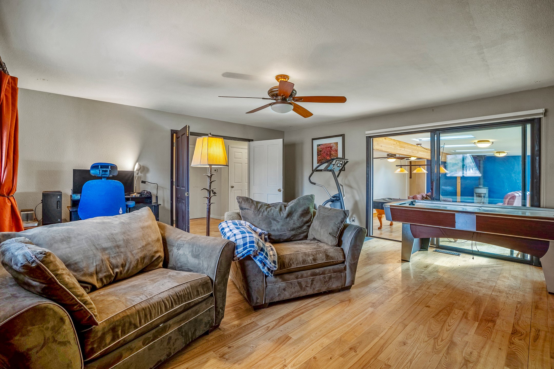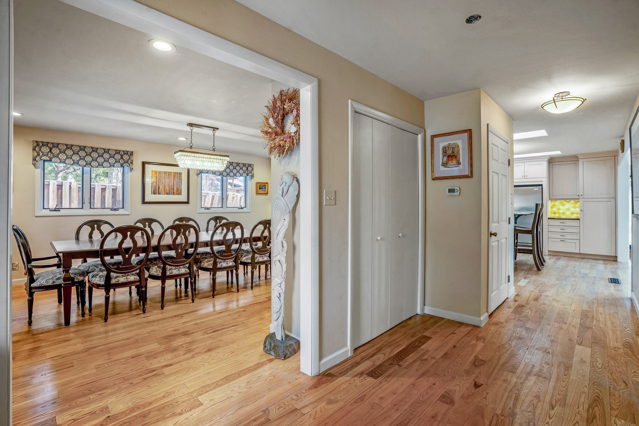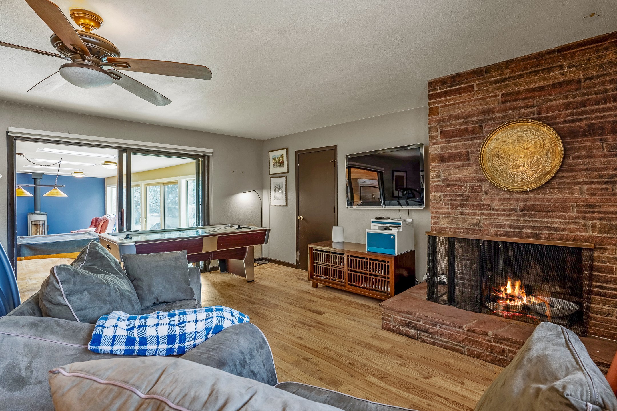 Updated Barranca Mesa Gem with Indoor Pool, Large 0.39 Acre Lot, 4 Bedrooms, Gourmet French Kitchen, Open Floor Plan, Game Room, Flagstone Patio with Views, and More! Welcome to 126 Andanada! This ranch-style home is located amongst the pines on a large 0.39 acre lot on Barranca Mesa, features a rare indoor pool, and is perfect for entertaining guests and enjoying life! As you enter, you are greeted by wood floors, natural light, and an open floor plan. To the left awaits a spacious dining room easily accommodates a ten-seat table and flows into the kitchen, making holiday meals a breeze. The custom kitchen is reminiscent of a Parisian holiday and serves as the hub of this home. It features a large L-shaped island with barstool seating for six, a built-in refrigerator, a high-end Wolf gas range, double ovens, a pedal-operated sink faucet, and four skylights for great lighting. The white cabinets provide ample storage and there is counter space for hosting and cooking in harmony! The living room features a stylish wood stove and provides access to a large flagstone patio in the backyard, with great views of the Sangre de Cristo Mountains. A second living area can serve as a game room or a home office, includes a brick fireplace to keep you warm on those cool evenings. The bedroom wing features three guest bedrooms, a full bathroom, and a spacious laundry room. The primary suite includes an en-suite bathroom that features a quartz-topped double vanity and walk-in shower. The indoor pool is housed in the eastern part of the home in a separate room with lofted ceilings and a wall of south-facing windows. The pool house opens to the landscaped back yard to maximize your summer fun! This home is truly an entertainer's dream! Schedule your showing today before this one is gone!