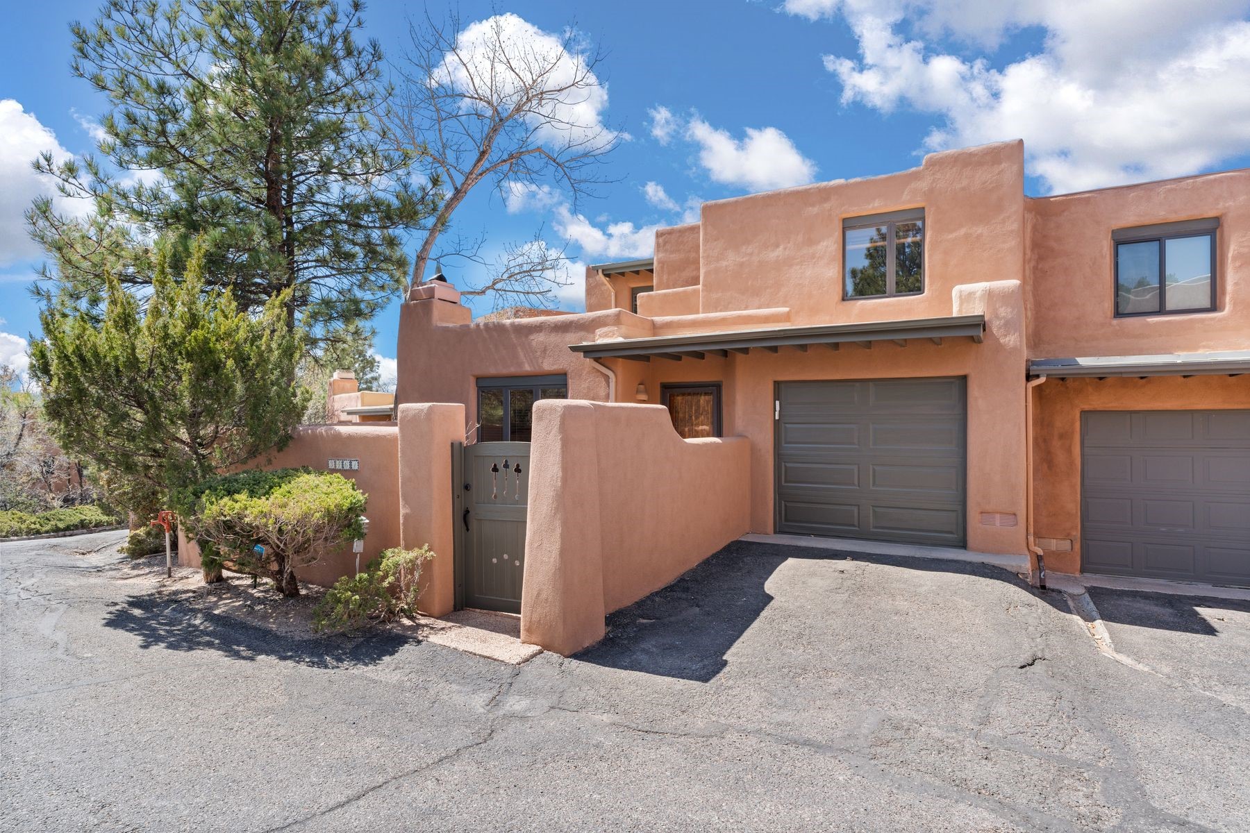 Located in an ideal location just minutes from the plaza, this well-maintained two-story home offers the perfect blend of convenience and comfort. Situated in a gated neighborhood and surrounded by mature trees, the property is close to top-rated restaurants, shopping, galleries, and scenic trails.Step inside to an inviting open layout where the kitchen, dining, and living areas flow seamlessly. A cozy fireplace in the living room enhances the warm ambiance. The home features an enclosed front courtyard, perfect for relaxation and privacy. A skylight in the stairwell brings in beautiful natural light, complementing the home's airy feel.Upstairs, you'll find two spacious bedrooms with brand-new carpet and a full bathroom. A bath is conveniently located on the main level. Storage is plentiful throughout the home, including in the attached one-car garage. Recent updates include a newer roof (2020 under 10-year warranty), new furnace, new AC, new hot water heater, and freshly redone stucco.Located near Fort Marcy Park and the Fort Marcy Rec Complex, this home offers easy access to outdoor recreation while being just moments from the heart of town. Don't miss this opportunity to own a well-maintained home in a prime Santa Fe location!