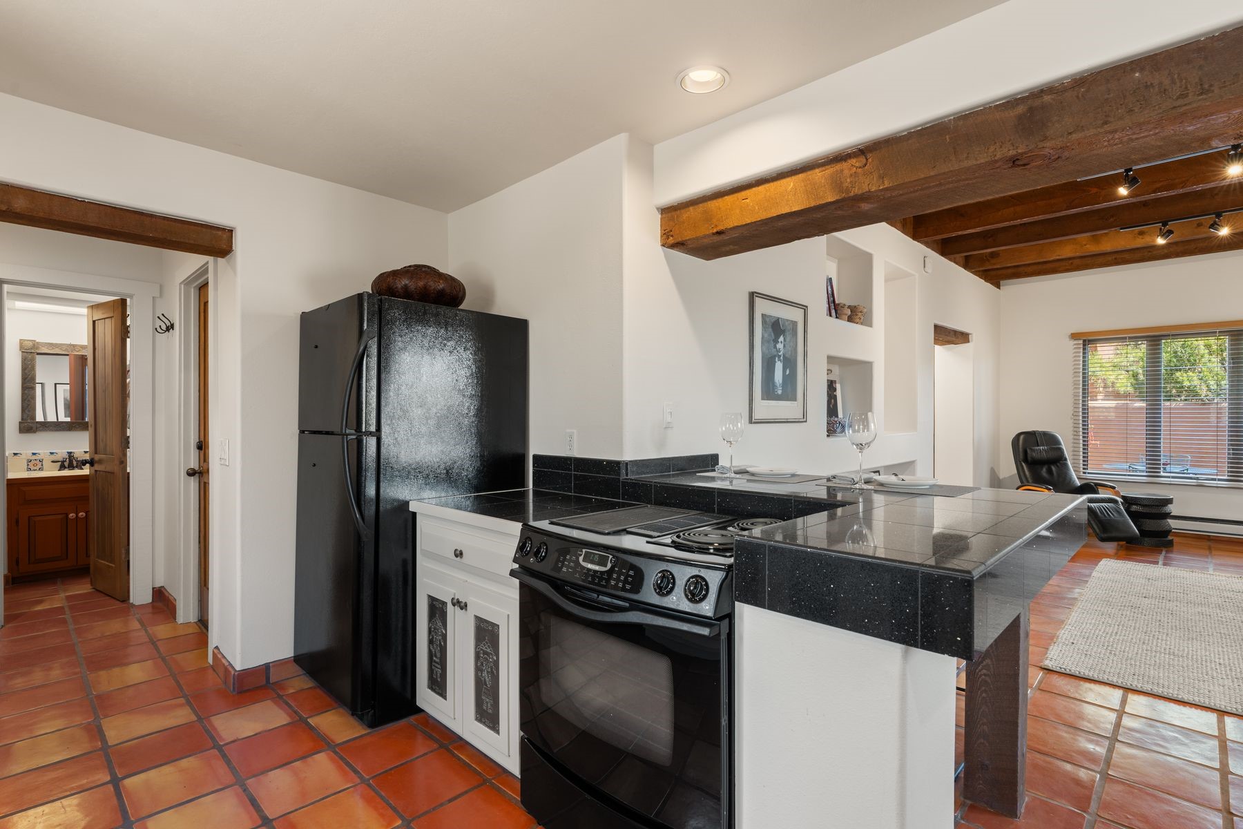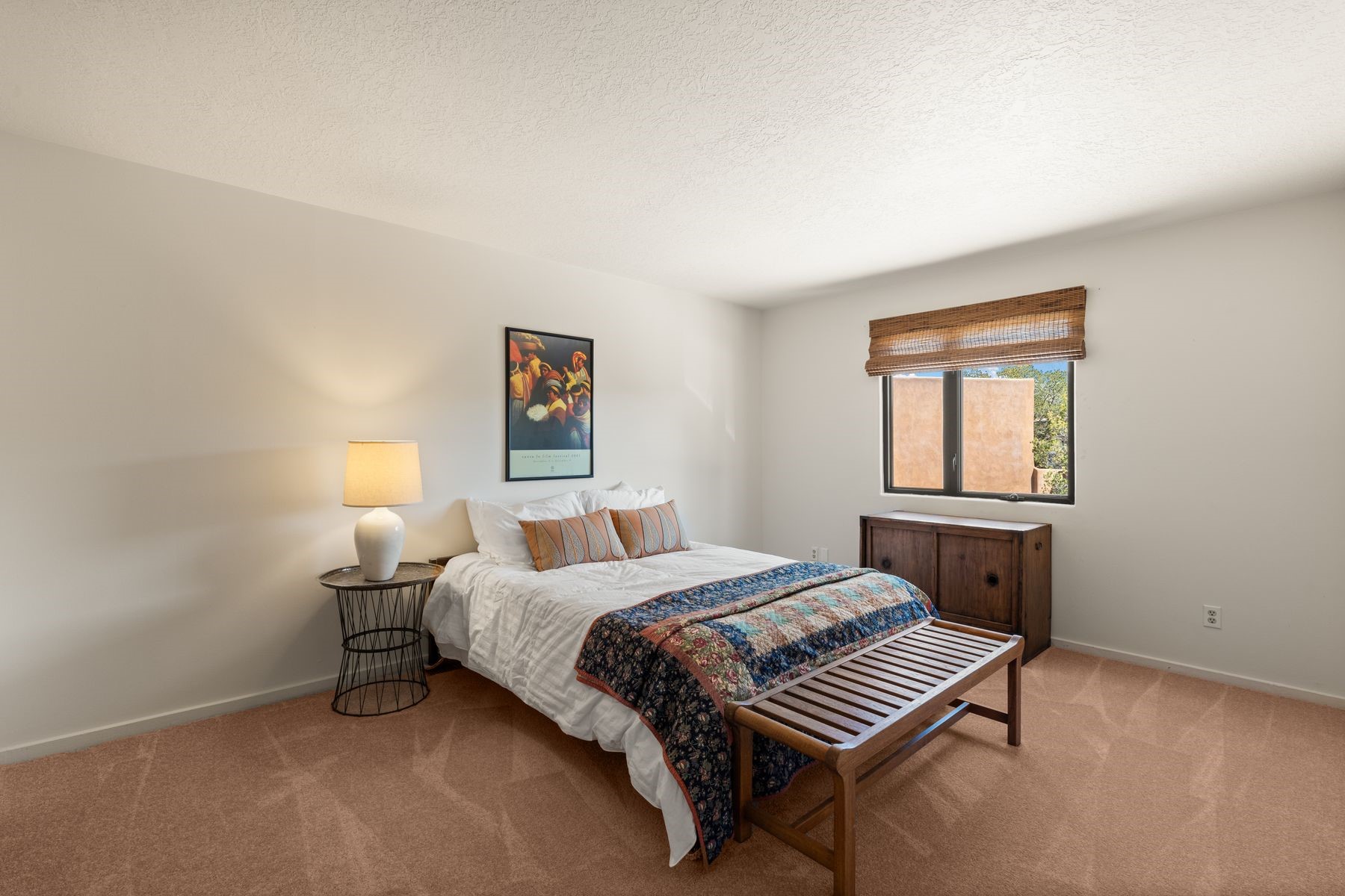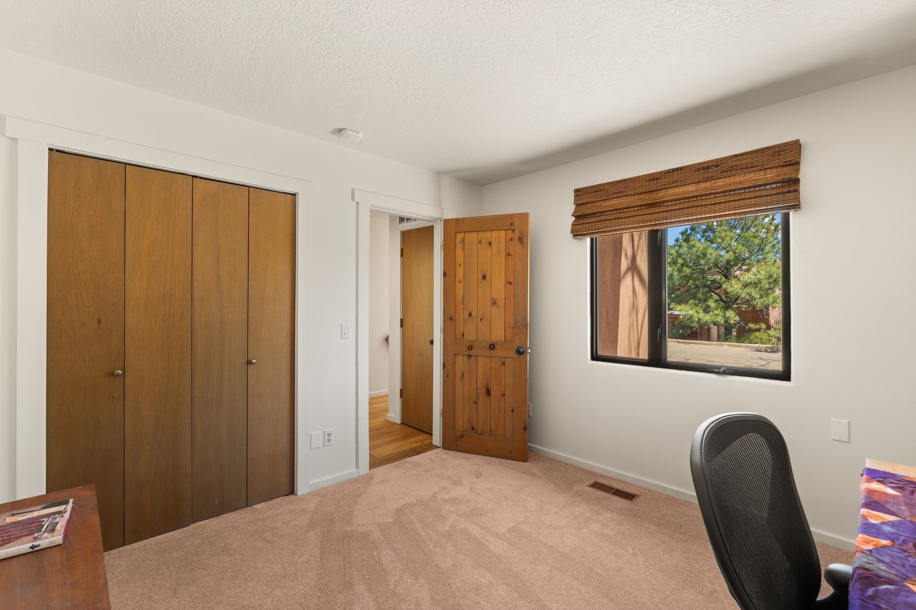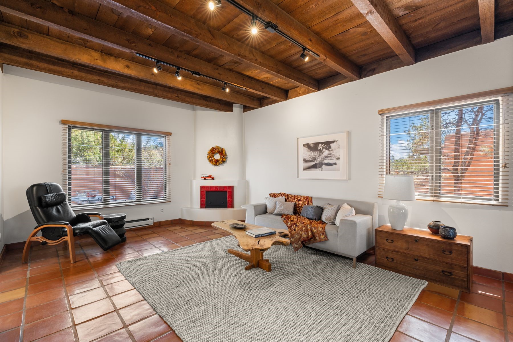 Located in an ideal location just minutes from the plaza, this well-maintained two-story home offers the perfect blend of convenience and comfort. Situated in a gated neighborhood and surrounded by mature trees, the property is close to top-rated restaurants, shopping, galleries, and scenic trails.Step inside to an inviting open layout where the kitchen, dining, and living areas flow seamlessly. A cozy fireplace in the living room enhances the warm ambiance. The home features an enclosed front courtyard, perfect for relaxation and privacy. A skylight in the stairwell brings in beautiful natural light, complementing the home's airy feel.Upstairs, you'll find two spacious bedrooms with brand-new carpet and a full bathroom. A bath is conveniently located on the main level. Storage is plentiful throughout the home, including in the attached one-car garage. Recent updates include a newer roof (2020 under 10-year warranty), new furnace, new AC, new hot water heater, and freshly redone stucco.Located near Fort Marcy Park and the Fort Marcy Rec Complex, this home offers easy access to outdoor recreation while being just moments from the heart of town. Don't miss this opportunity to own a well-maintained home in a prime Santa Fe location!