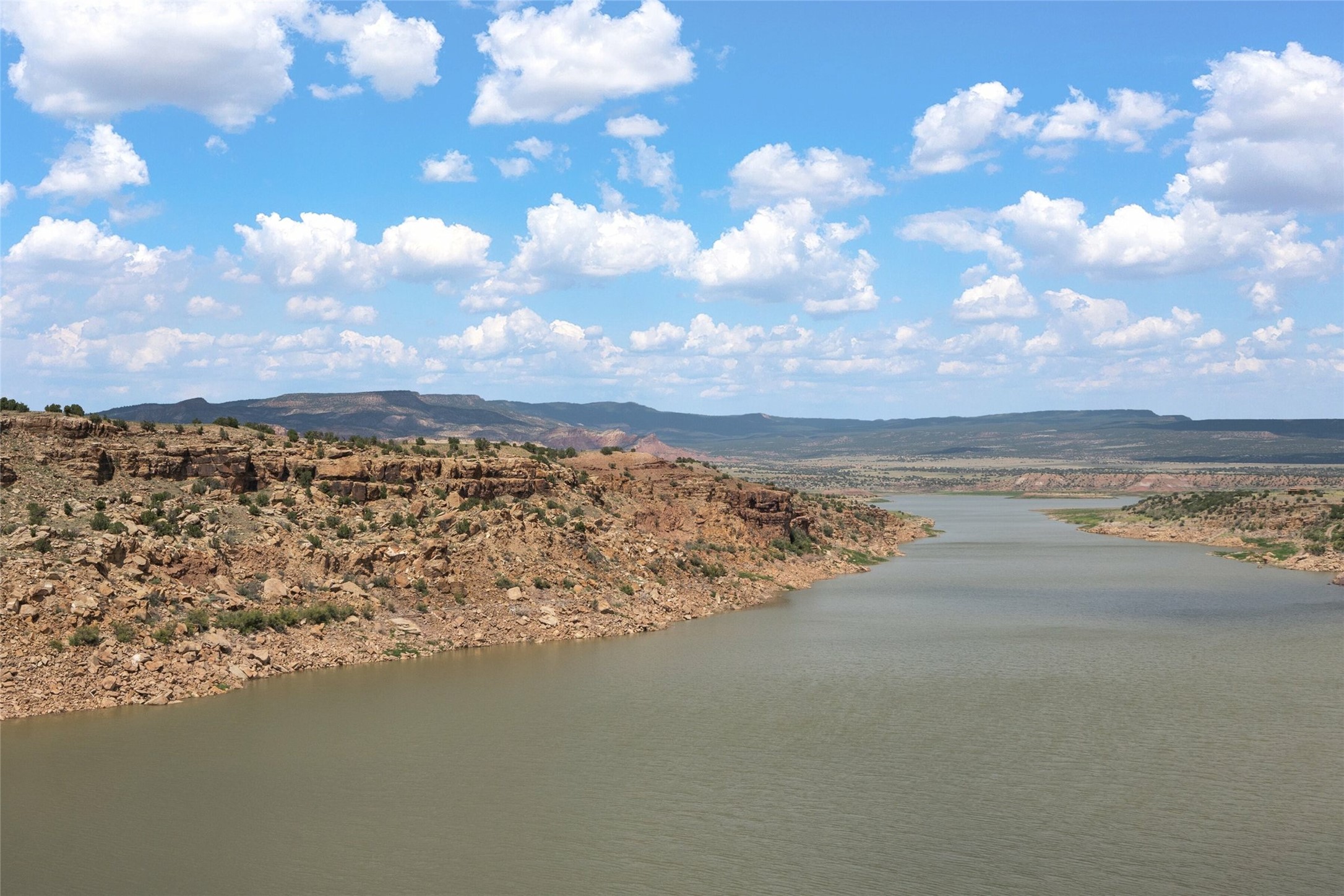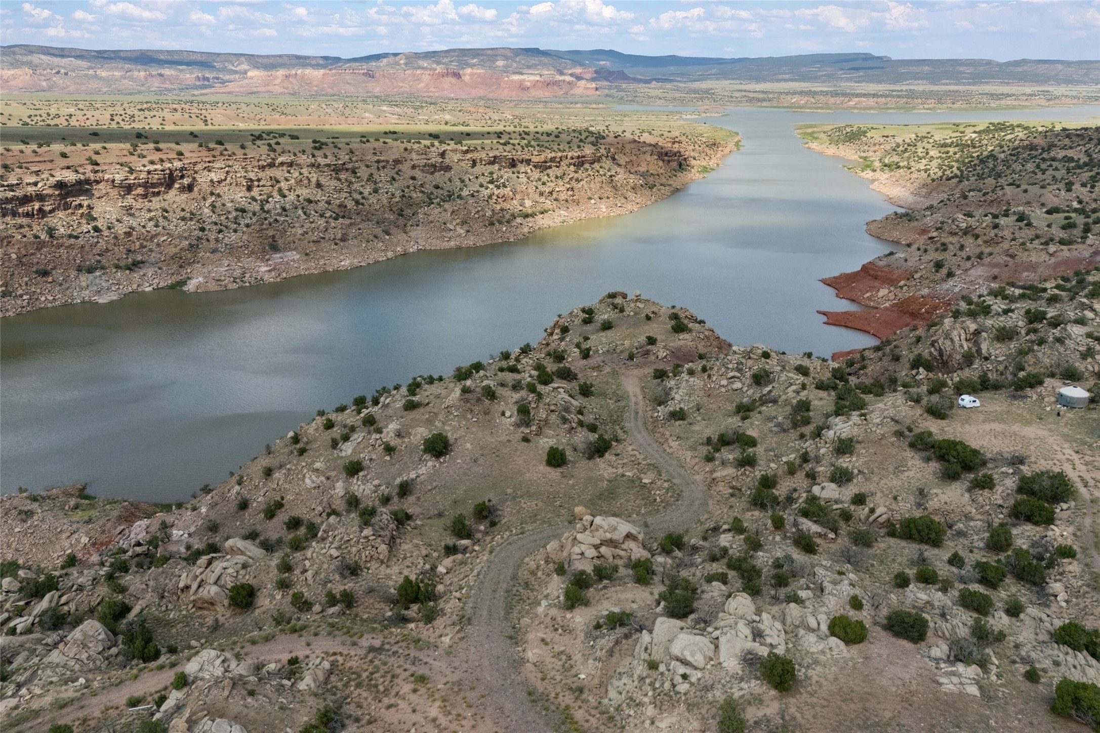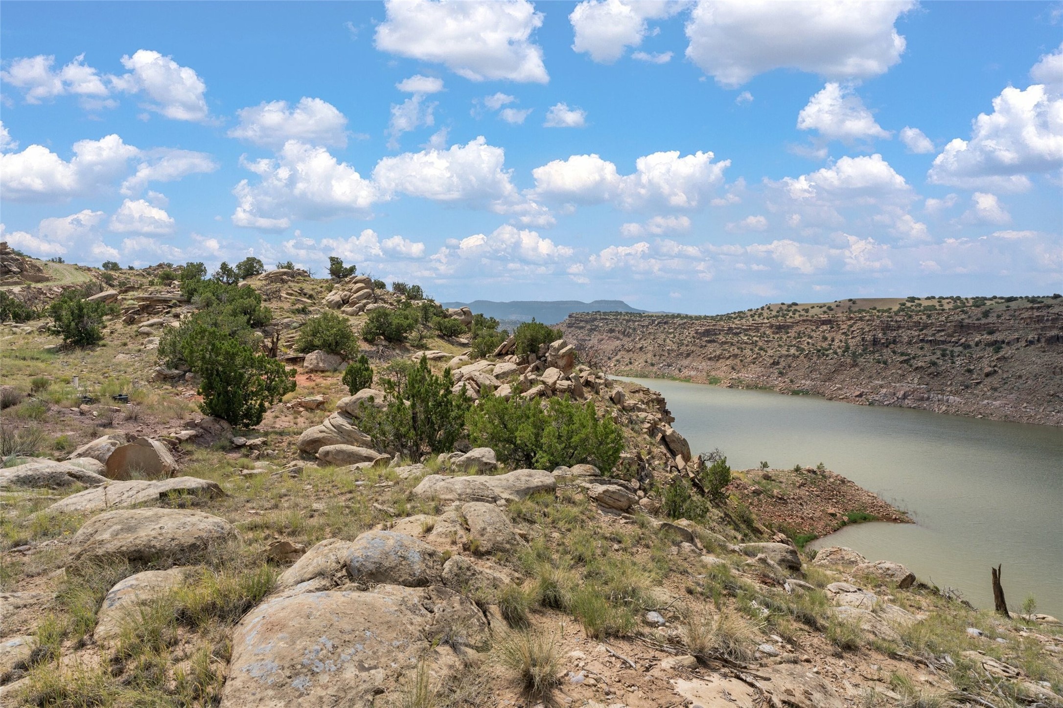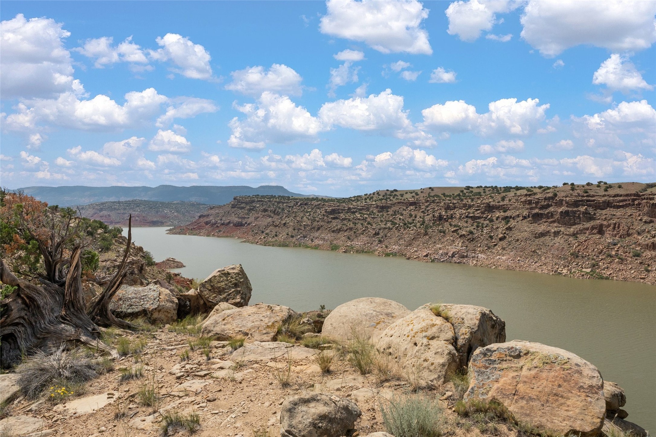 Who has waterfront property in New Mexico? It is unheard of! And yet, there is a rare, very special 14.49 acre view parcel right on the water at Lake Abiquiu! It sits on a private, majestic ridge surrounded by panoramas of Ghost Ranch and the legendary multi-colored cliffs memorialized in Georgia O'Keeffe's art, with views and access all the way up the San Juan river as well. There are several spectacular building sites to choose from, magnificent character rocks, total privacy, peace, silence and tranquility in overwhelming beauty, looking out over the world and Lake Abiquiu. Electric is in, and a shared well, plus membership in the private community Lot 16 boat ramp and picnic area. 5 minutes to Abiquiu, an hour from Santa Fe, and a short drive south of the Colorado border, this is a once in a lifetime opportunity to experience waterfront property in New Mexico!