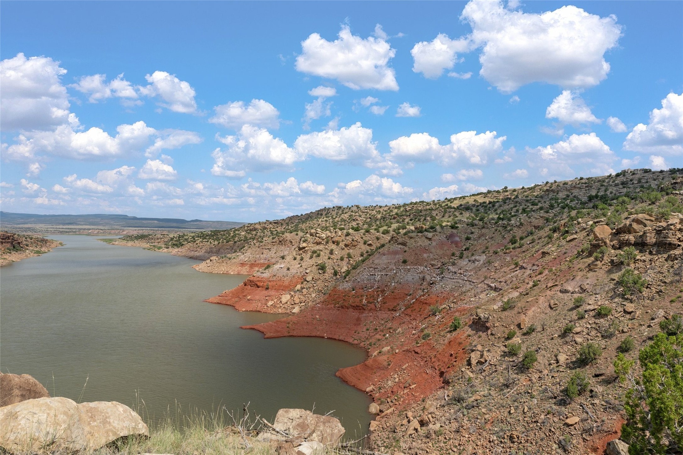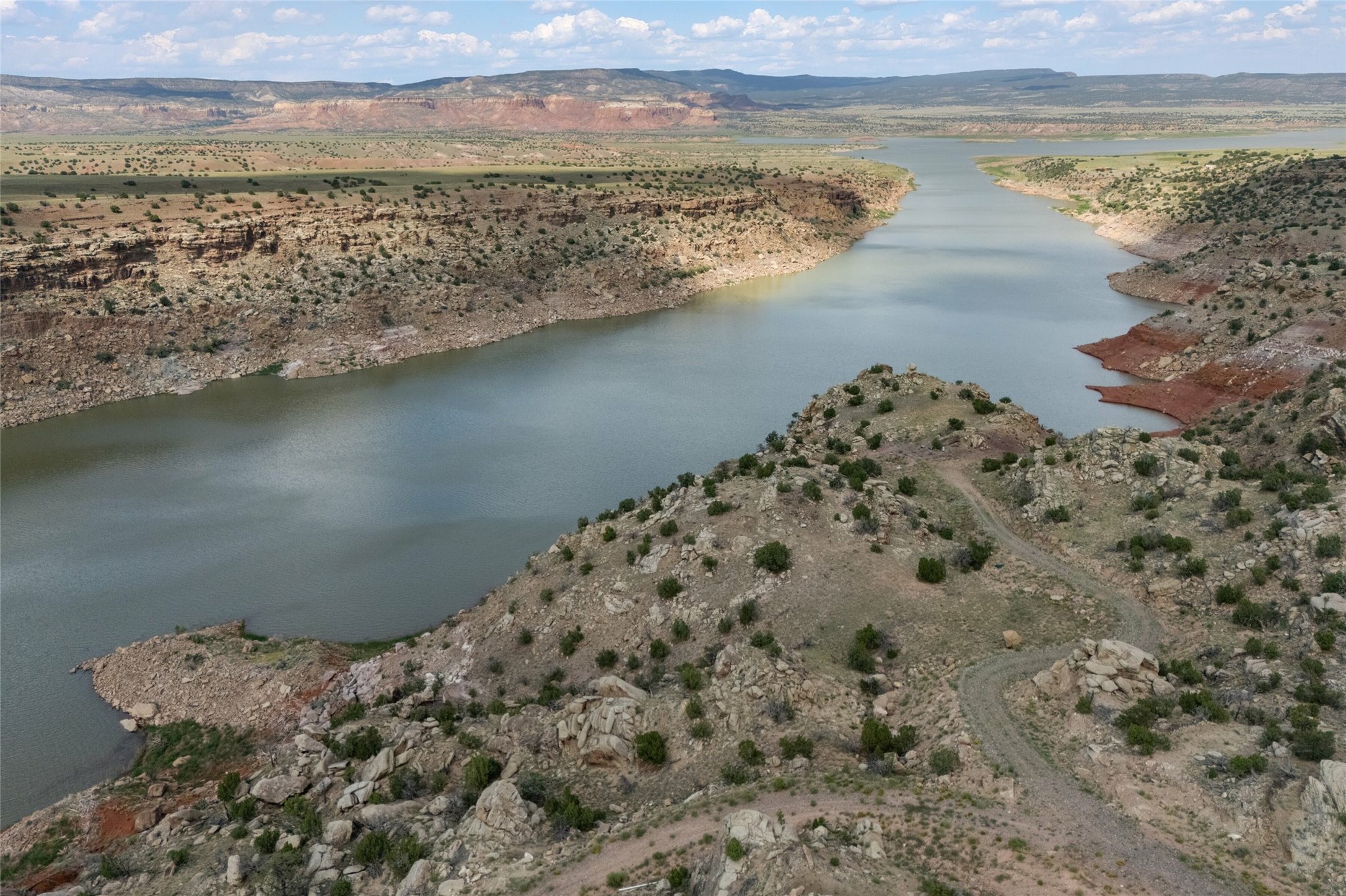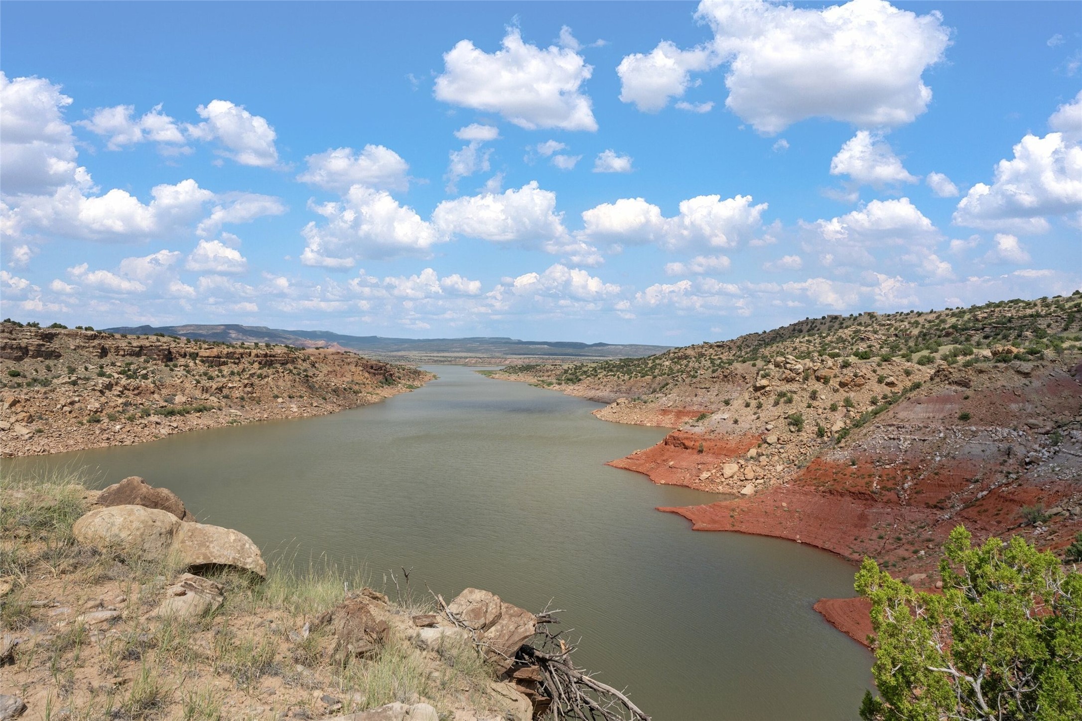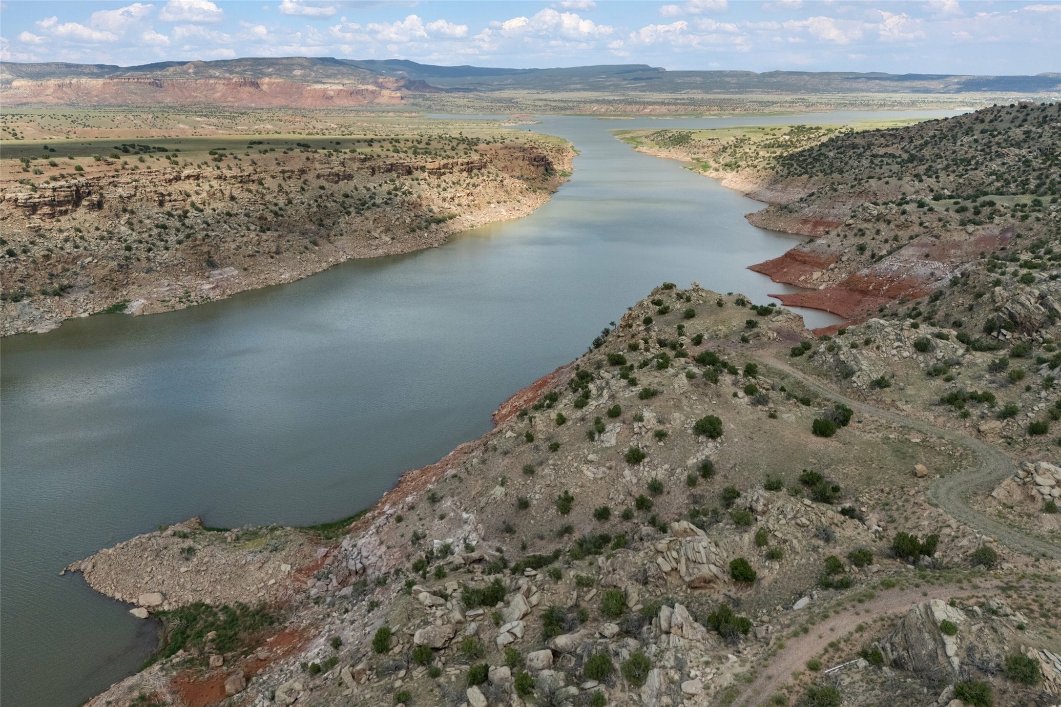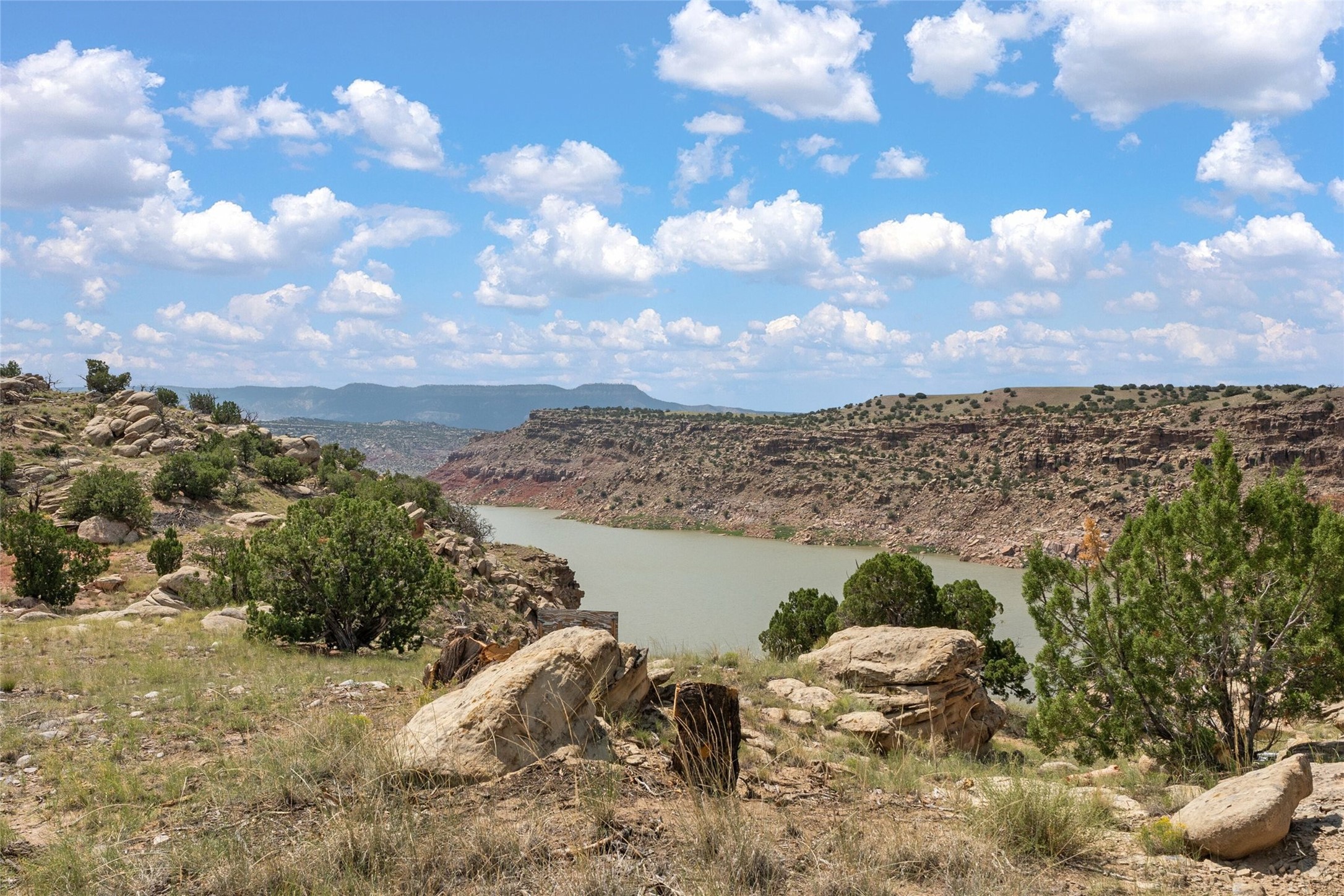 Who has waterfront property in New Mexico? It is unheard of! And yet, there is a rare, very special 14.49 acre view parcel right on the water at Lake Abiquiu! It sits on a private, majestic ridge surrounded by panoramas of Ghost Ranch and the legendary multi-colored cliffs memorialized in Georgia O'Keeffe's art, with views and access all the way up the San Juan river as well. There are several spectacular building sites to choose from, magnificent character rocks, total privacy, peace, silence and tranquility in overwhelming beauty, looking out over the world and Lake Abiquiu. Electric is in, and a shared well, plus membership in the private community Lot 16 boat ramp and picnic area. 5 minutes to Abiquiu, an hour from Santa Fe, and a short drive south of the Colorado border, this is a once in a lifetime opportunity to experience waterfront property in New Mexico!